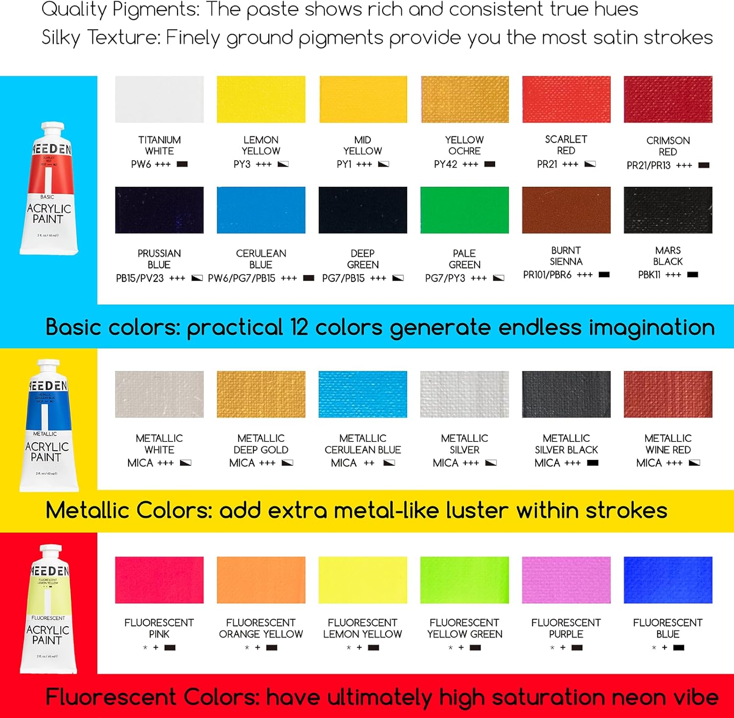 MEEDEN Acrylic Painting Set with Easel: 44 Pcs Art Supplies Painting Kit with Tabletop Box Easel for Adults - 24 Acrylic Paints, Paintbrushes, Canvas, Palettes & Accessories