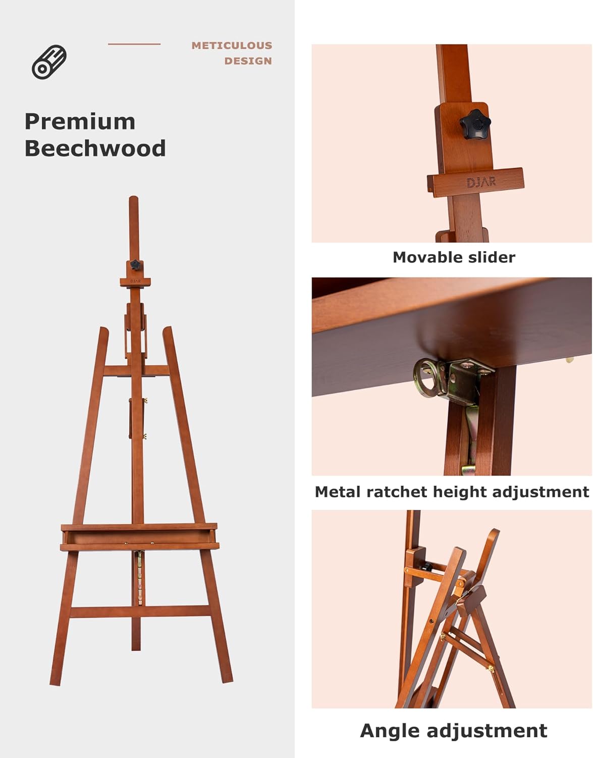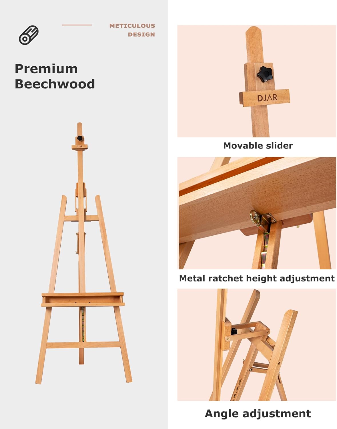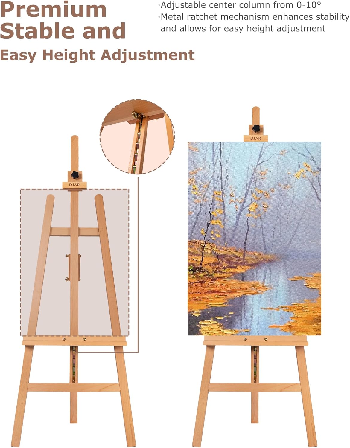 DJAR Art Easel Stand for Painting, Solid Beech Wood Adjustable Large Studio Floor Easel with Storage Tray for Adults Students, Hold Canvas up to 49", Natural