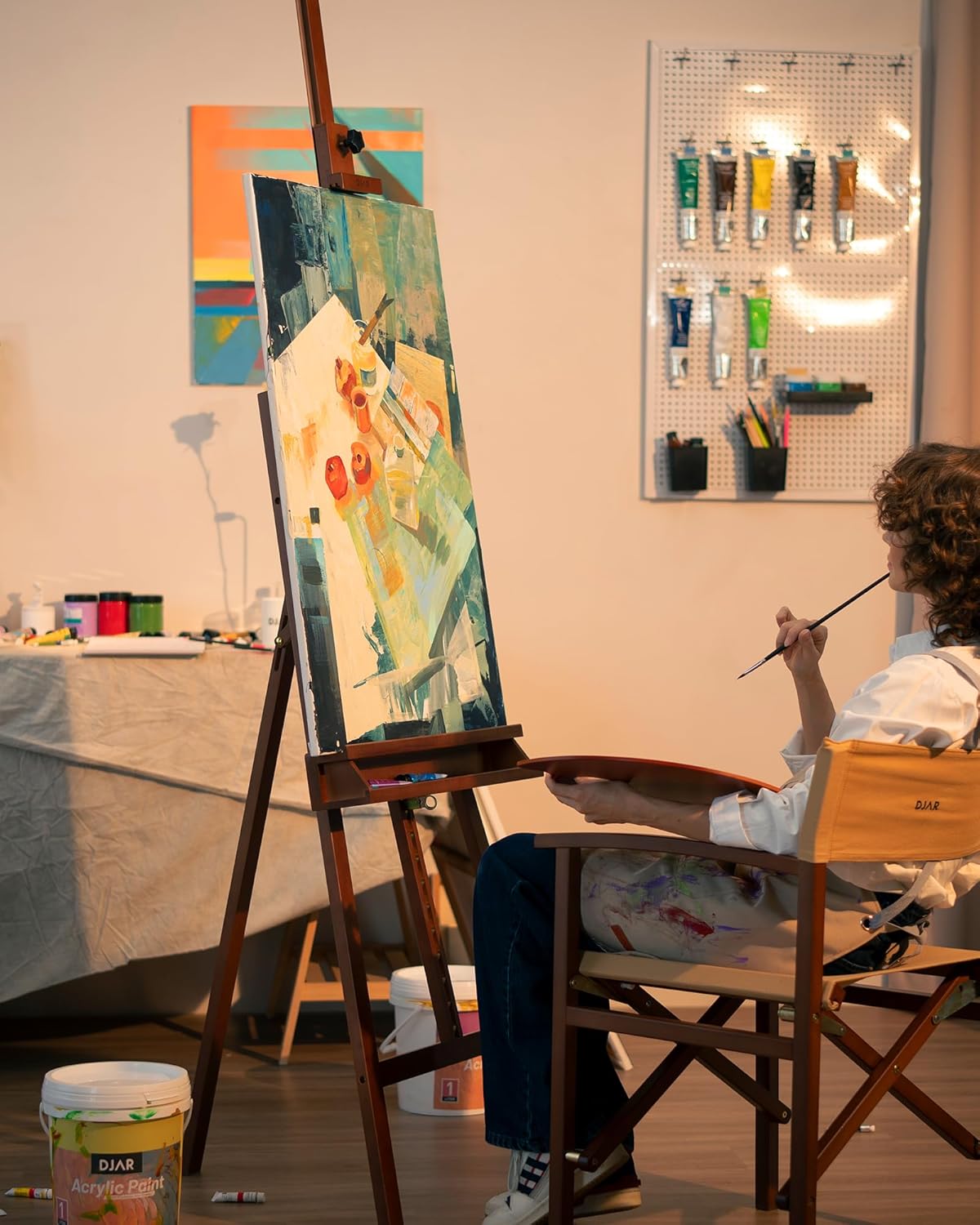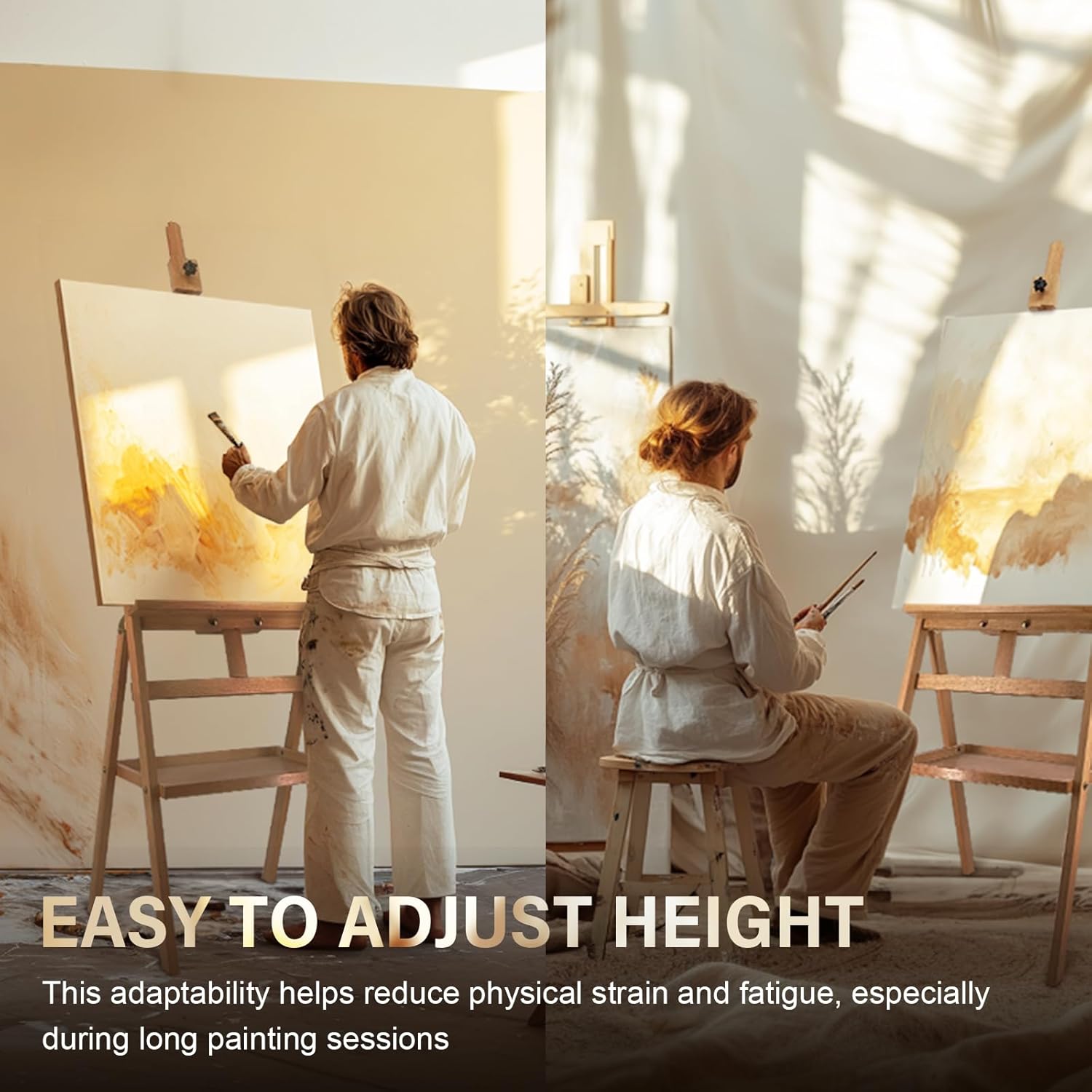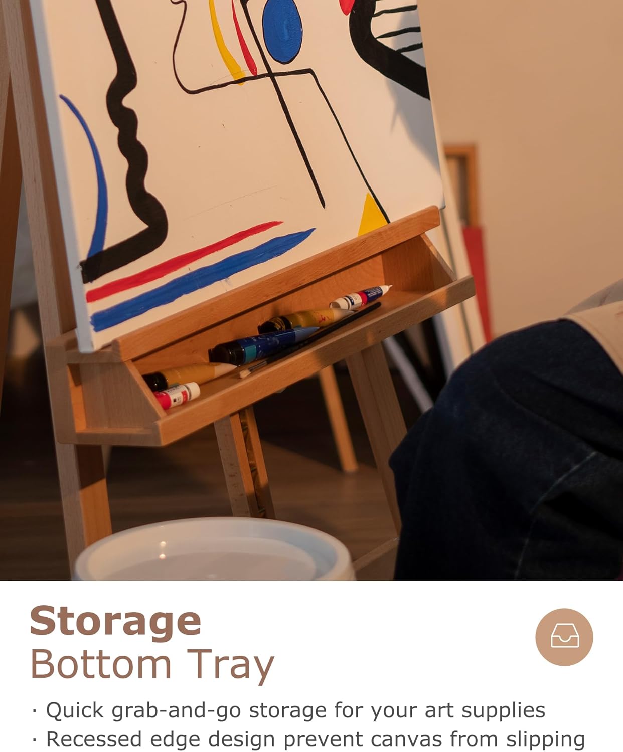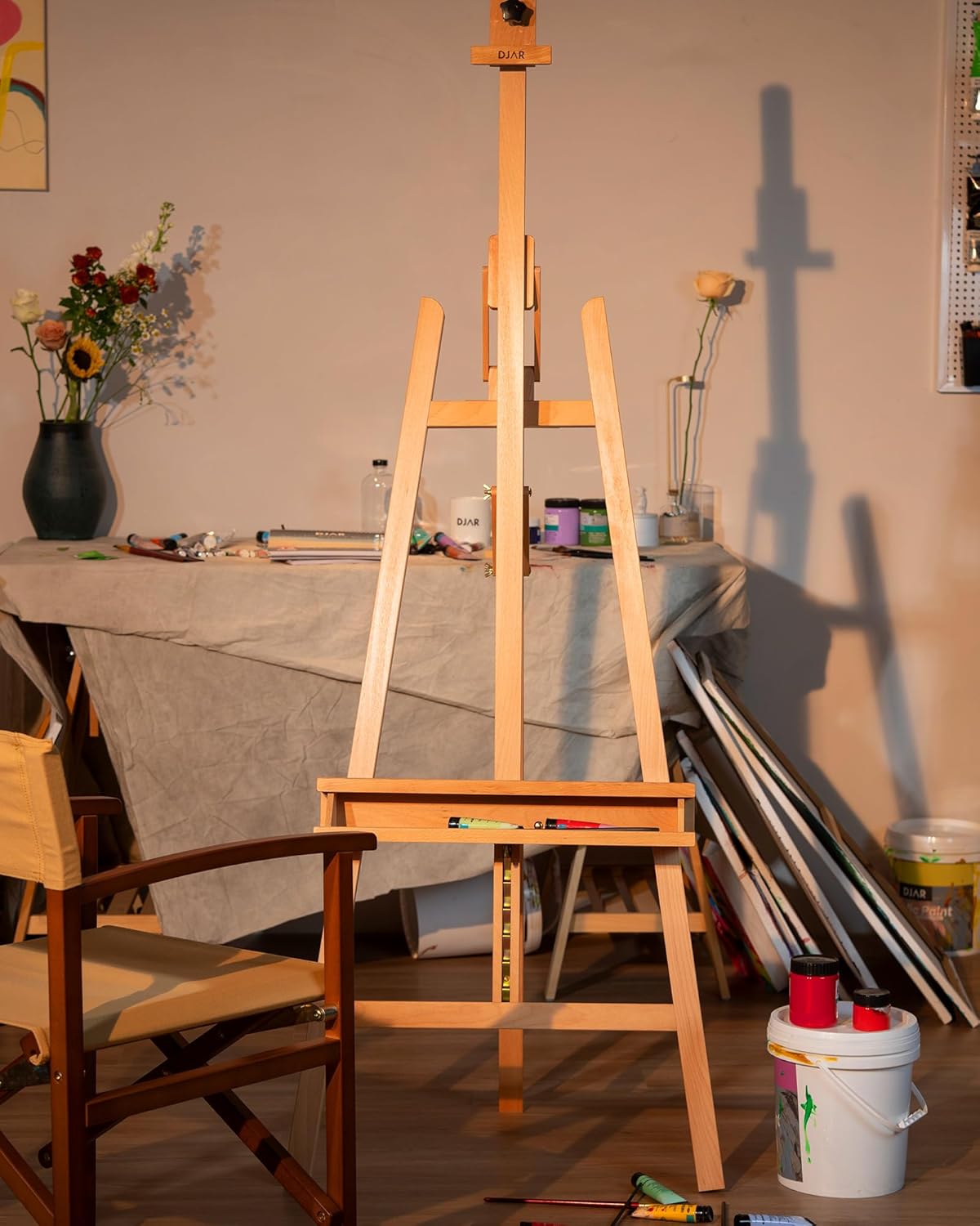 DJAR Art Easel Stand for Painting, Solid Beech Wood Adjustable Large Studio Floor Easel with Storage Tray for Adults Students, Hold Canvas up to 49", Natural