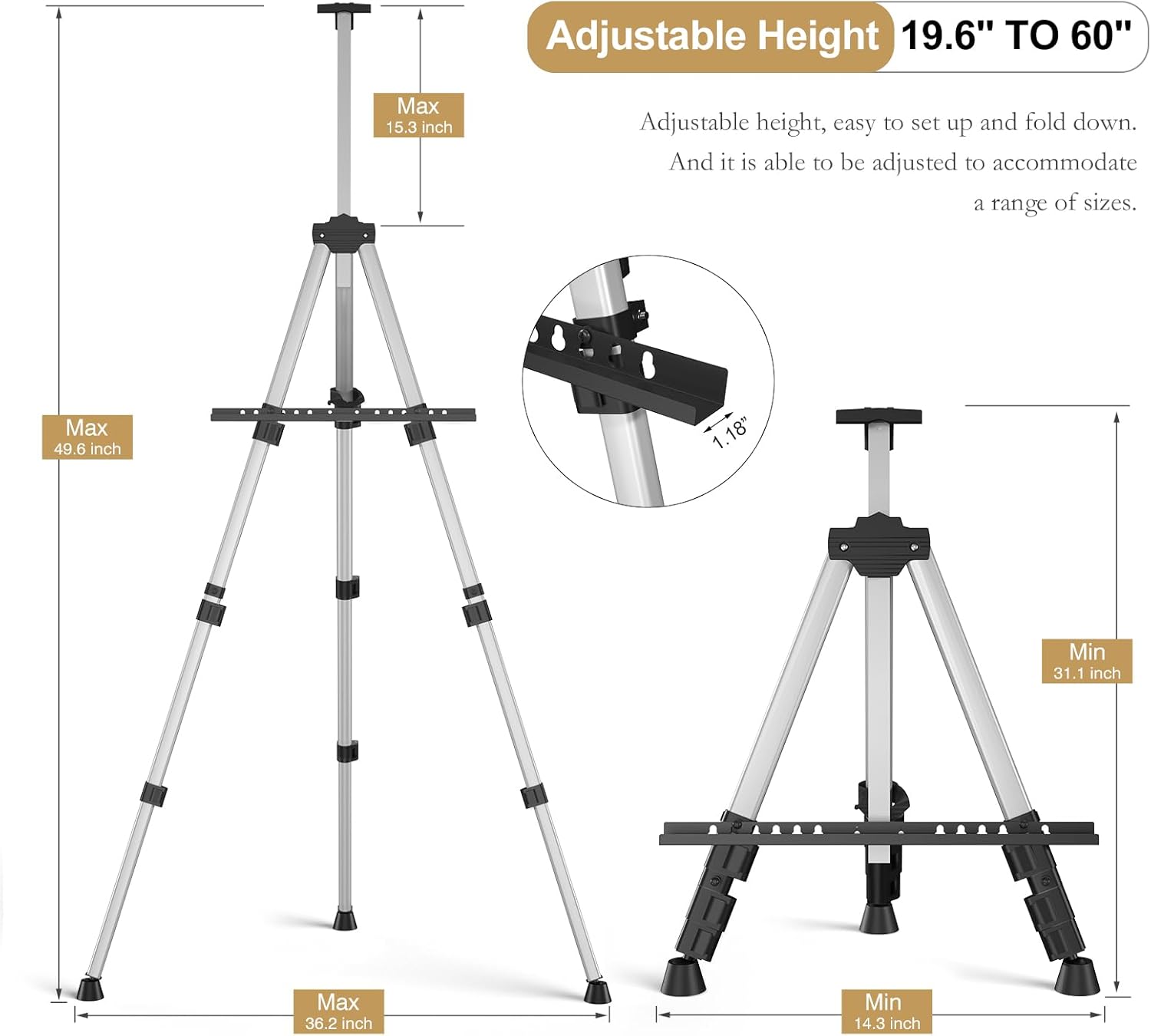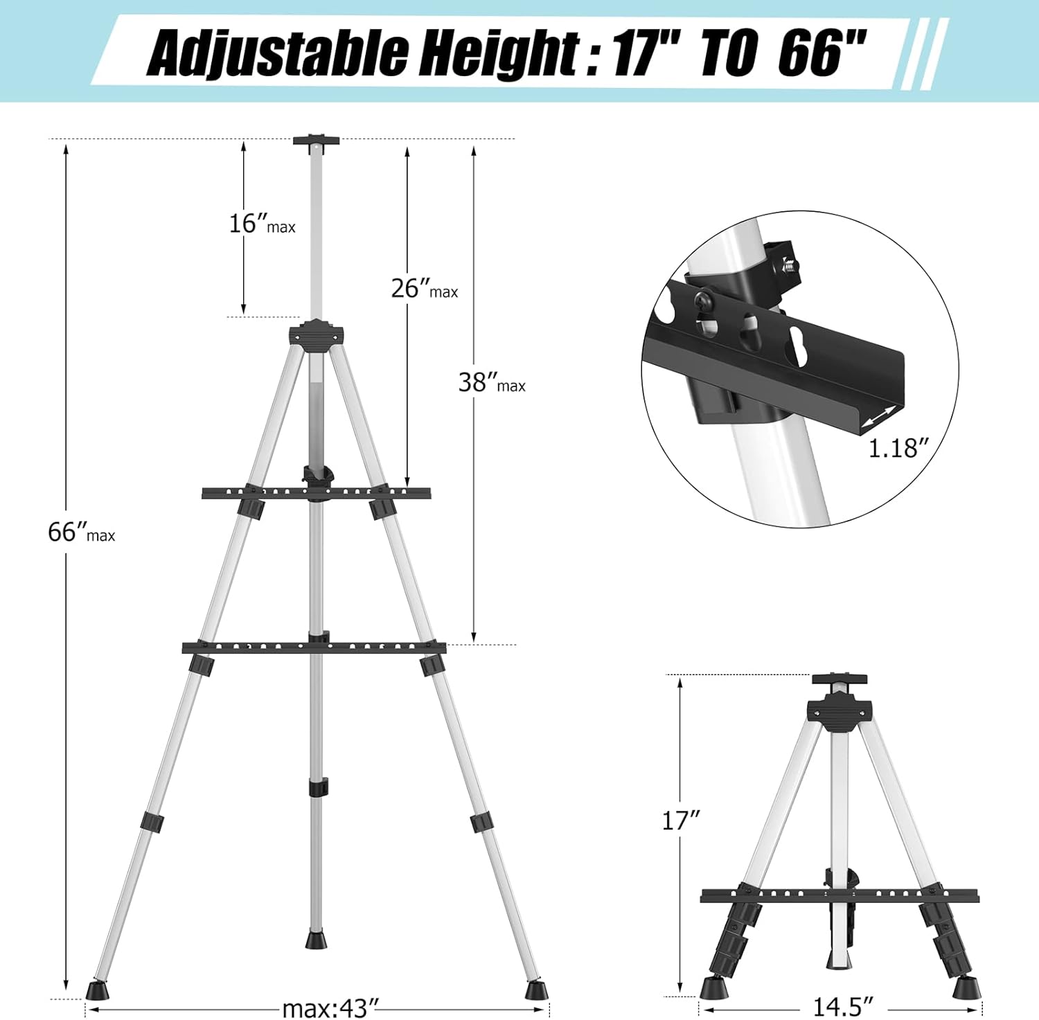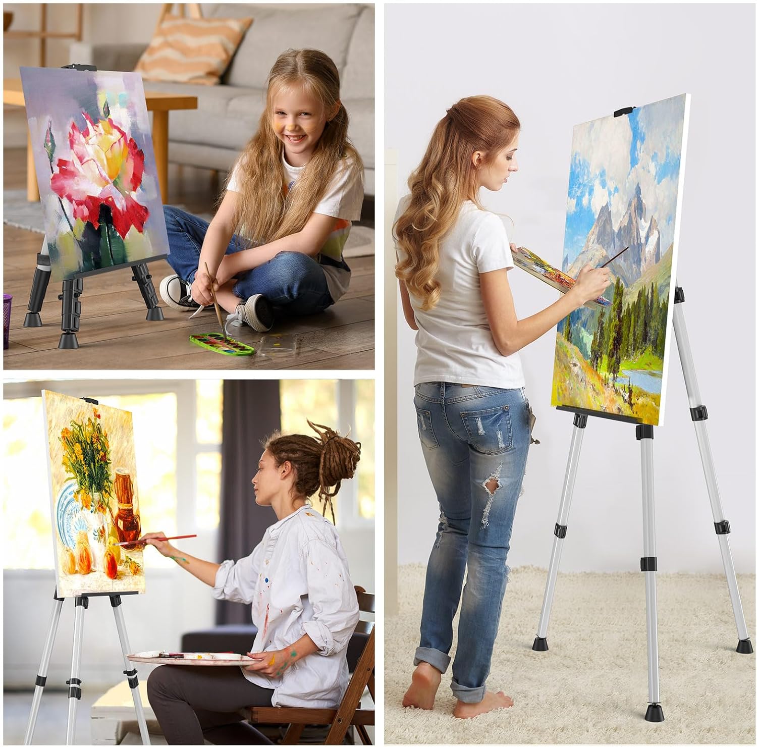 AROIC 8 Pack Painting Display Easel Stand Portable Adjustable Metal Tripod Artist Canvases Height from17to66Inch Extra Sturdy forTable-Top/Floor Painting, Drawingand Displaying,Black with8Storage Bag