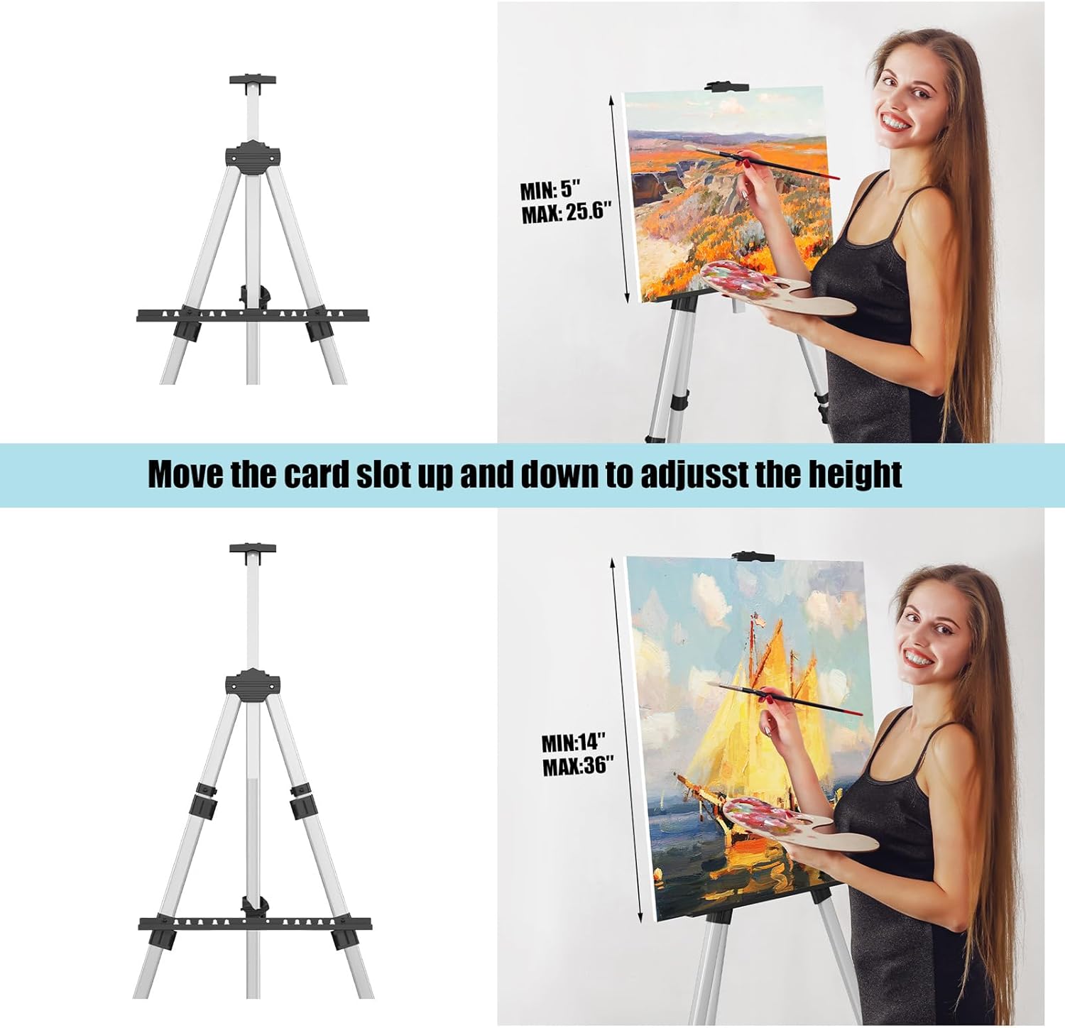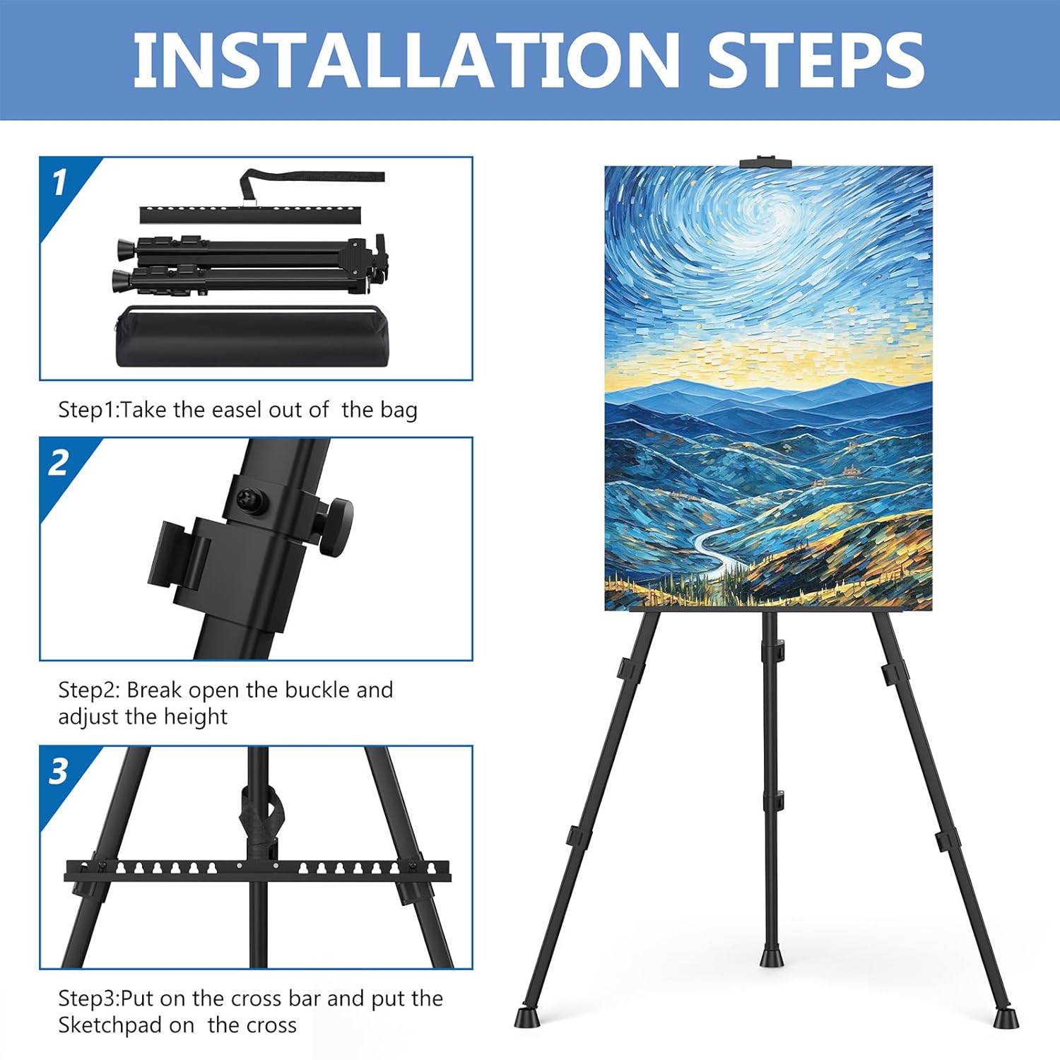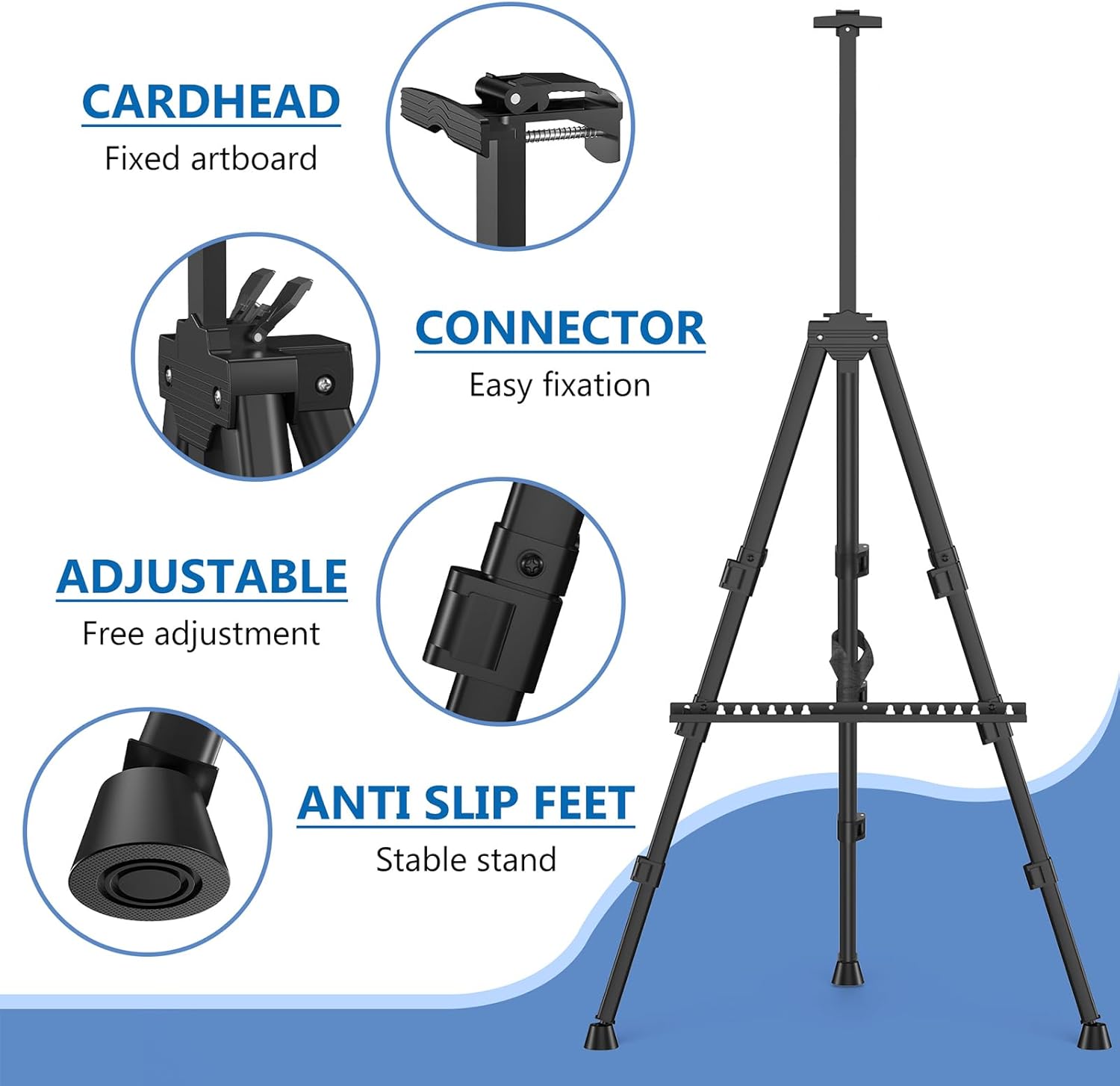 AROIC 8 Pack Painting Display Easel Stand Portable Adjustable Metal Tripod Artist Canvases Height from17to66Inch Extra Sturdy forTable-Top/Floor Painting, Drawingand Displaying,Black with8Storage Bag
