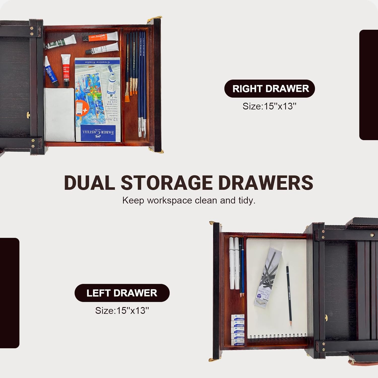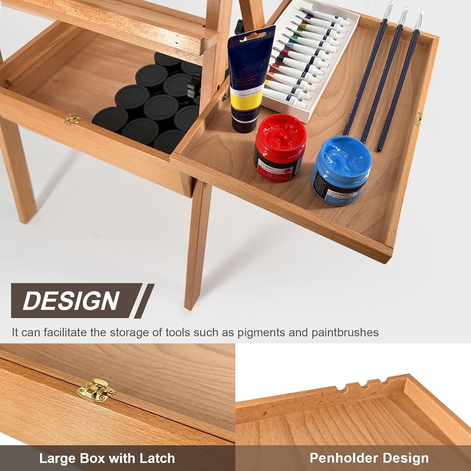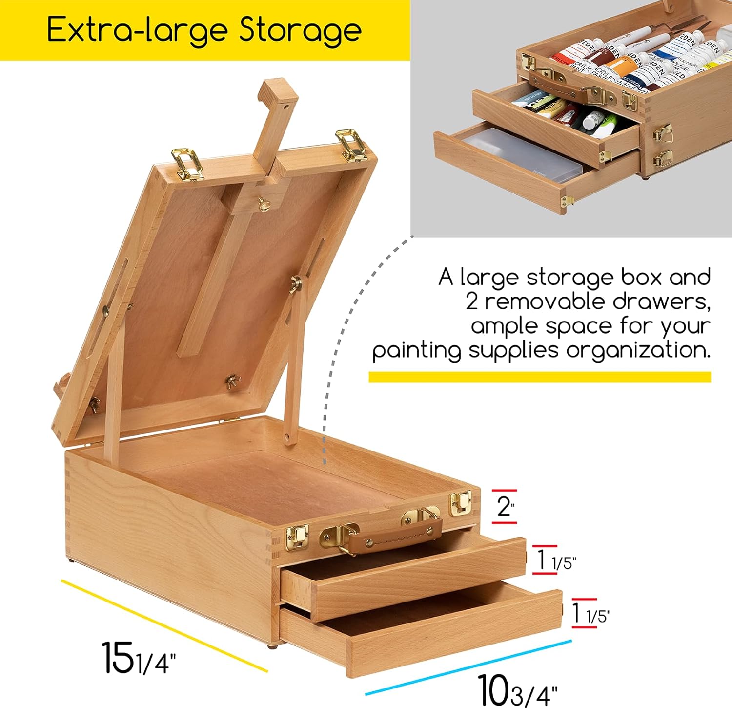 Large Sketchbox Table Top Easel with Dual Dawers- Adjustable Solid Beech Wood Artist Desktop Easel with Storage Holds Canvas up to 34'' High, for Markers, Sketch or Draw