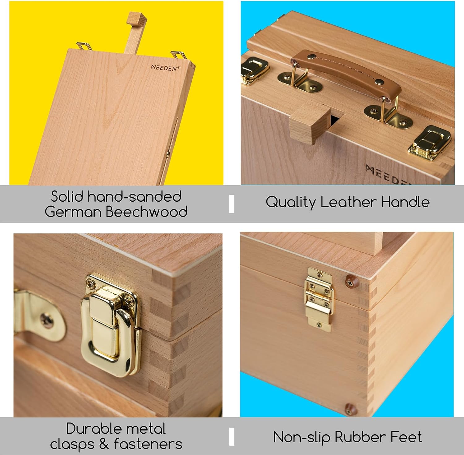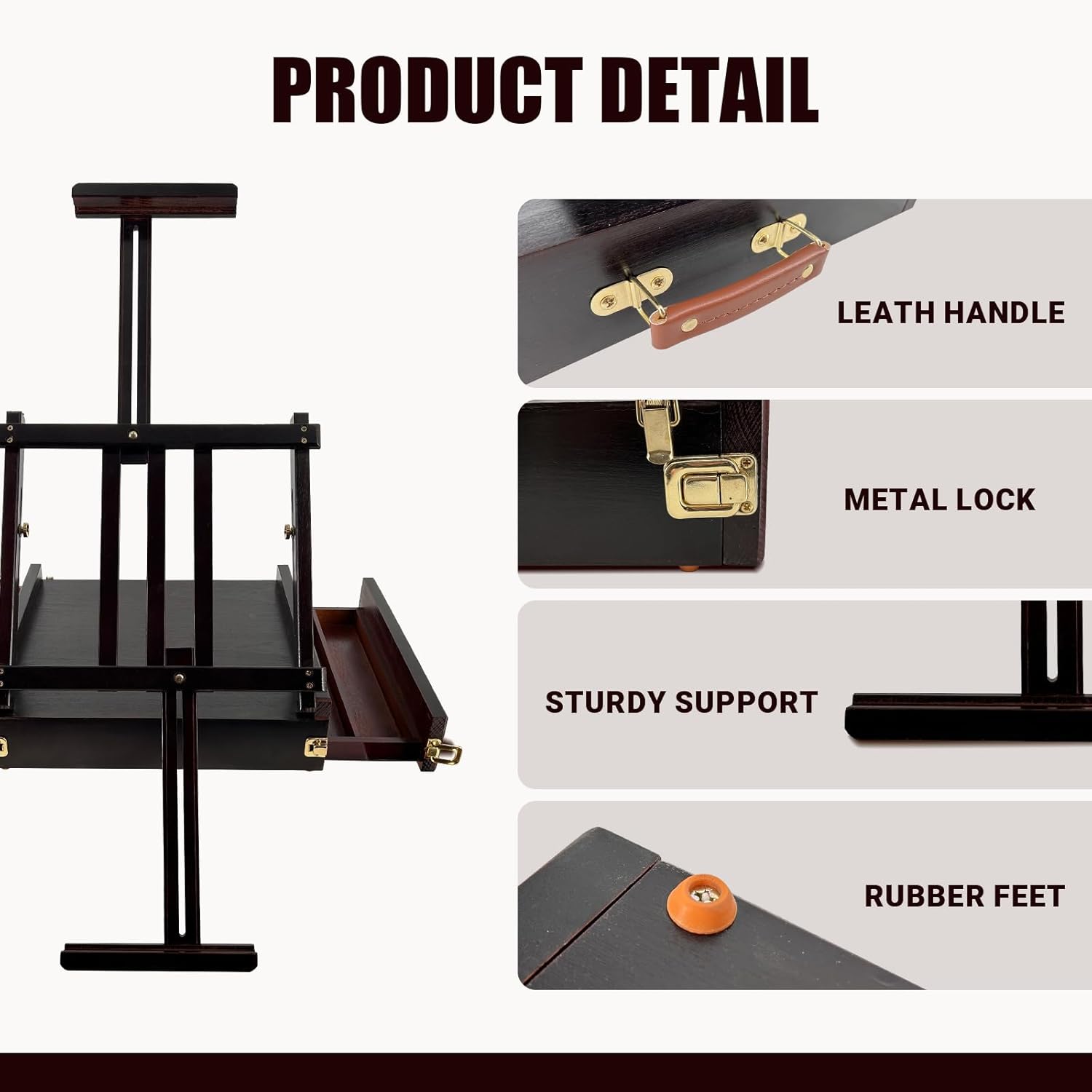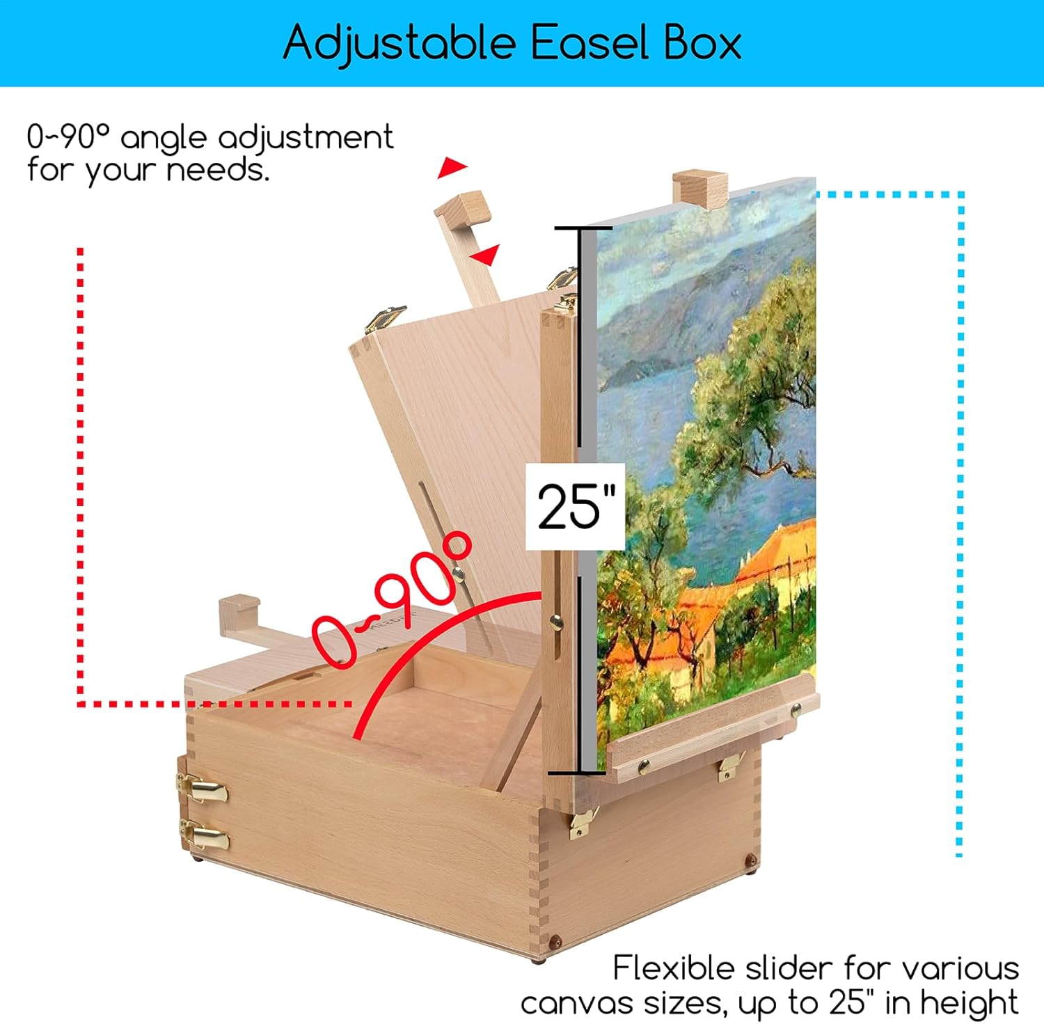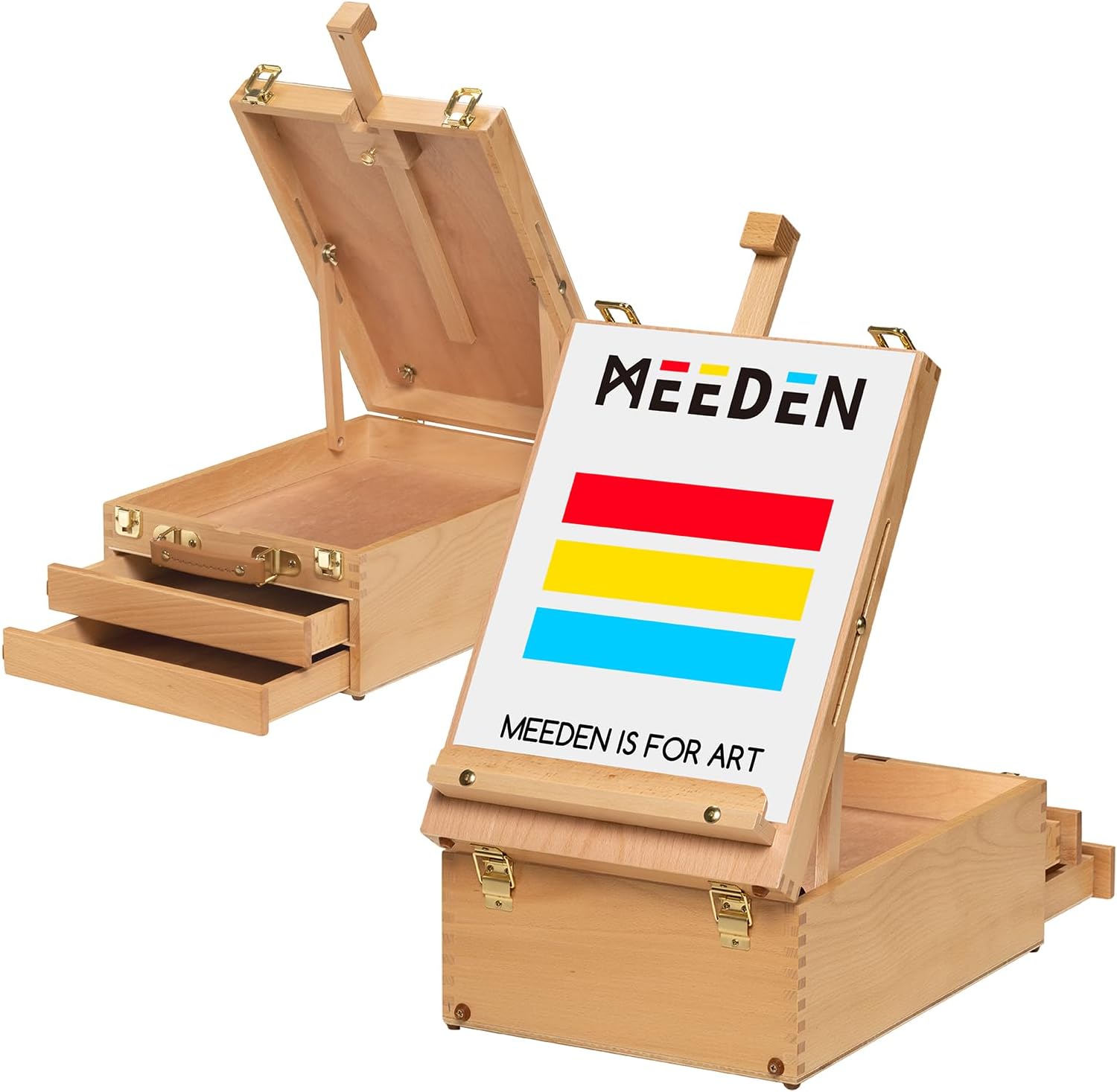Large Sketchbox Table Top Easel with Dual Dawers- Adjustable Solid Beech Wood Artist Desktop Easel with Storage Holds Canvas up to 34'' High, for Markers, Sketch or Draw