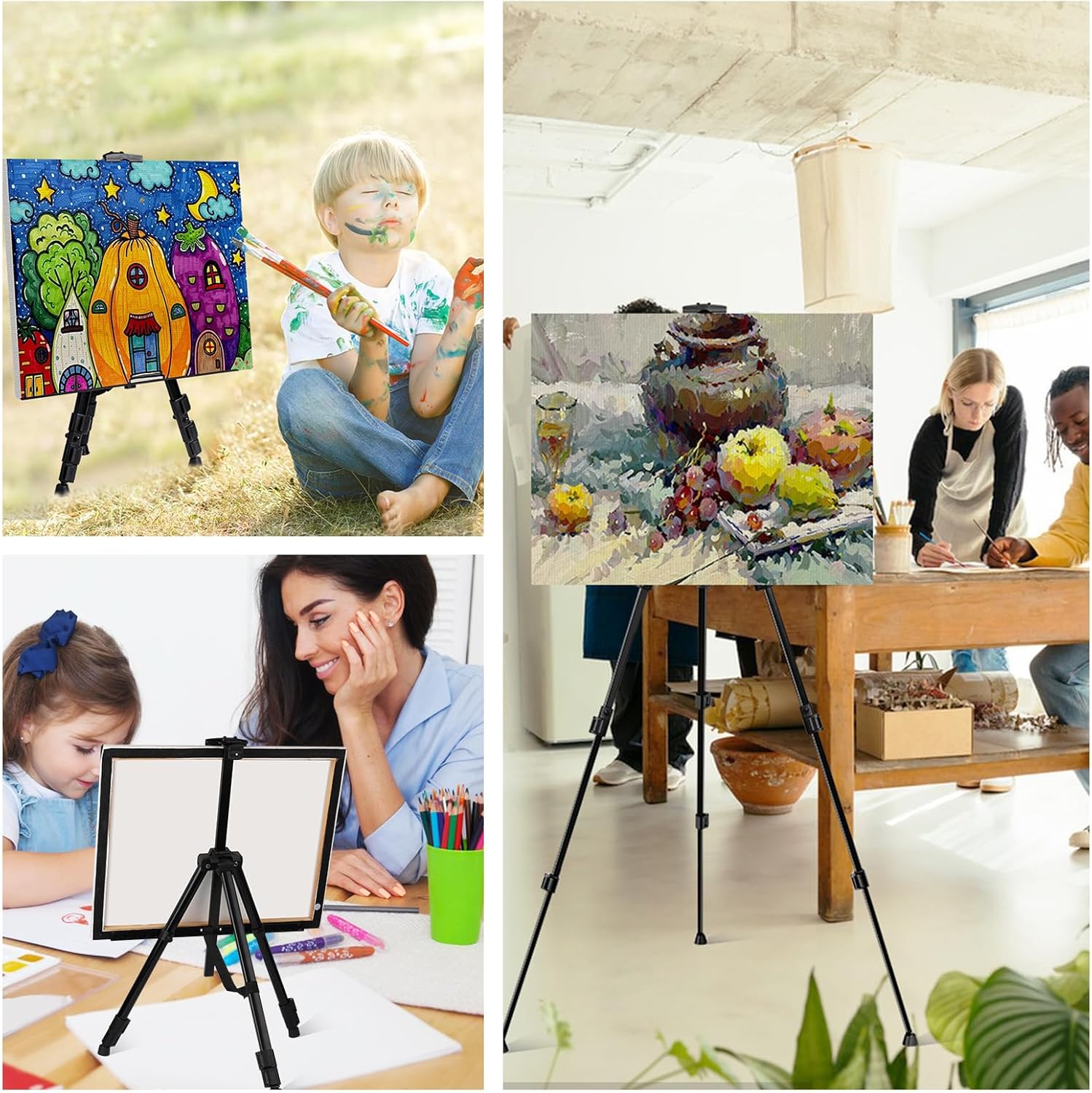Art Painting Display Easel Stands - Portable Adjustable Aluminum Metal Tripod Artist Easels with Bags, Extra Sturdy for Table-Top/Floor Painting, Drawing, and Displaying, Black 4 Pack