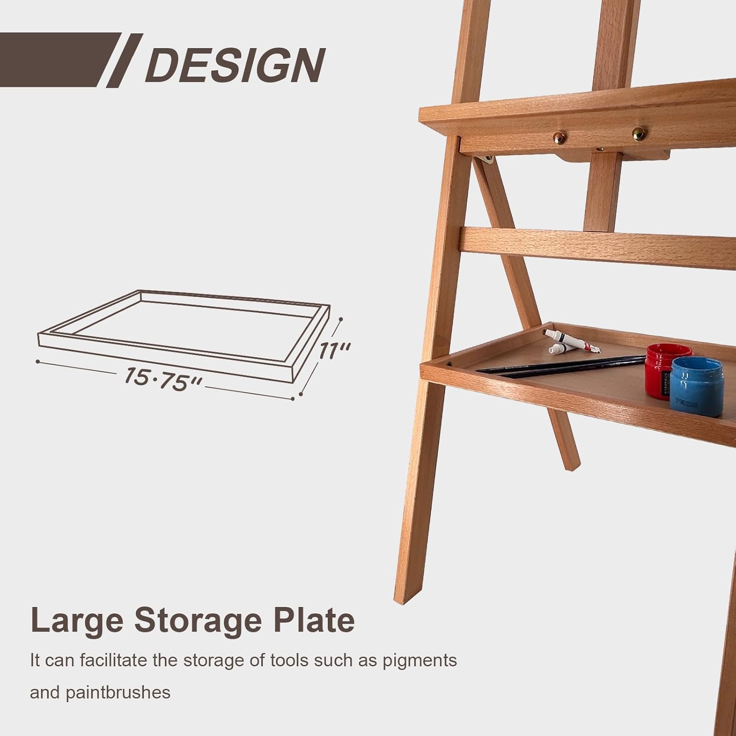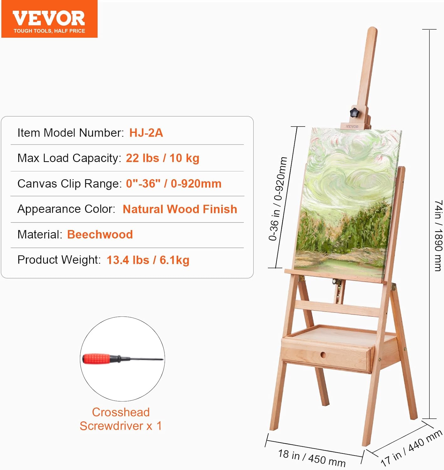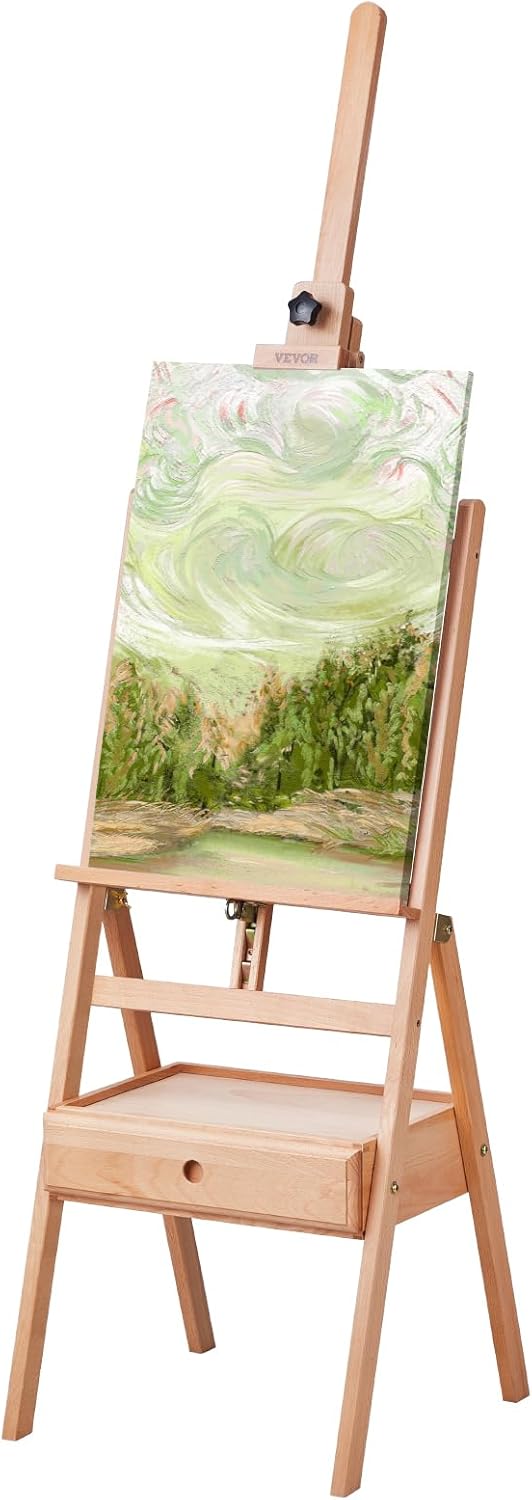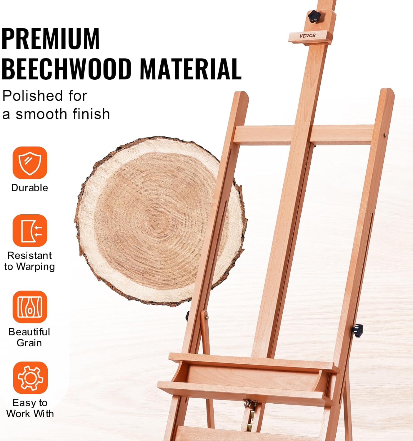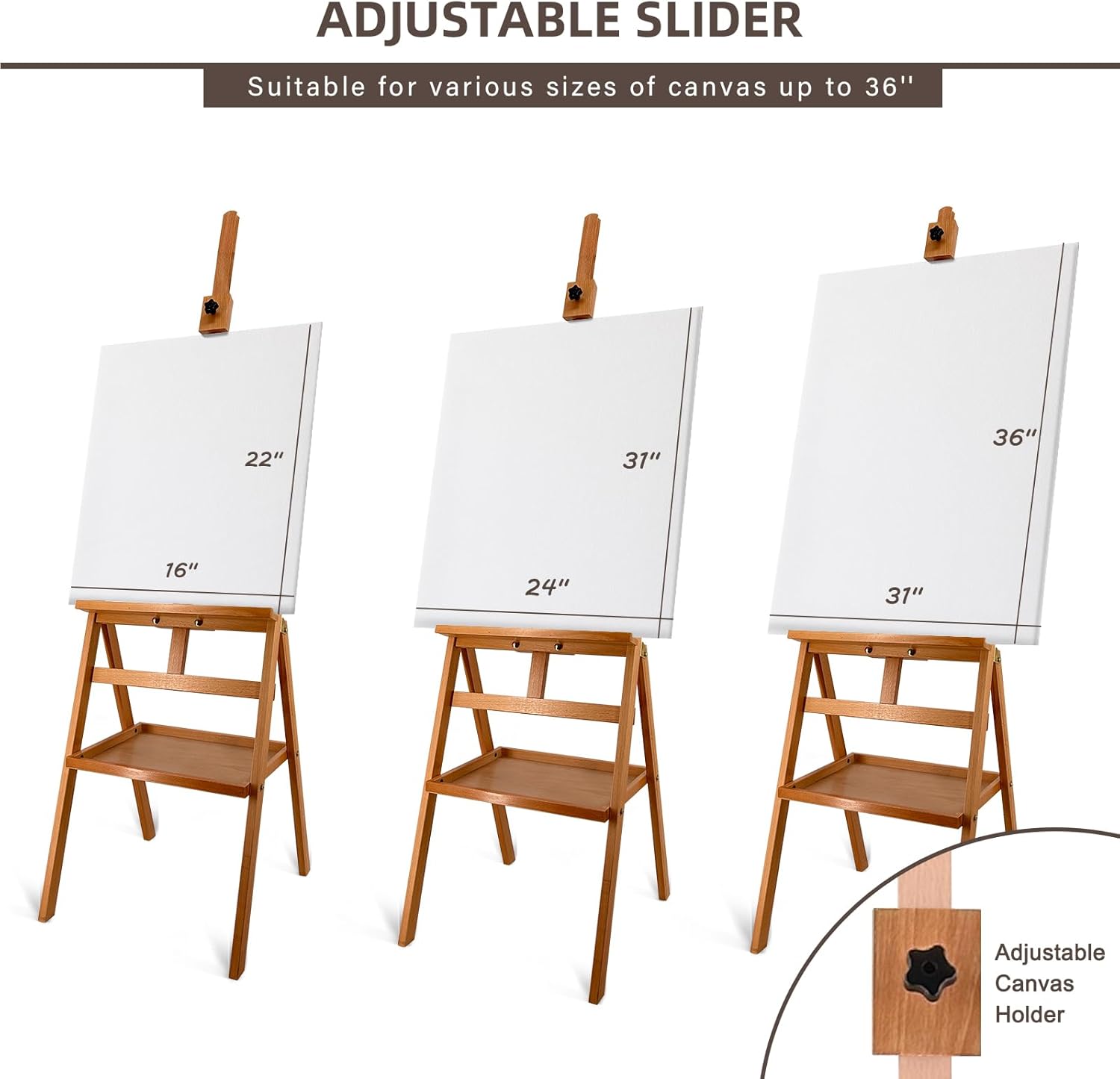 Large Solid Beech Wood Painting Easel with Storage Drawer(60"~75" H), H-Frame Adjustable Wooden Easel Stand with Signature Box for Adults, Students,Sturdy Canvas Holder up to 36''