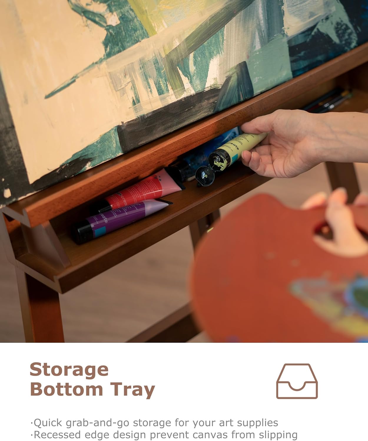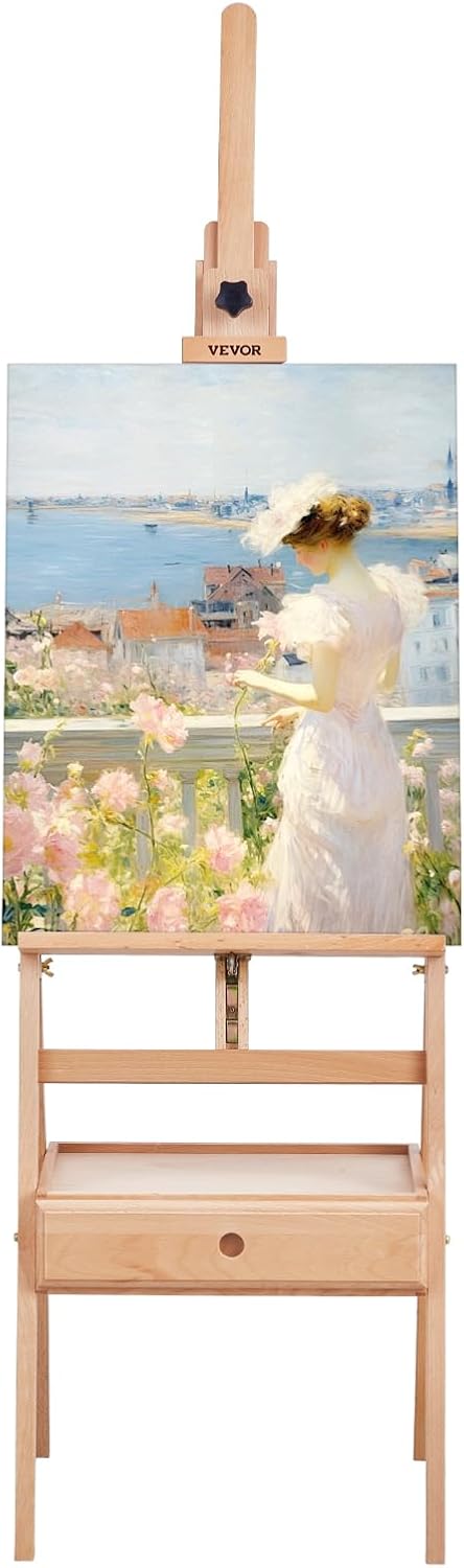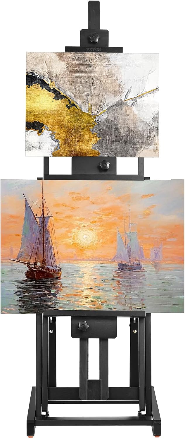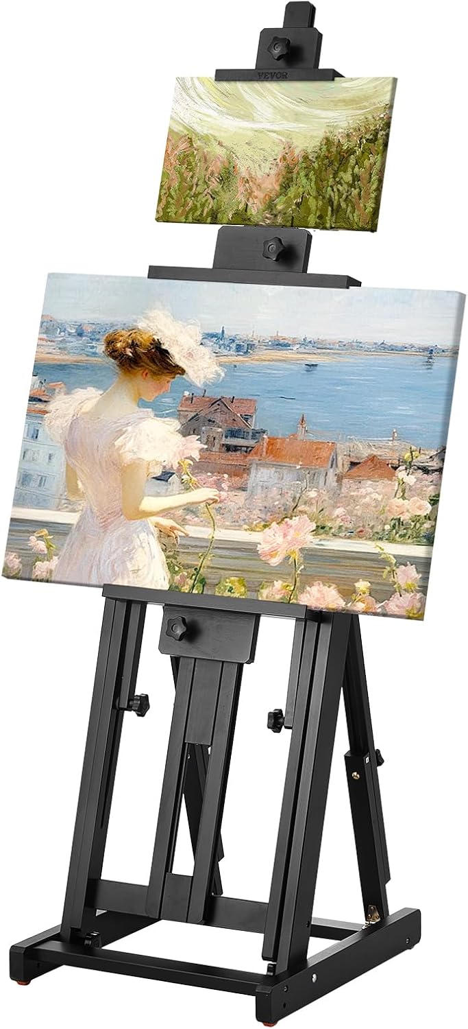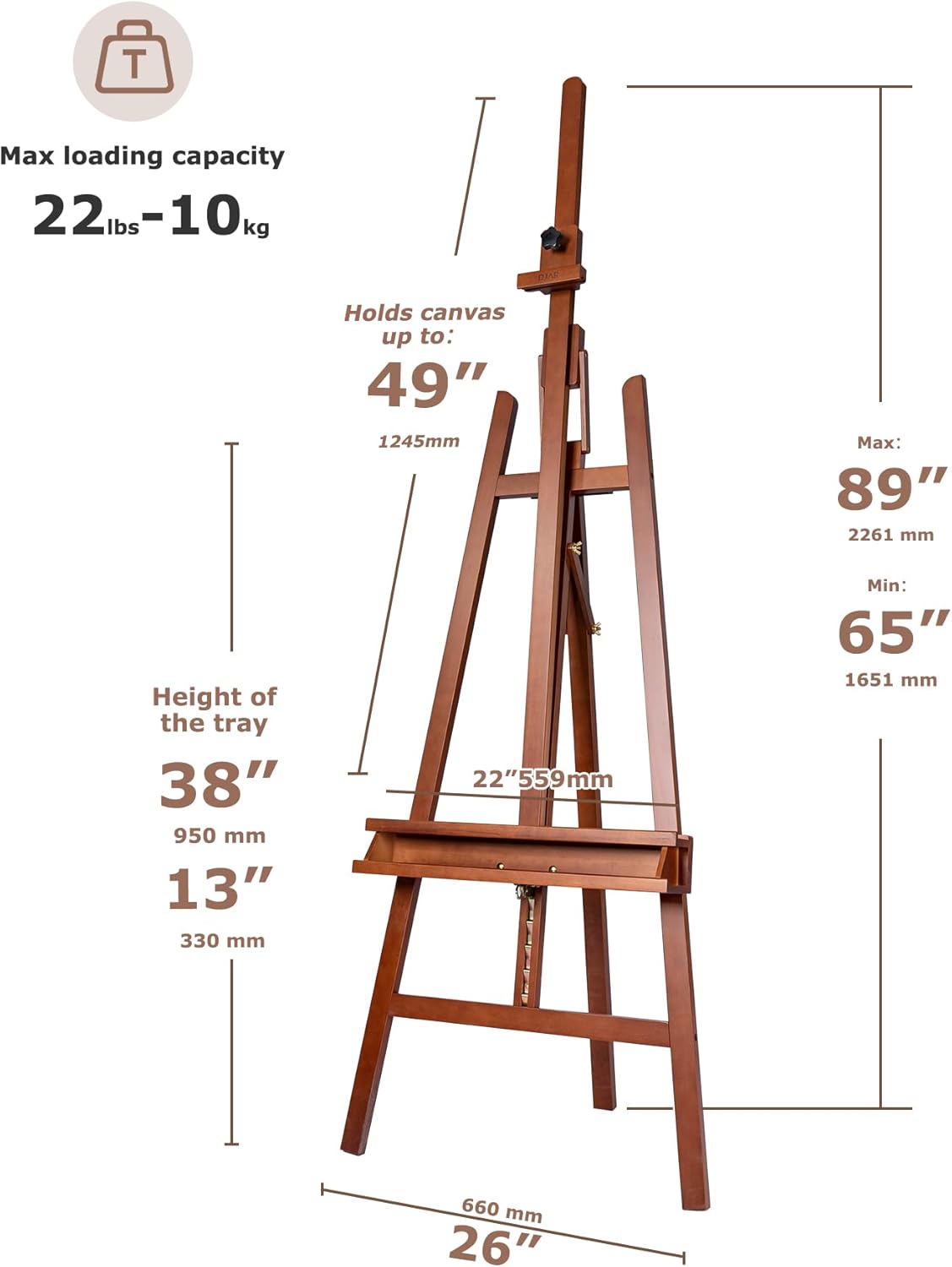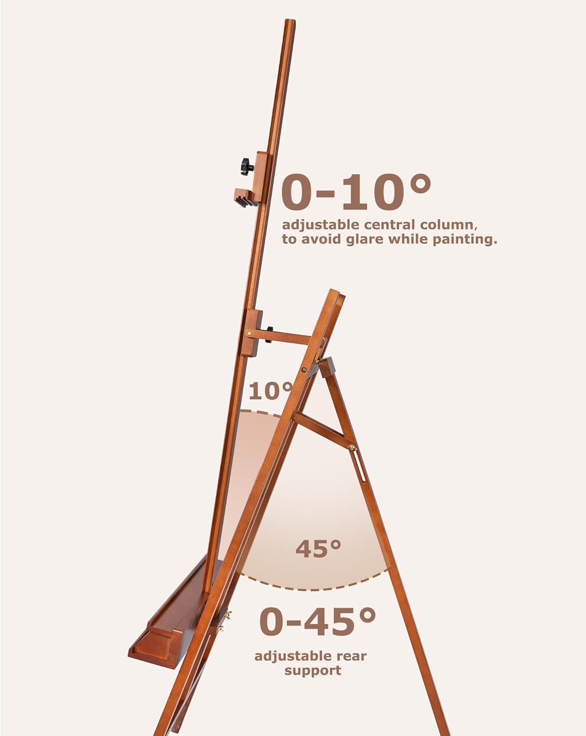 Large Solid Beech Wood Painting Easel with Storage Drawer(60"~75" H), H-Frame Adjustable Wooden Easel Stand with Signature Box for Adults, Students,Sturdy Canvas Holder up to 36''