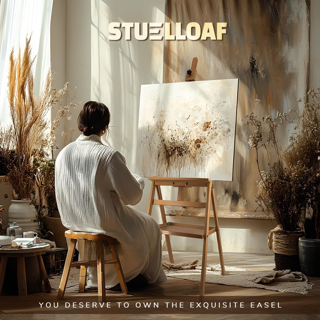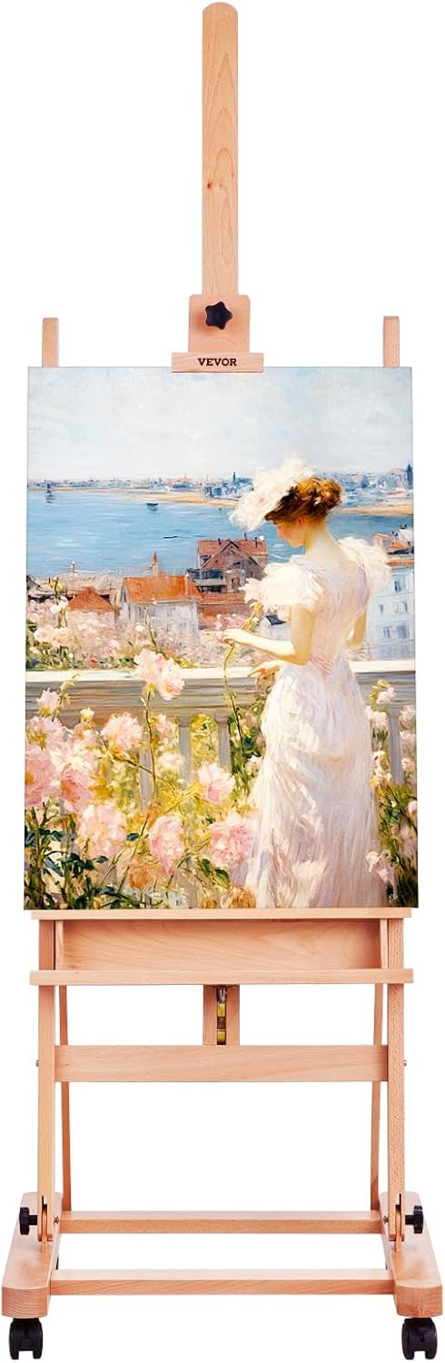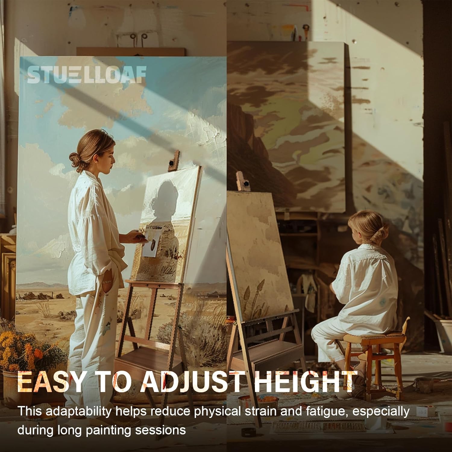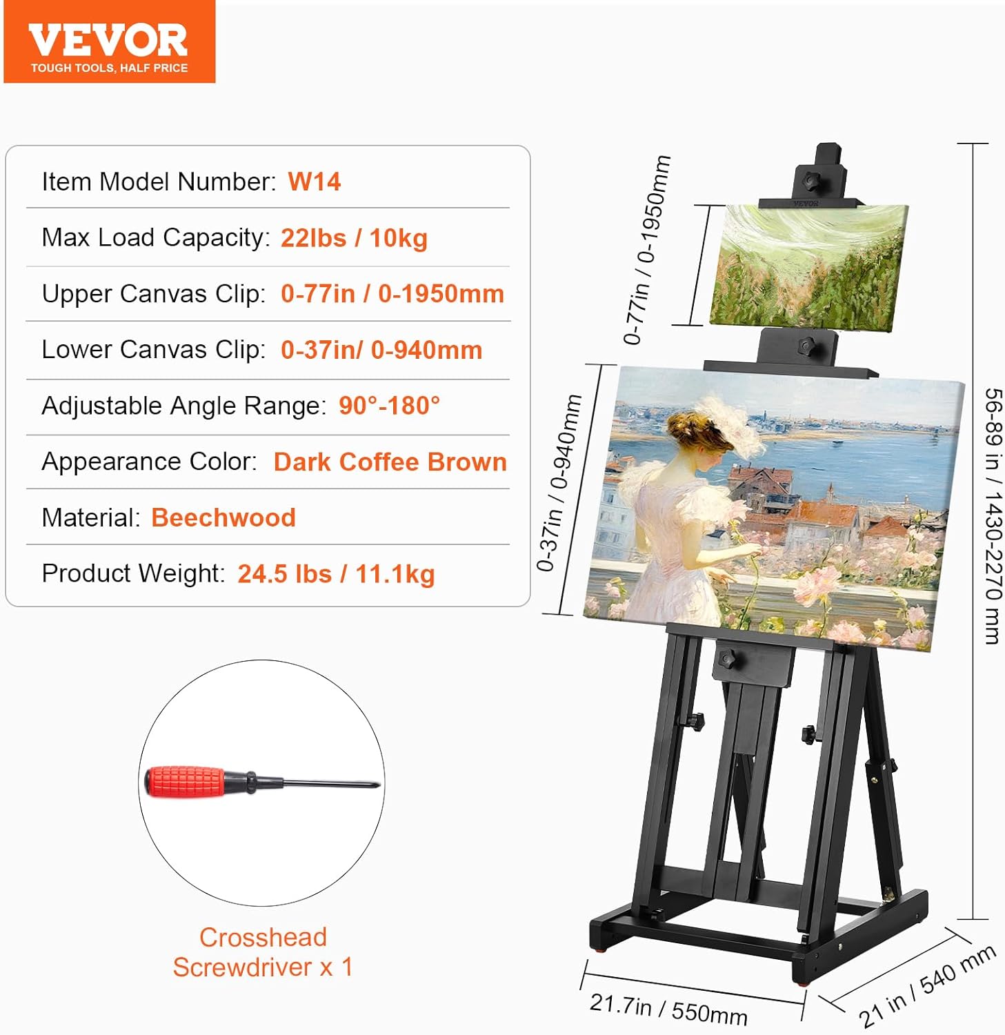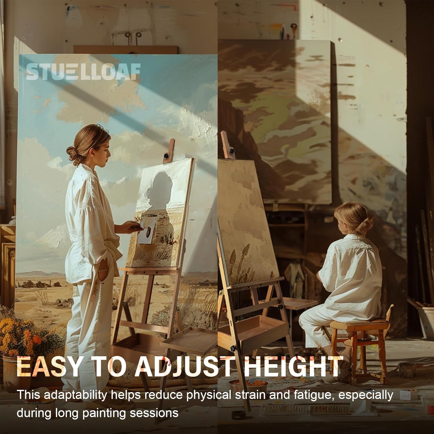 Large Solid Beech Wood Painting Easel with Storage Drawer(60"~75" H), H-Frame Adjustable Wooden Easel Stand with Signature Box for Adults, Students,Sturdy Canvas Holder up to 36''