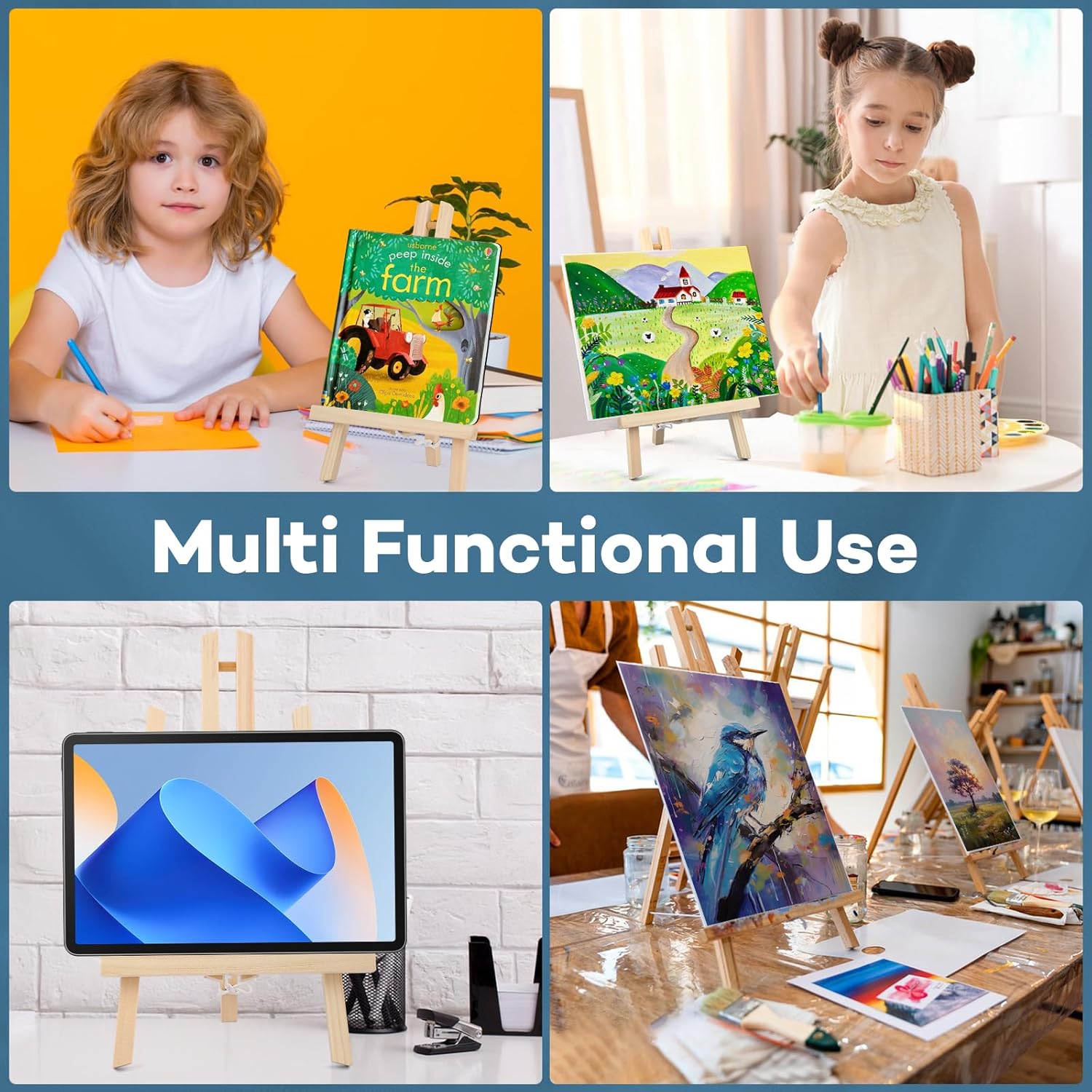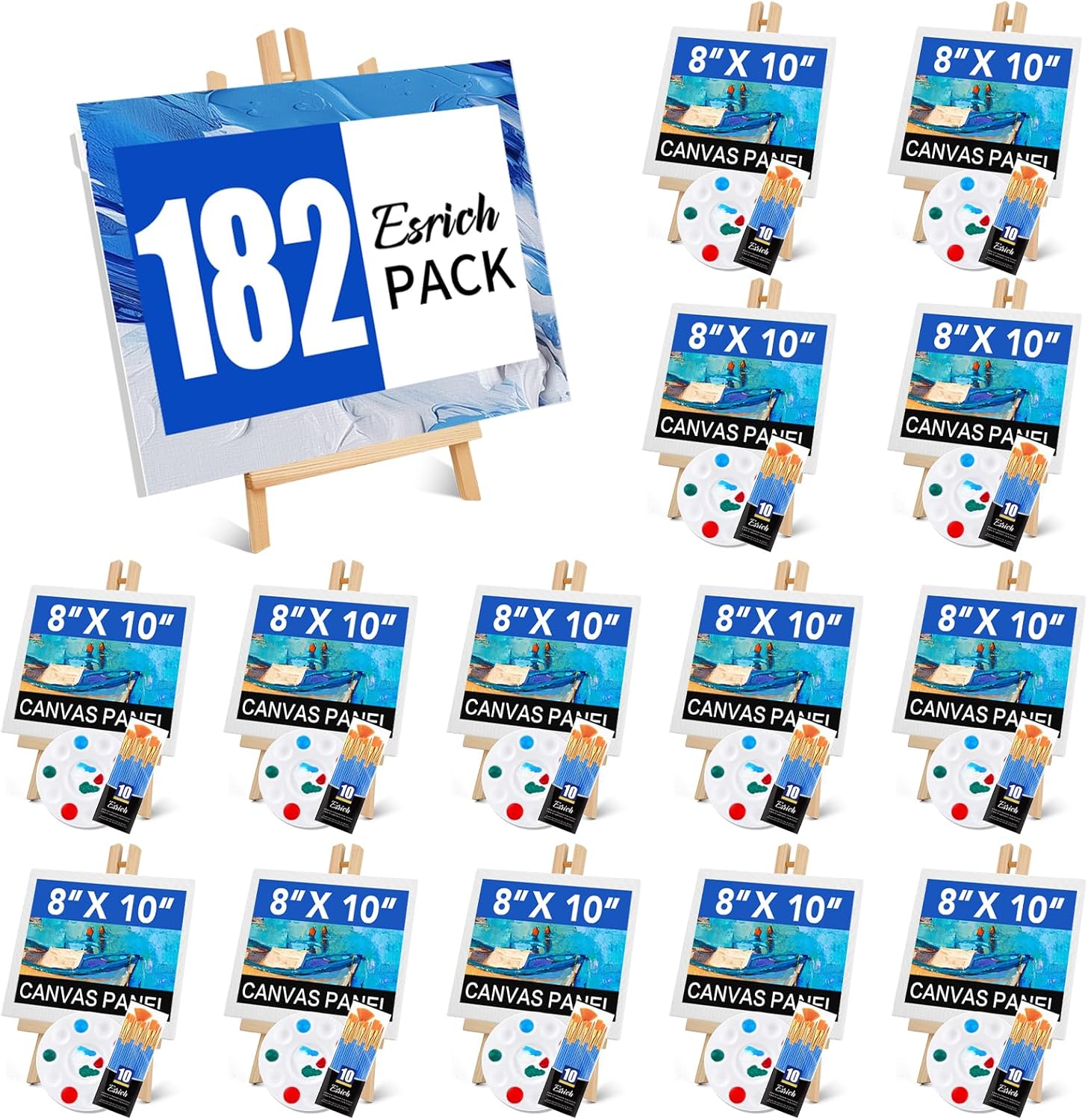 ESRICH 234 Pack Canvas with Easel Set 8 x 10 in Canvas Boards with 11.8 in Wooden Easels, Paint Brushes Canvas Panel Painting Kit for Acrylic Oil Watercolor Beginners Art Crafts Sip and Paint Party