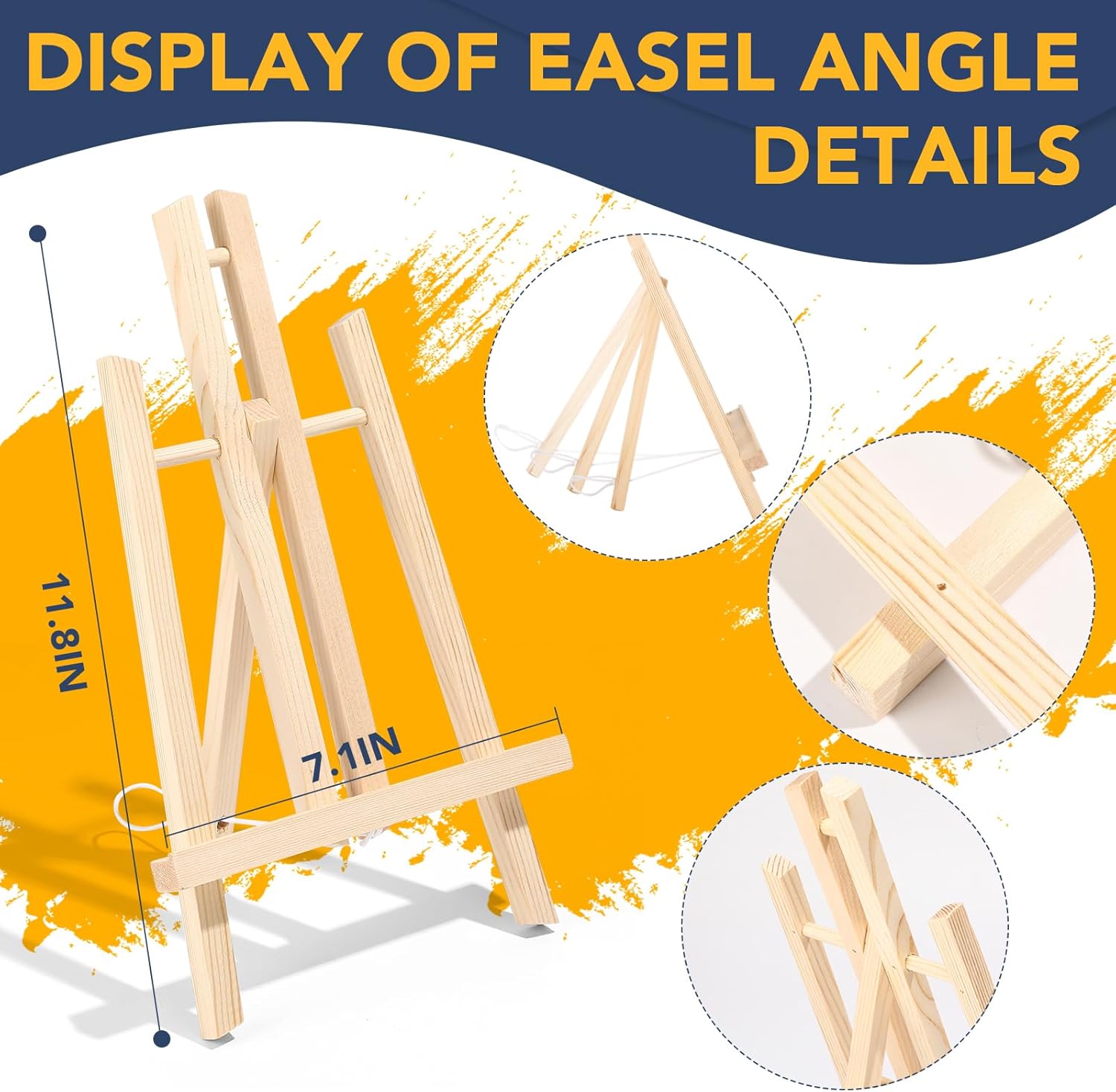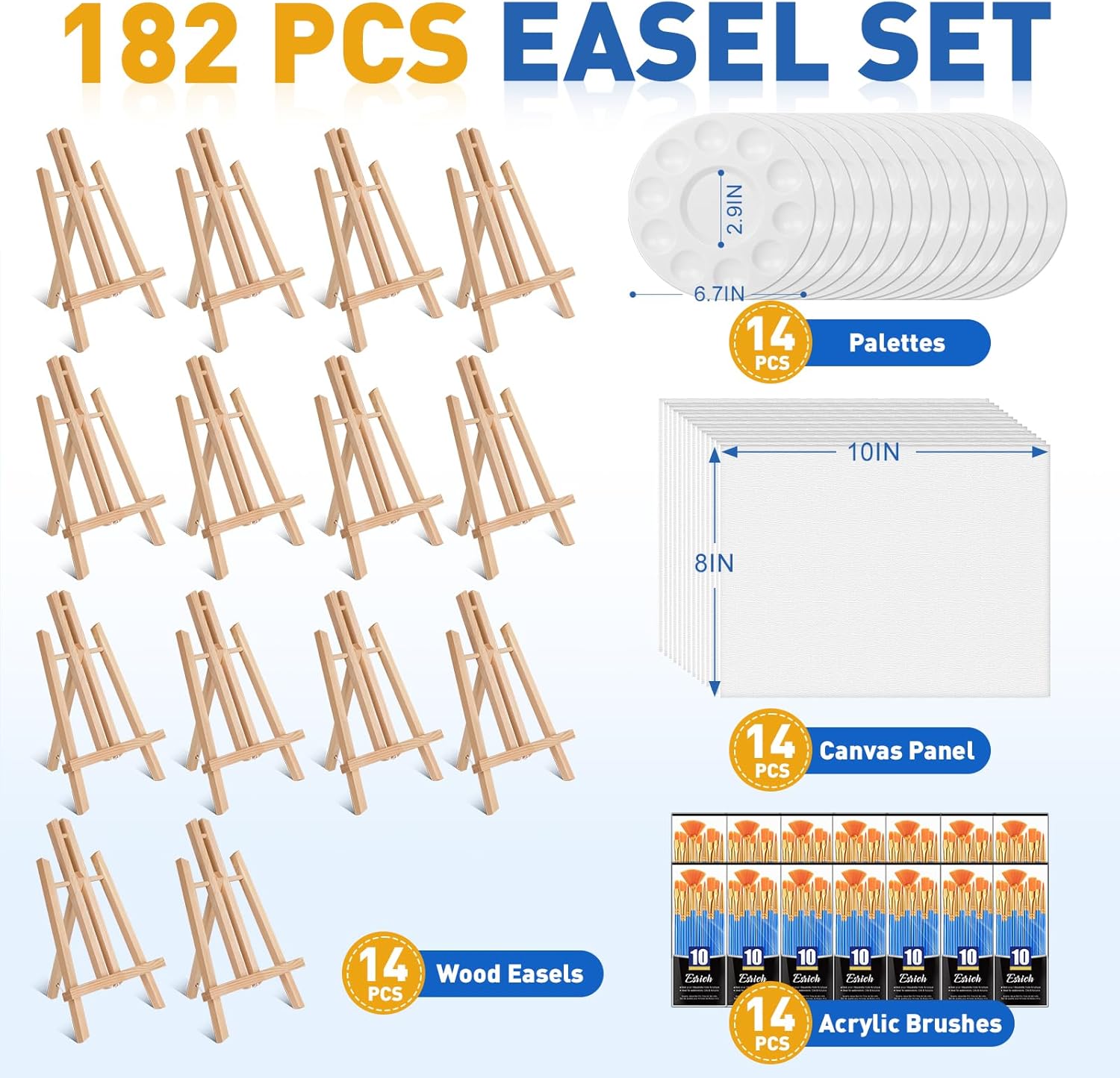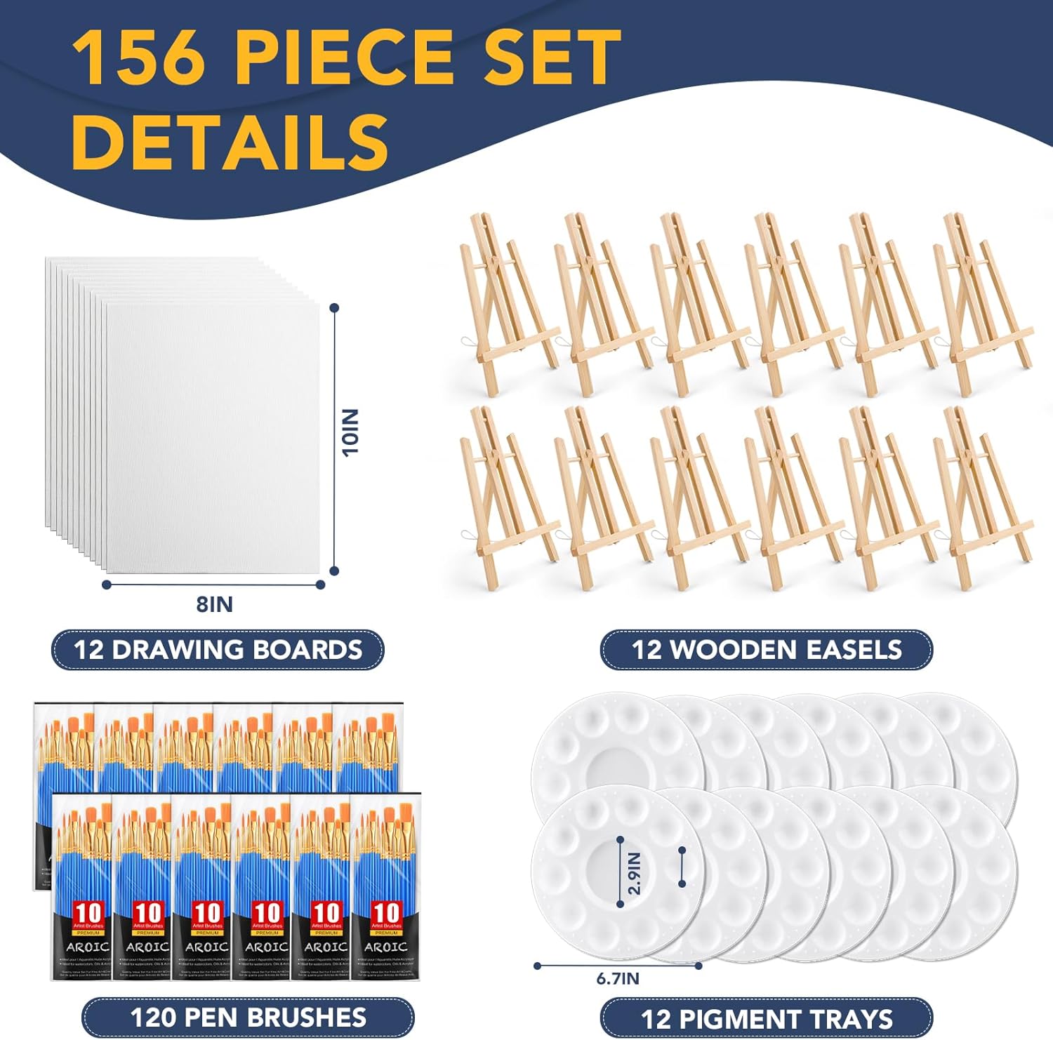 AROIC 260 Pack Easel and Canvas Sets with 20 Wood Easels,200 Brushes,20 Canvas and 20 Palette, Painting Set, Tabletop Easel, Art Easels, Painting Supplies for Kids & Adults to Paint Party