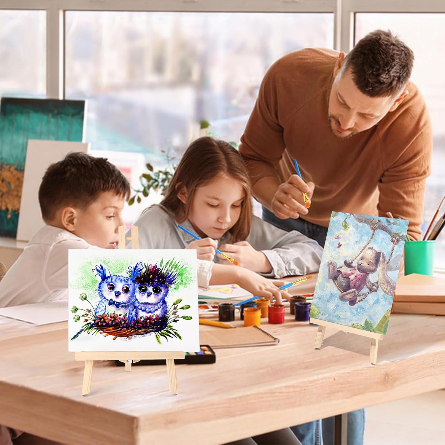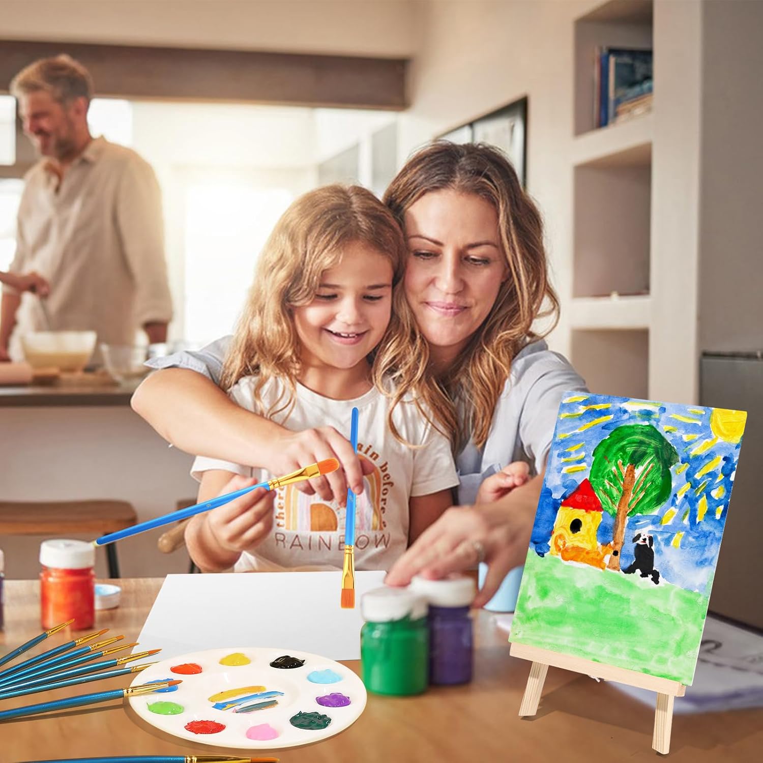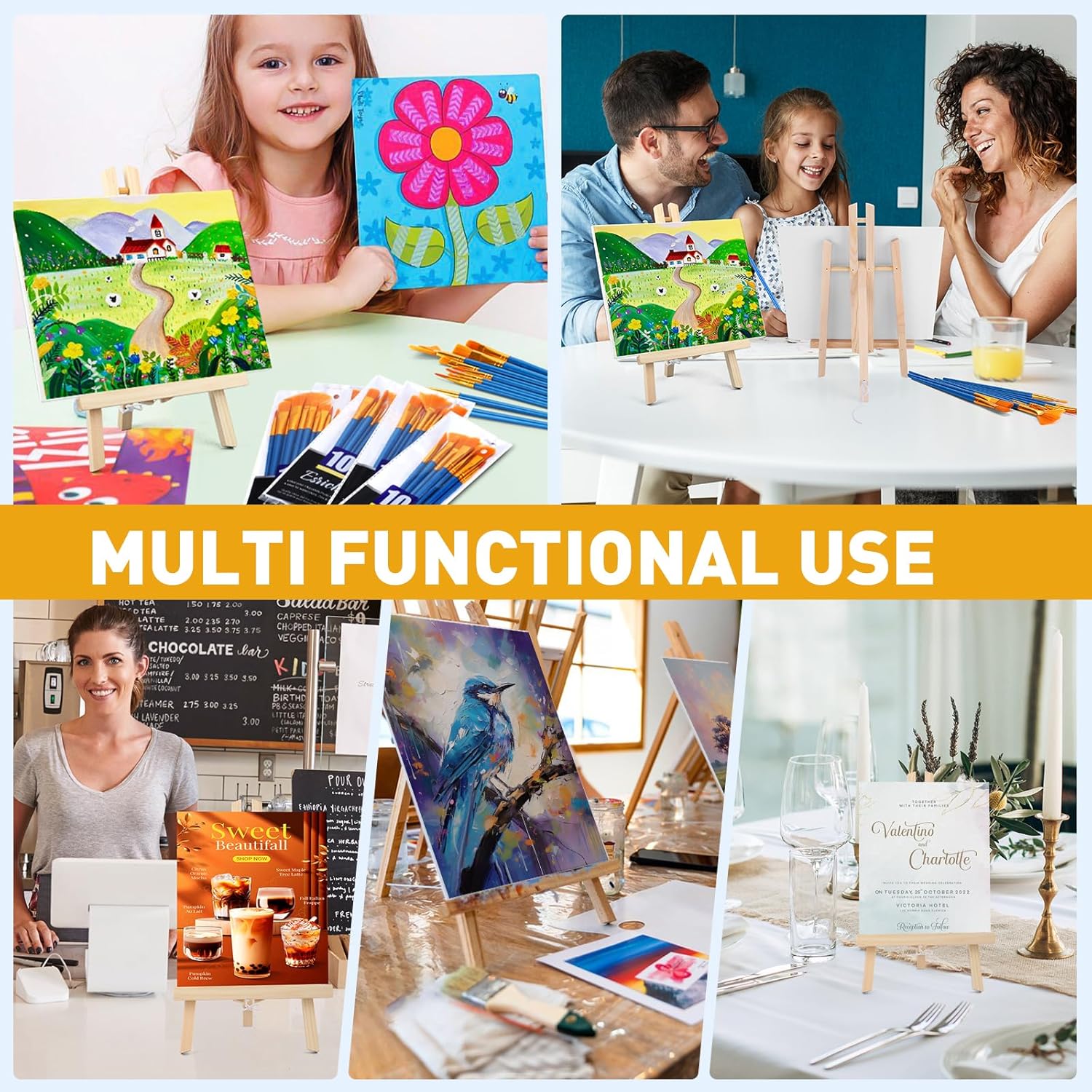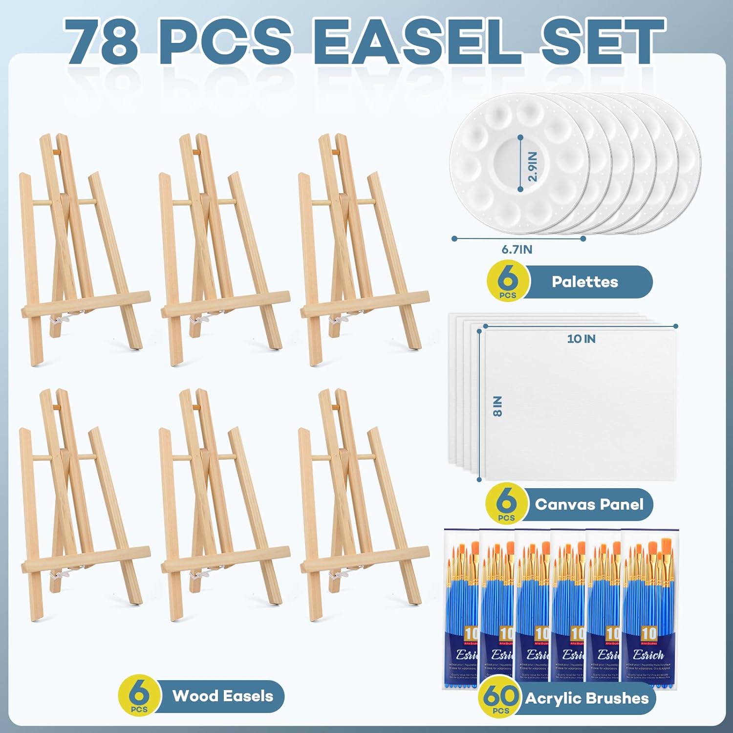 AROIC 260 Pack Easel and Canvas Sets with 20 Wood Easels,200 Brushes,20 Canvas and 20 Palette, Painting Set, Tabletop Easel, Art Easels, Painting Supplies for Kids & Adults to Paint Party