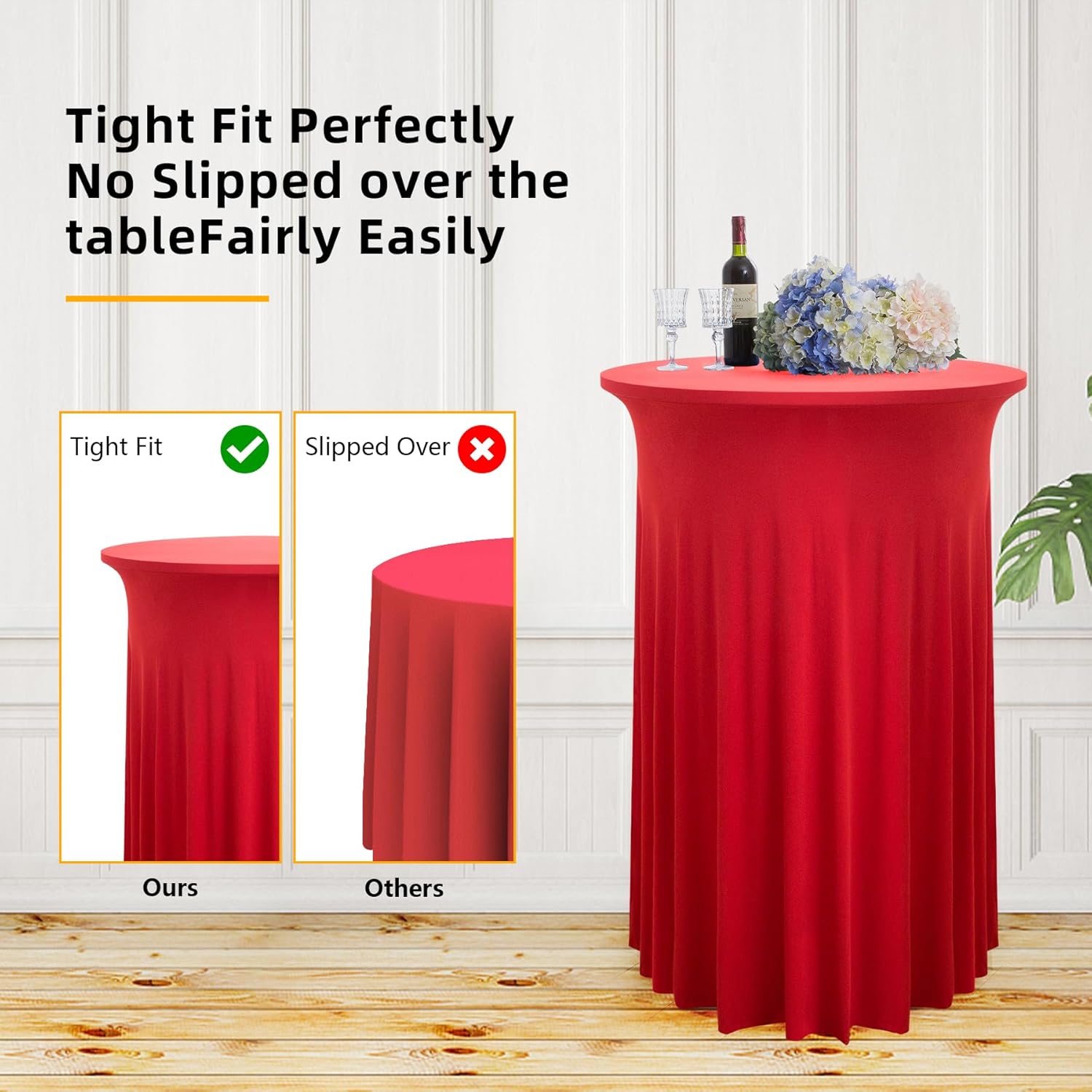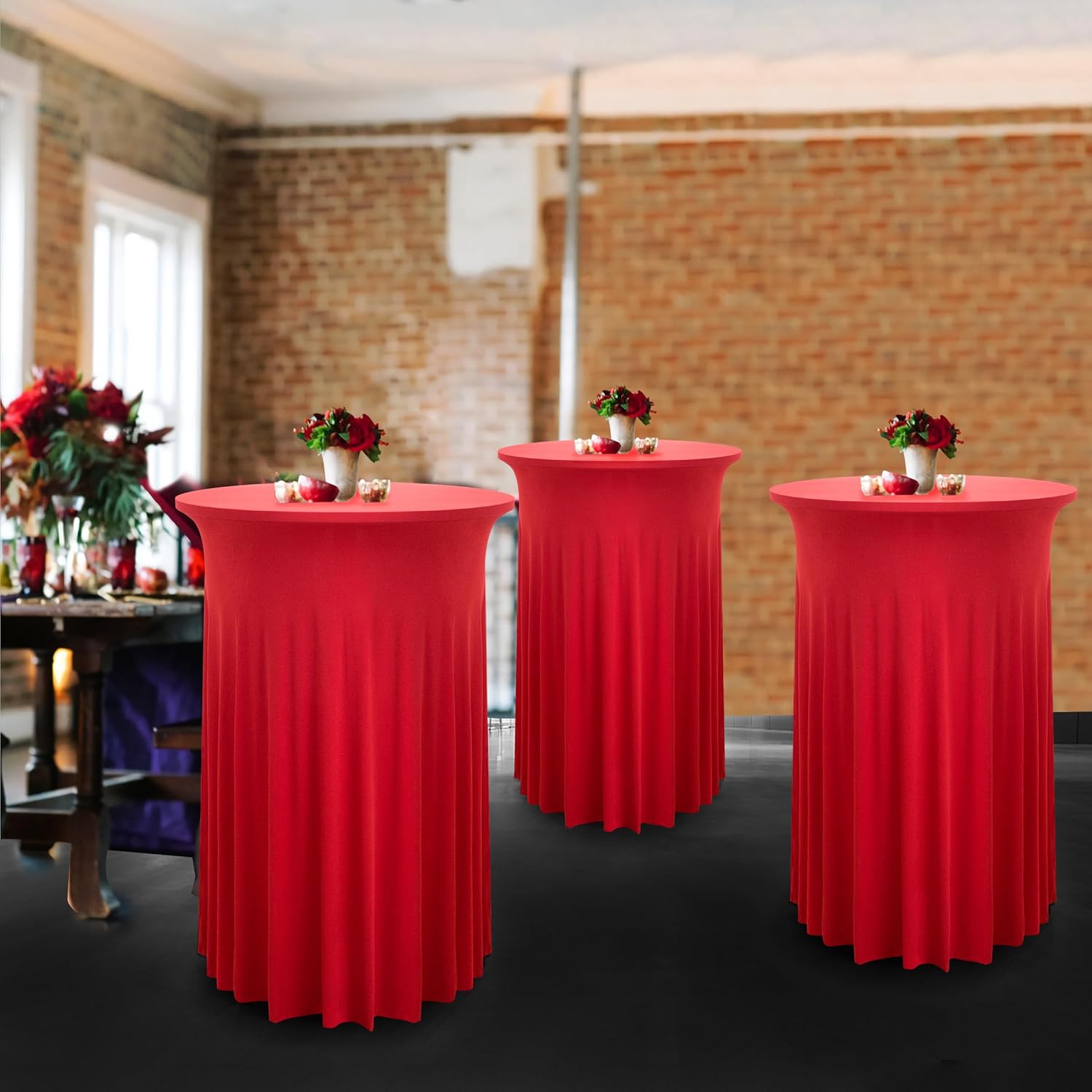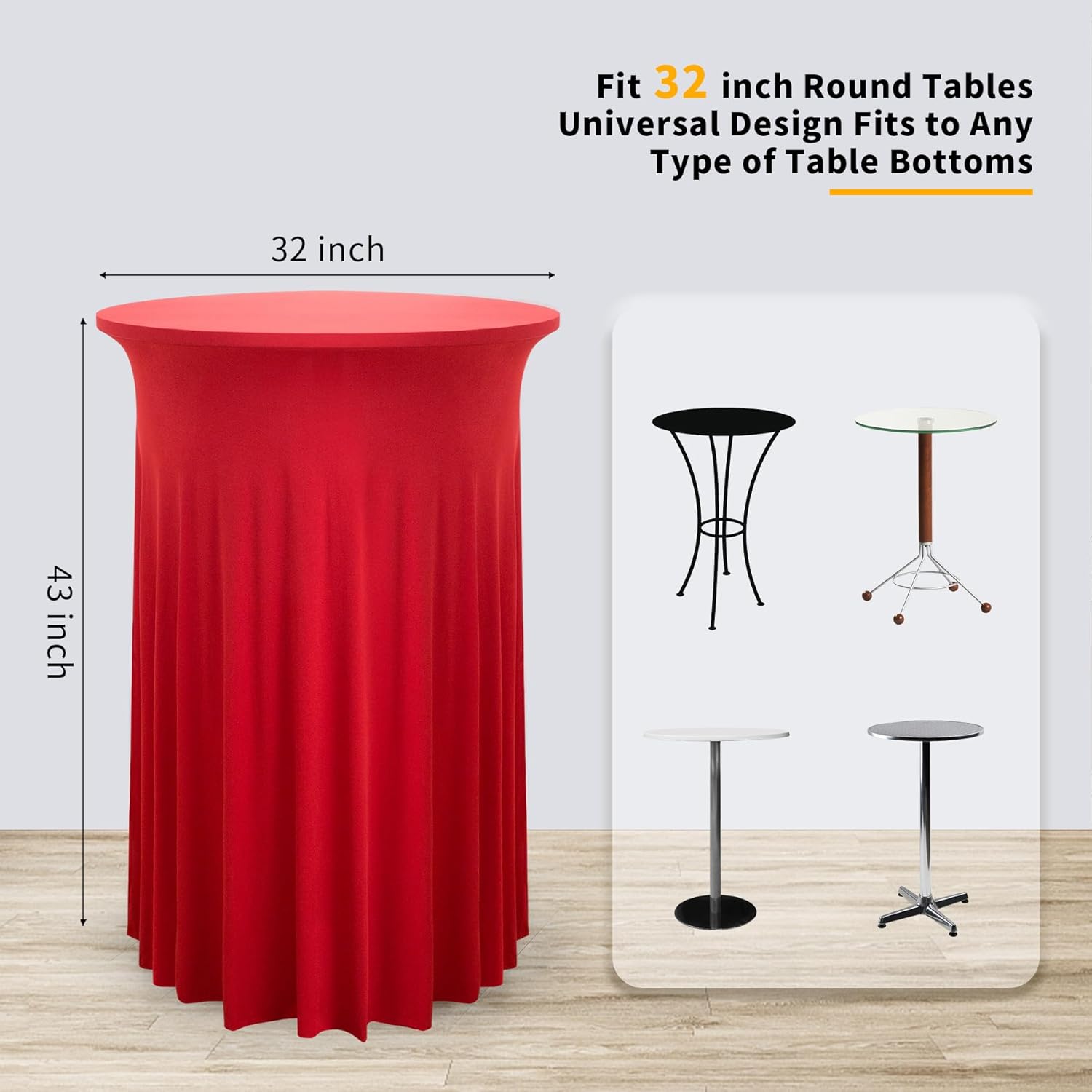 6 Pack Red Round High Top Table Cloth 3243 Inch, Wrinkle Free Stretch Spandex Highboy Tablecloths With Skirt for Cocktail Party Banquet Birthday Bar