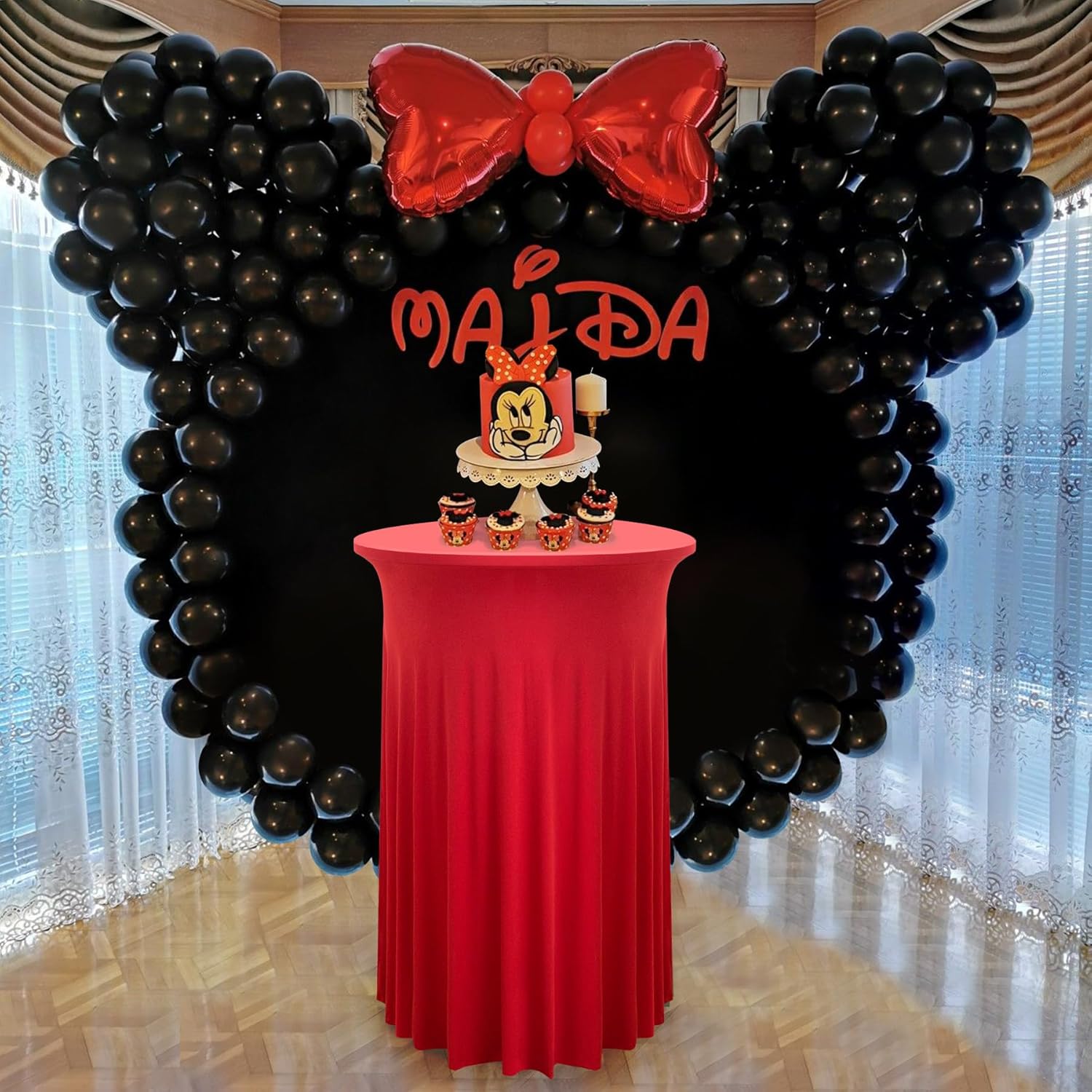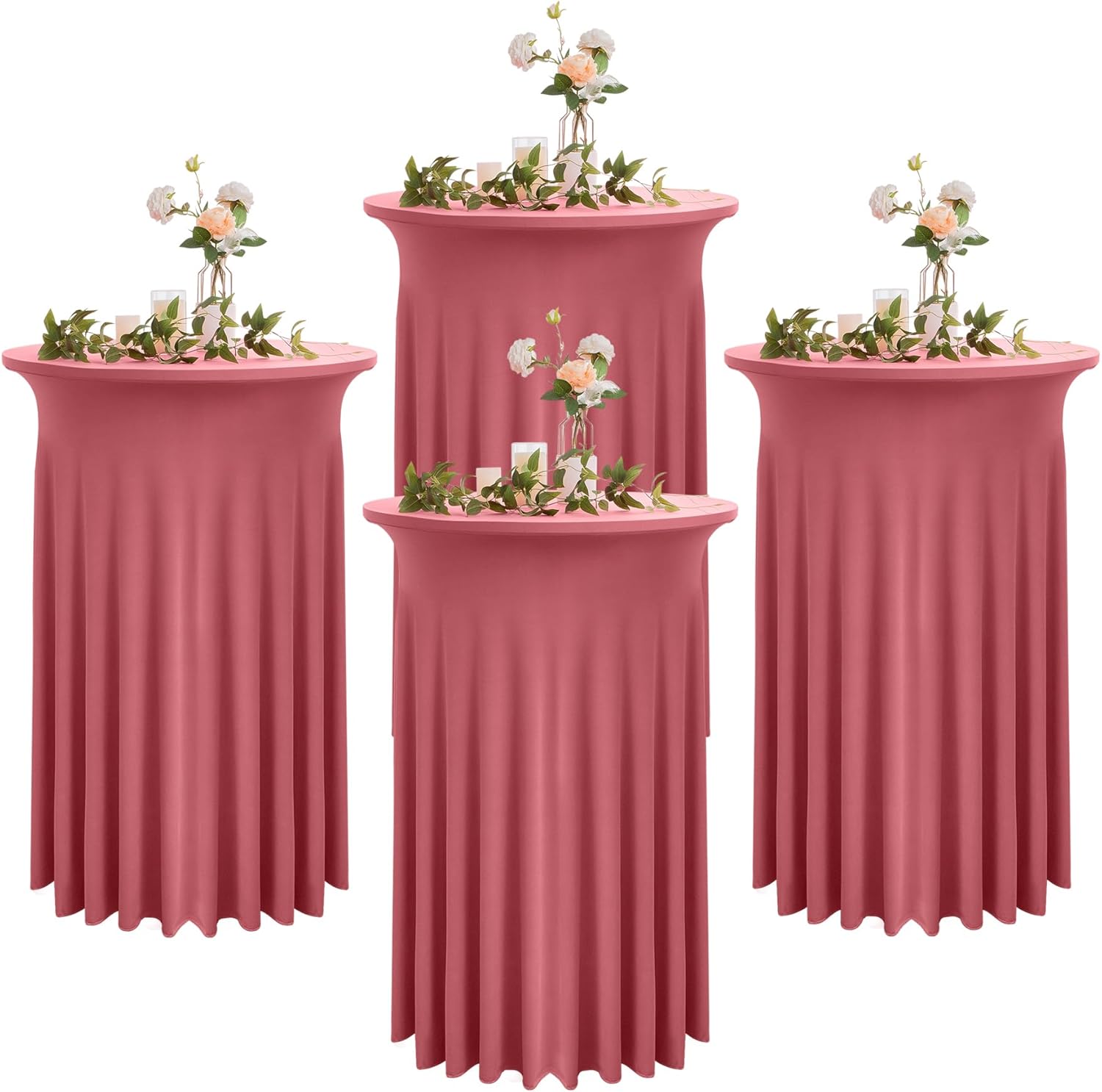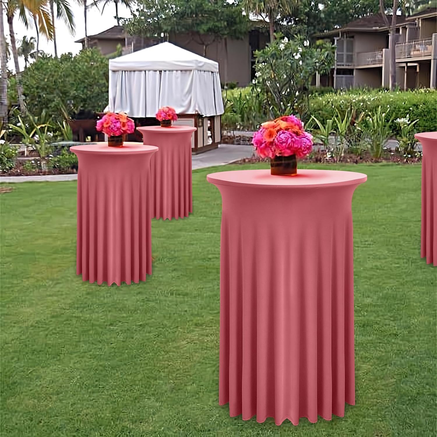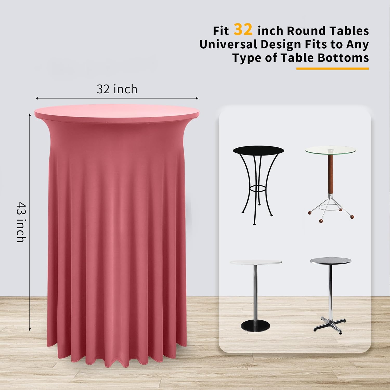6 Pack Red Round High Top Table Cloth 3243 Inch, Wrinkle Free Stretch Spandex Highboy Tablecloths With Skirt for Cocktail Party Banquet Birthday Bar