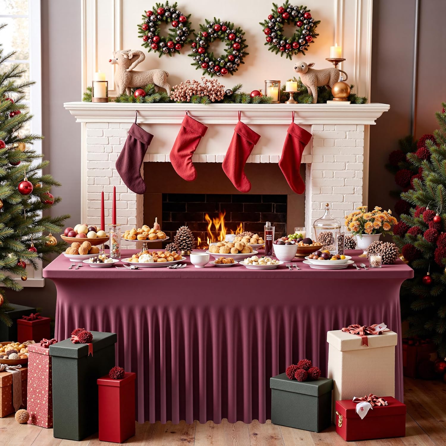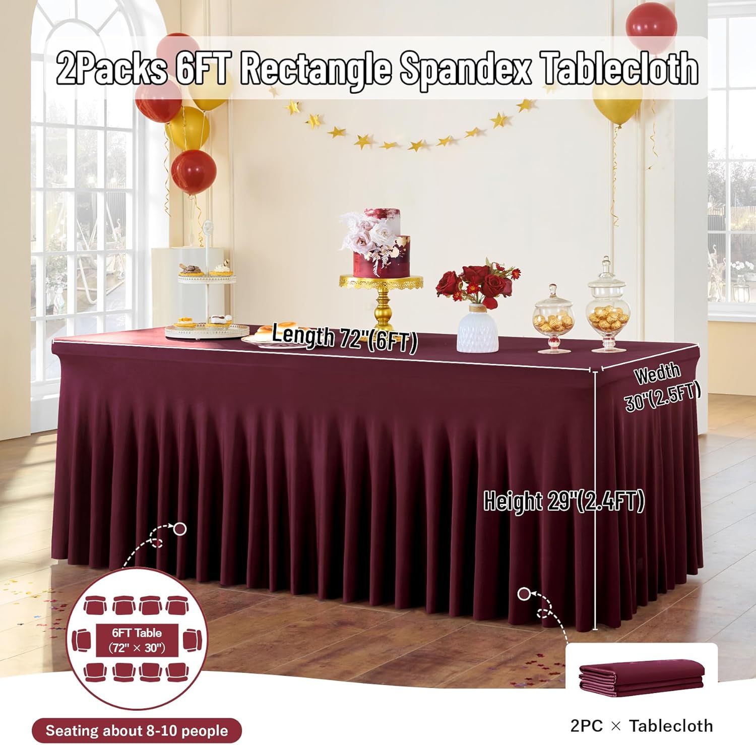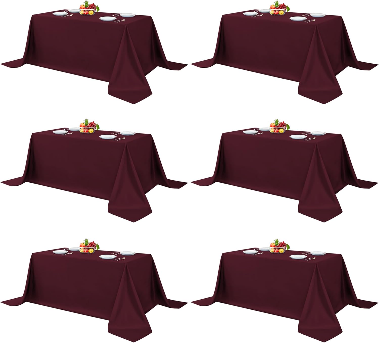 Fitable 6 Pack Burgundy Tablecloths for Round Tables - 108 Inches in Diameter - Stain Resistant and Washable Table Clothes, Polyester Fabric Table Covers for Wedding, Party, Banquet, Formal Events