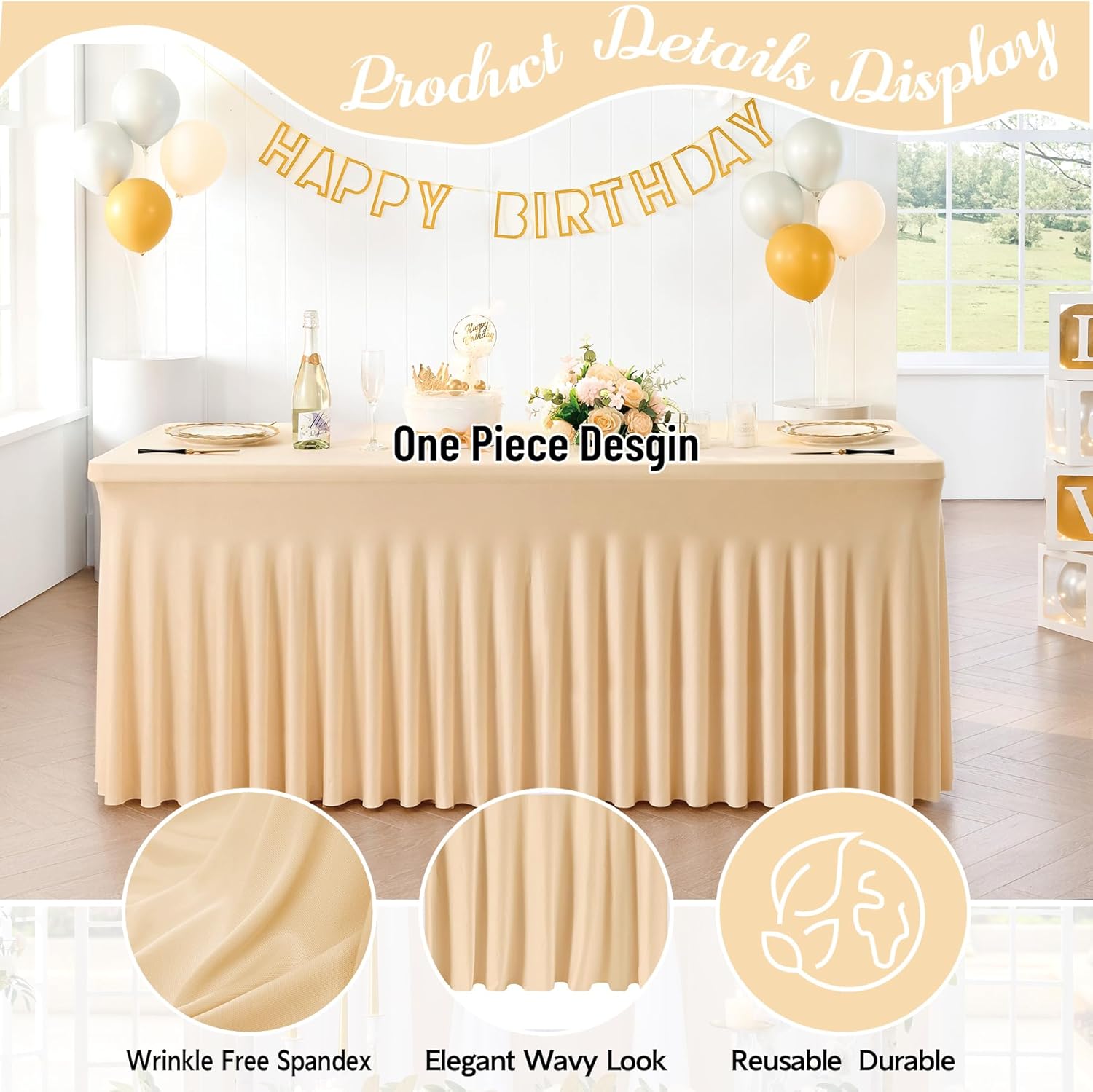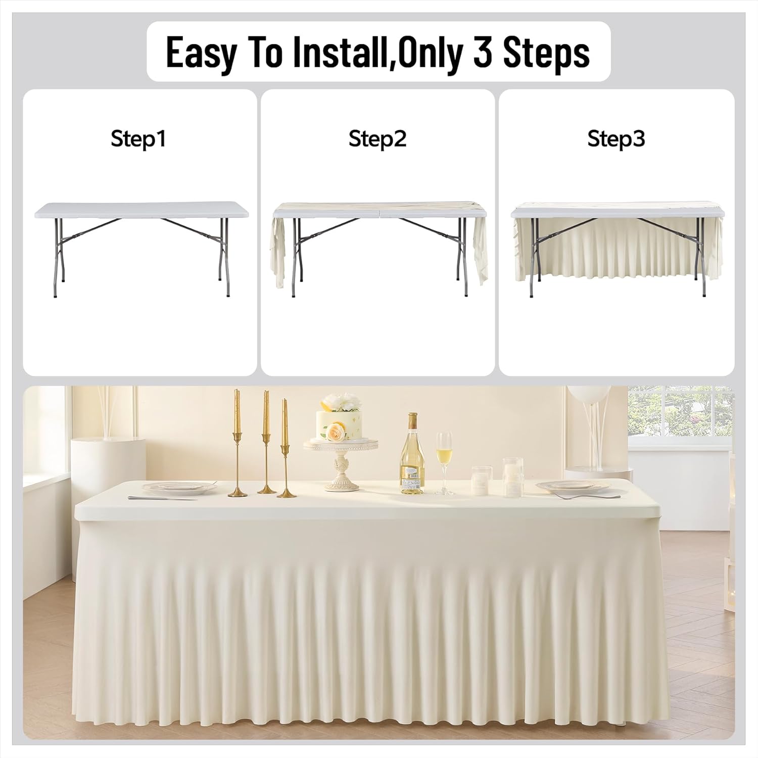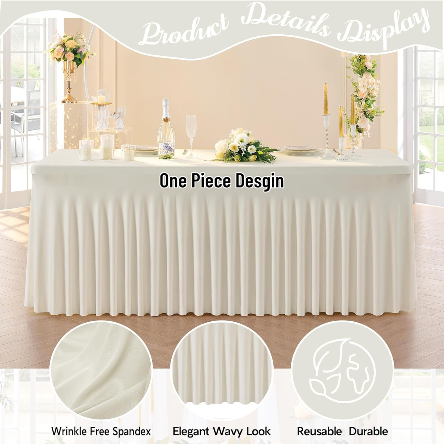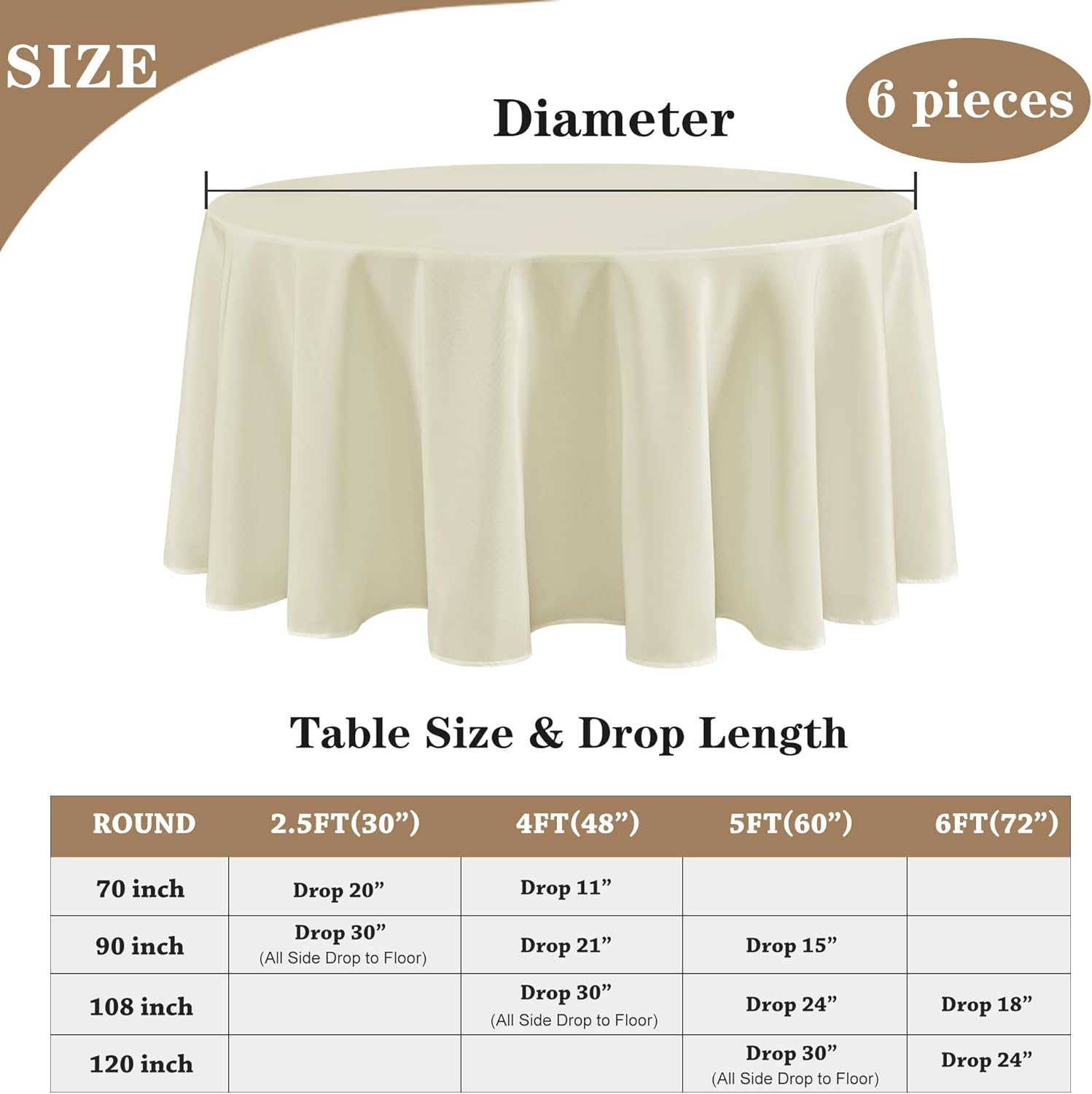 Fitable 6 Pack Ivory Tablecloths for Round Tables-108 Inches in Diameter-Stain Resistant and Washable Table Clothes,Polyester Fabric Covers Wedding,Party,Banquet,Formal Events (130g-QW6P-108Ivory)
