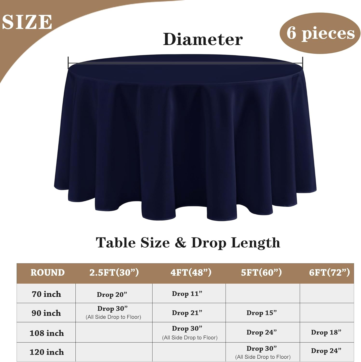 Fitable 6 Pack Navy Tablecloths for Round Tables - 108 Inches in Diameter - Stain Resistant and Washable Table Clothes, Polyester Fabric Table Covers for Wedding, Party, Banquet, Formal Events