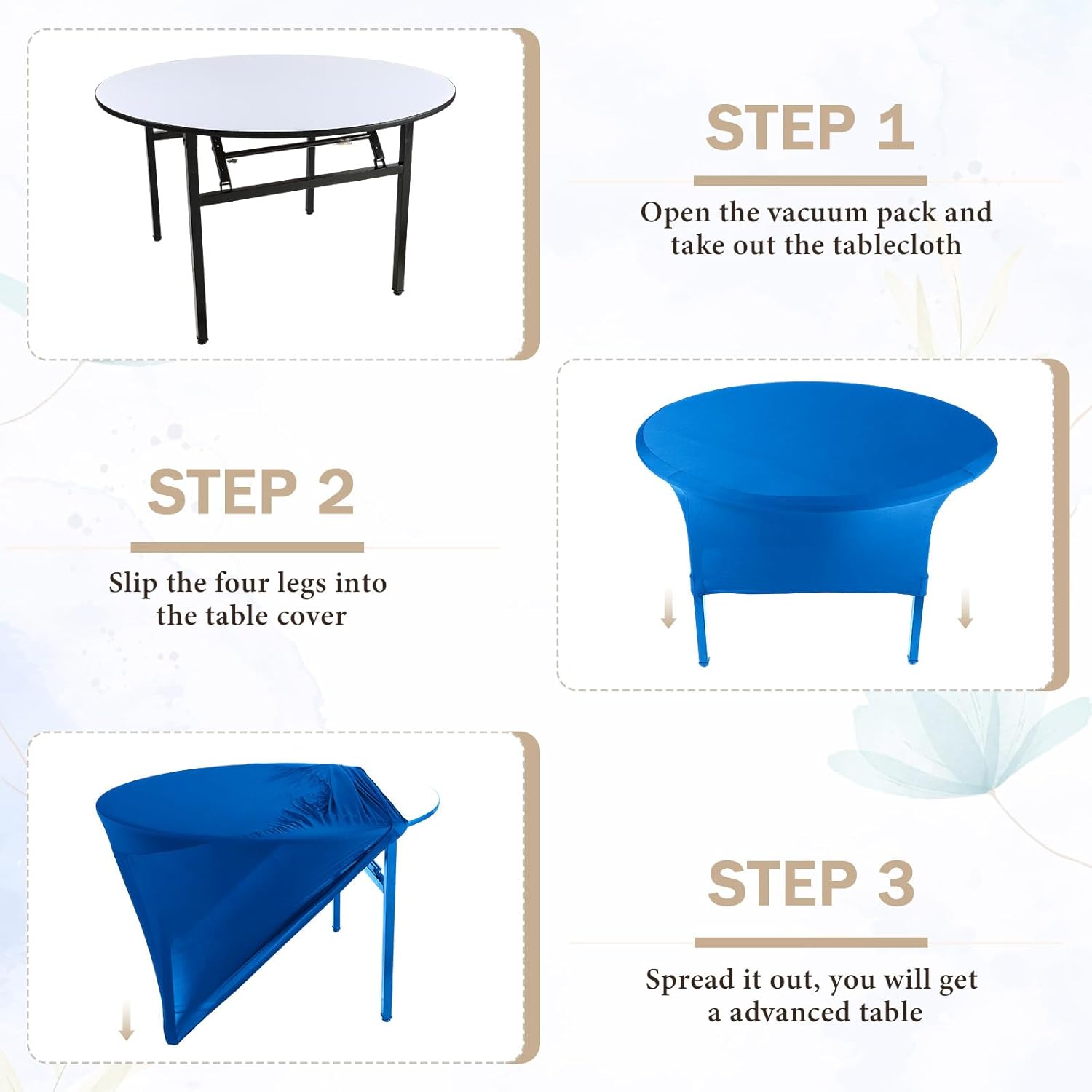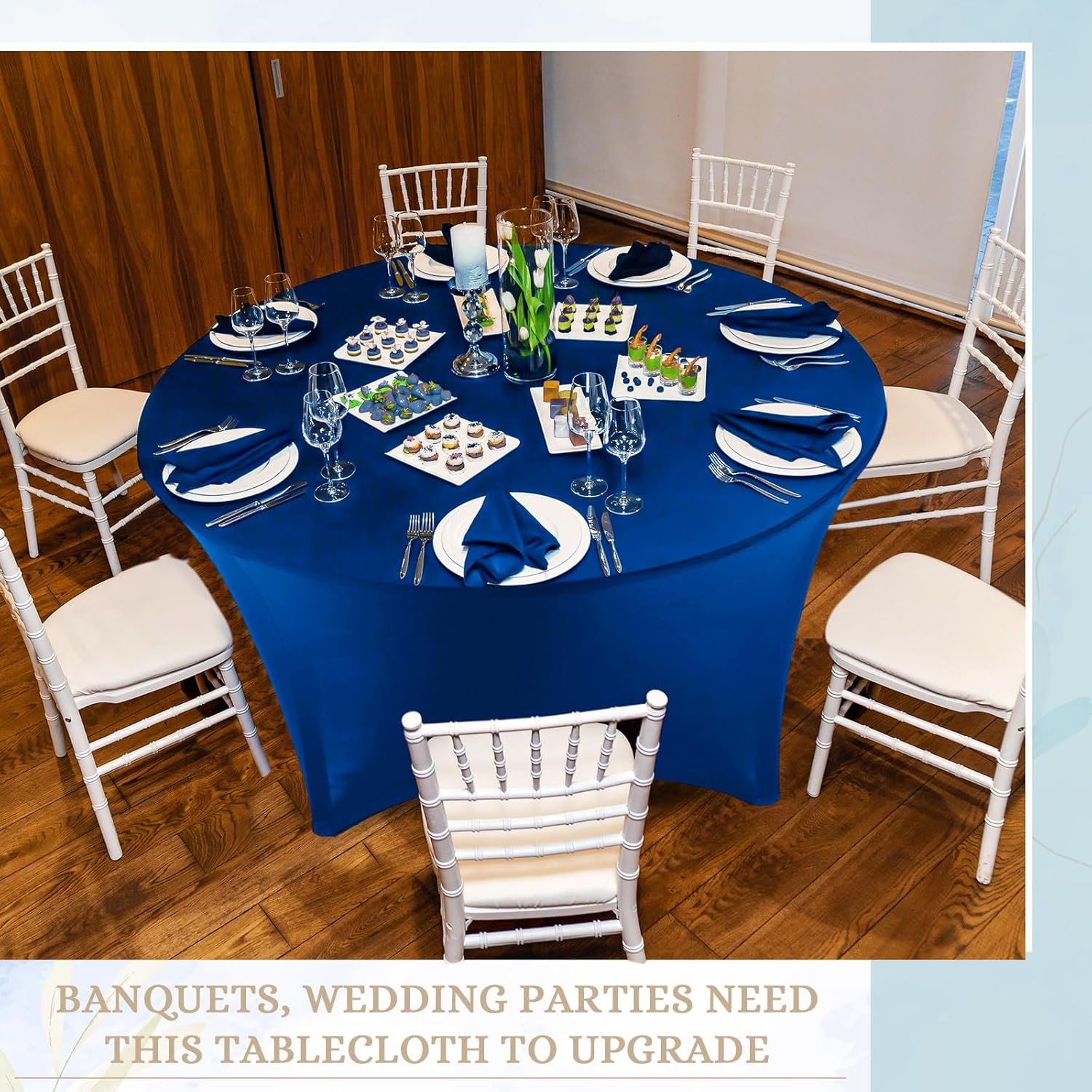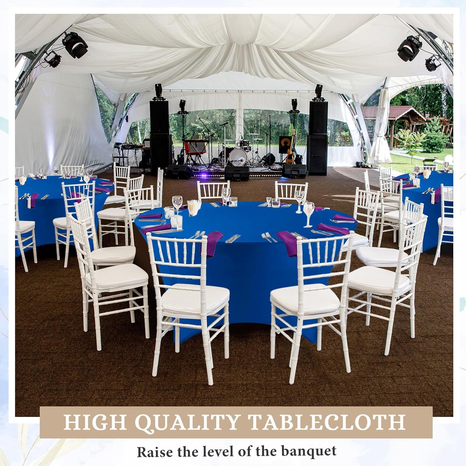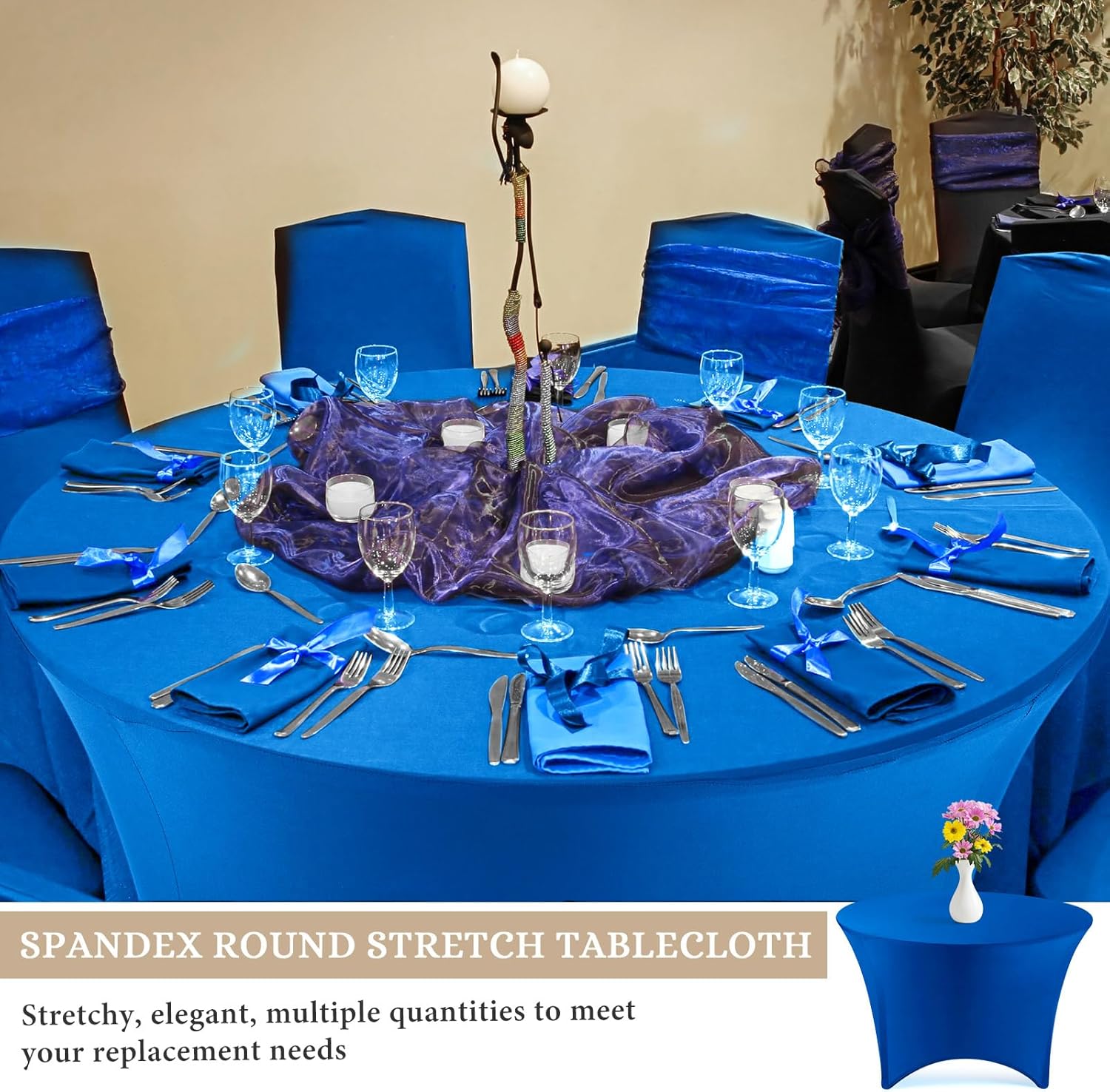 Preboun 8 Pack 72 Inch/ 6 FT Spandex Round Tablecloth Fitted Stretch Tablecloth Elastic Table Cover for Wedding Party Restaurant Banquet Cocktail and Halloween(Royal Blue)