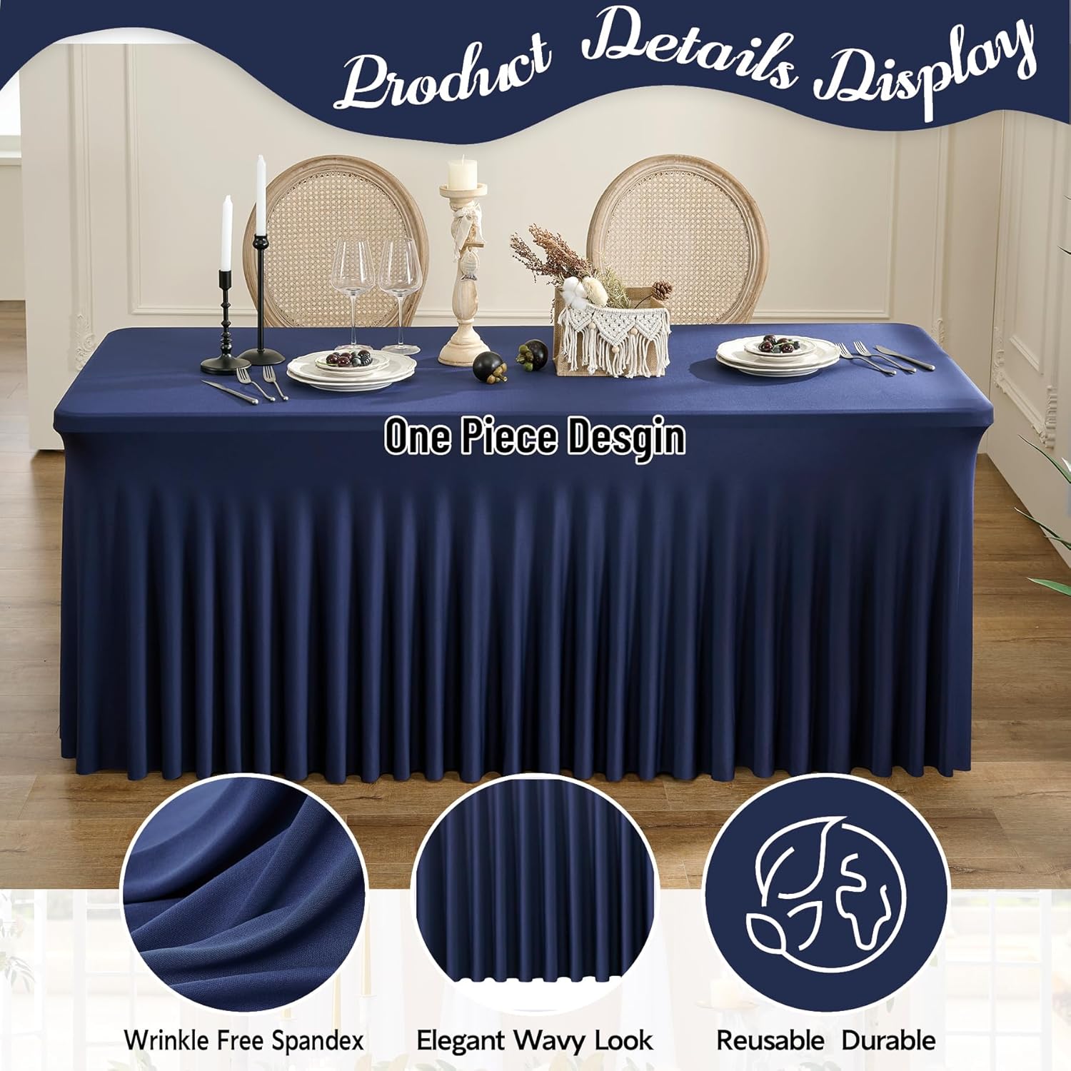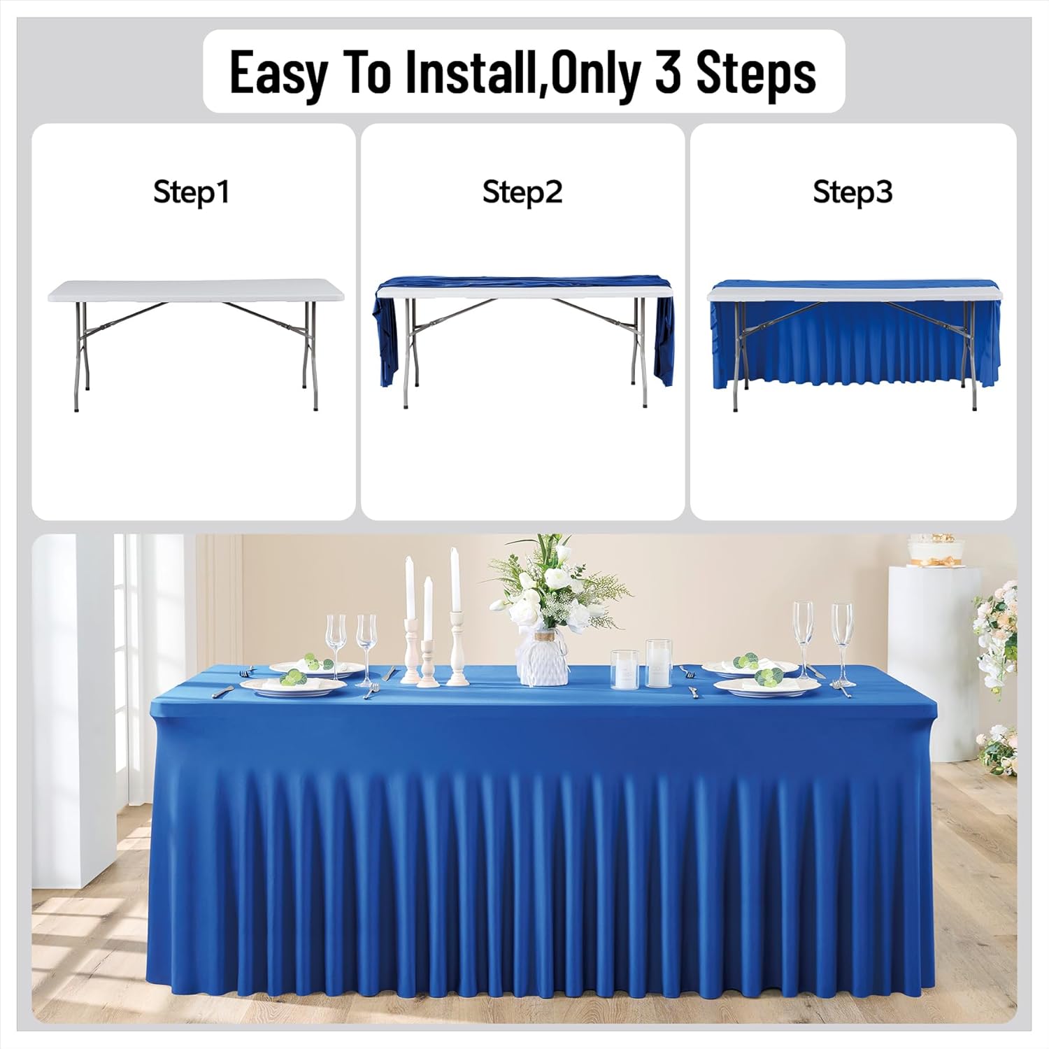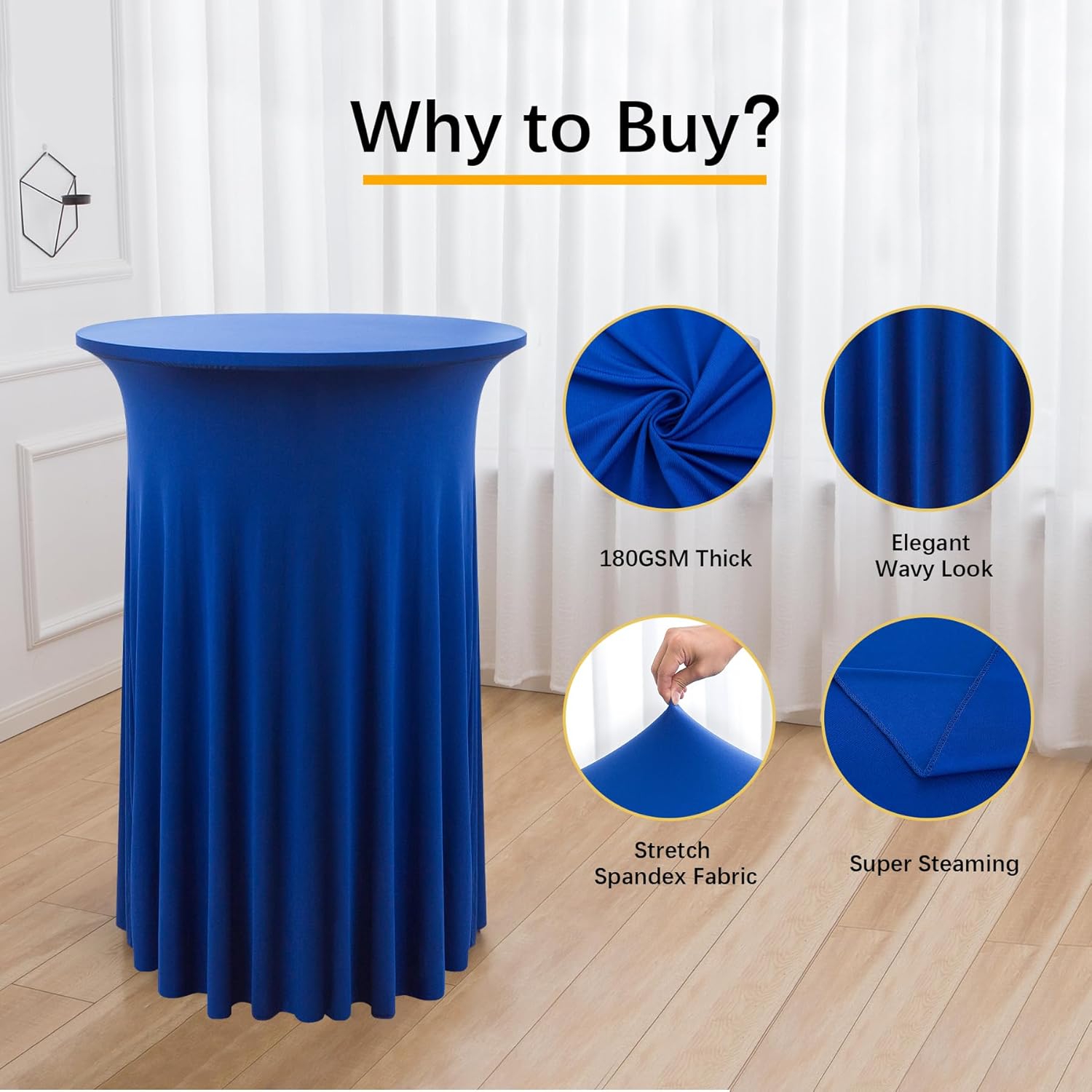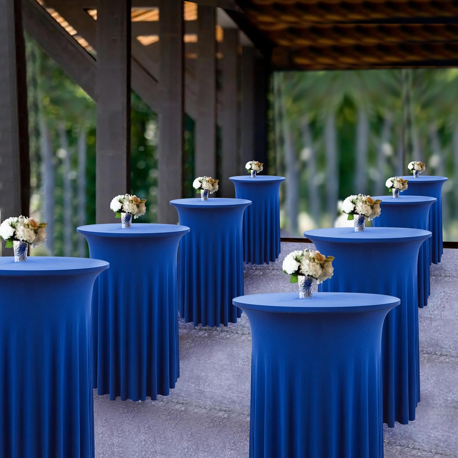 Preboun 8 Pack 72 Inch/ 6 FT Spandex Round Tablecloth Fitted Stretch Tablecloth Elastic Table Cover for Wedding Party Restaurant Banquet Cocktail and Halloween(Royal Blue)