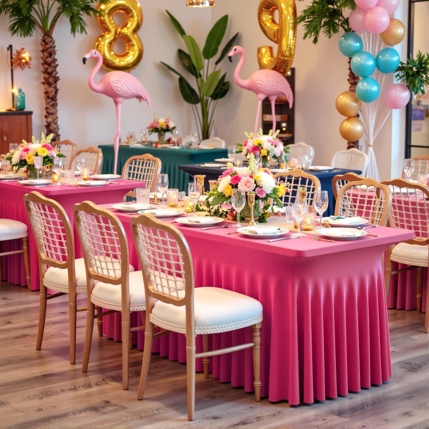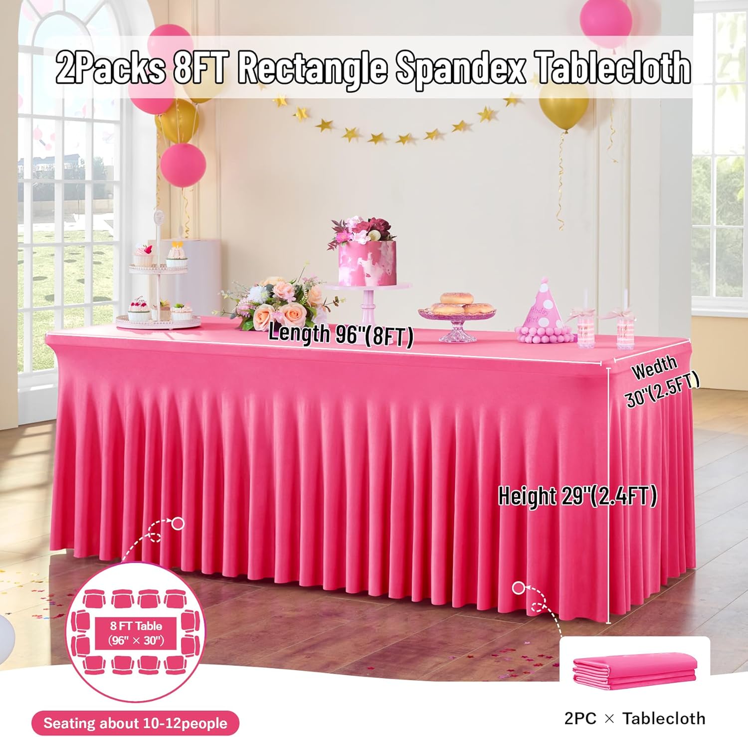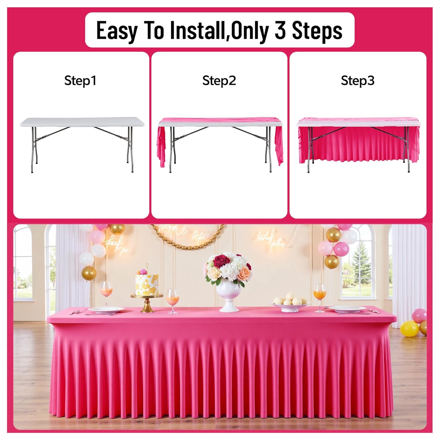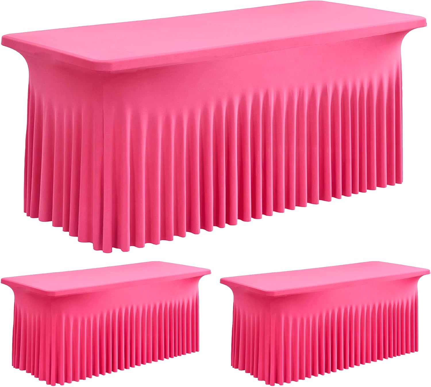 leegleri 6 Pack Hot Pink Spandex Table Clothes for 6 Foot Rectangle Tables, Wrinkle Free Fitted Table Cloth 6ft Stretch Tablecloths for Parties Weddings Birthday Banquet Baby Shower