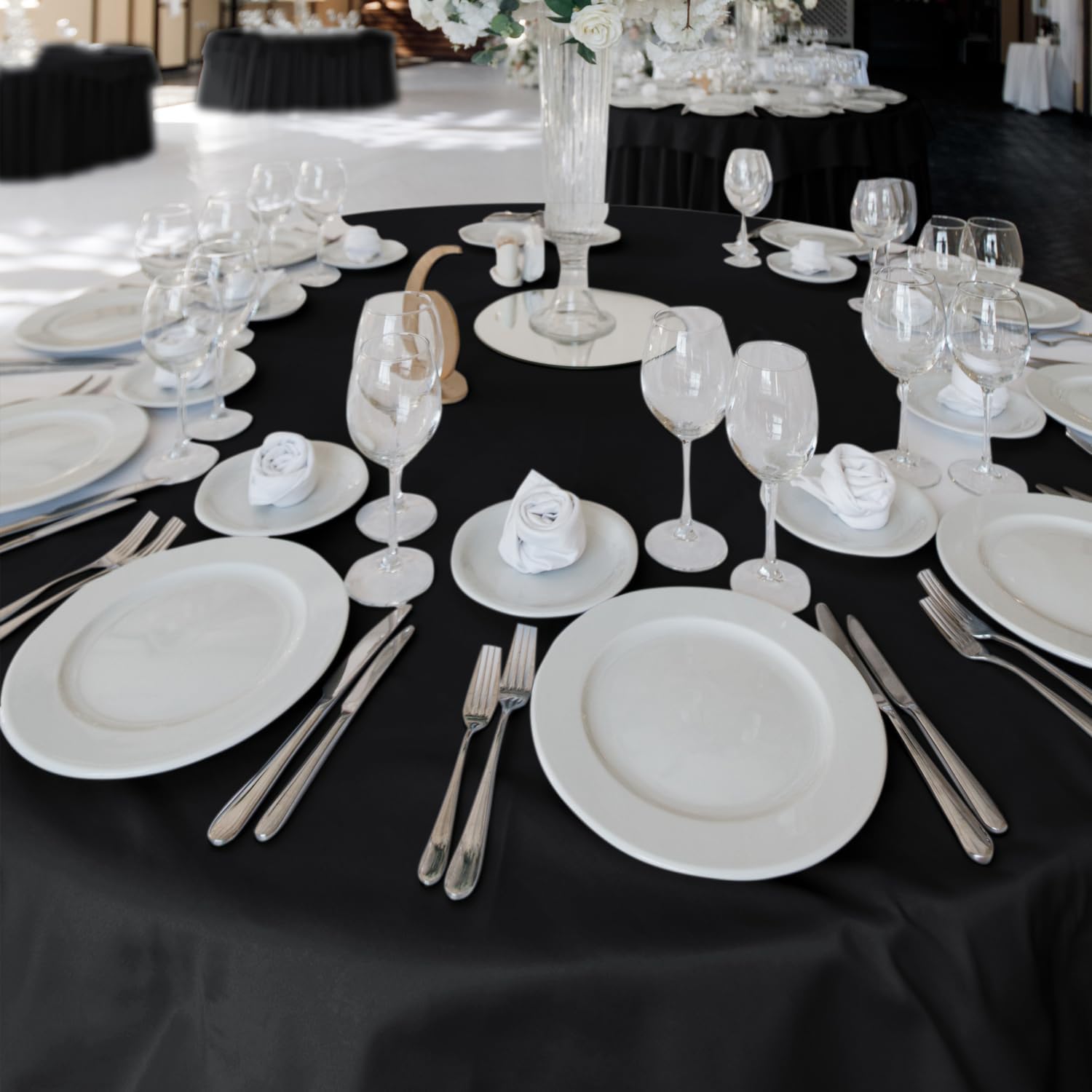 Fitable 6 Pack Black Tablecloths for Round Tables - 108 Inches in Diameter - Stain Resistant and Washable Table Clothes, Polyester Fabric Table Covers for Wedding, Party, Banquet, Formal Events
