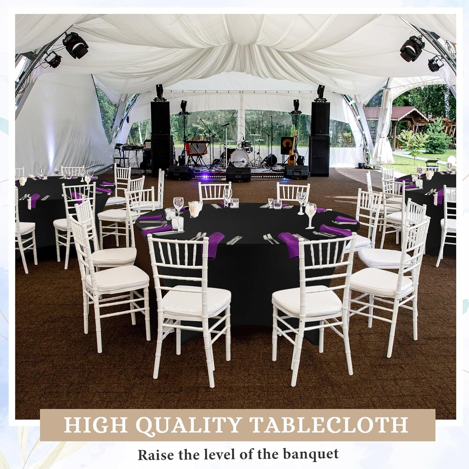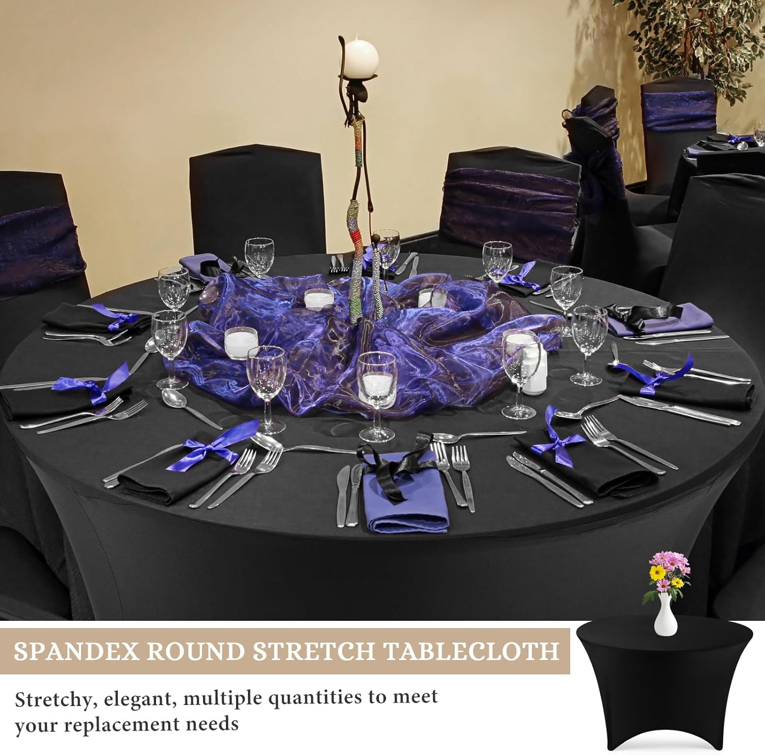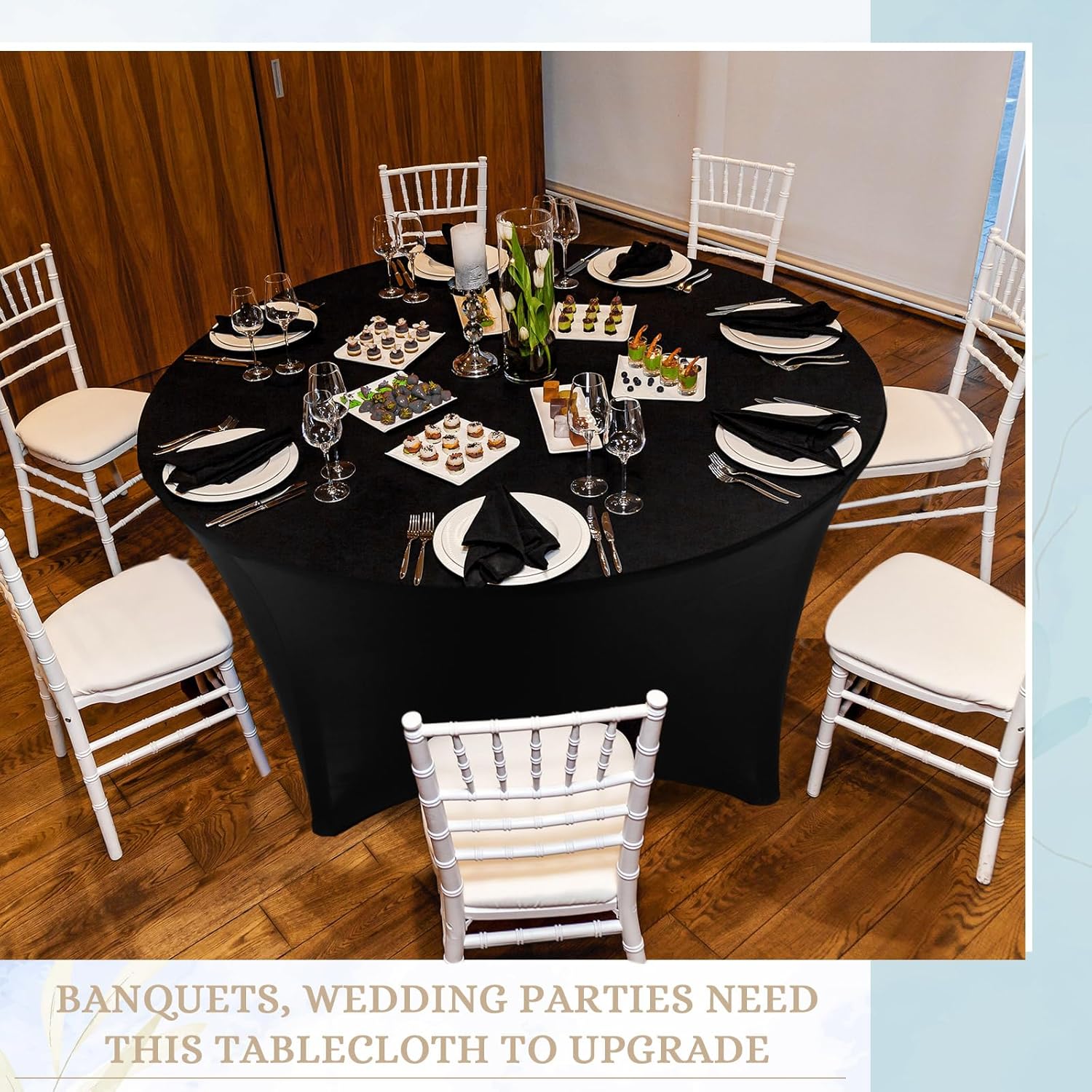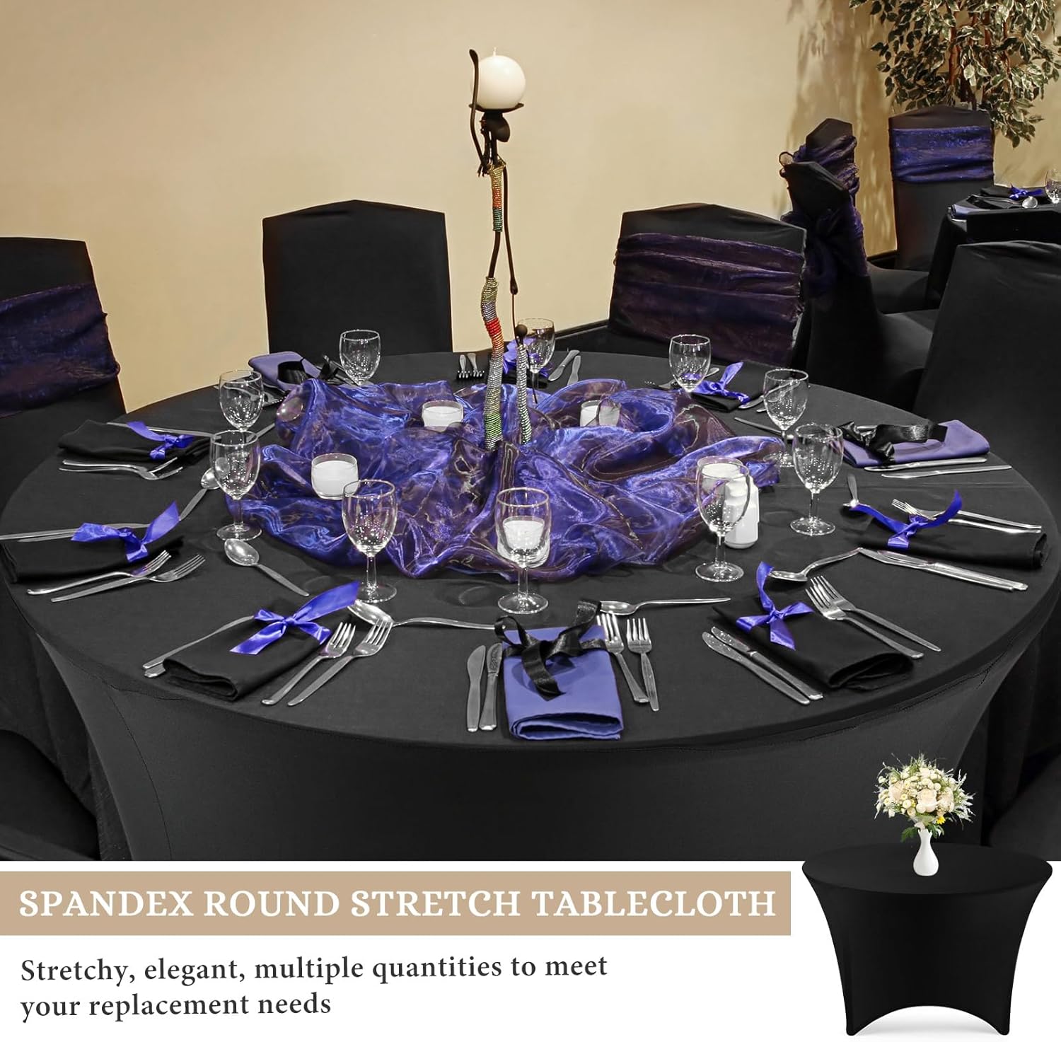 Preboun 8 Pack 60 Inch/ 5 FT Spandex Round Tablecloth Fitted Stretch Tablecloth Elastic Table Cover for Wedding Party Restaurant Banquet Cocktail and Halloween(Black)