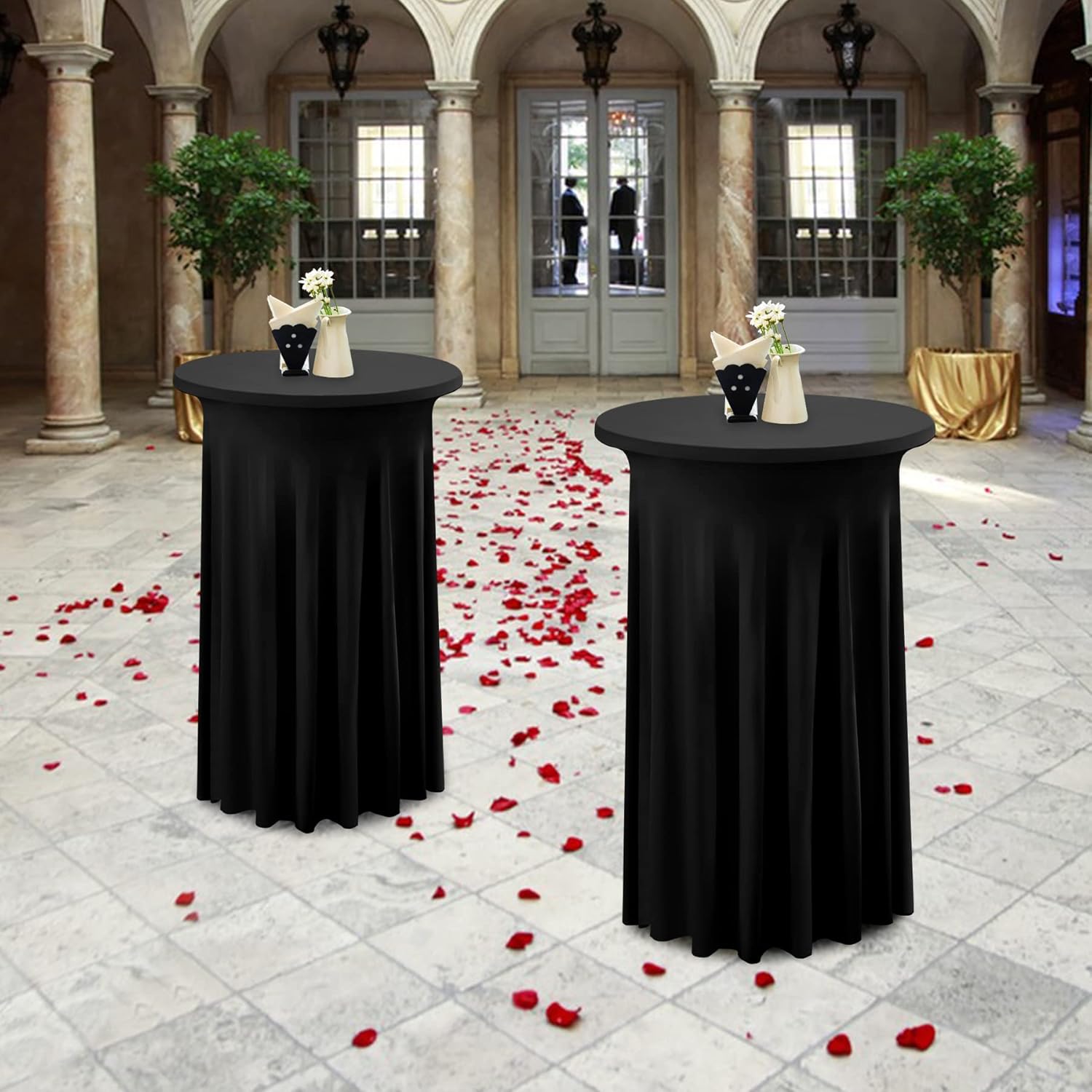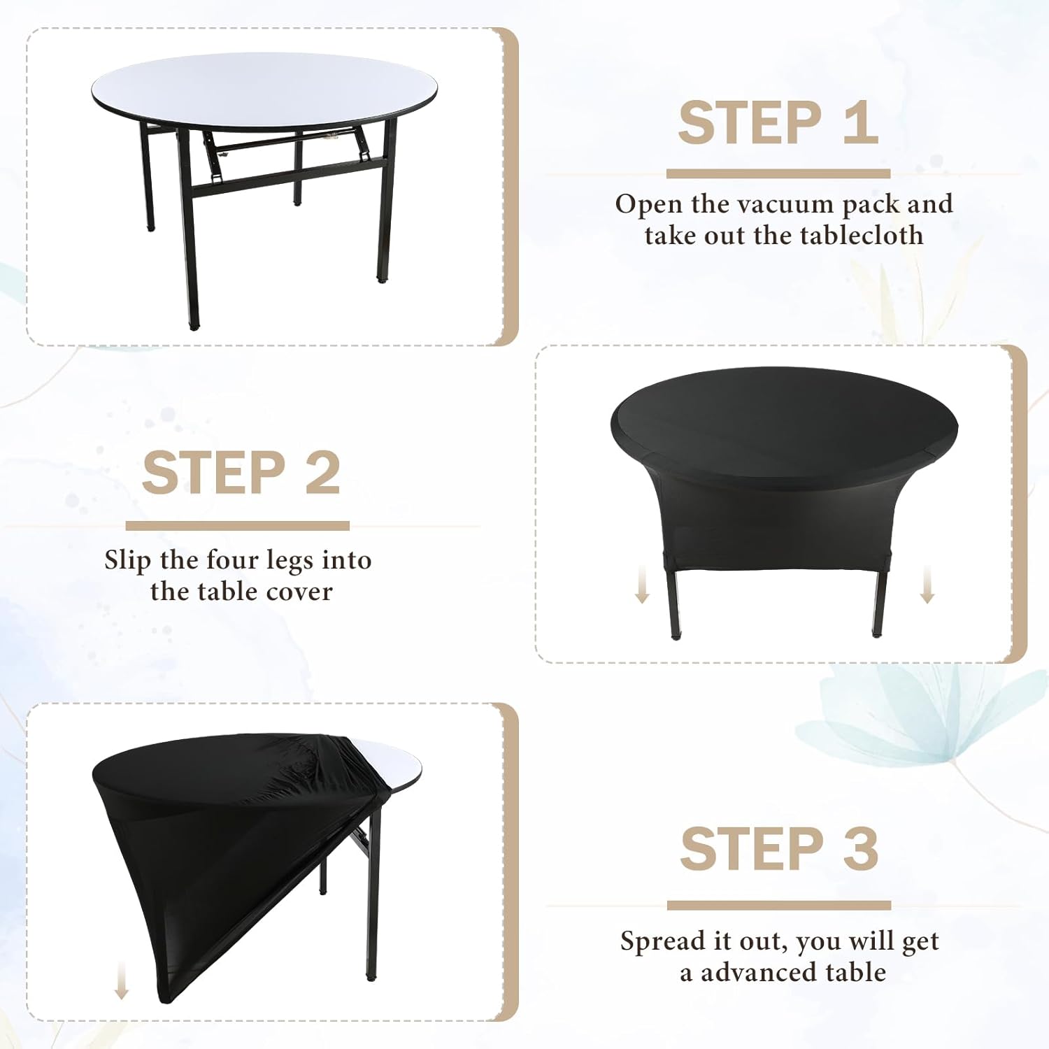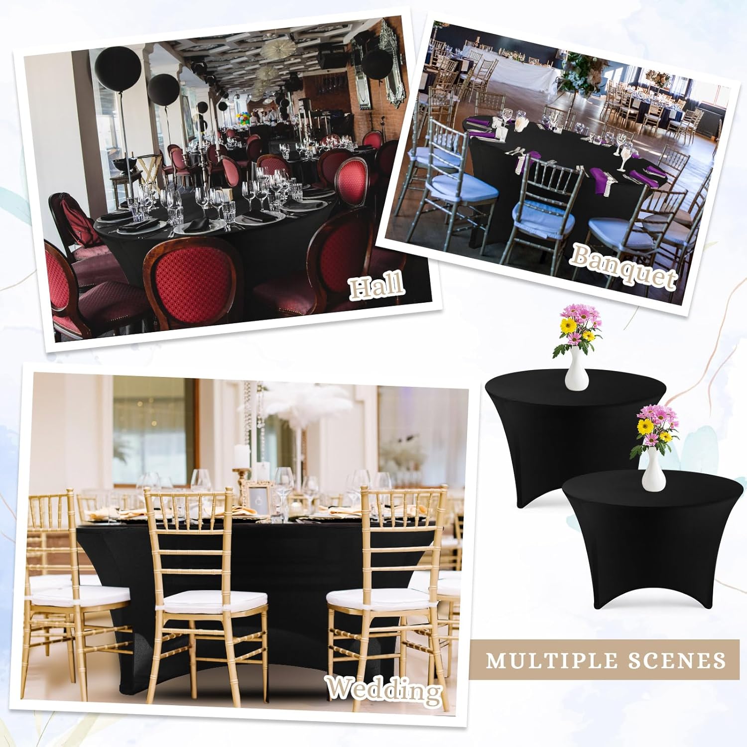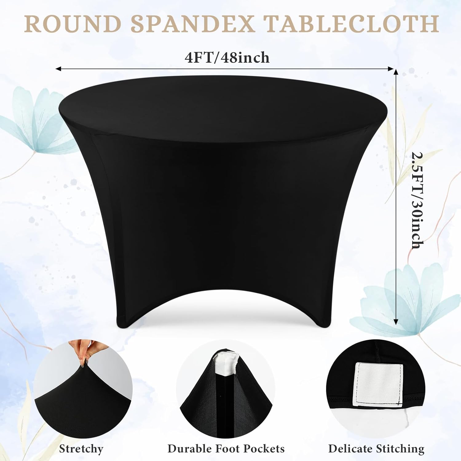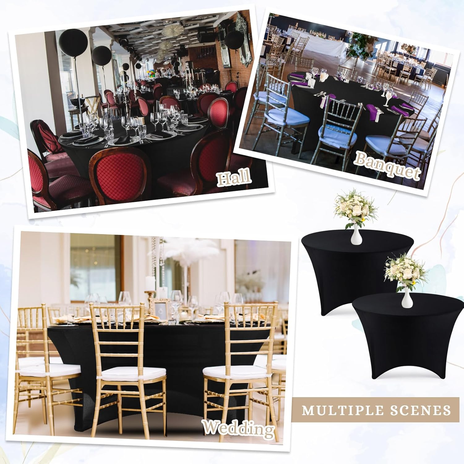 Preboun 8 Pack 60 Inch/ 5 FT Spandex Round Tablecloth Fitted Stretch Tablecloth Elastic Table Cover for Wedding Party Restaurant Banquet Cocktail and Halloween(Black)