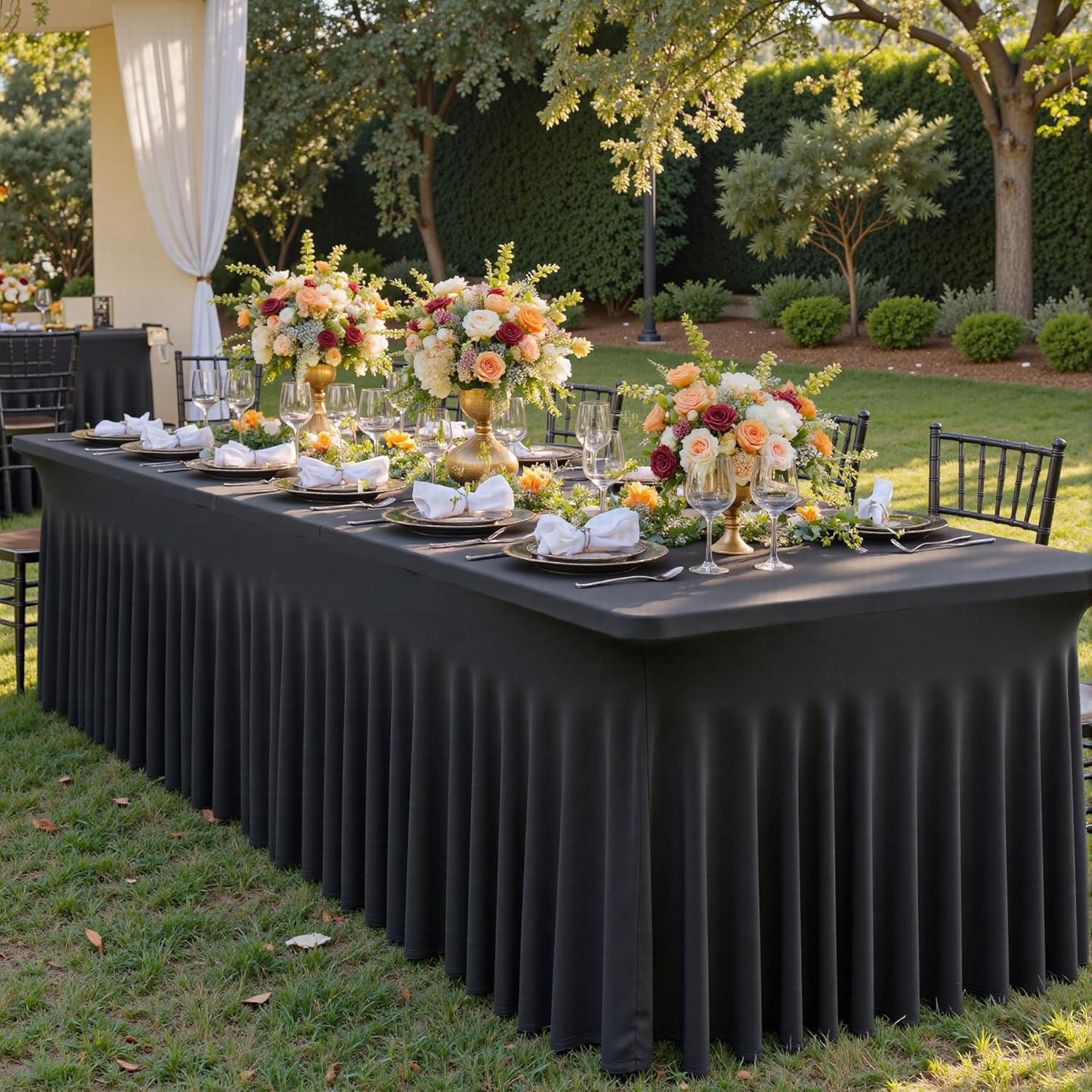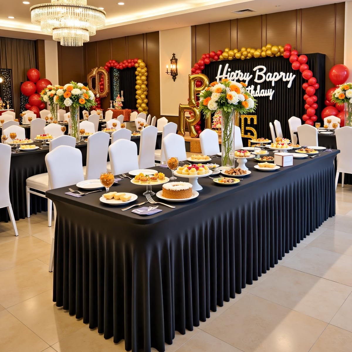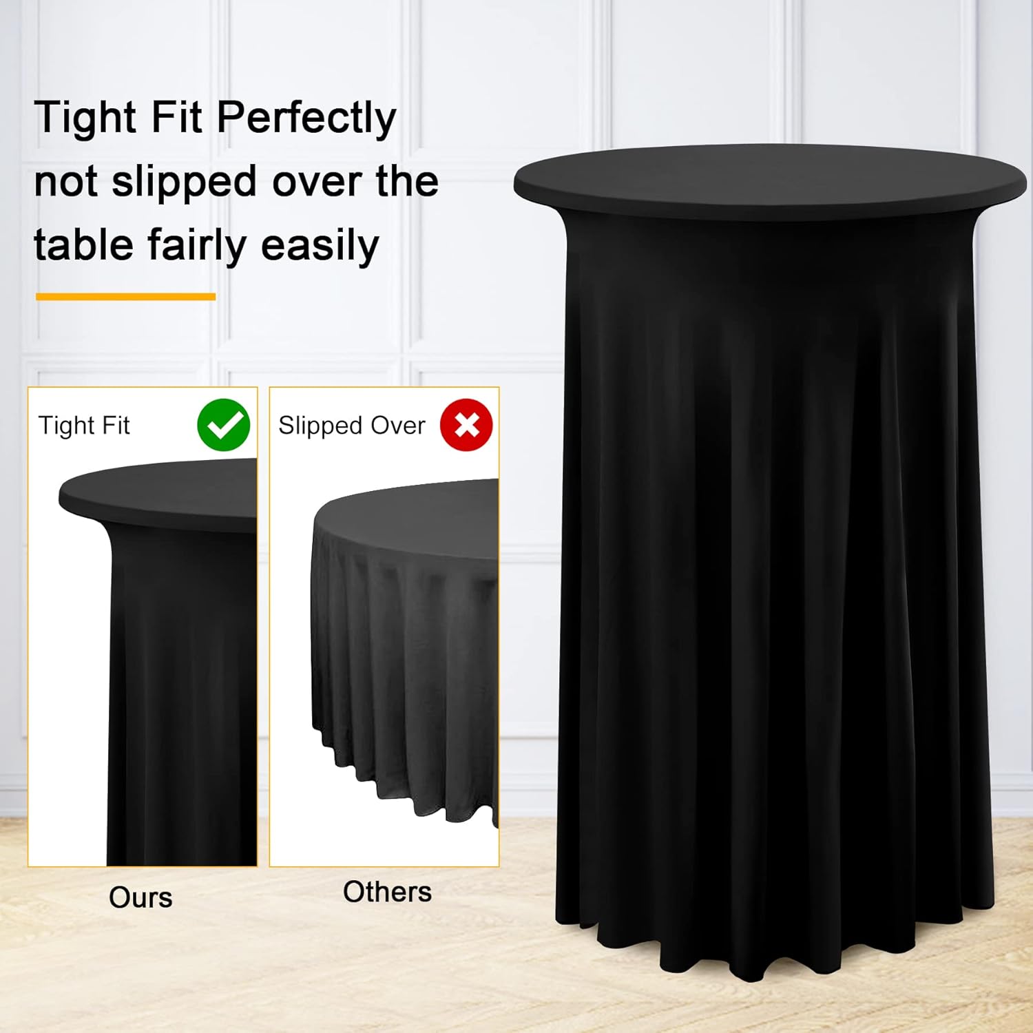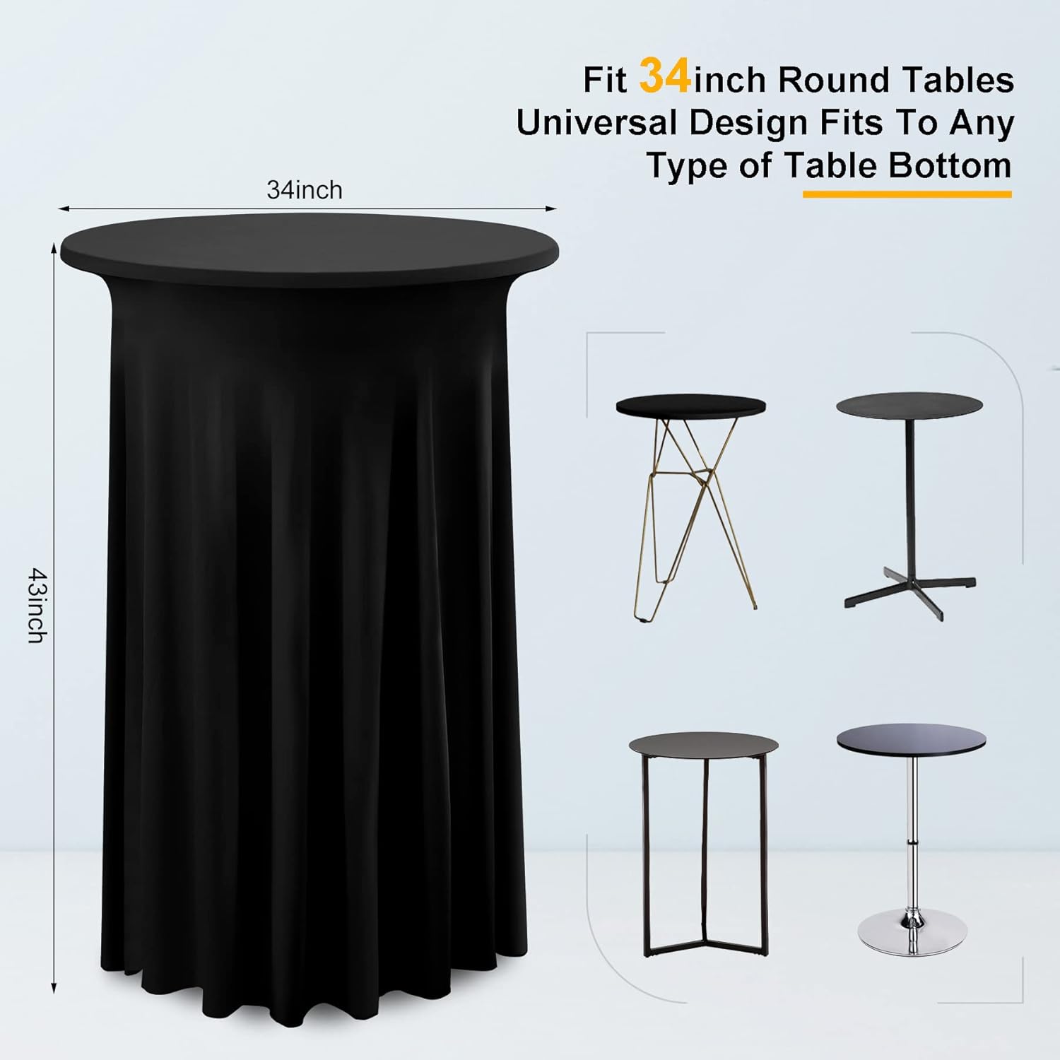 Preboun 8 Pack 60 Inch/ 5 FT Spandex Round Tablecloth Fitted Stretch Tablecloth Elastic Table Cover for Wedding Party Restaurant Banquet Cocktail and Halloween(Black)