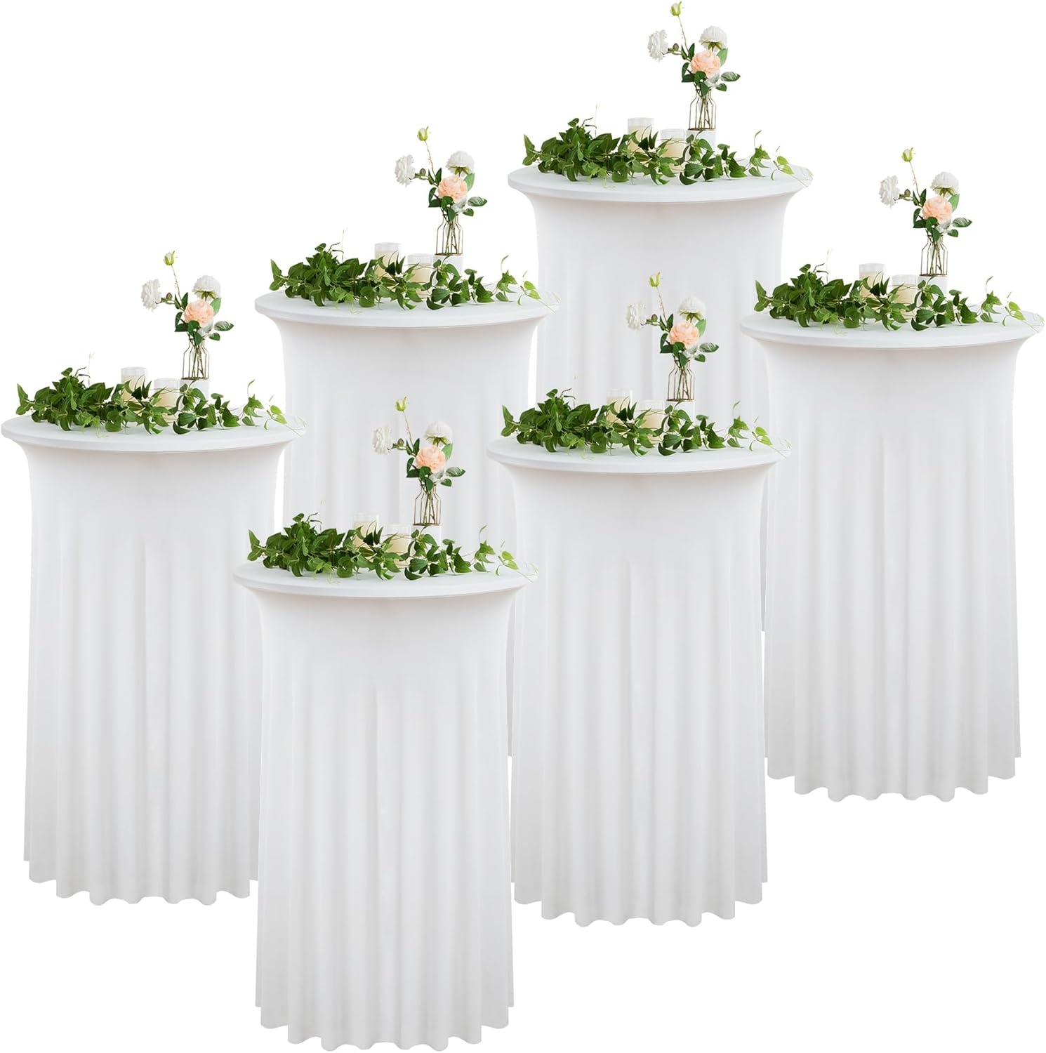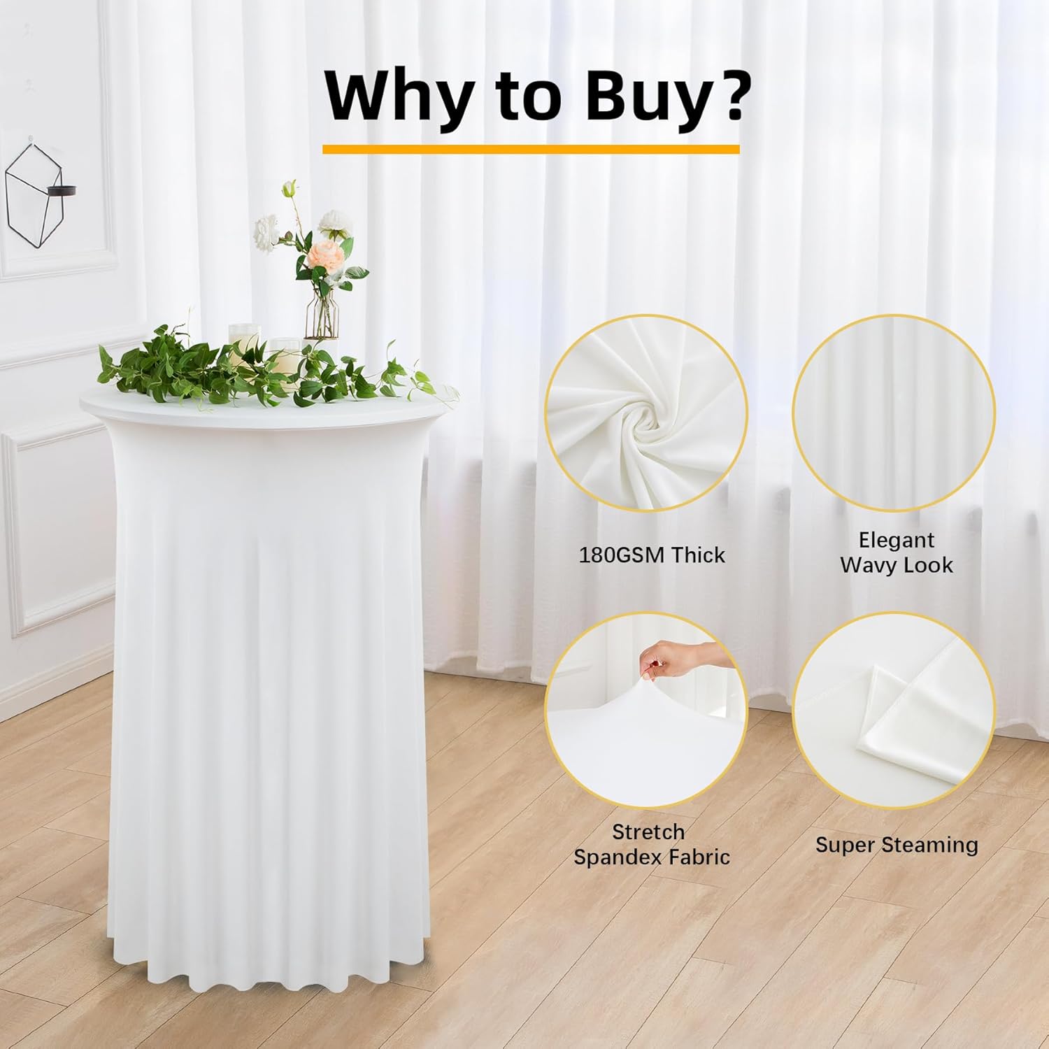 6 Pack Ivory Round High Top Cocktail Table Cloth 32inch43inch Wrinkle Free Stretch Spandex Tablecloths Table Covers for Party Wedding Banquet Baby Shower Birthday