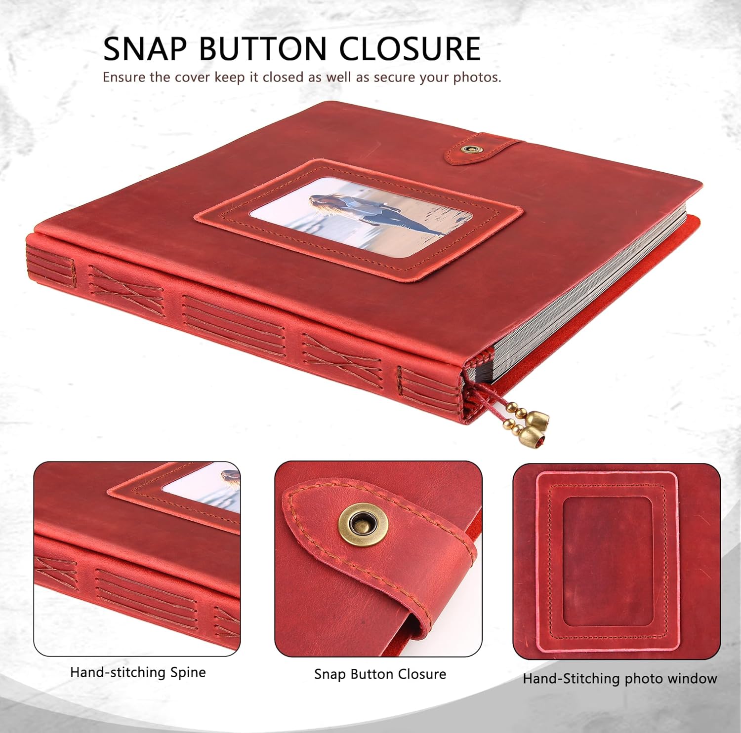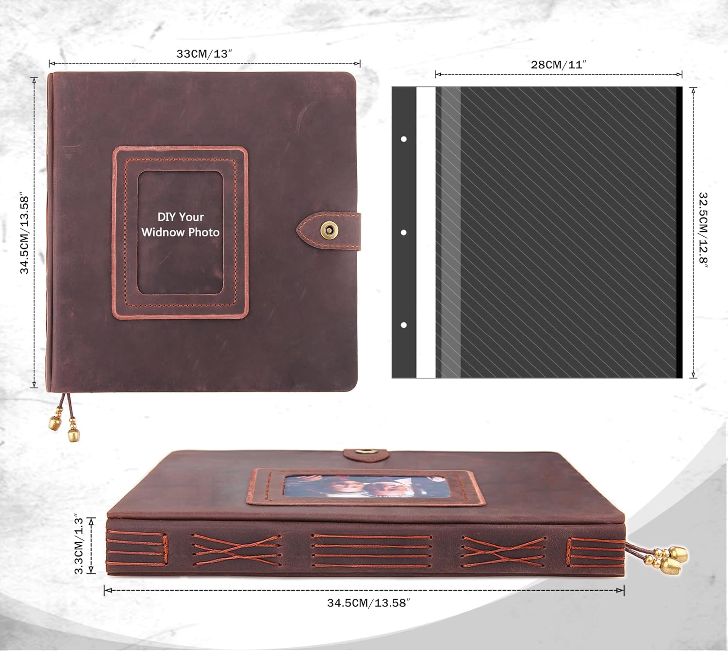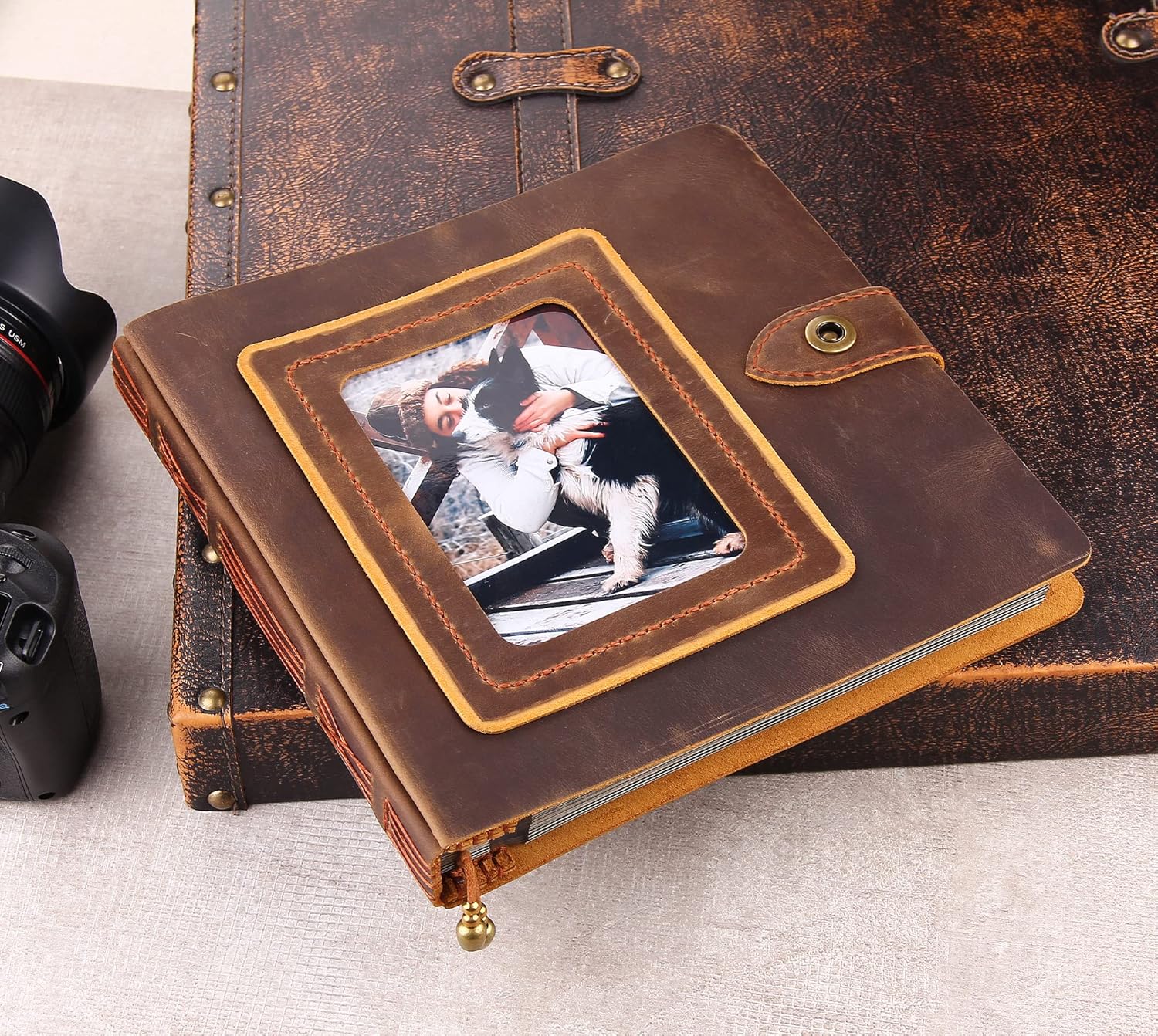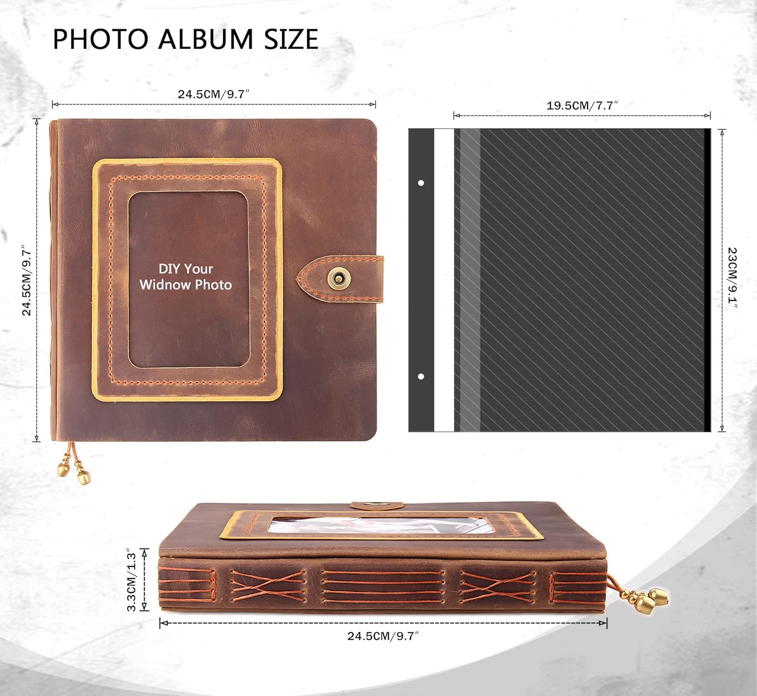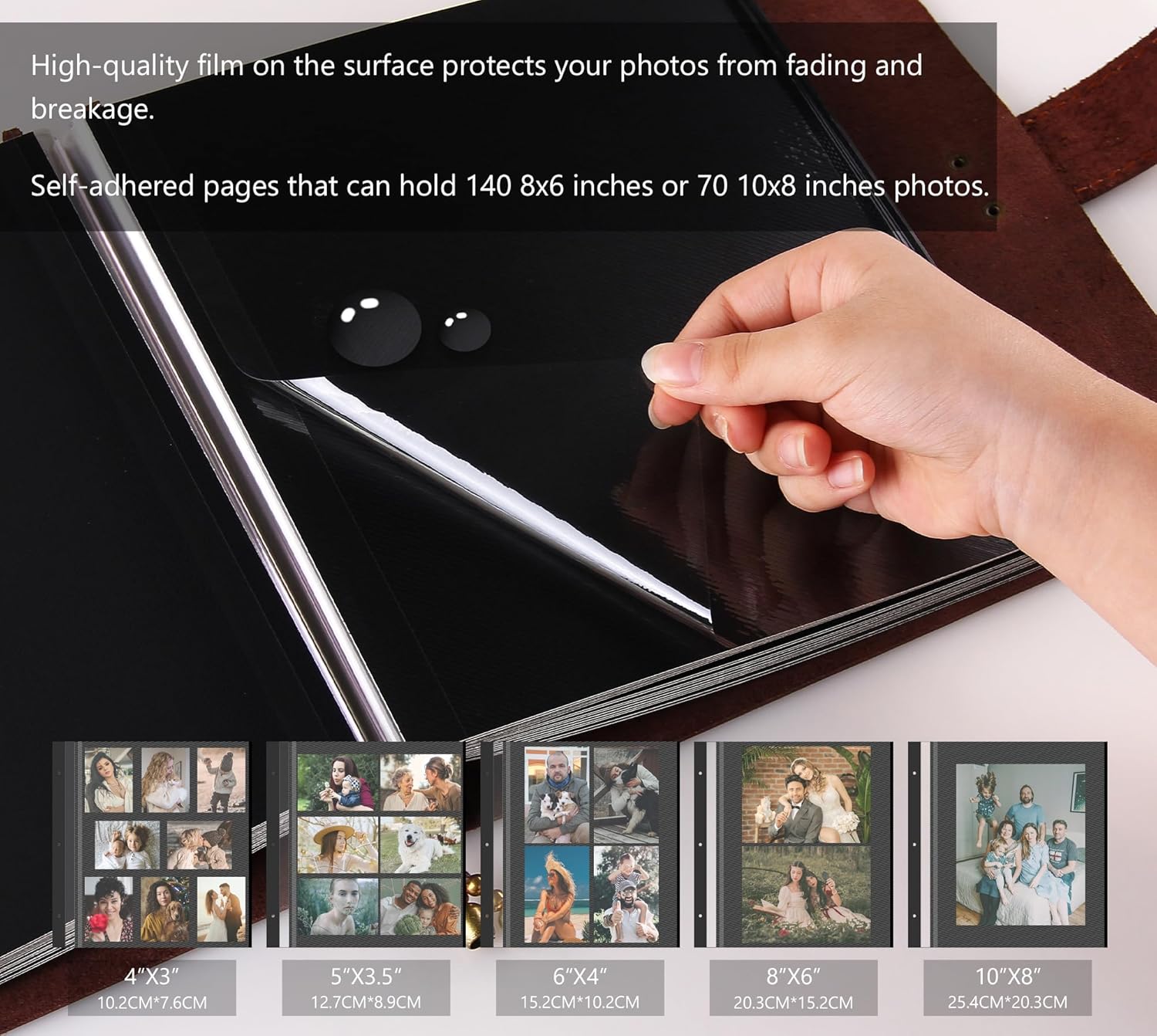 Leather photo Album Self Adhesive Pages, Handamde Leather Scrapbook Photo Album, Wedding Family Album, Holds 3x5, 4x6, 5x7, 6x8, 8x10 Photos - Coffee