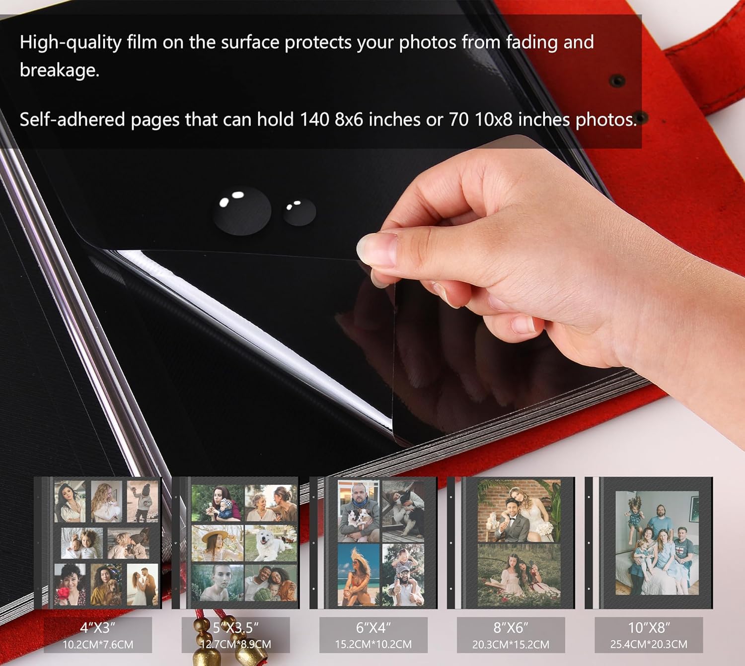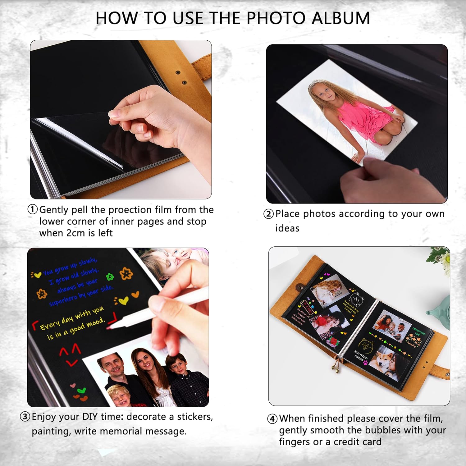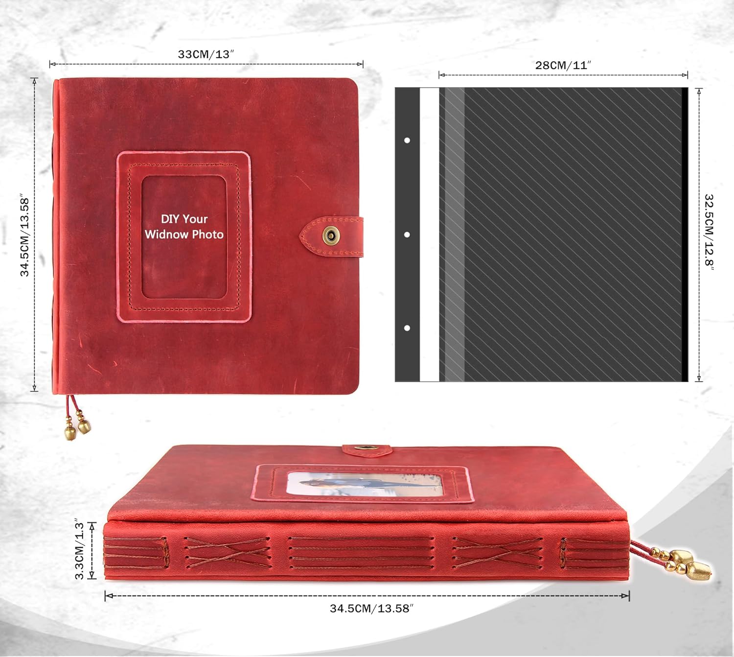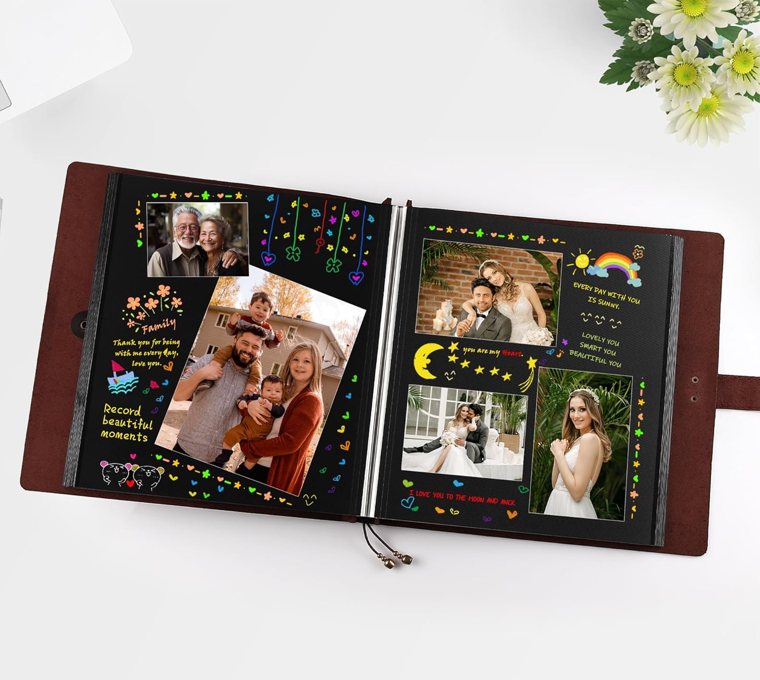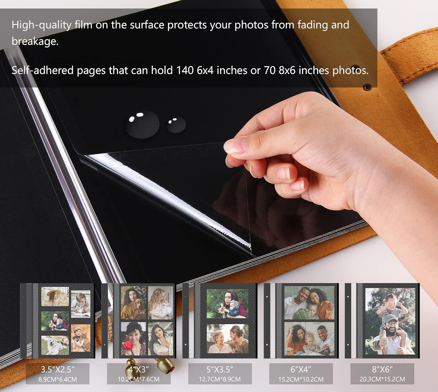 Leather photo Album Self Adhesive Pages, Handamde Leather Scrapbook Photo Album, Wedding Family Album, Holds 3x5, 4x6, 5x7, 6x8, 8x10 Photos - Coffee