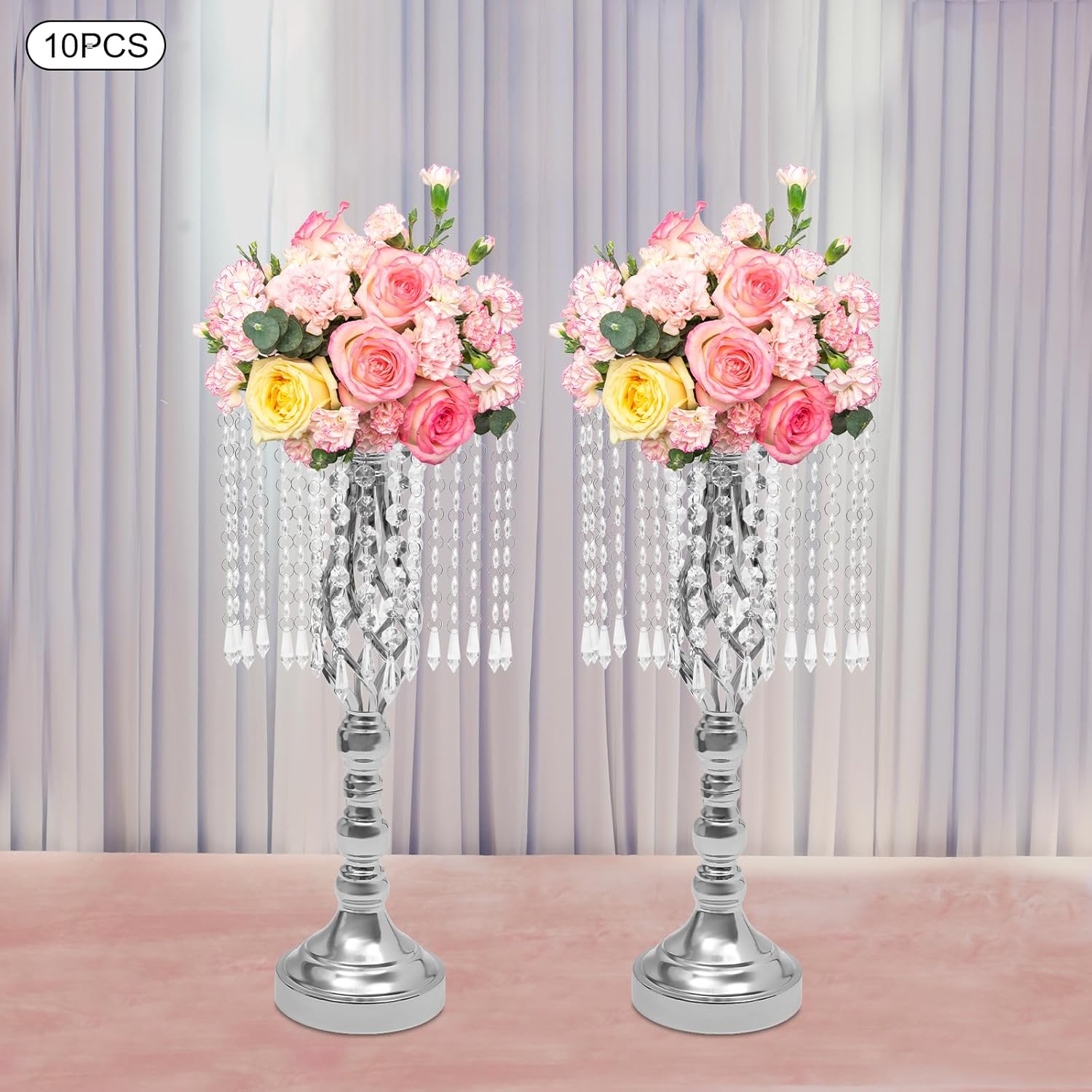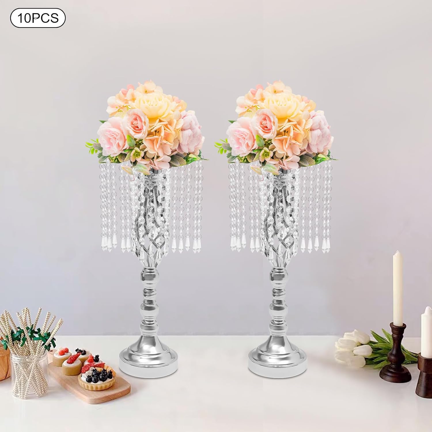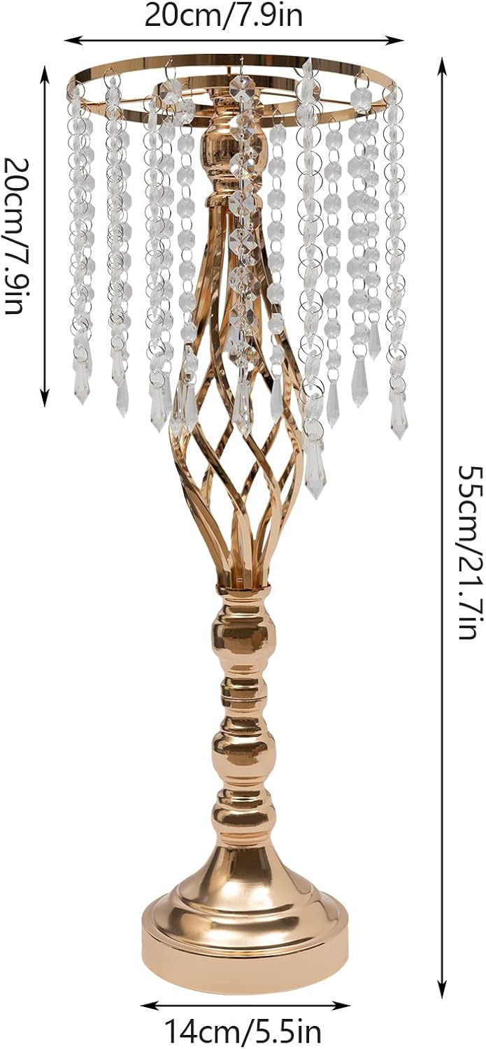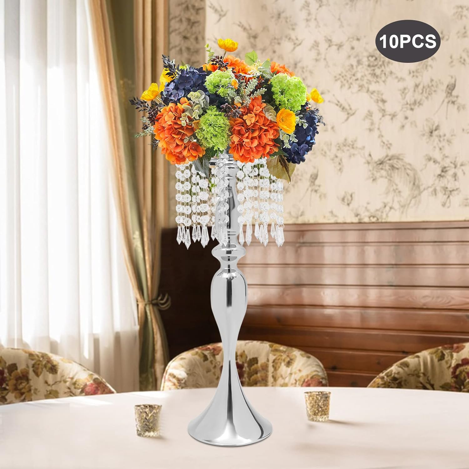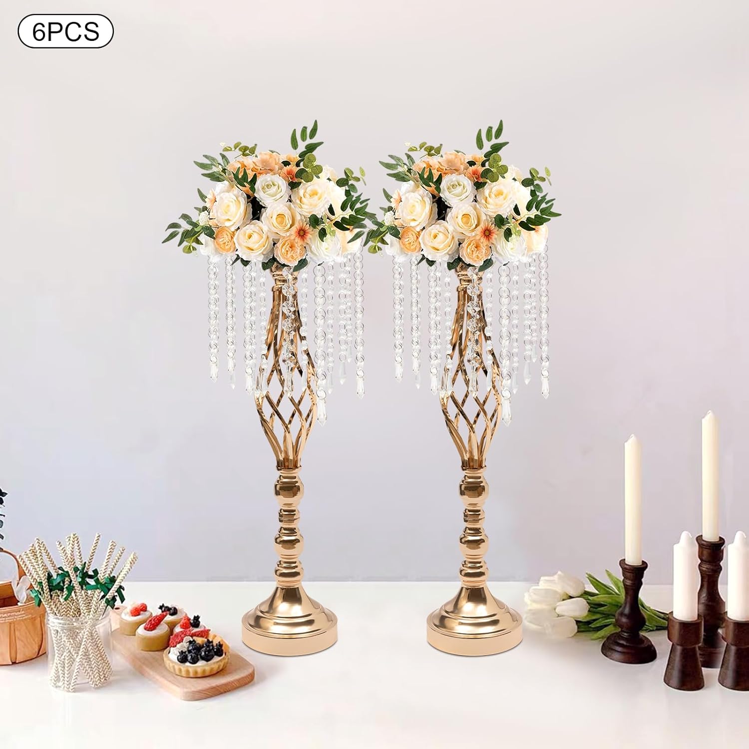 10 Pcs Crystal Flower Stands,Flower Holders,19.3 inches Tall Flower Vase with Chandelier for Wedding Party,Reception Dinner Event,Tabletop Decorations (6 Pcs Gold, 21.7 in)