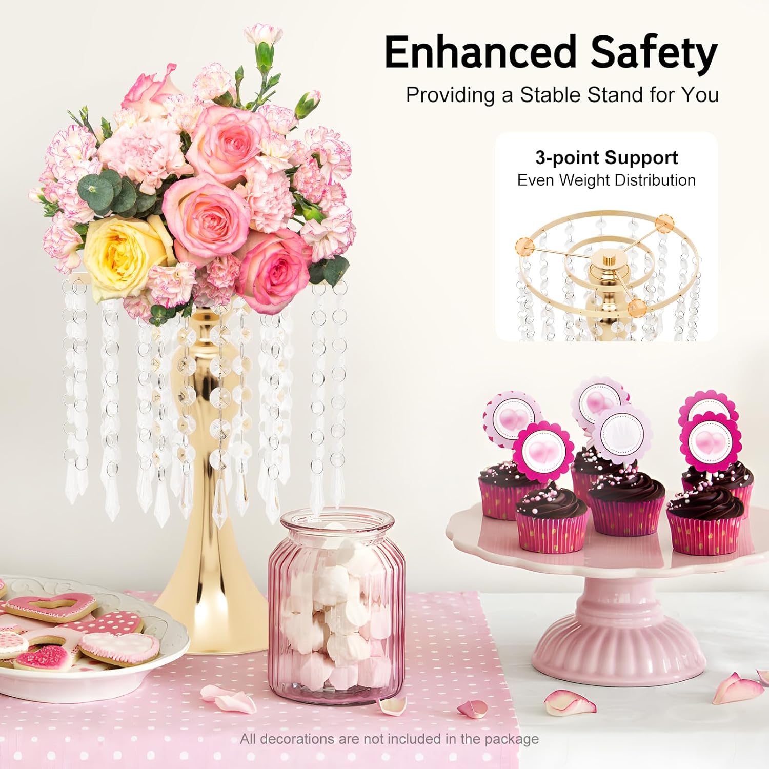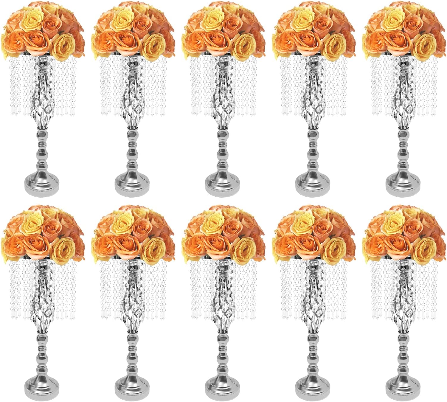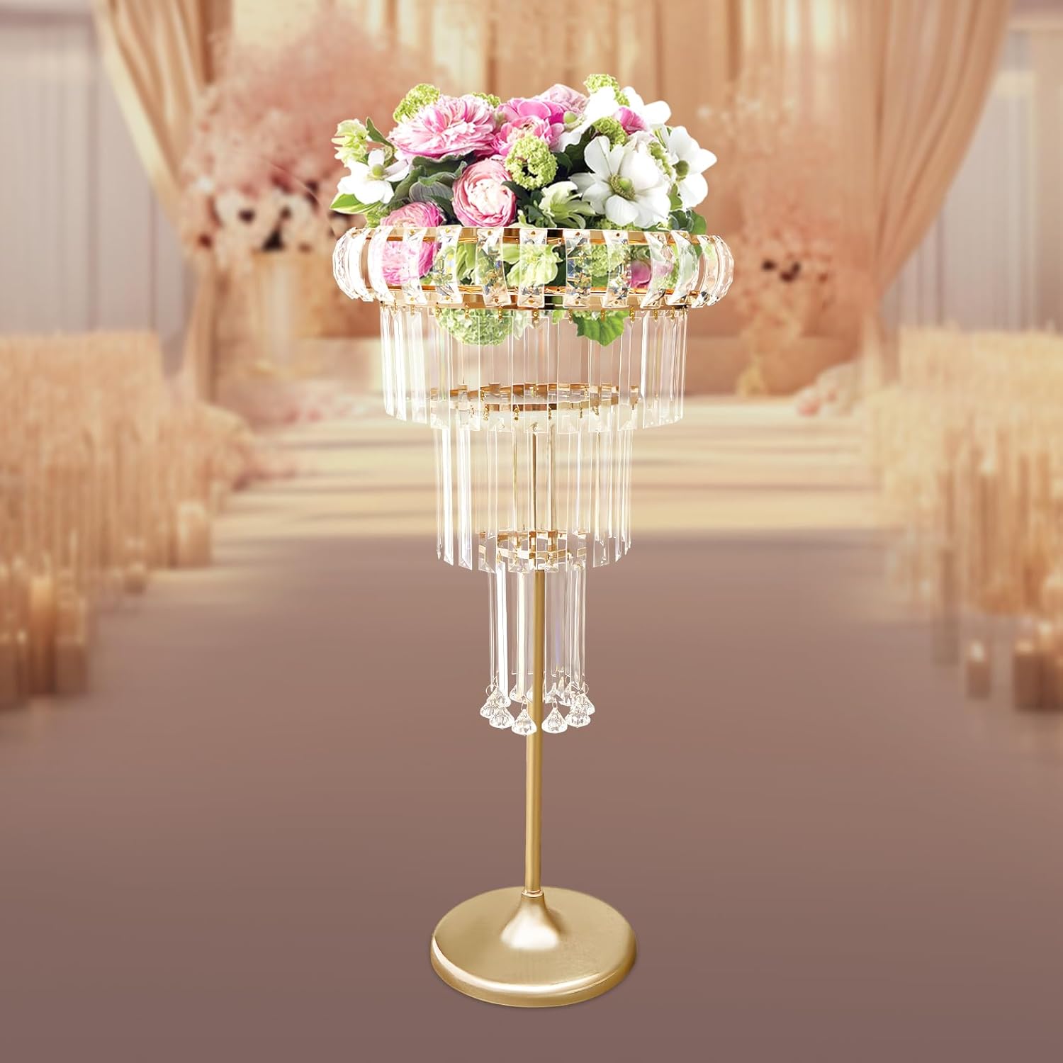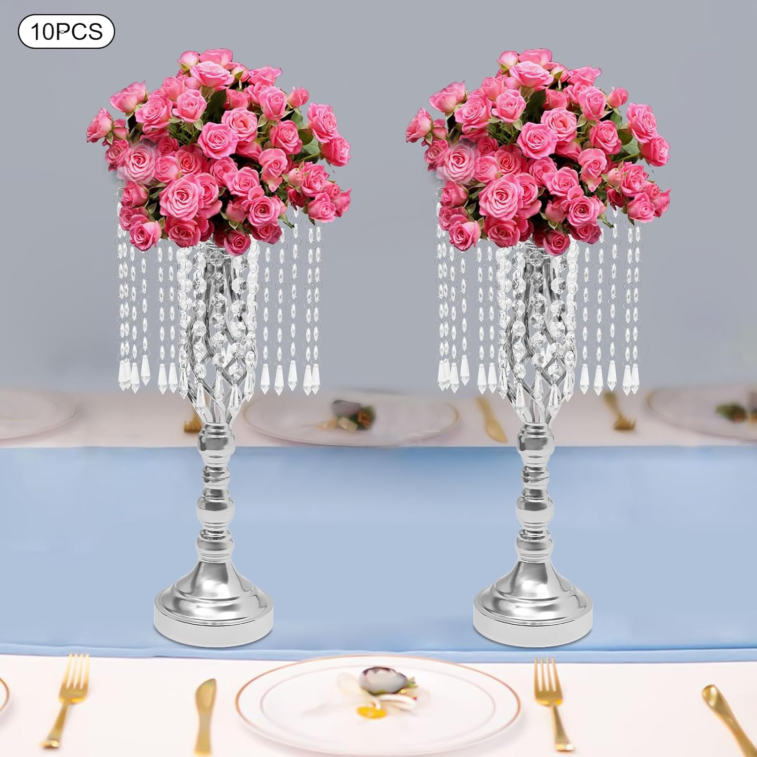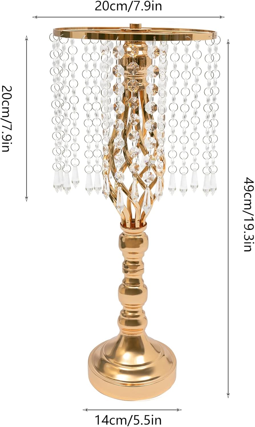 10 Pcs Crystal Flower Stands,Flower Holders,19.3 inches Tall Flower Vase with Chandelier for Wedding Party,Reception Dinner Event,Tabletop Decorations (6 Pcs Gold, 21.7 in)