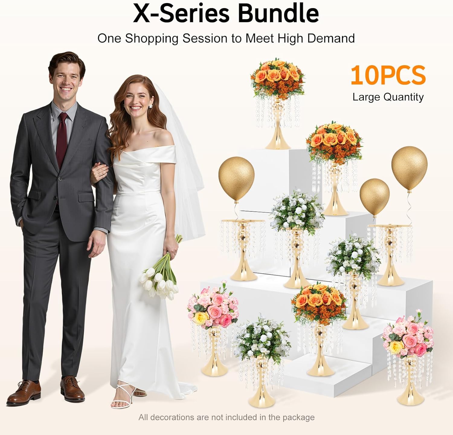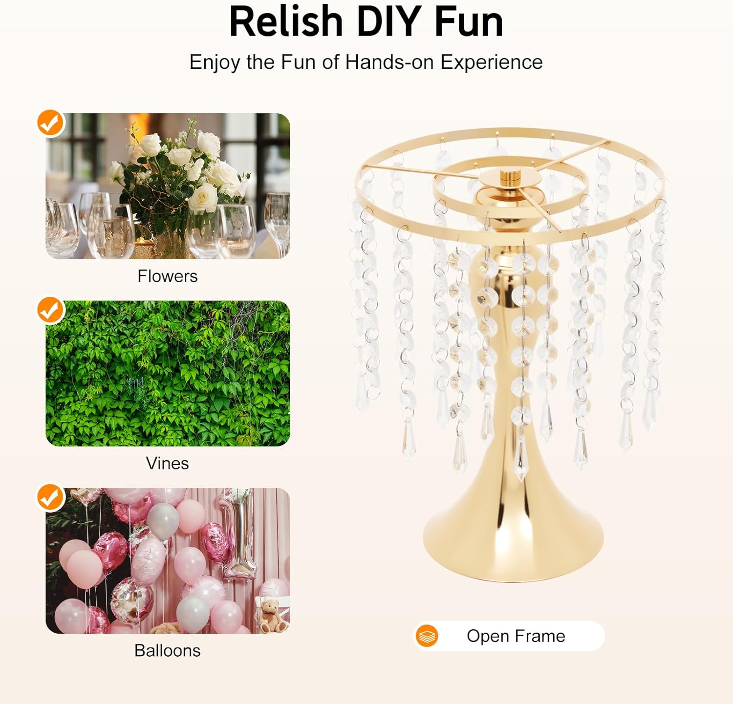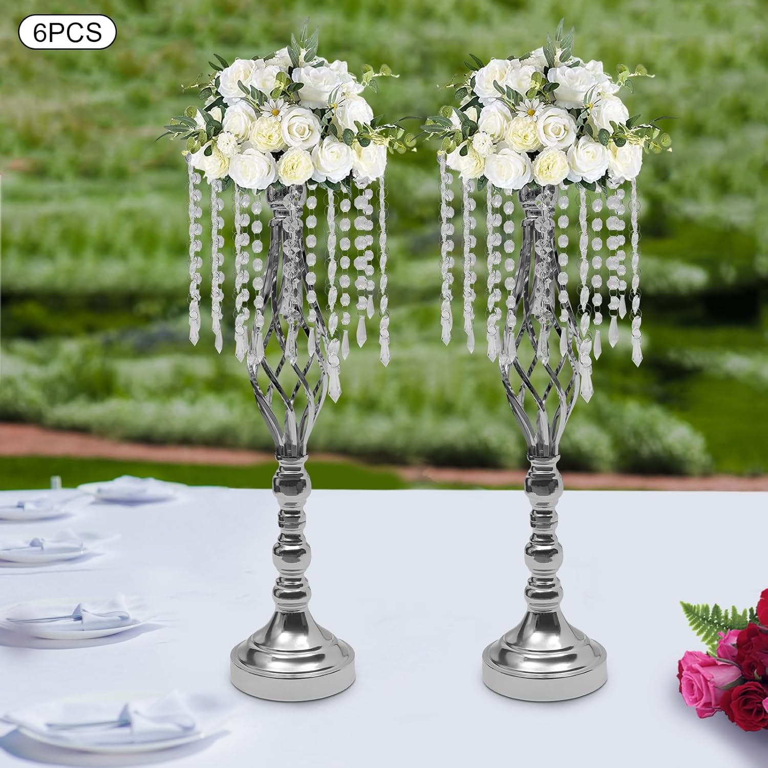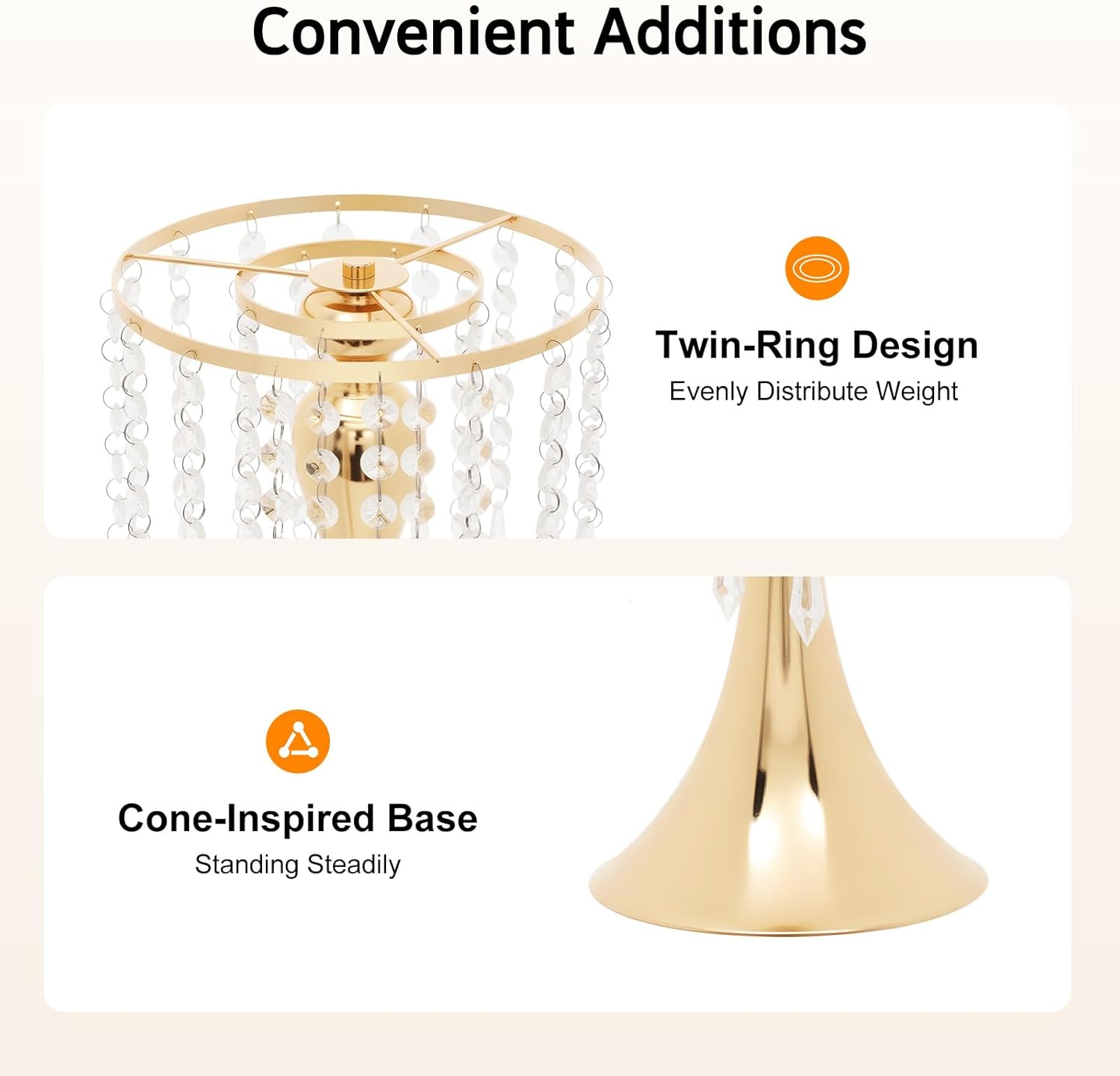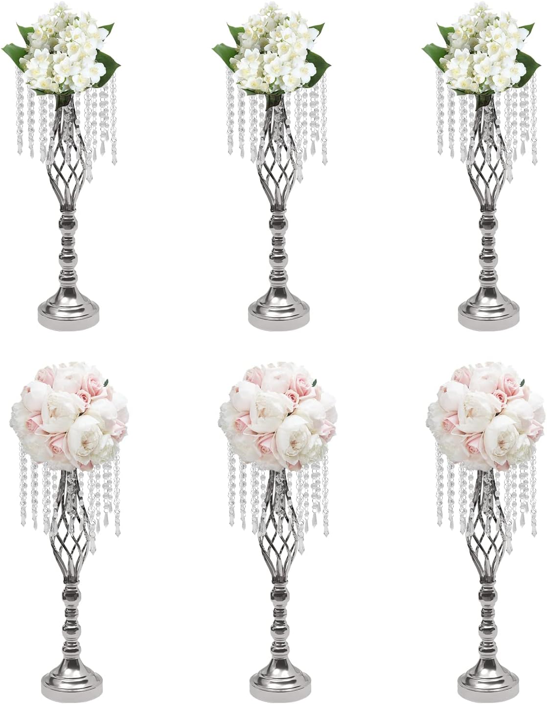 10 Pcs Crystal Flower Stands,Flower Holders,19.3 inches Tall Flower Vase with Chandelier for Wedding Party,Reception Dinner Event,Tabletop Decorations (6 Pcs Gold, 21.7 in)