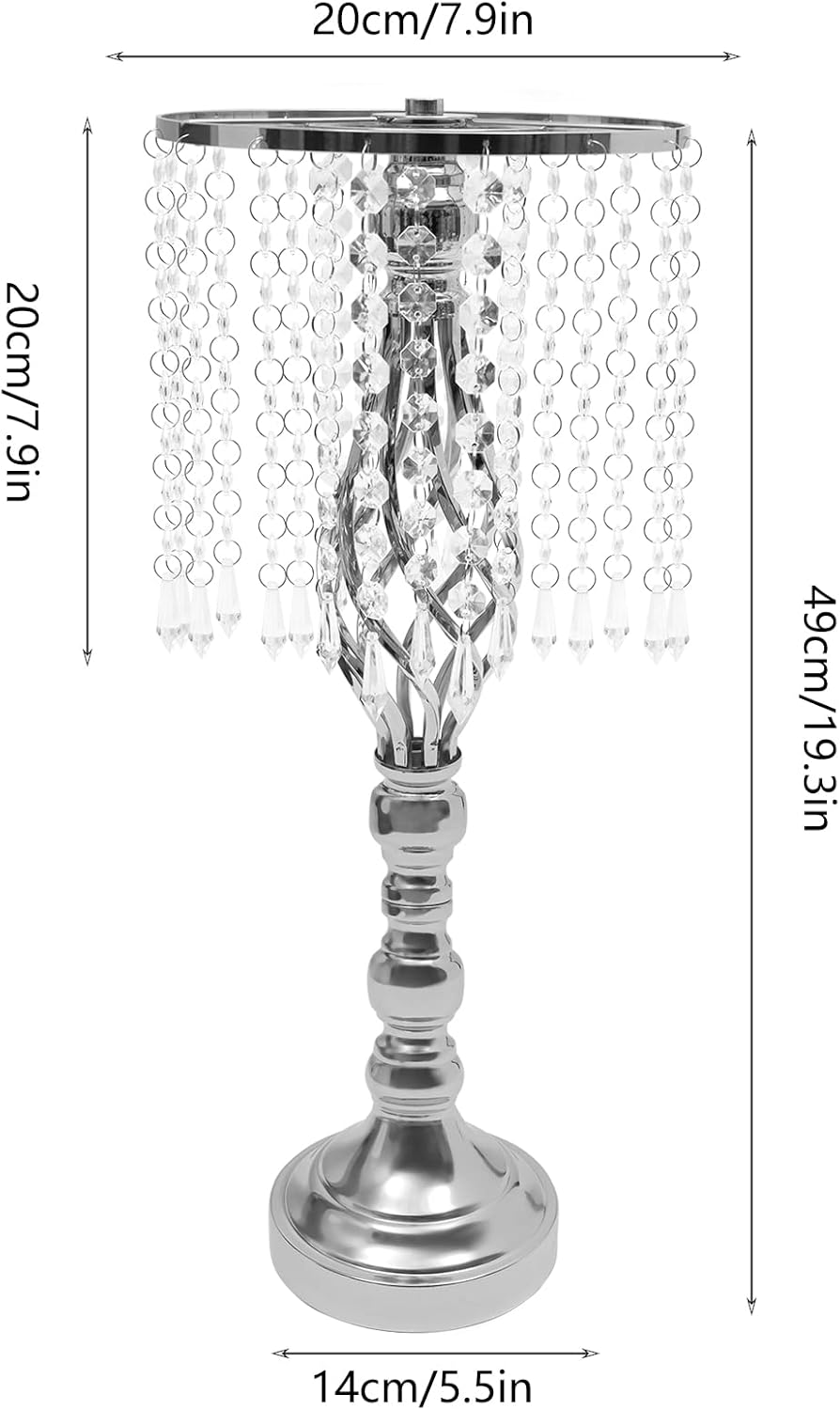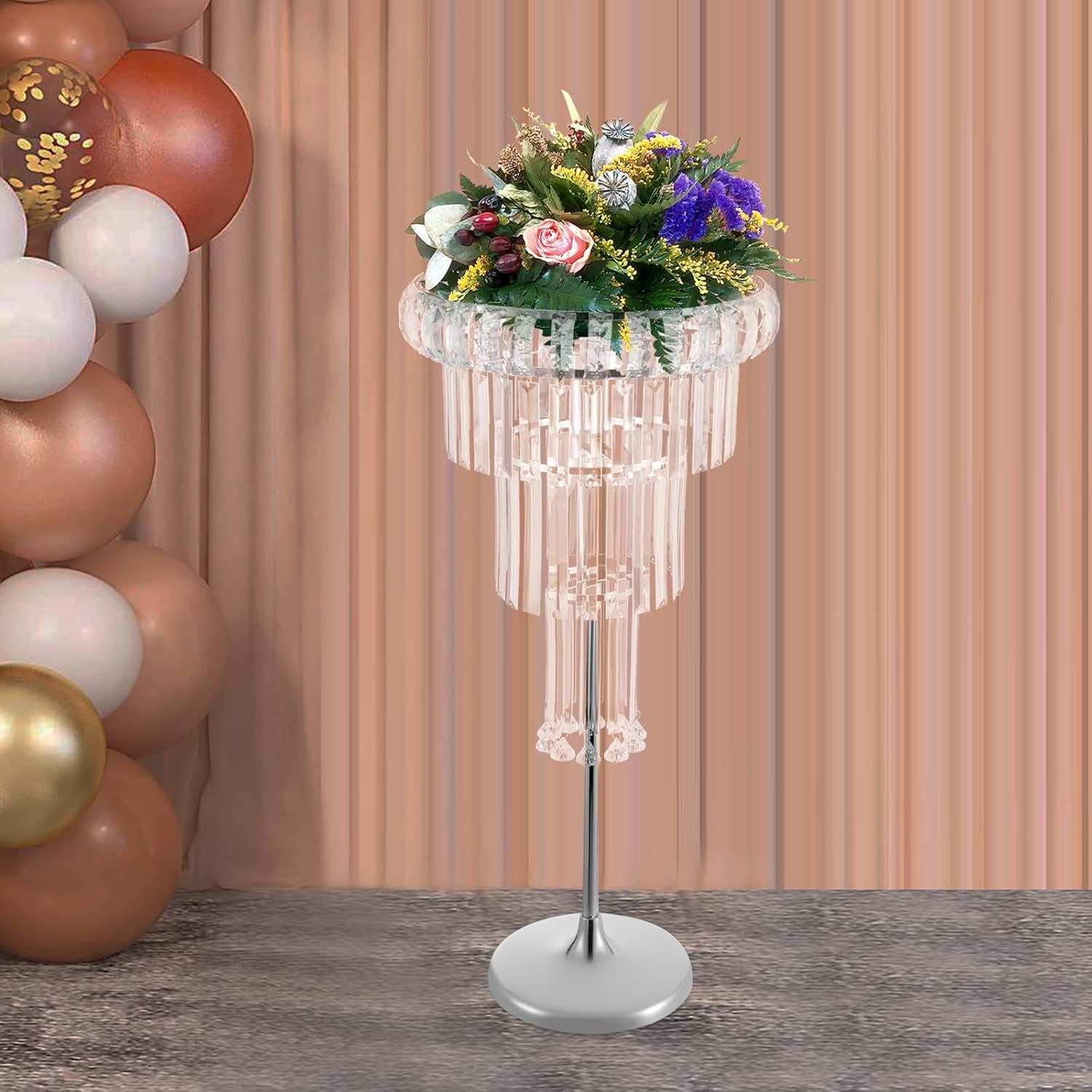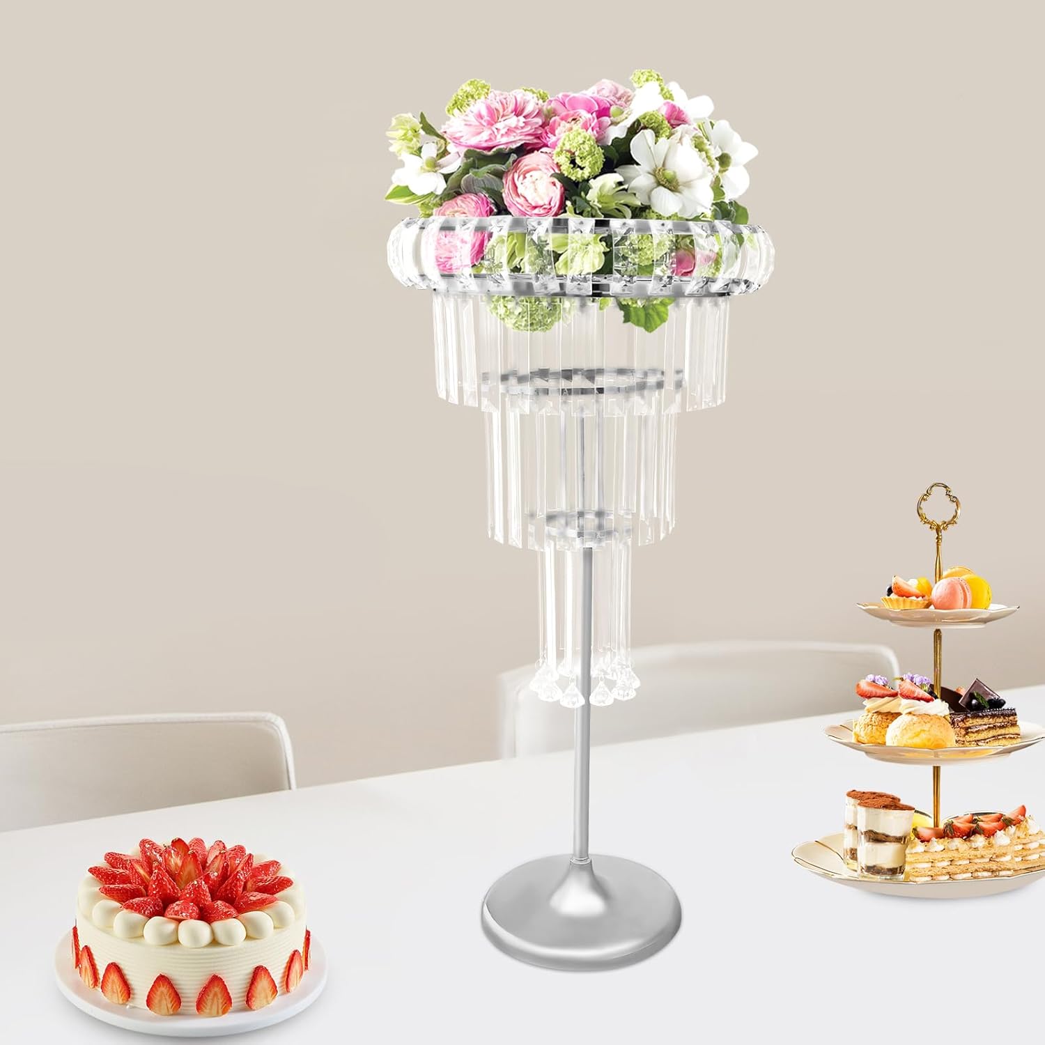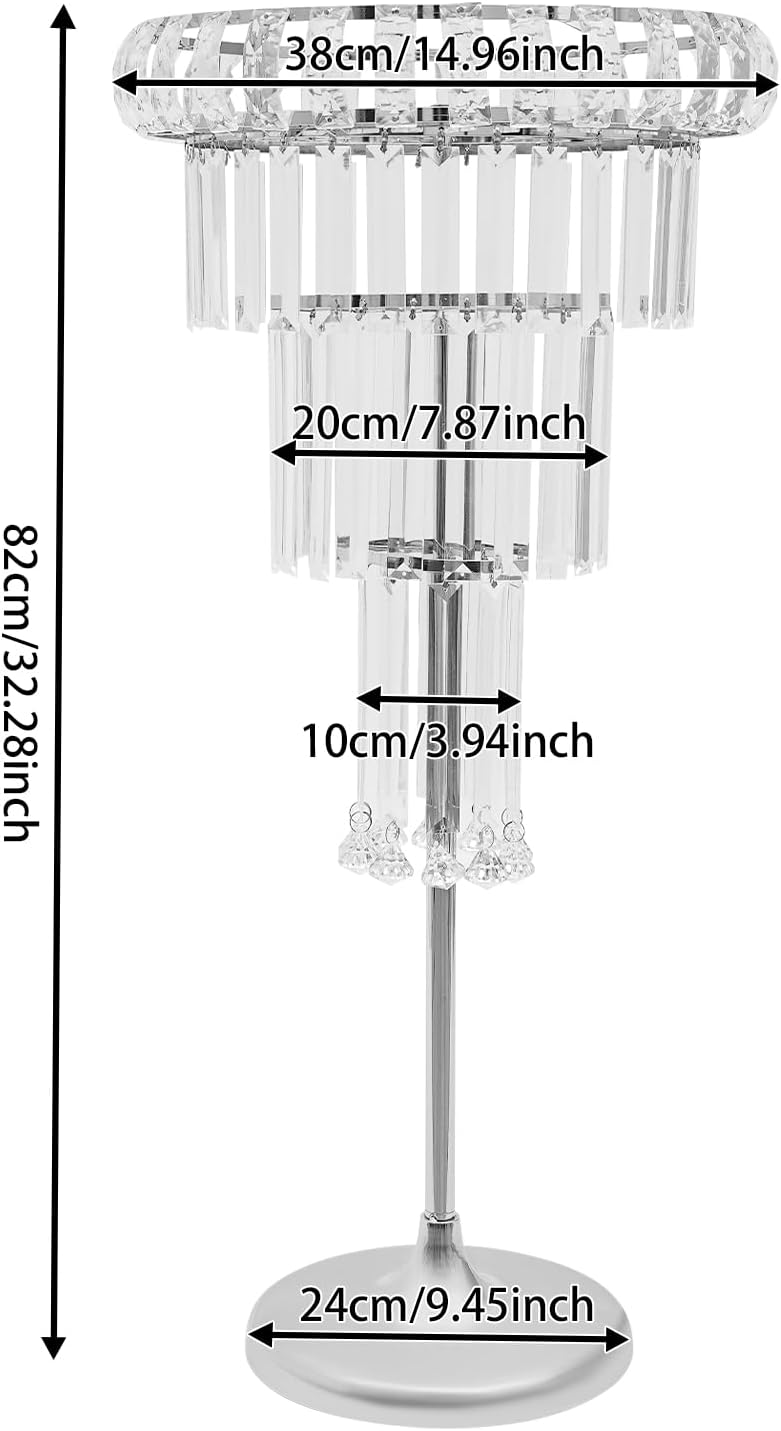 2PCS 4Tier Wedding Centerpieces Crystal Vases, 32.3in Acrylic Flower Stand with Hanging Crystals,Round Chandelier Pedestal Stand for Party Table Decoration Lawn Hotel (Silver,w/Lamp)
