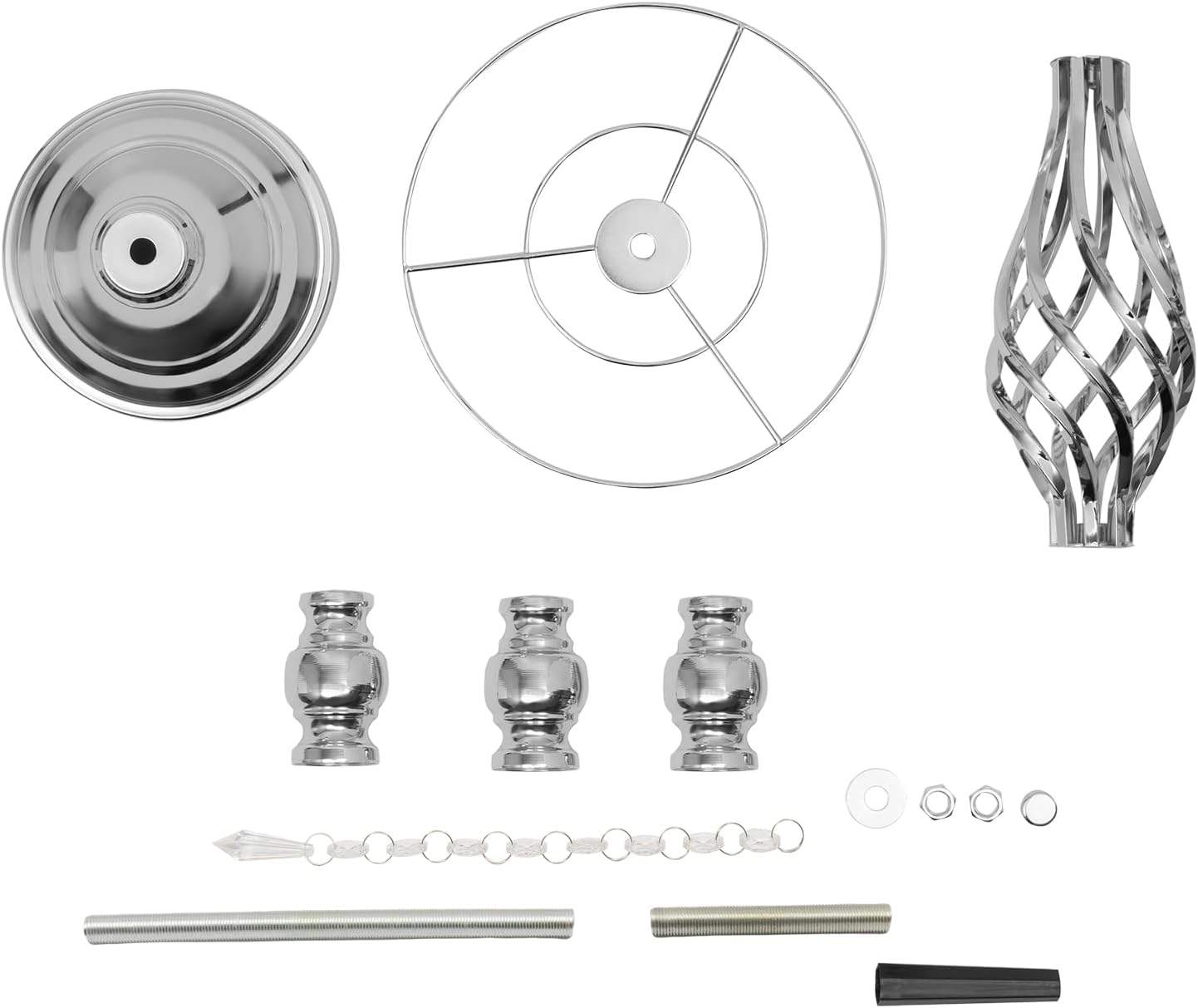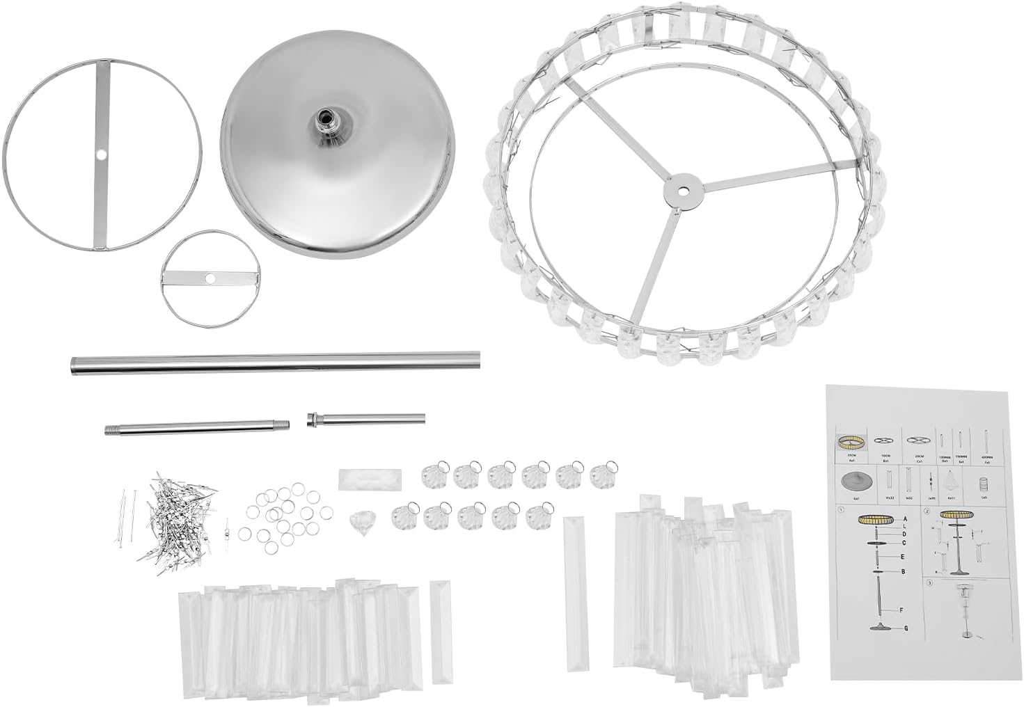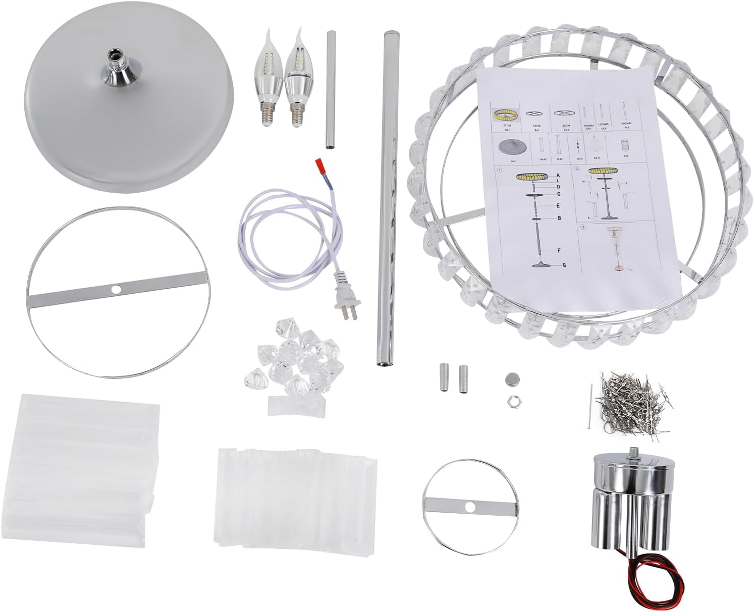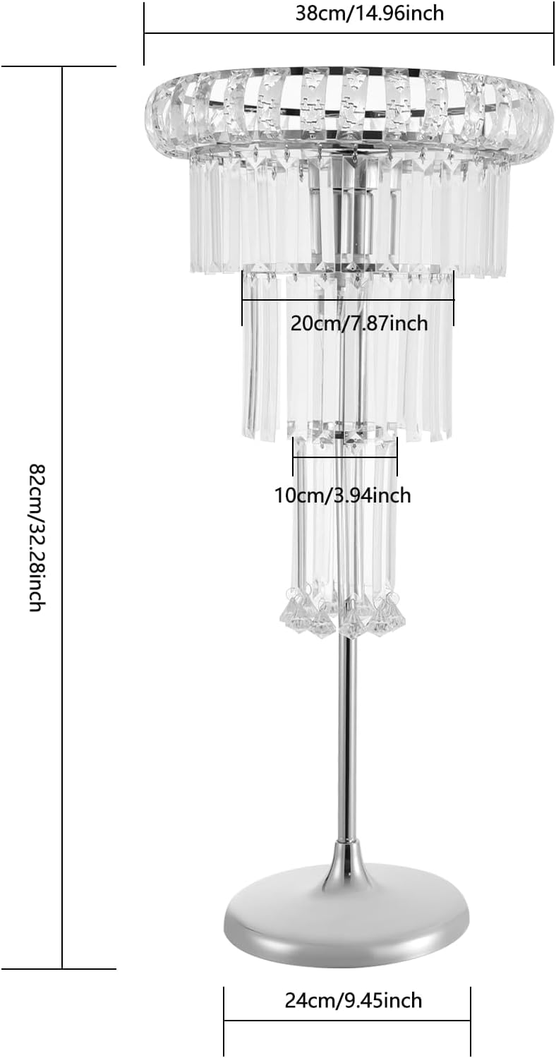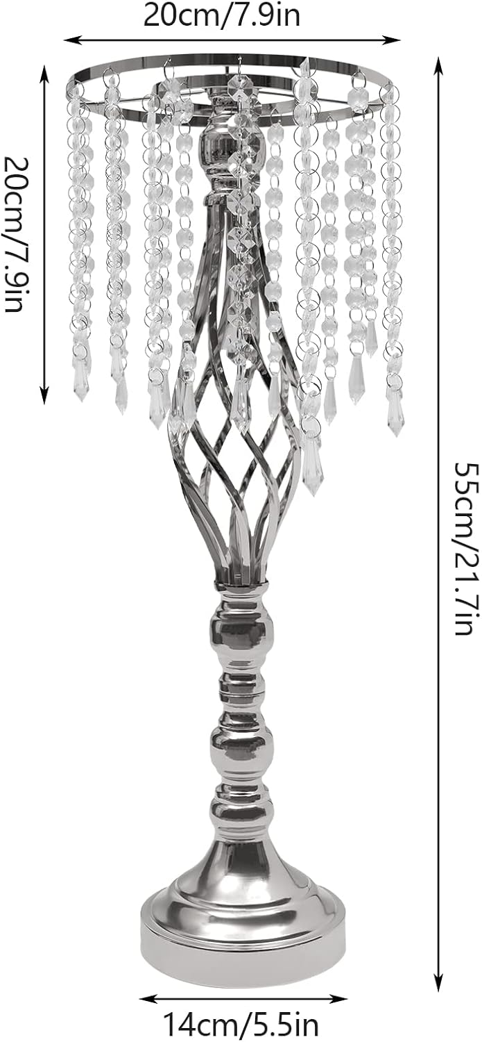 2PCS 4Tier Wedding Centerpieces Crystal Vases, 32.3in Acrylic Flower Stand with Hanging Crystals,Round Chandelier Pedestal Stand for Party Table Decoration Lawn Hotel (Silver,w/Lamp)