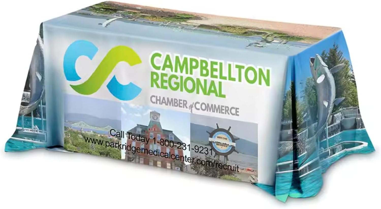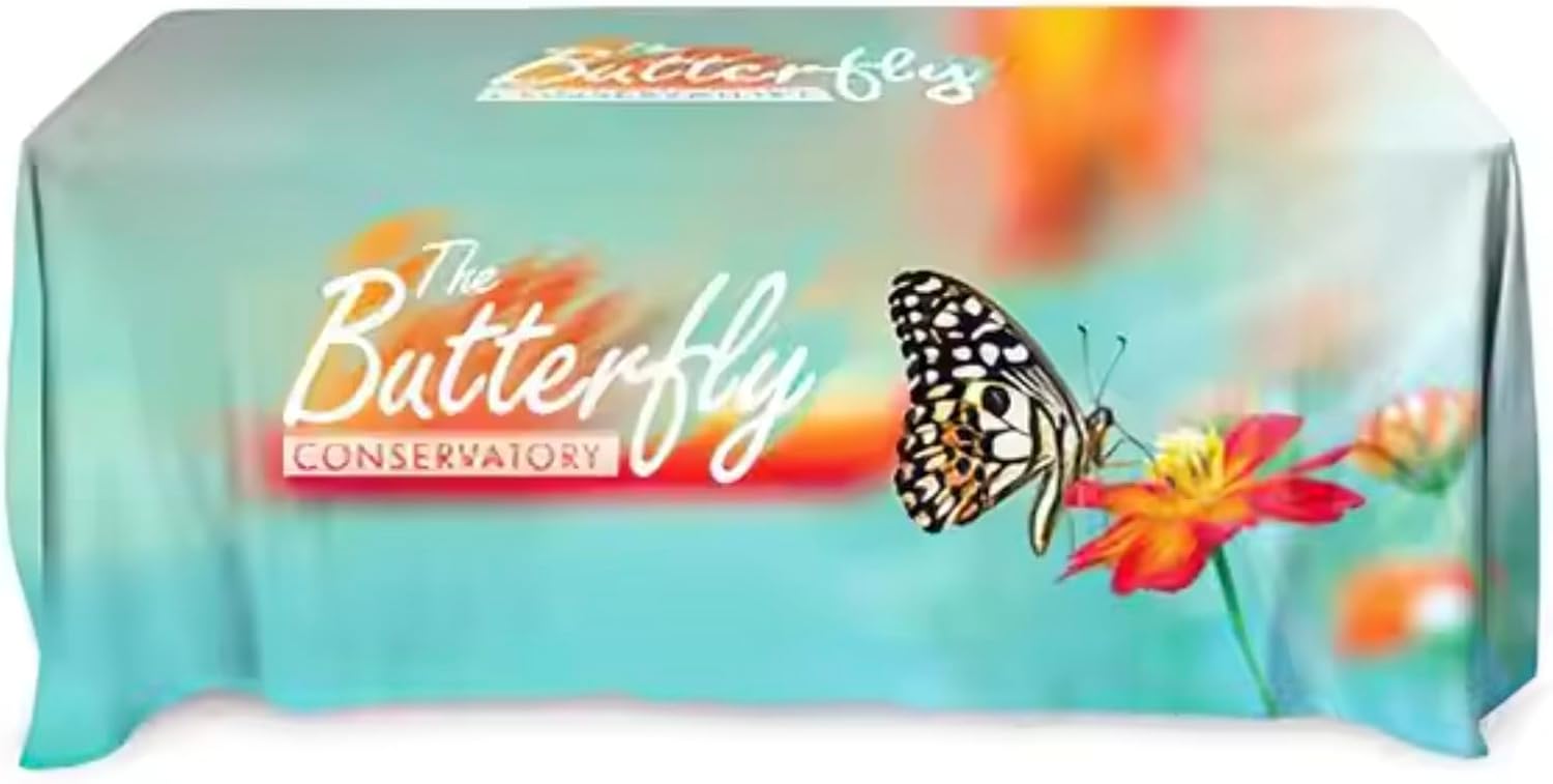 Custom Table Cloth with Business Logo 6ft Ships Next Day Made in USA - Wrinkle-Free Polyester - for Tradeshow, Promotion, Events, Personalized Table Throw Open Back (6ft Table)
