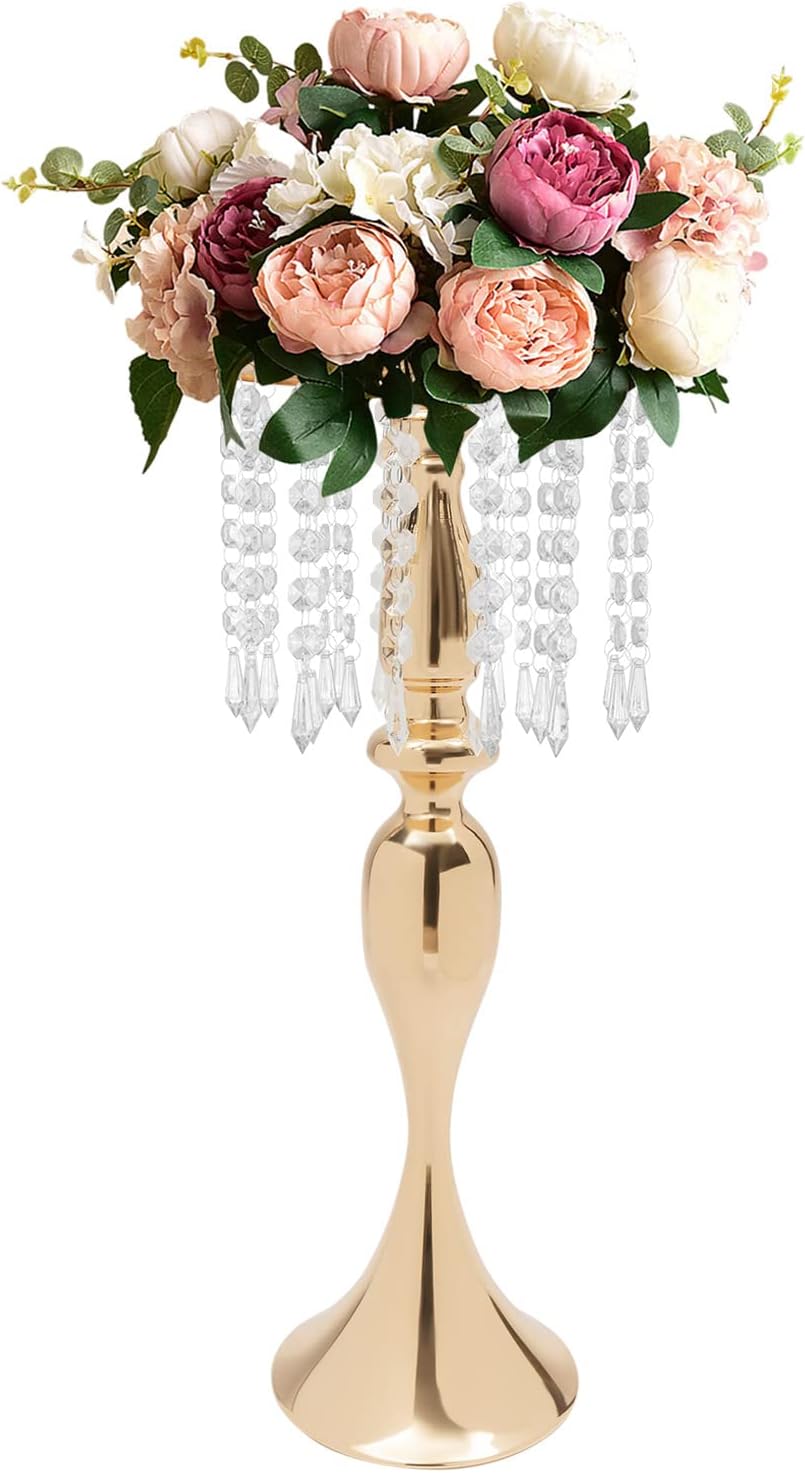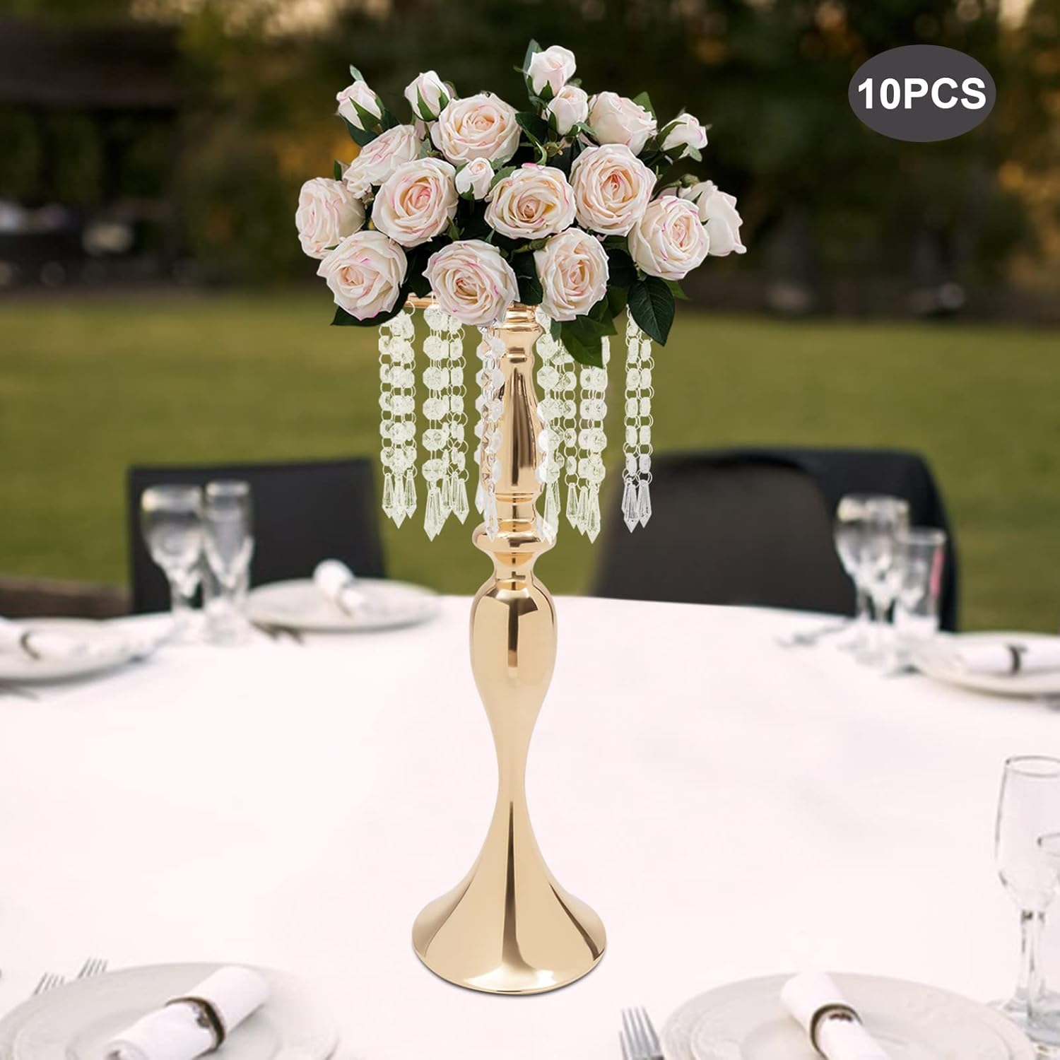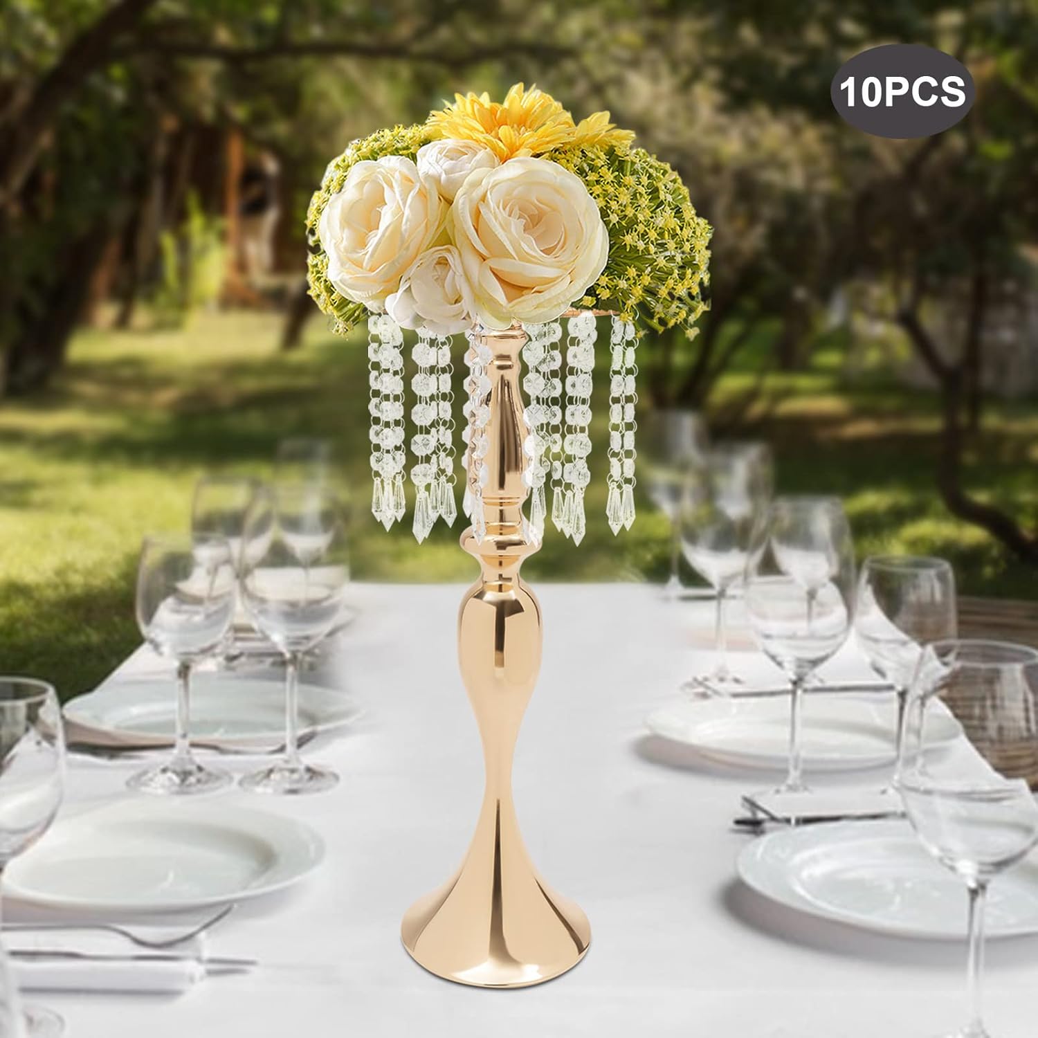 Crystal Flower Stand, 10 Pcs Wedding Centerpieces Table Decorations, Tall Tabletop Metal Flower Vases with Glass Beads Flower Stand for Party Wedding Aisle Decor (Gold)