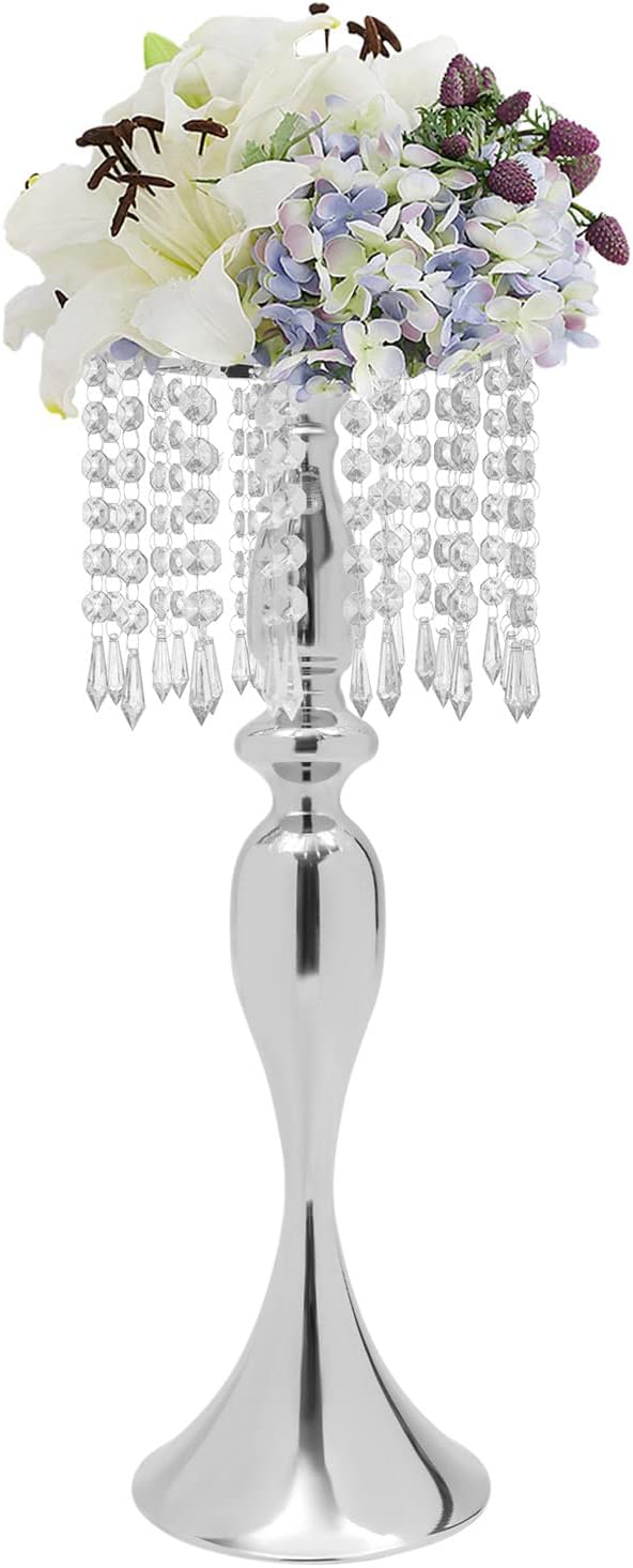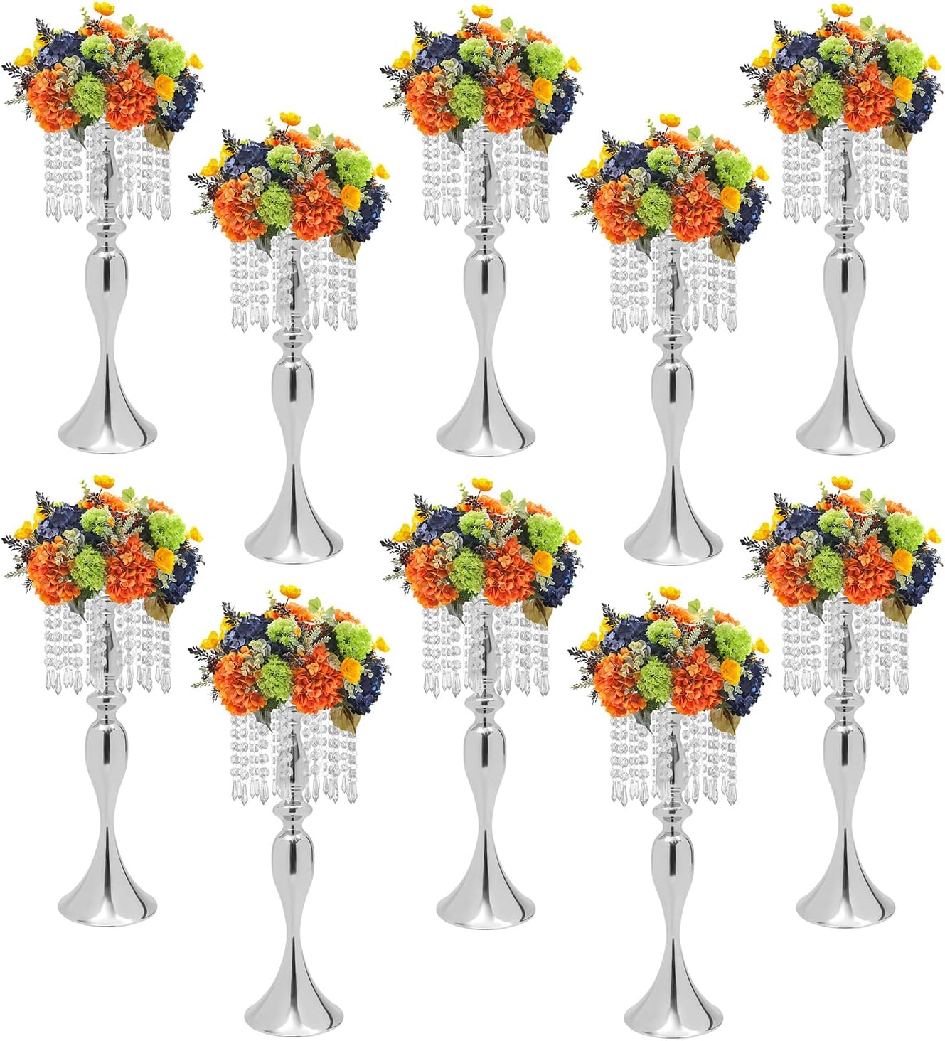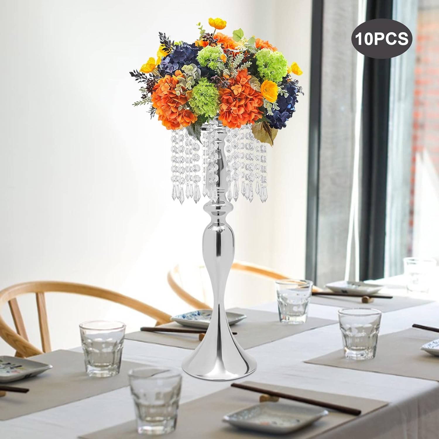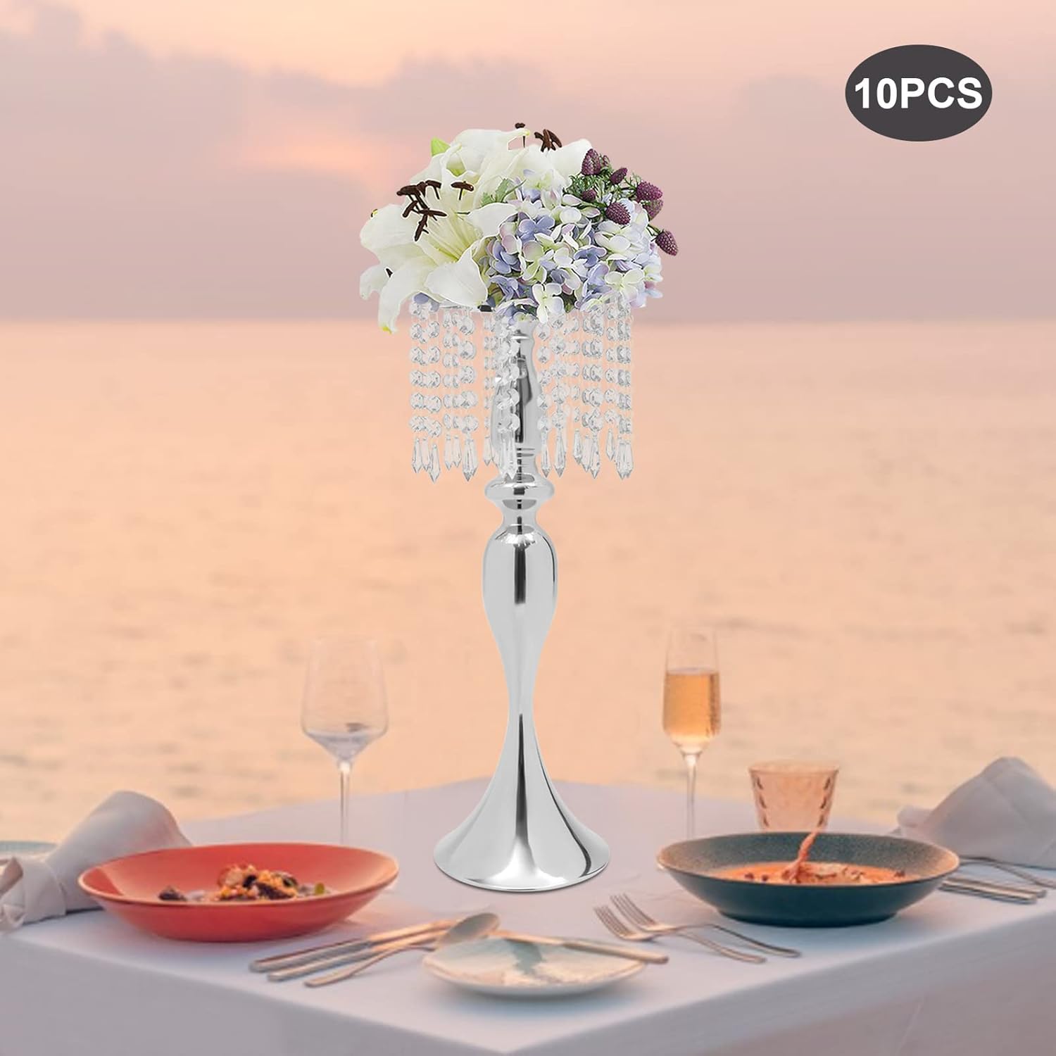 Crystal Flower Stand, 10 Pcs Wedding Centerpieces Table Decorations, Tall Tabletop Metal Flower Vases with Glass Beads Flower Stand for Party Wedding Aisle Decor (Gold)