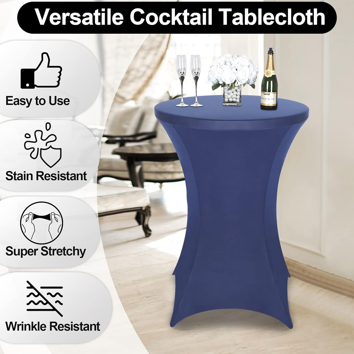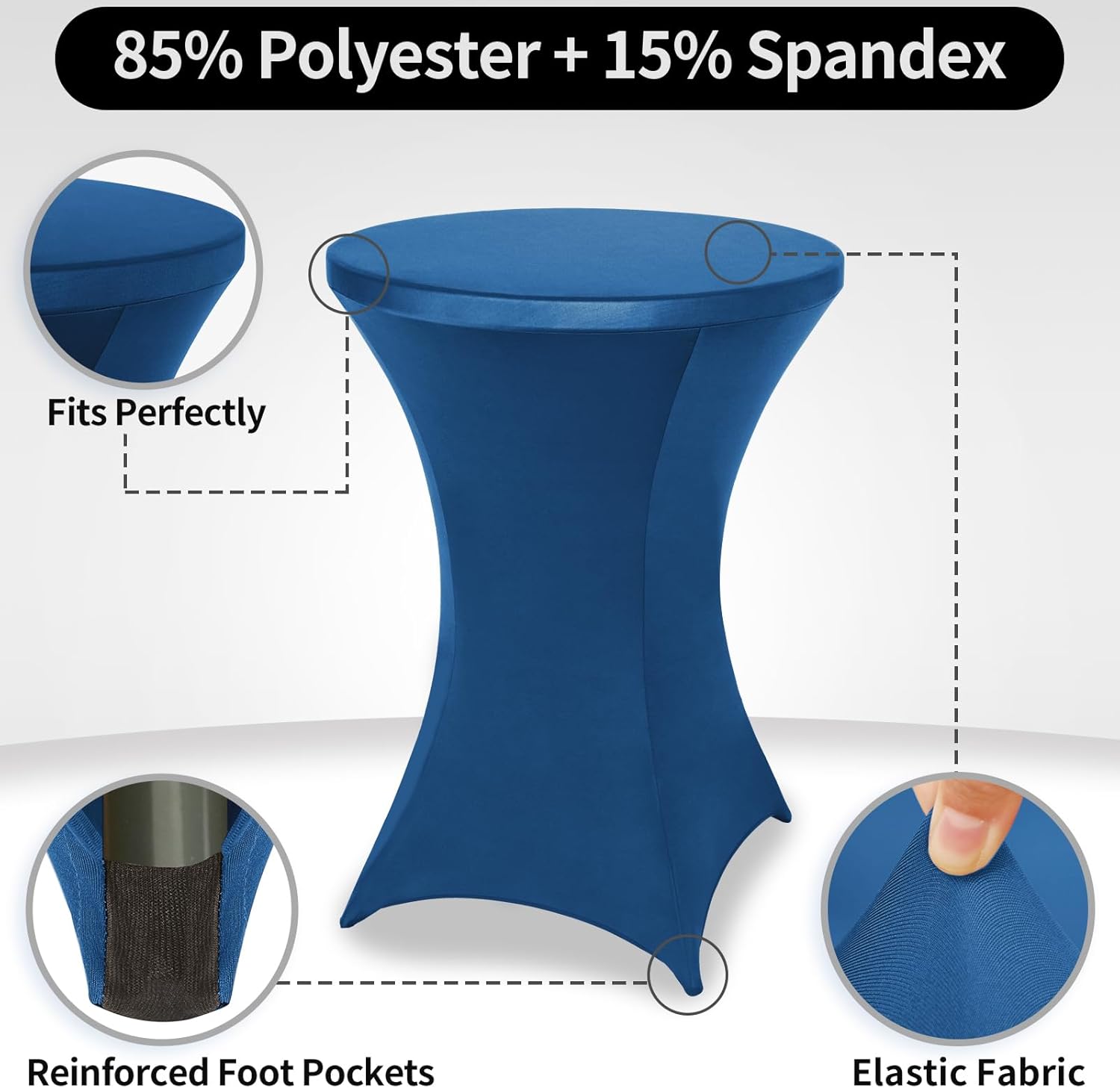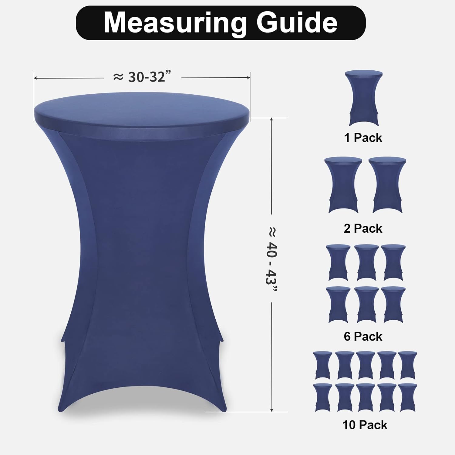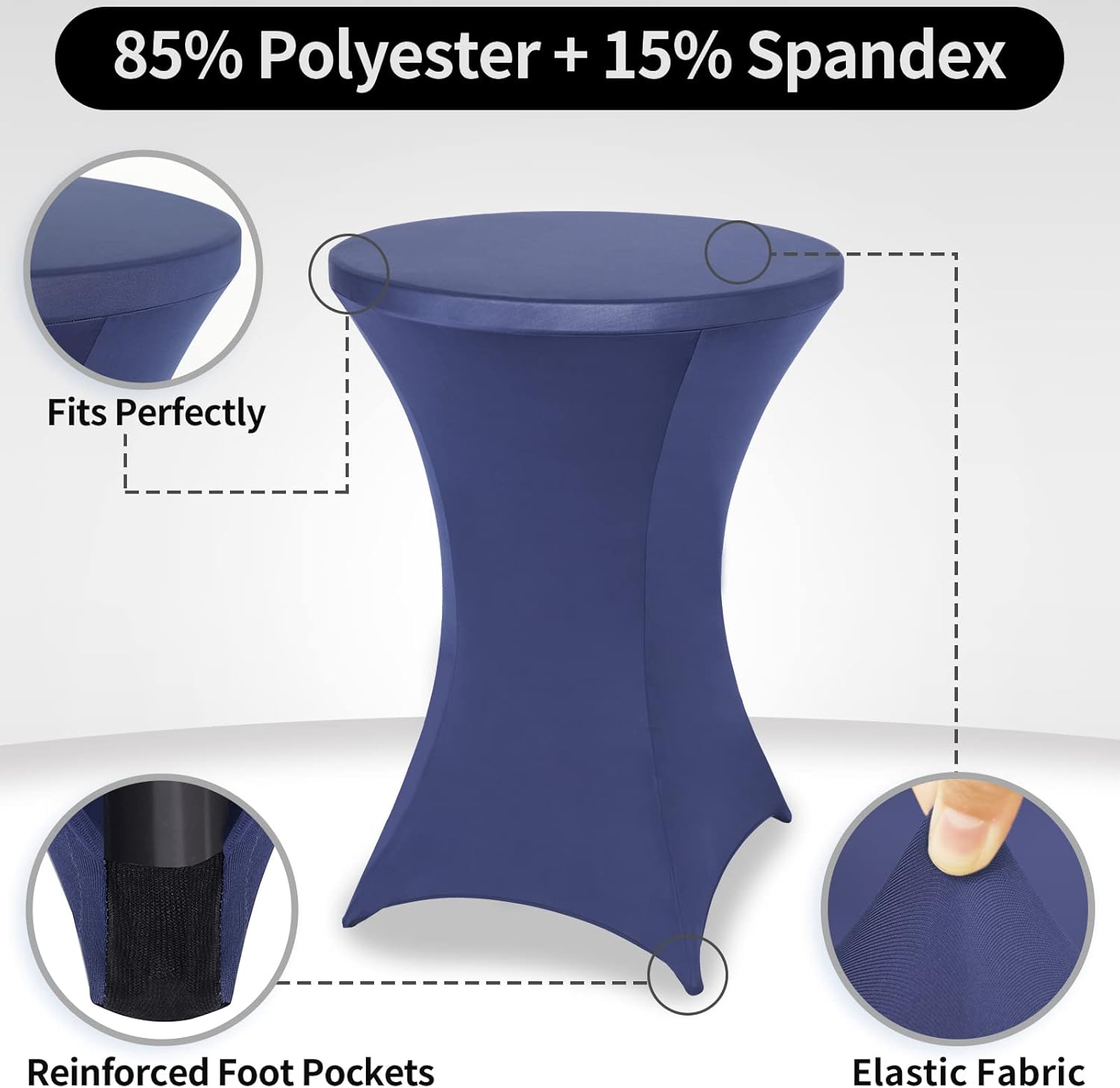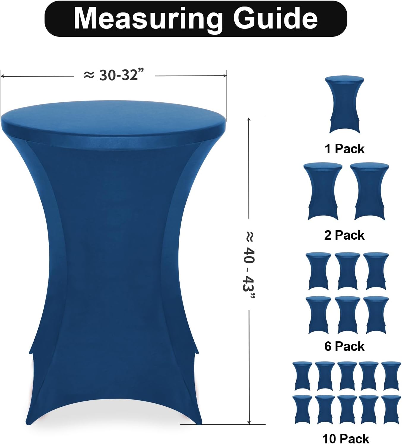 FestiCorp 6 Pack Spandex Cocktail Table Covers Fitted Clothes, Elastic Round Table Cover, Stretch Tablecloth for Party, Bar, Wedding, Birthday, Banquet, Navy, 30"-32" Diameter x 40"-43" Height