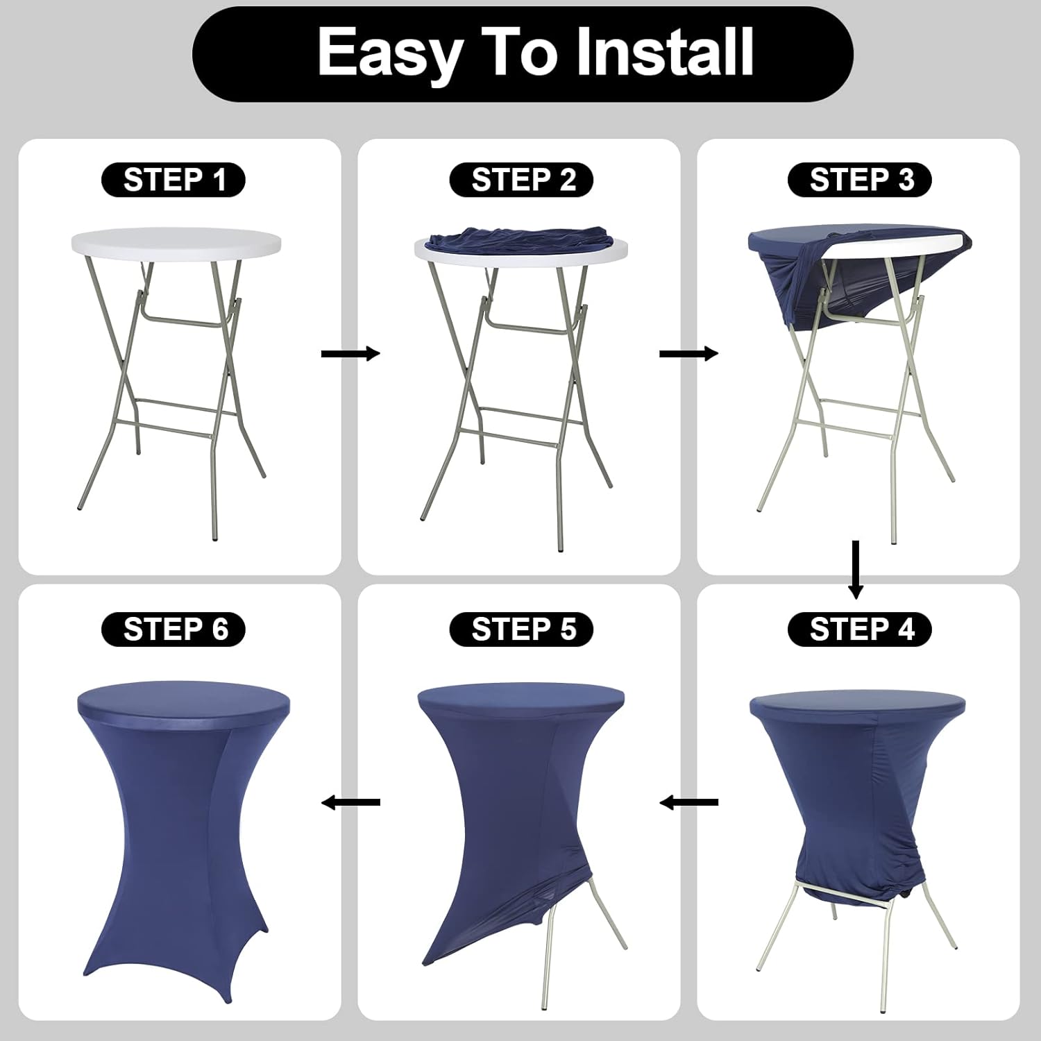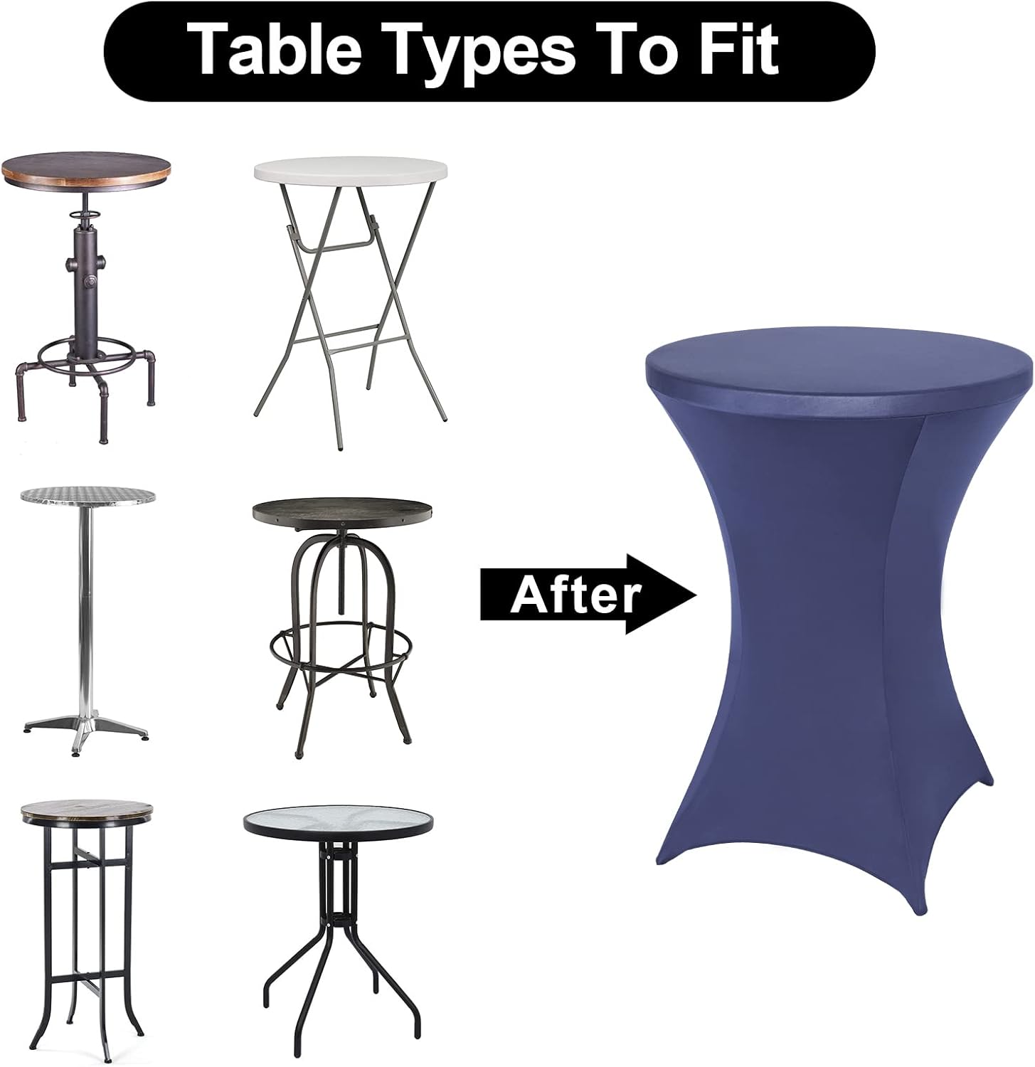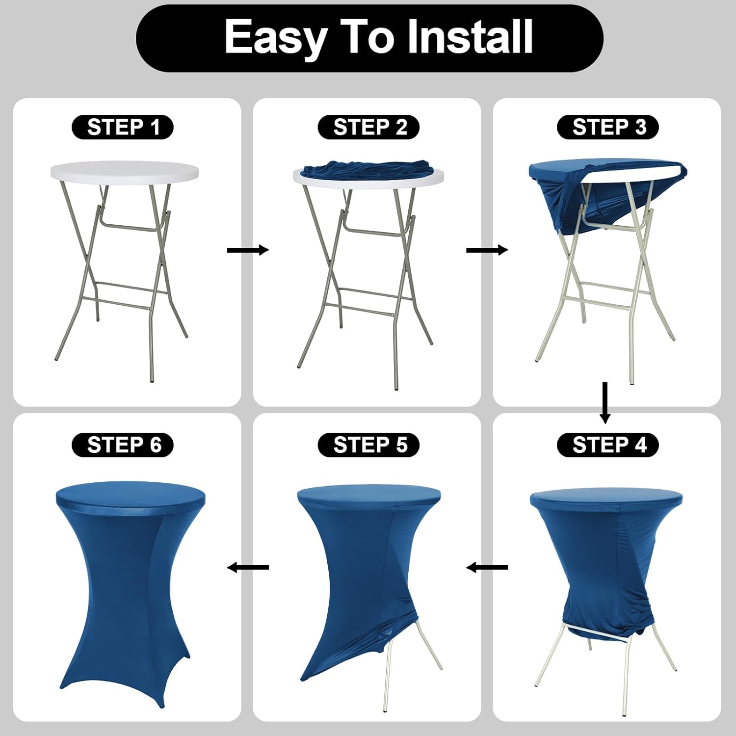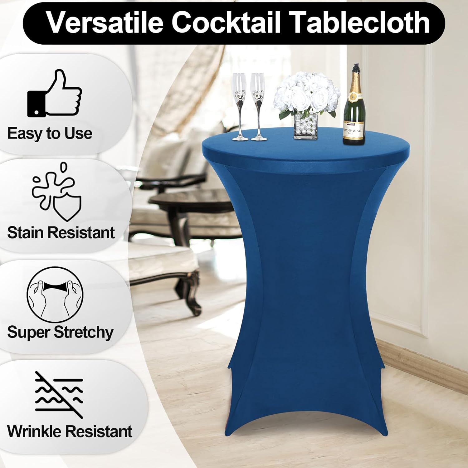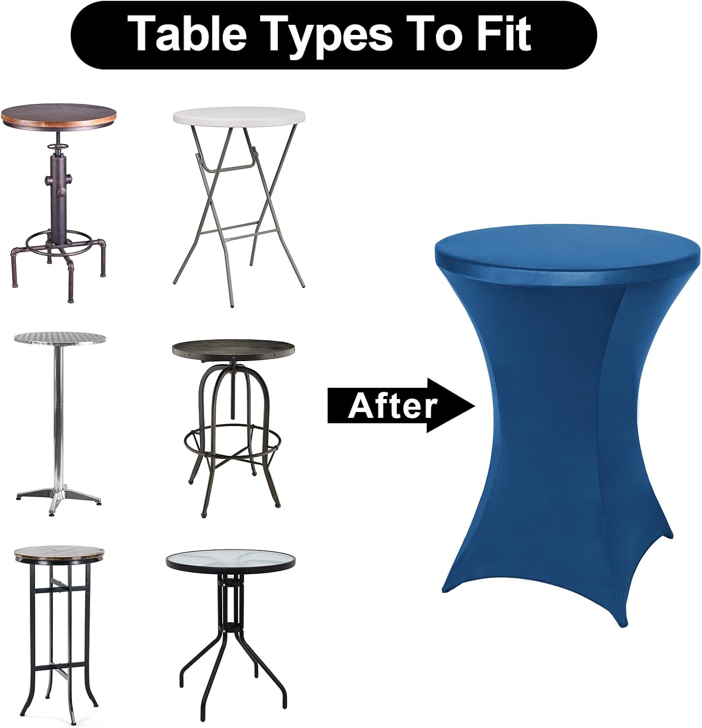 FestiCorp 6 Pack Spandex Cocktail Table Covers Fitted Clothes, Elastic Round Table Cover, Stretch Tablecloth for Party, Bar, Wedding, Birthday, Banquet, Navy, 30"-32" Diameter x 40"-43" Height
