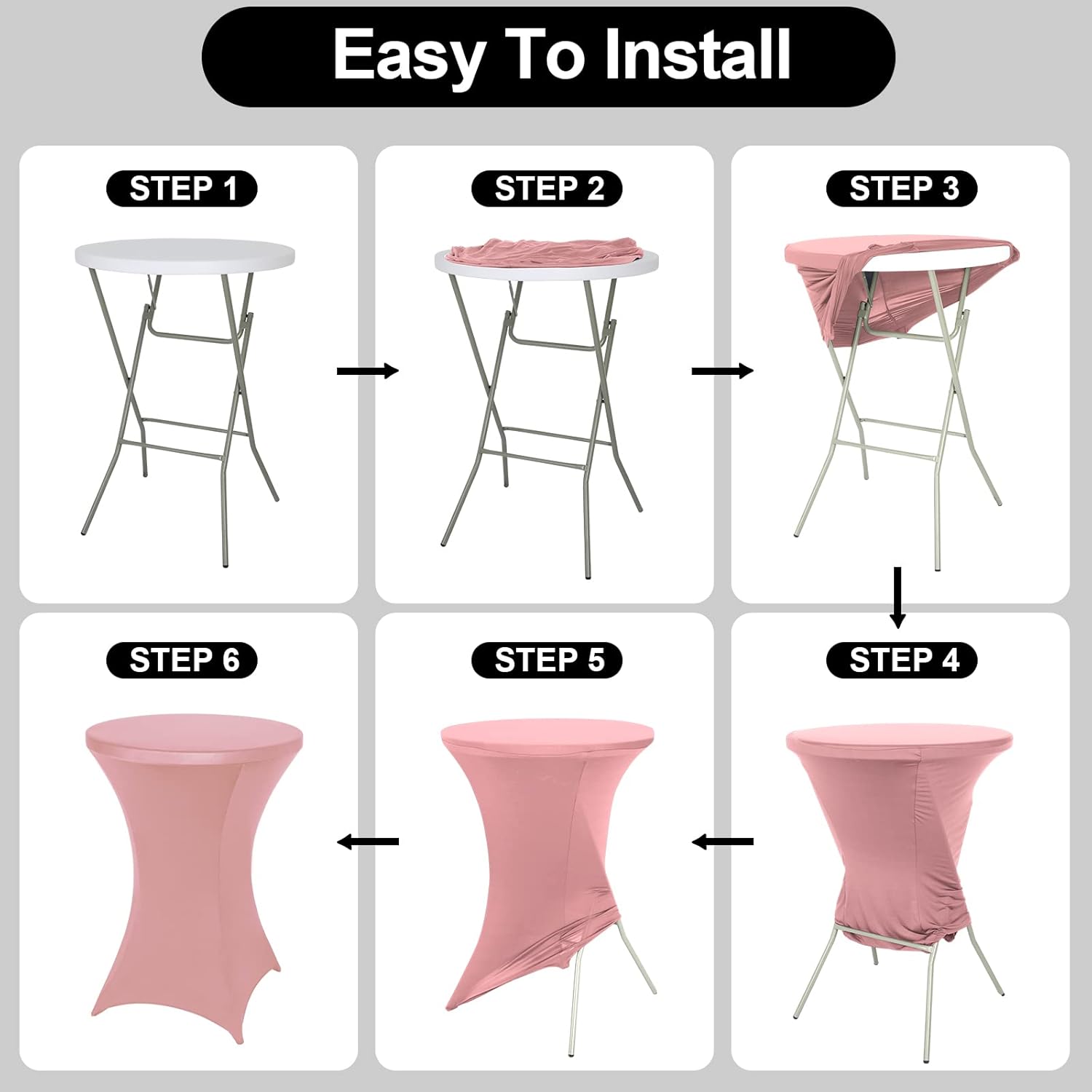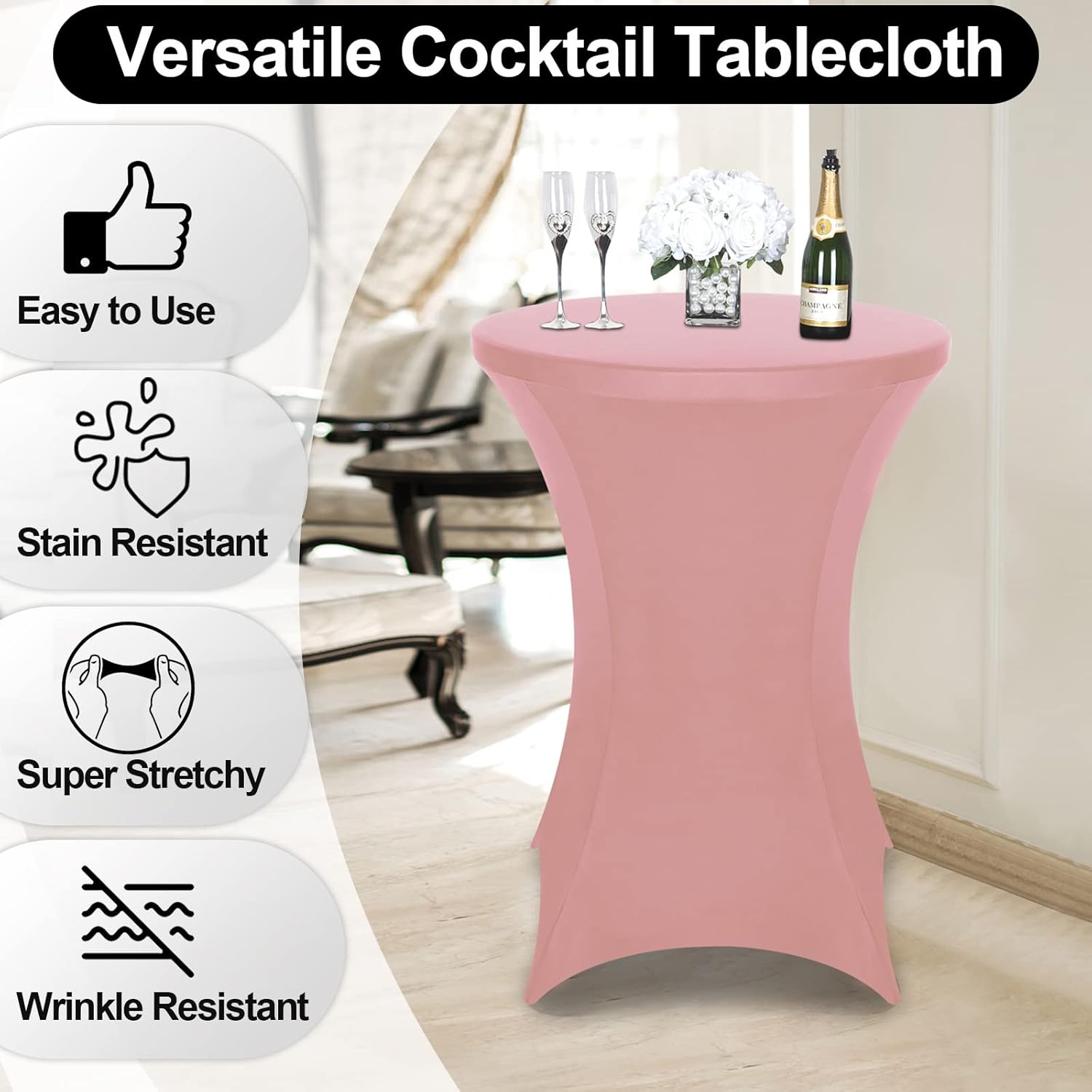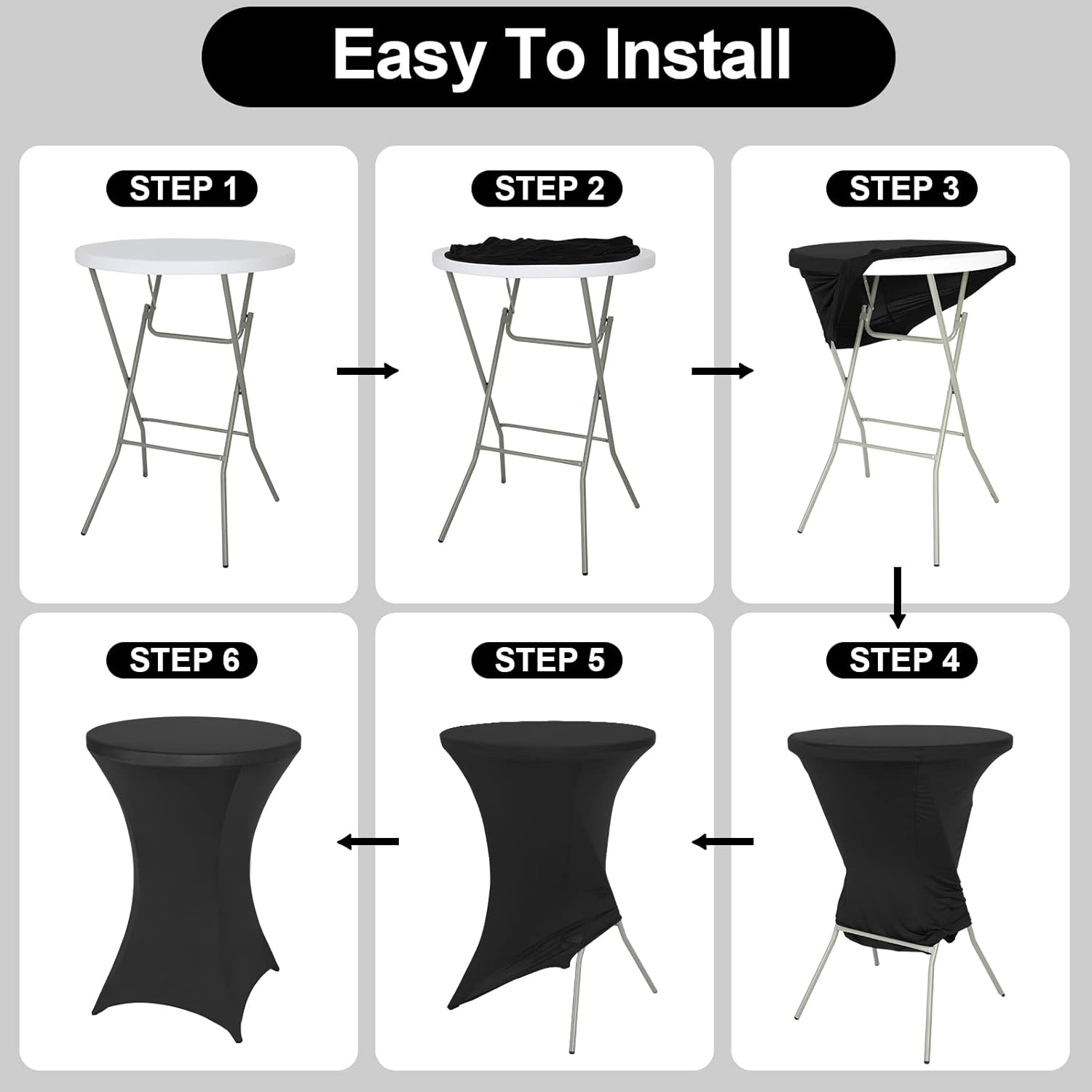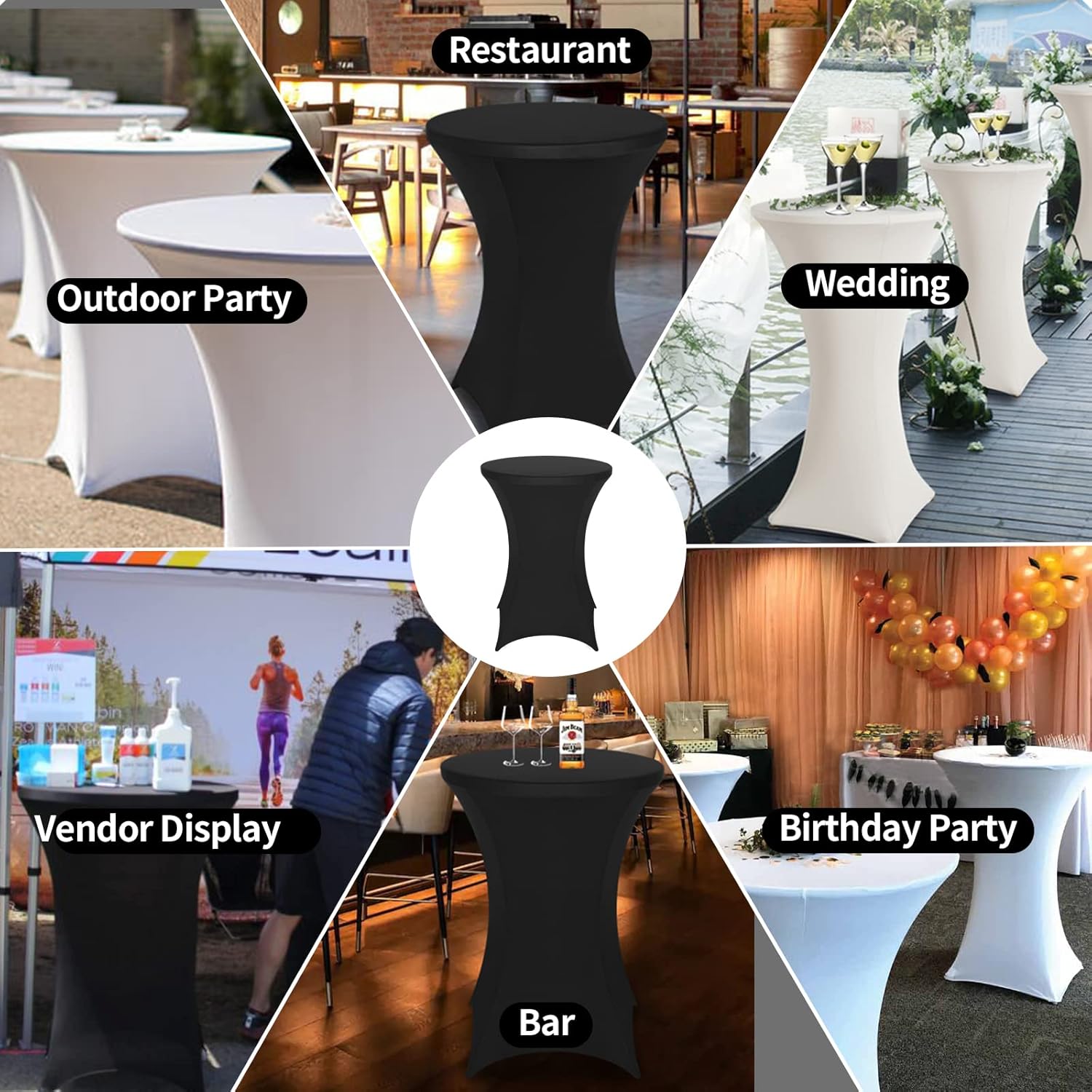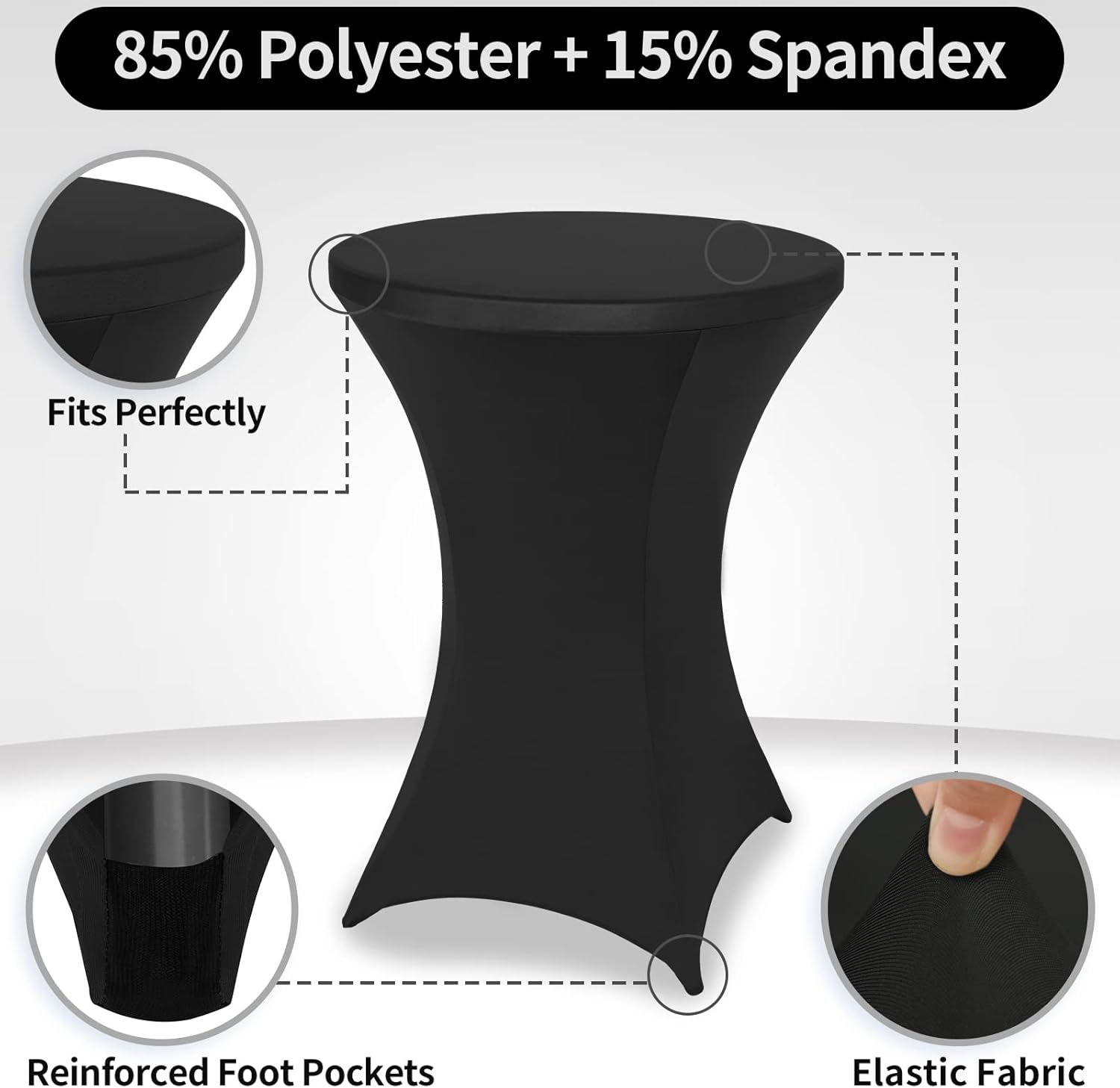 FestiCorp 6 Pack Spandex Cocktail Table Covers Fitted Clothes, Elastic Round Table Cover, Stretch Tablecloth for Party, Bar, Wedding, Birthday, Banquet, Navy, 30"-32" Diameter x 40"-43" Height