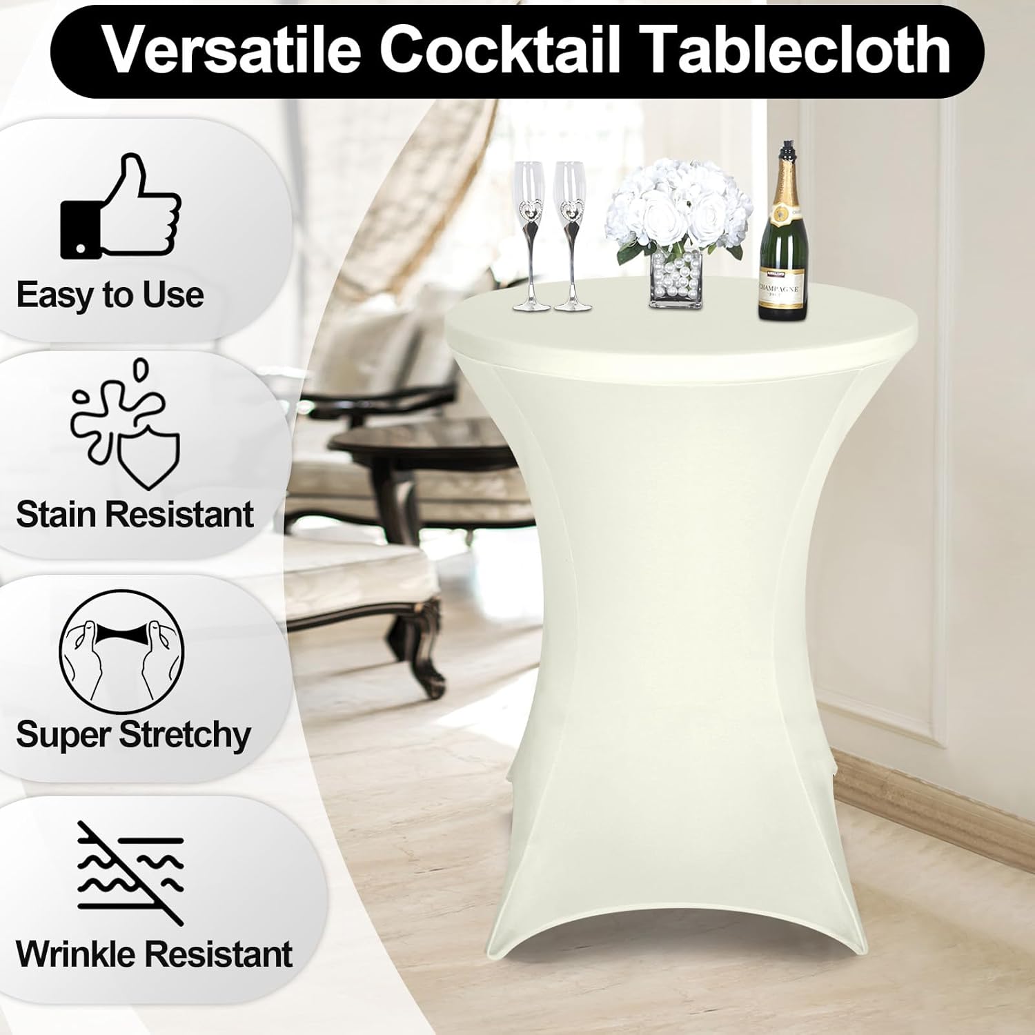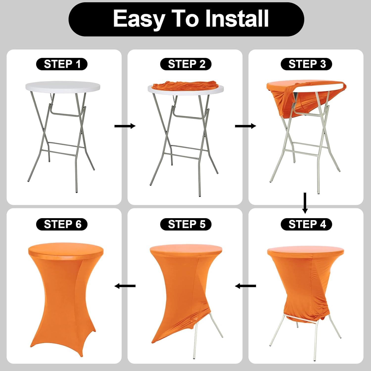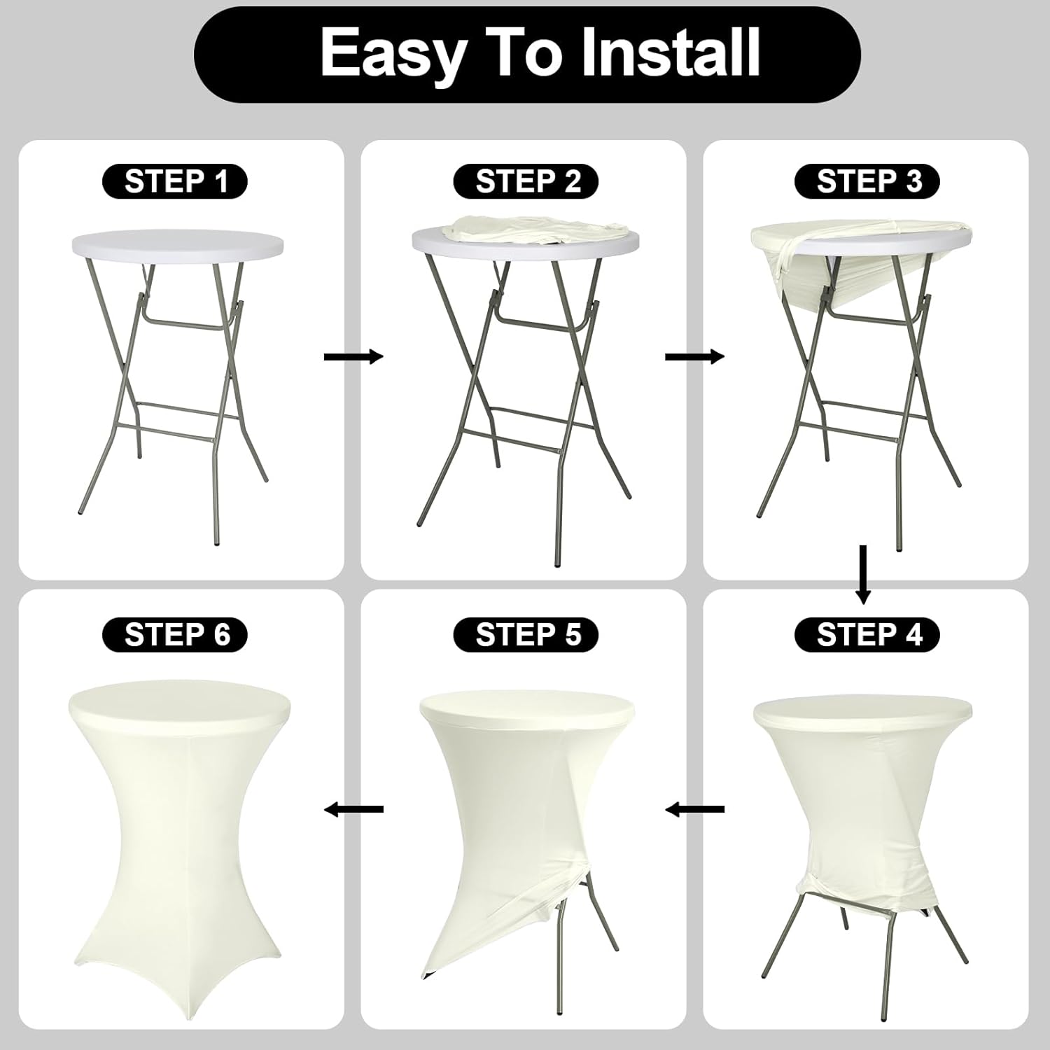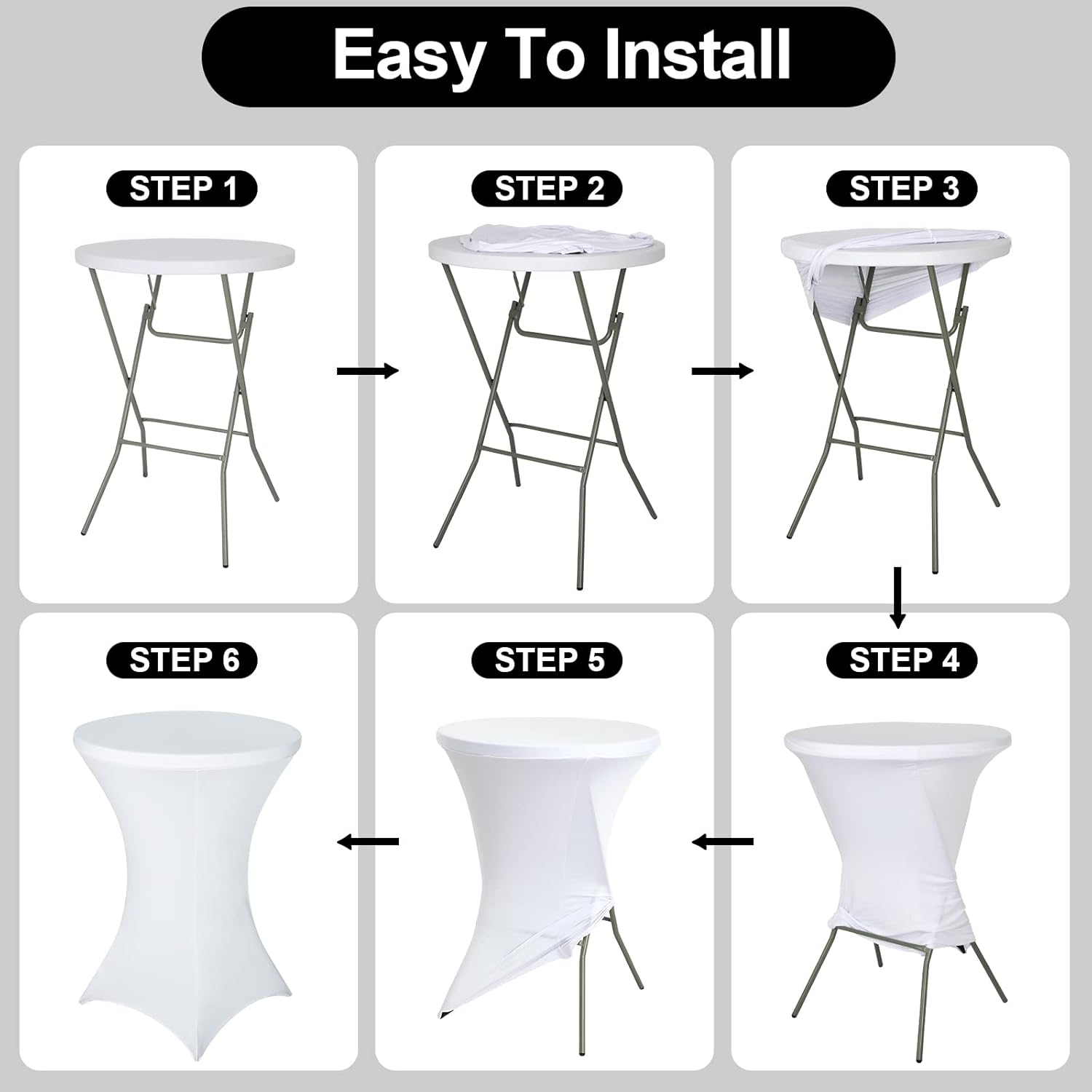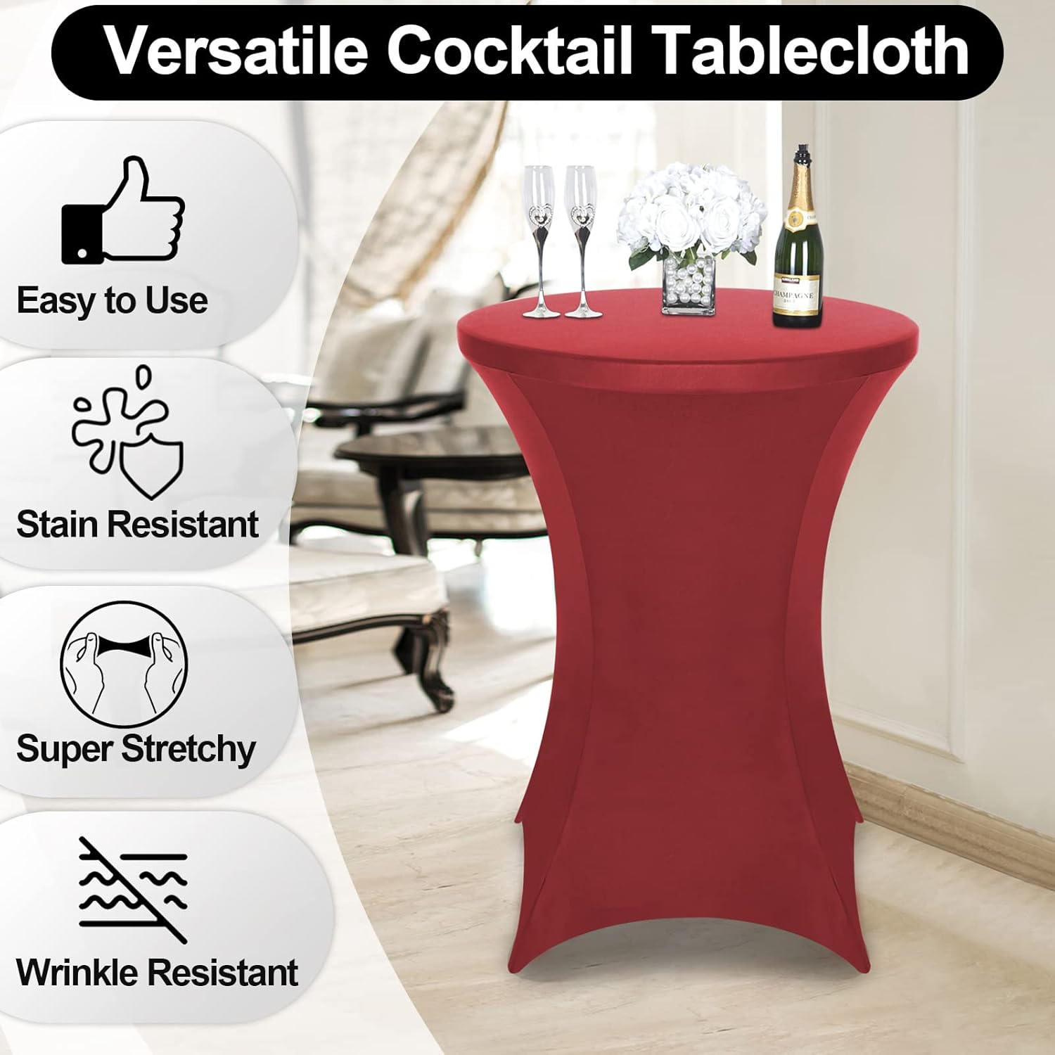 FestiCorp 6 Pack Spandex Cocktail Table Covers Fitted Clothes, Elastic Round Table Cover, Stretch Tablecloth for Party, Bar, Wedding, Birthday, Banquet, Navy, 30"-32" Diameter x 40"-43" Height