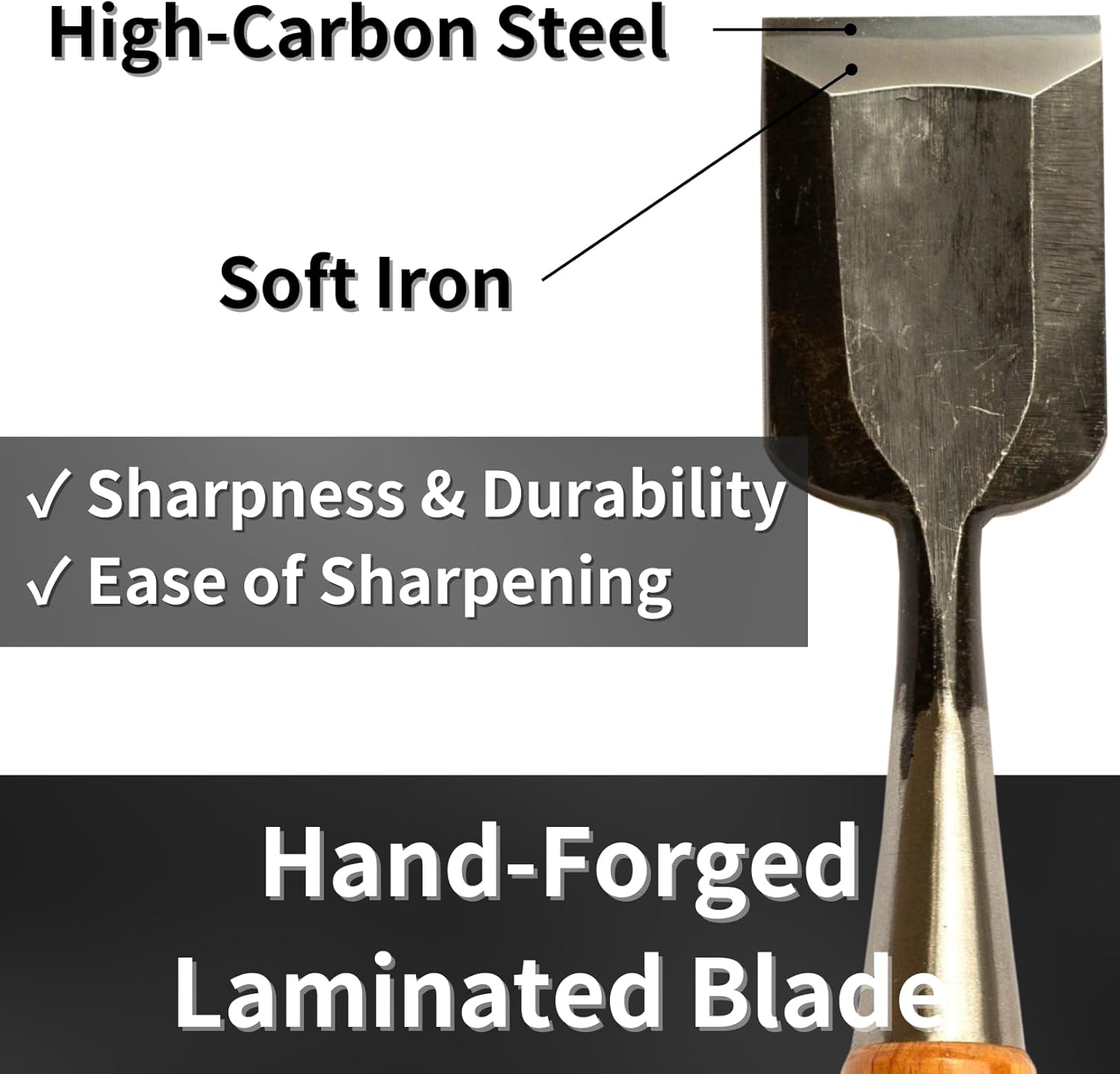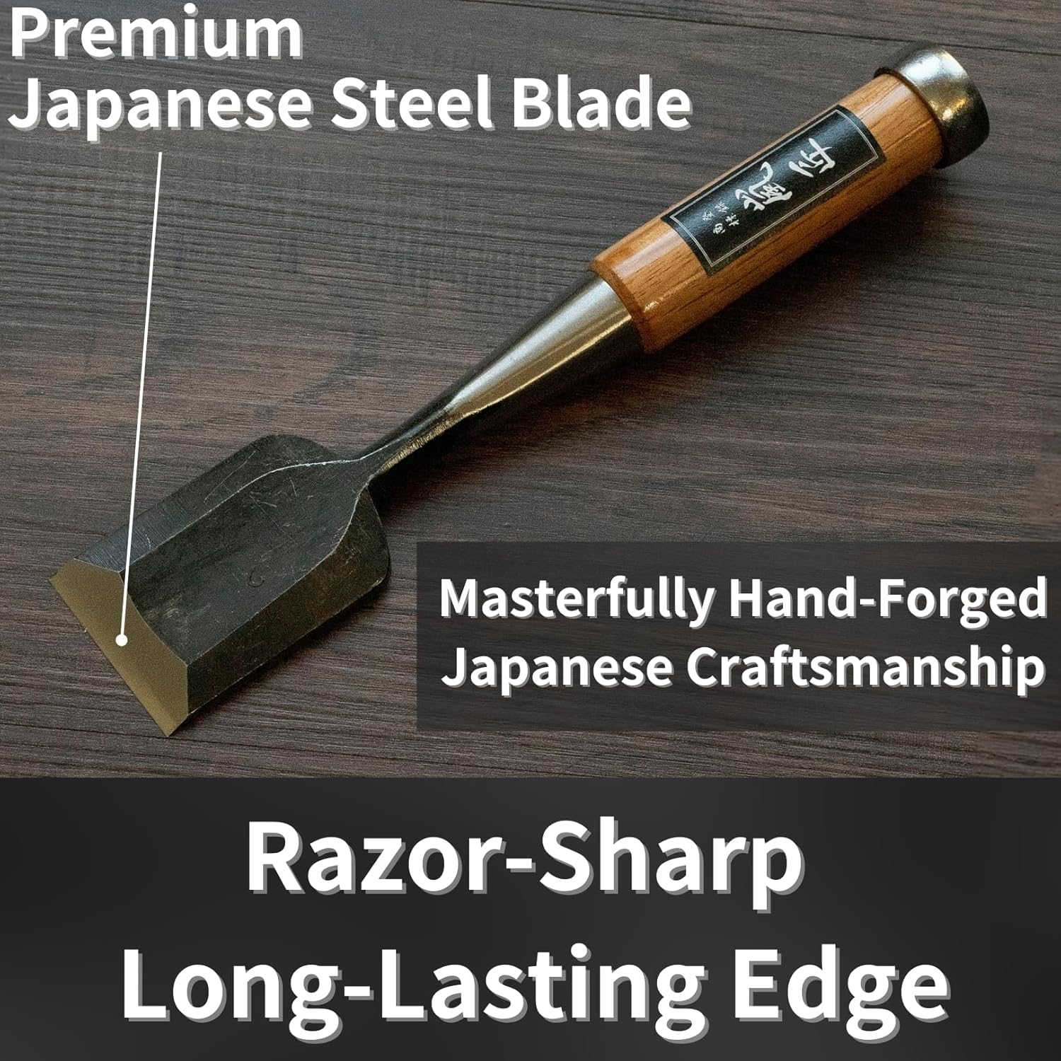 Japanese Chisel 42mm 1-5/8" Wide Chisel Oire Nomi, Professional Wood Chisel for Woodworking, Japanese Red Oak Handle, Made in JAPAN