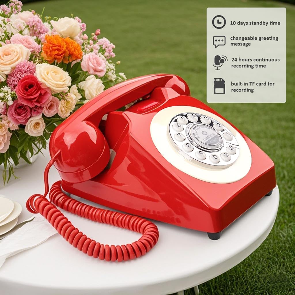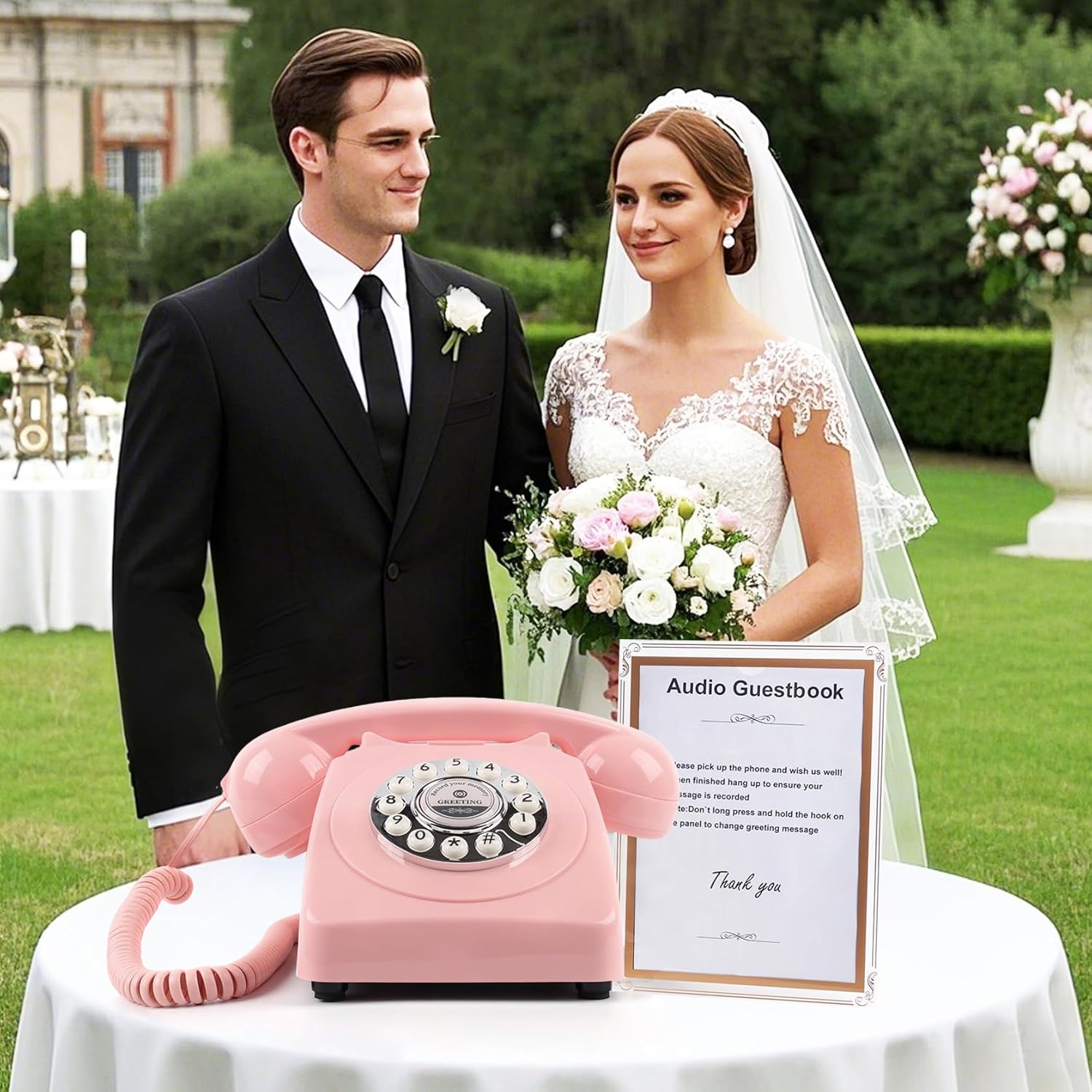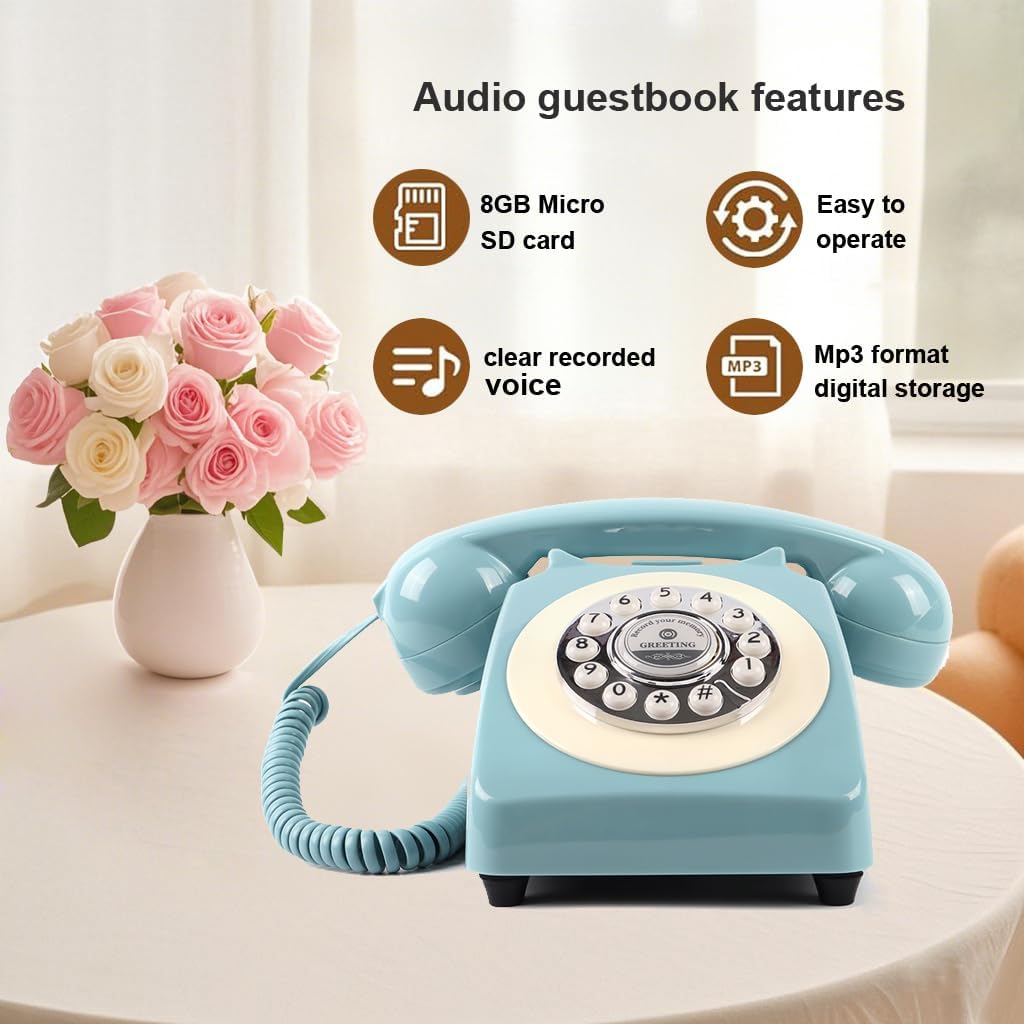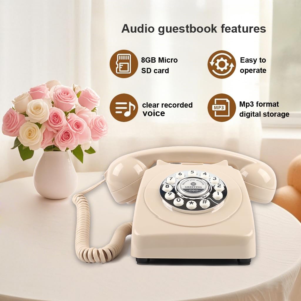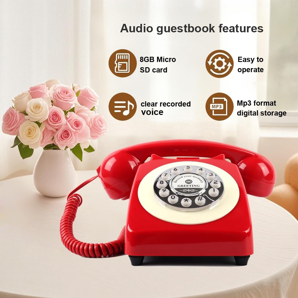 Audio Guest Book Wedding Phone,Audio Guestbook Phone Vintage Style Audio Message Voicemail for Graduation Retirement Party Birthdays Baby Shower Special Occasions (Pink)