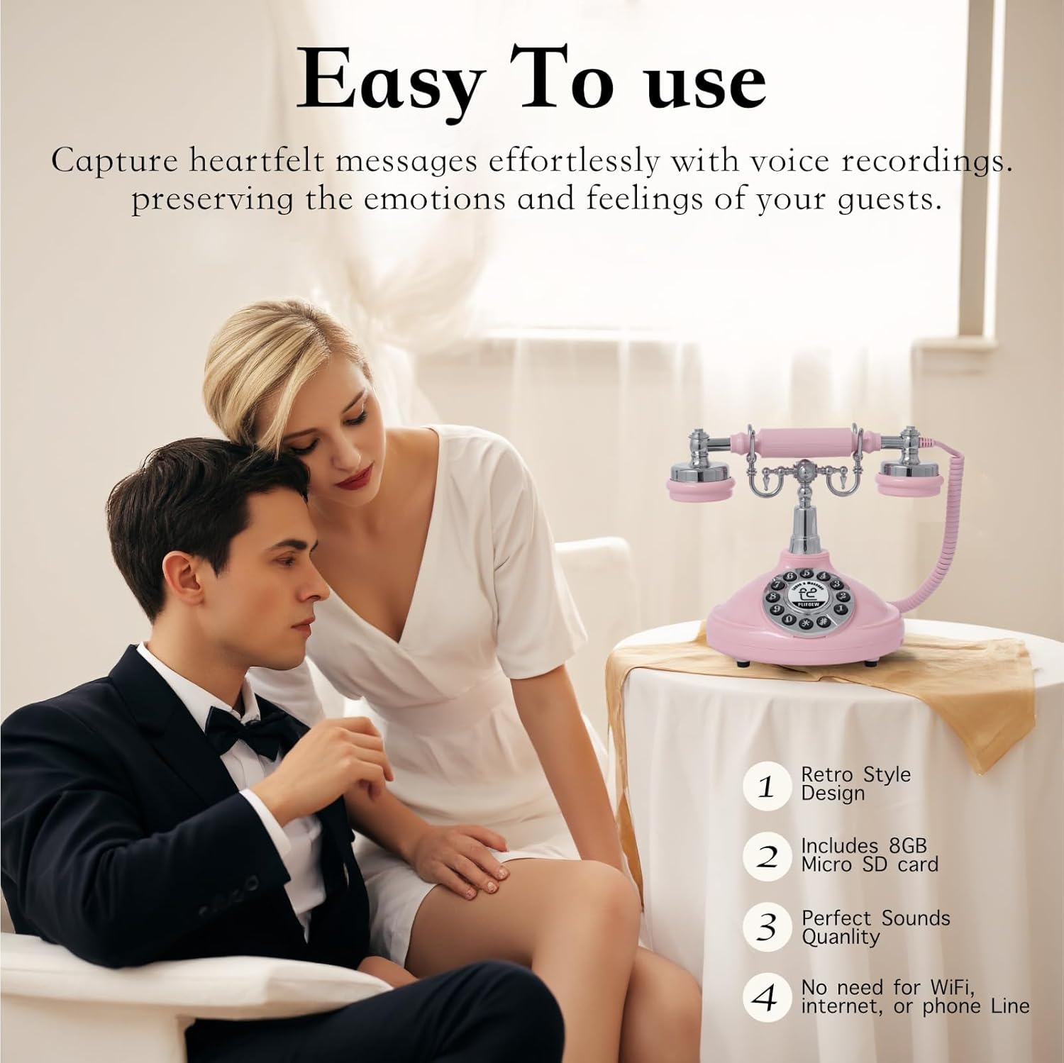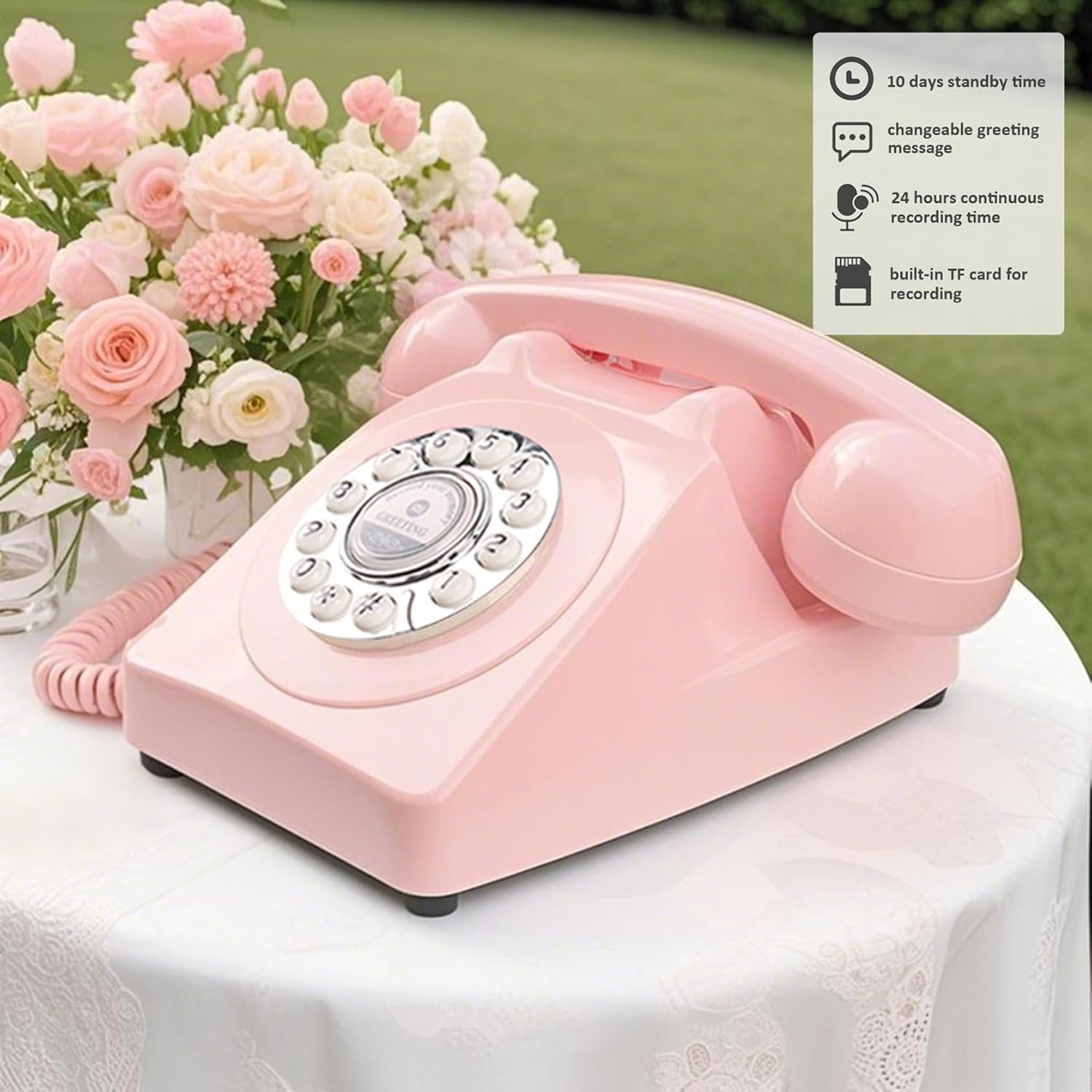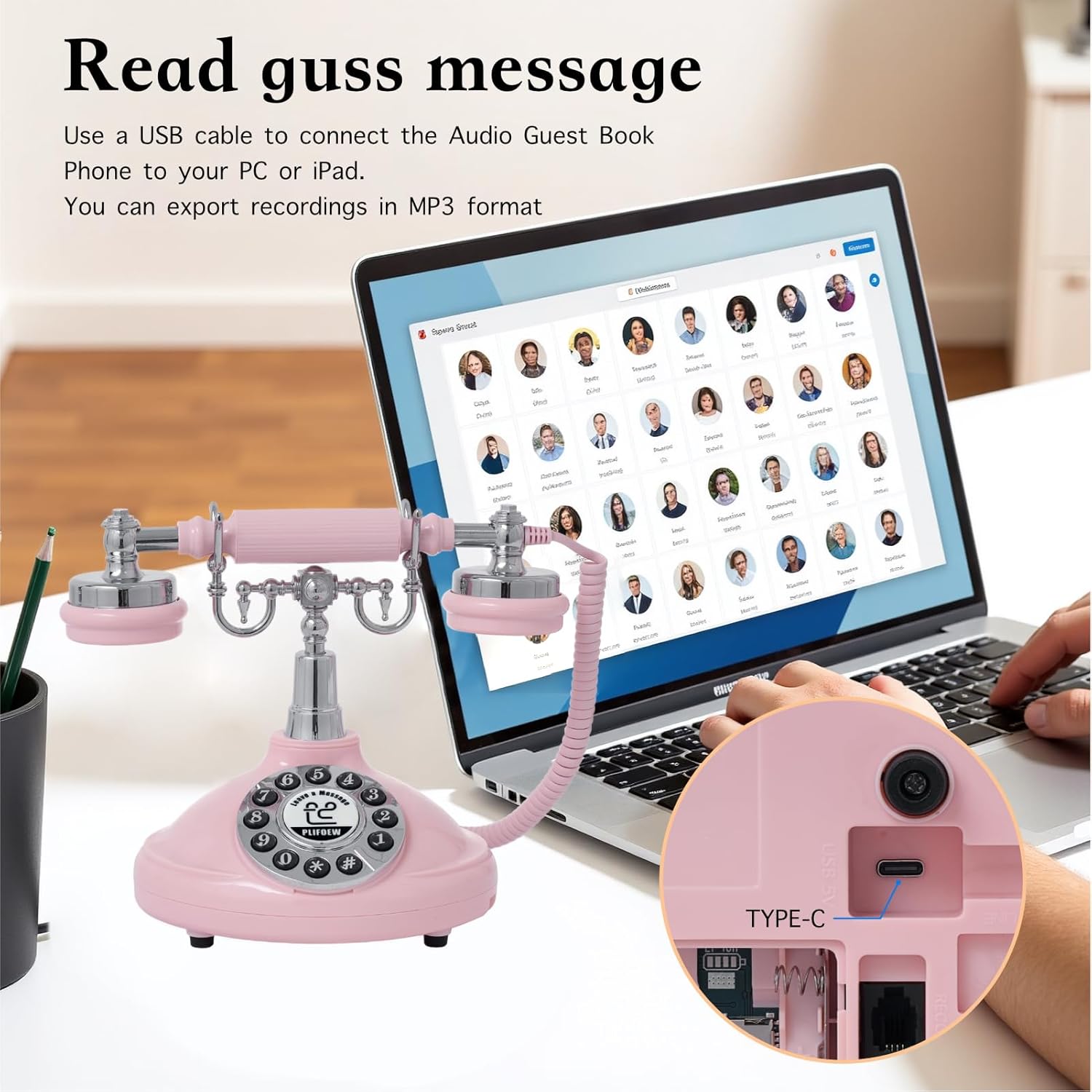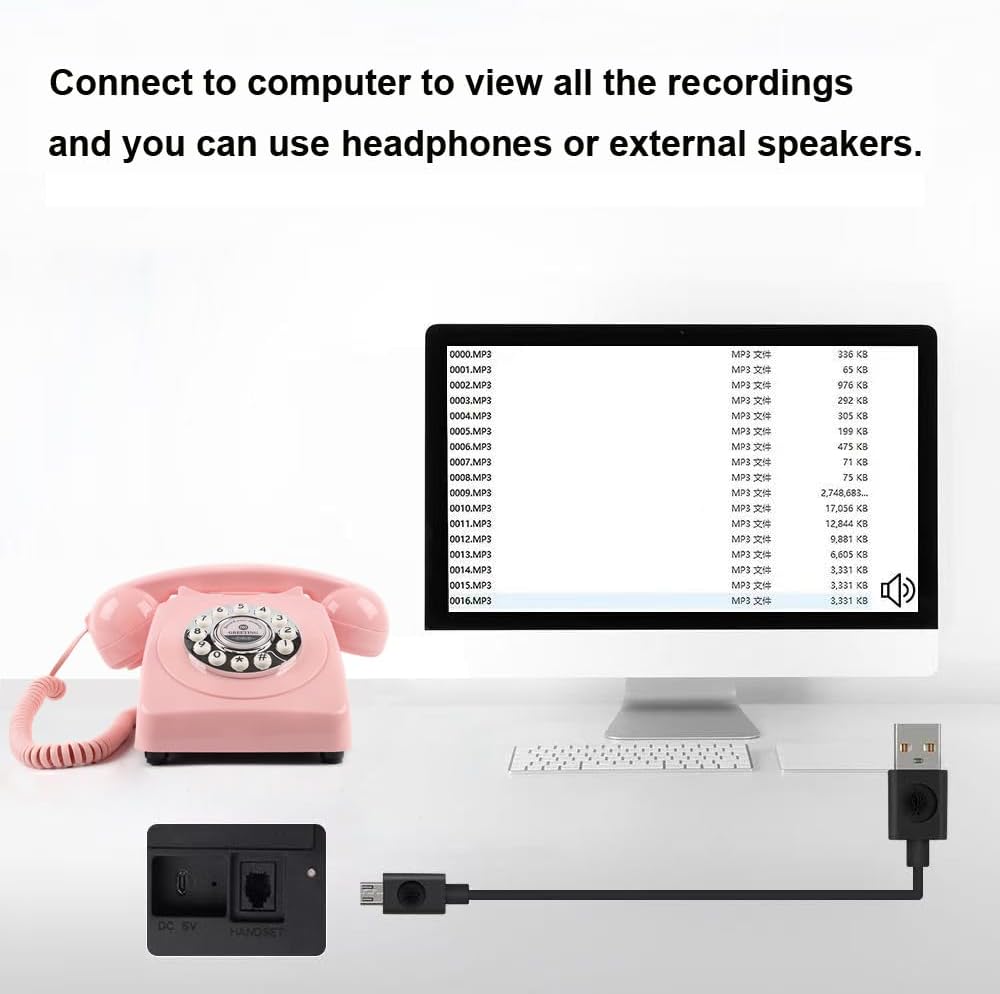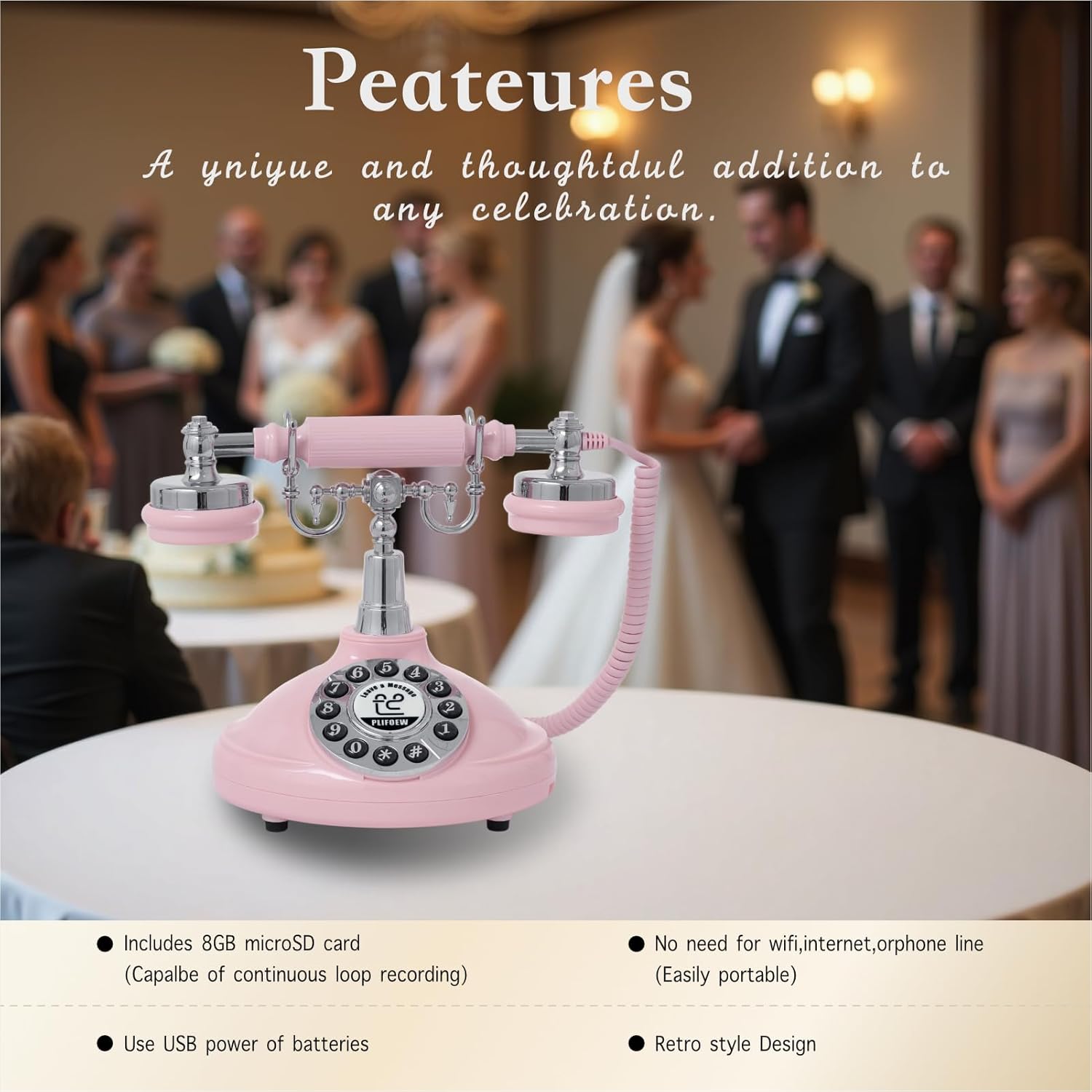 Audio Guest Book Wedding Phone,Audio Guestbook Phone Vintage Style Audio Message Voicemail for Graduation Retirement Party Birthdays Baby Shower Special Occasions (Pink)