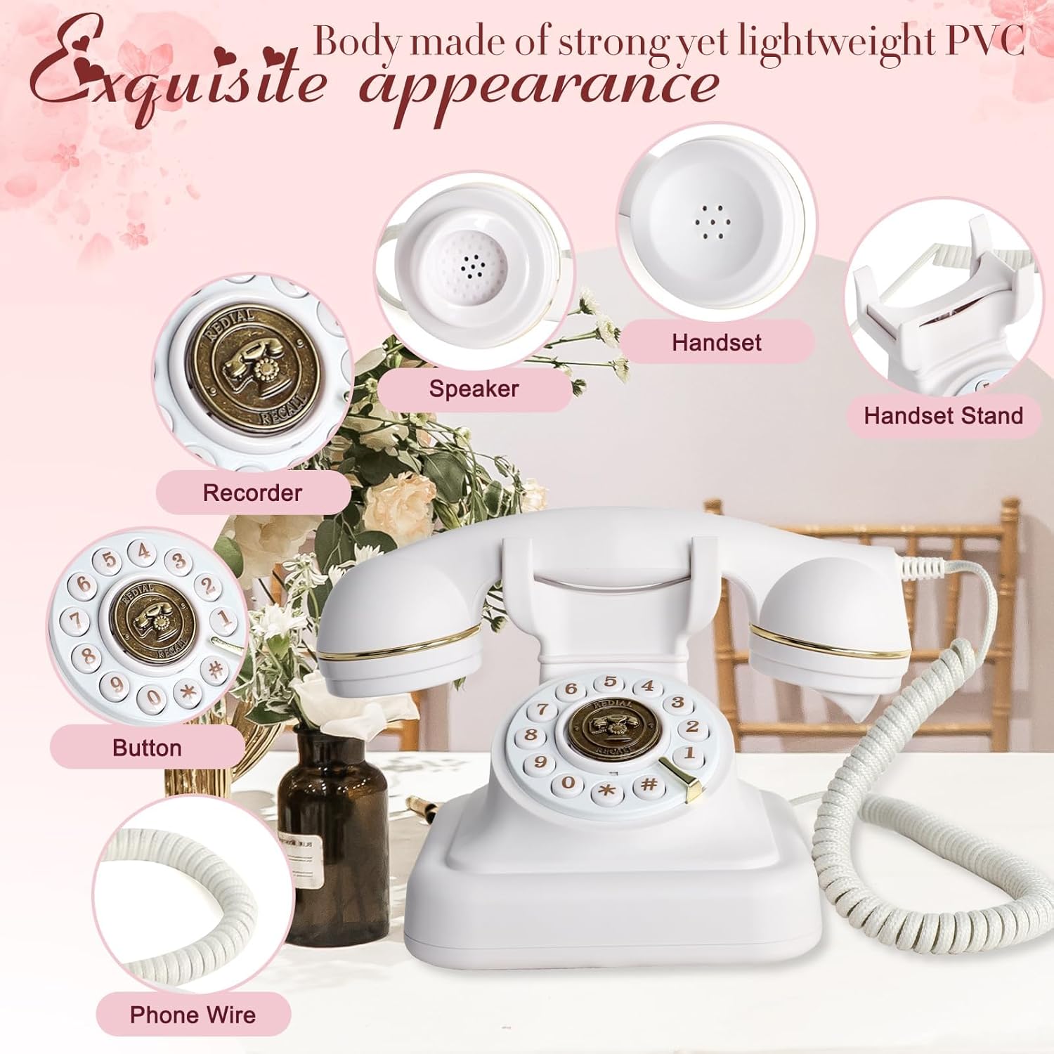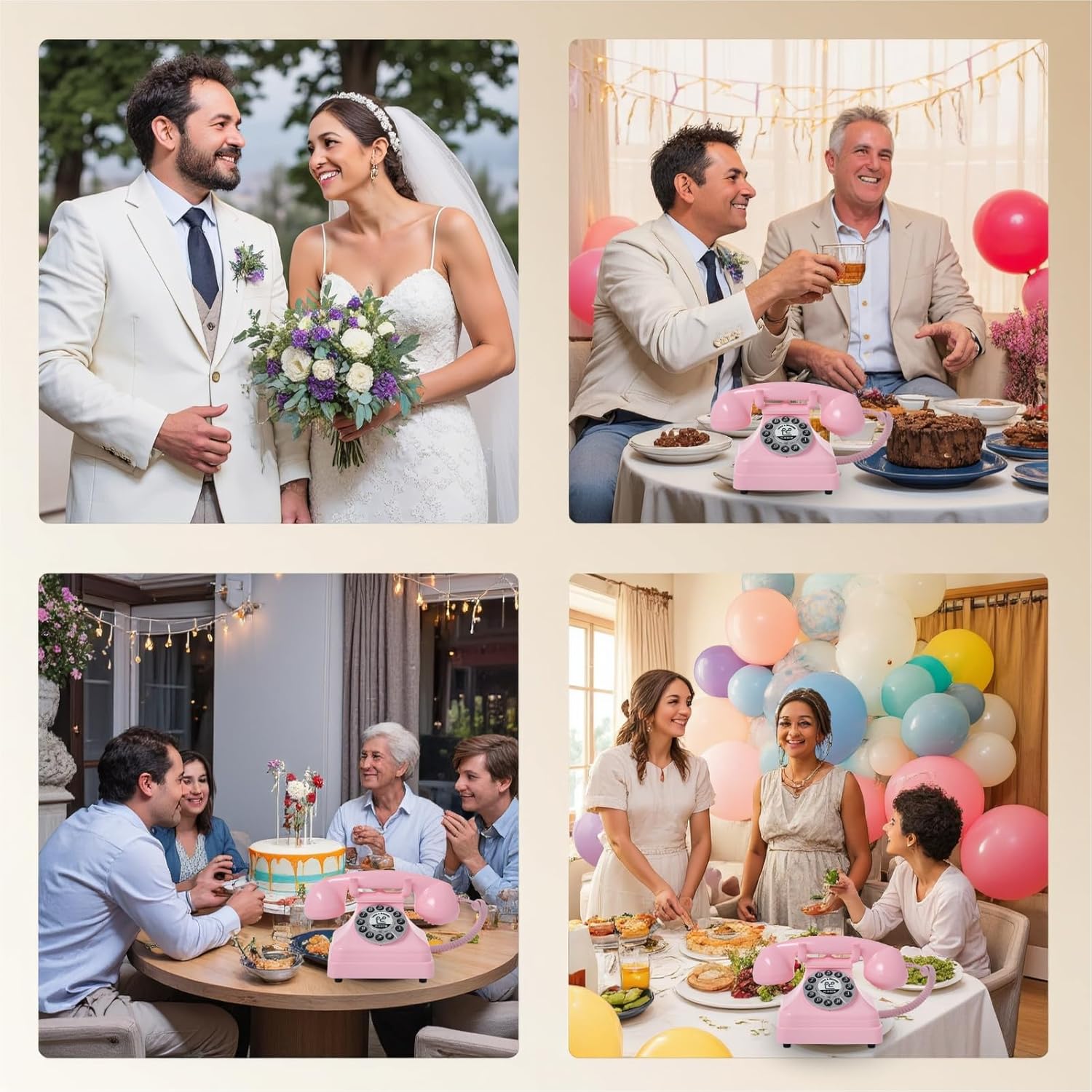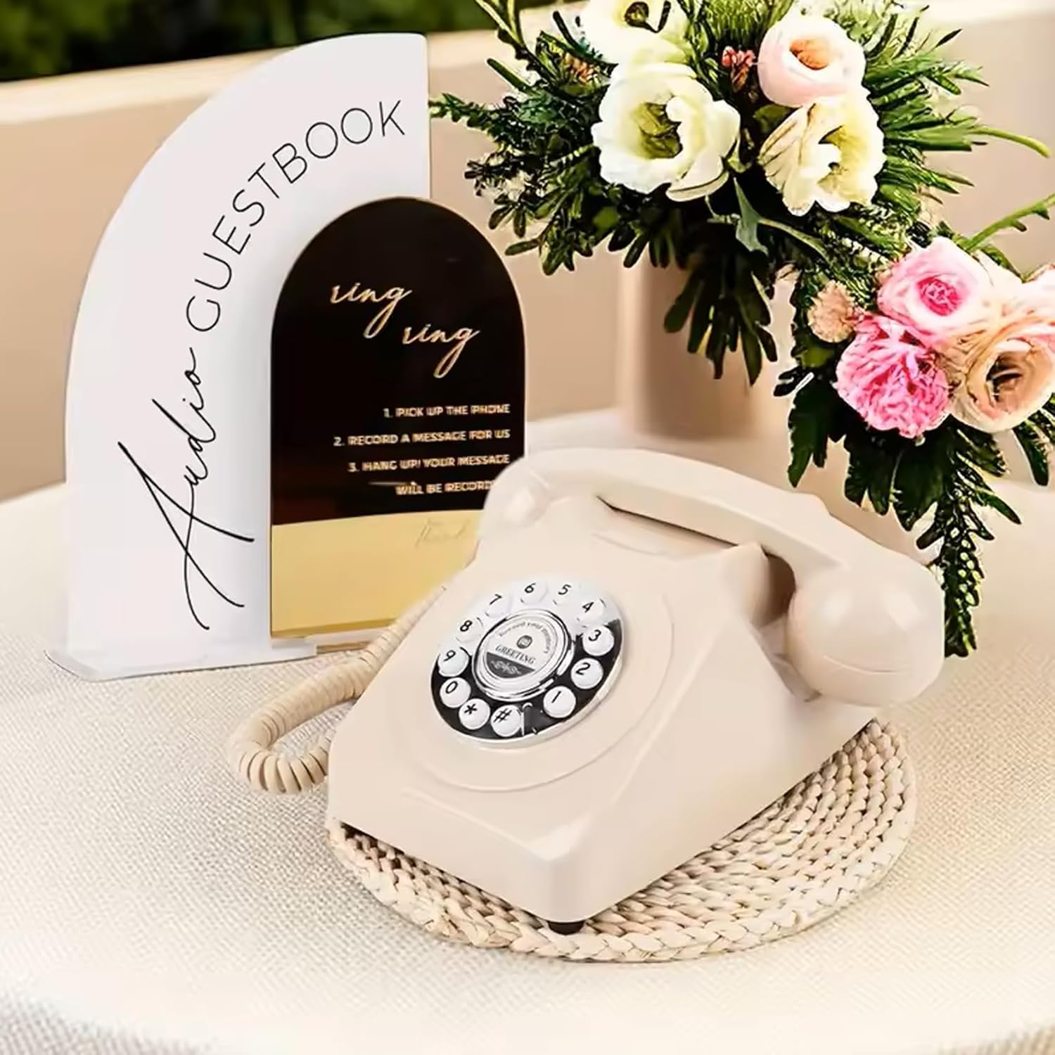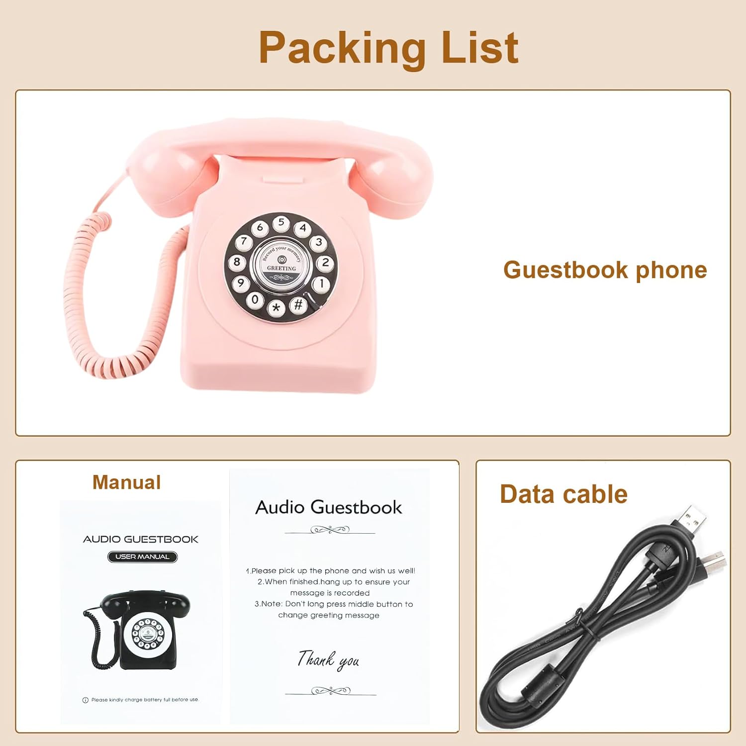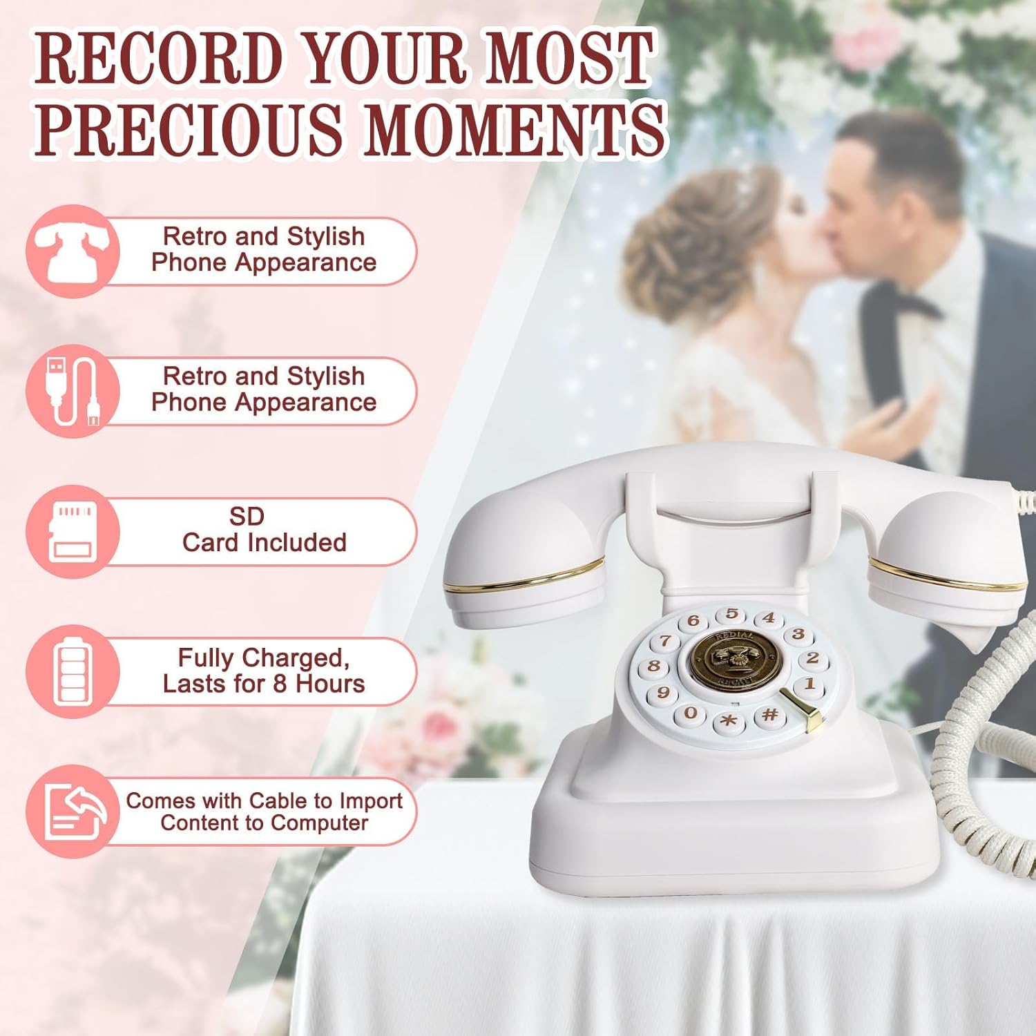 Audio Guest Book Wedding Phone,Audio Guestbook Phone Vintage Style Audio Message Voicemail for Graduation Retirement Party Birthdays Baby Shower Special Occasions (Pink)