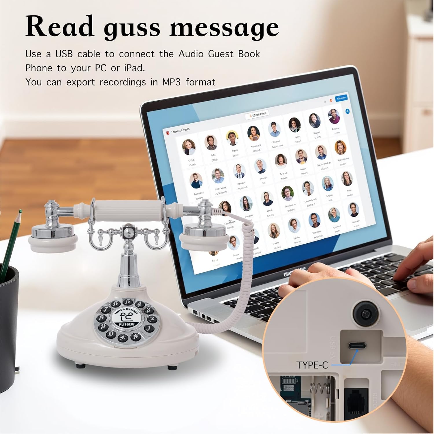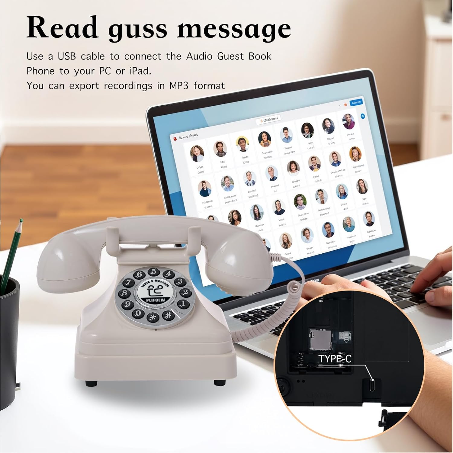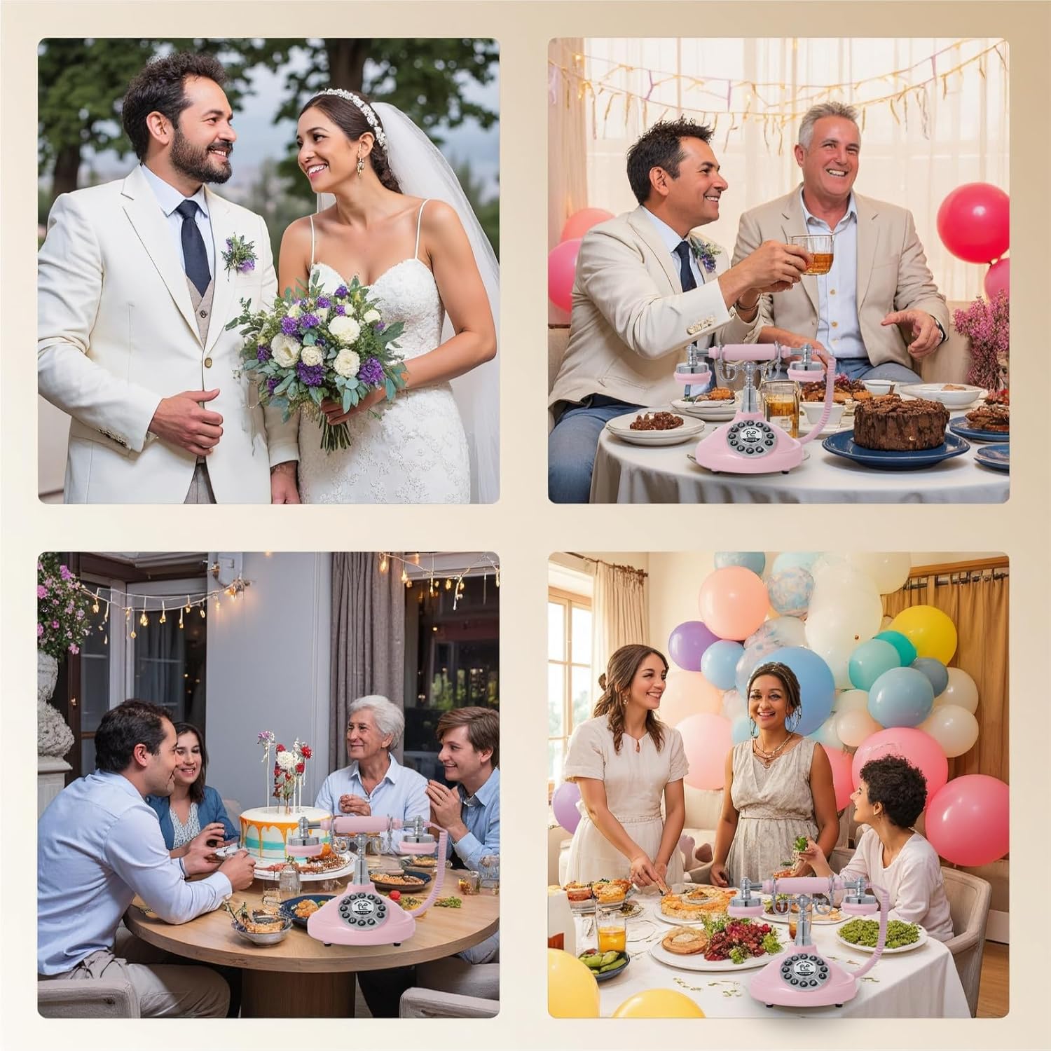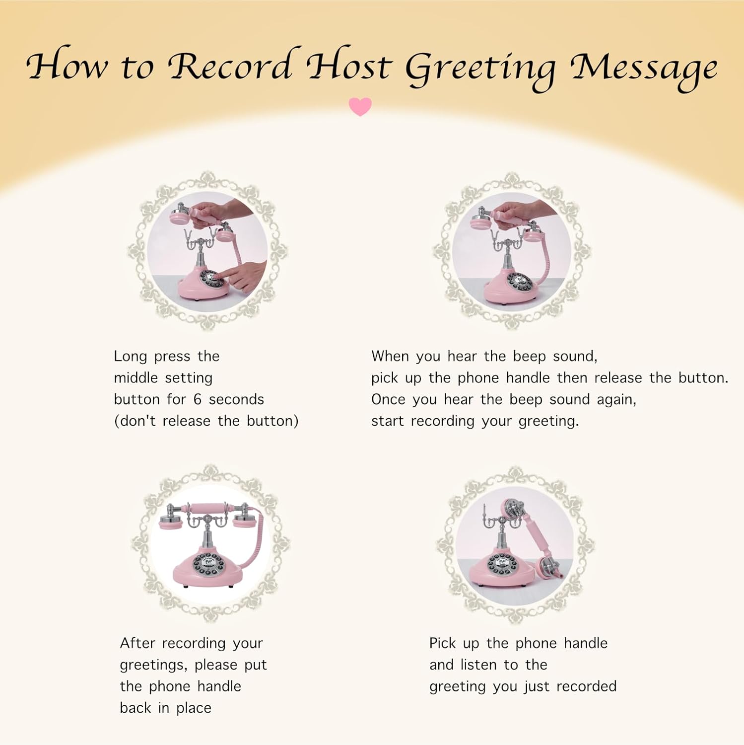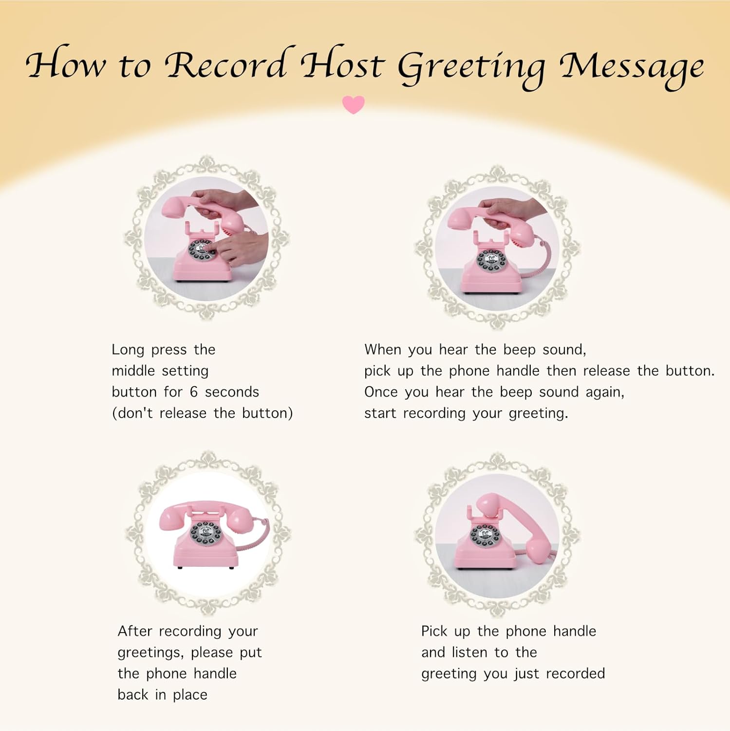 Audio Guest Book Wedding Phone,Audio Guestbook Phone Vintage Style Audio Message Voicemail for Graduation Retirement Party Birthdays Baby Shower Special Occasions (Pink)