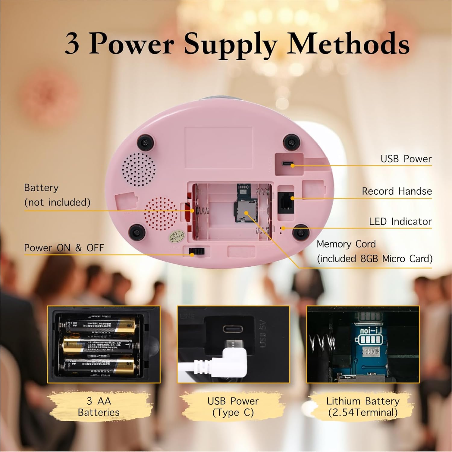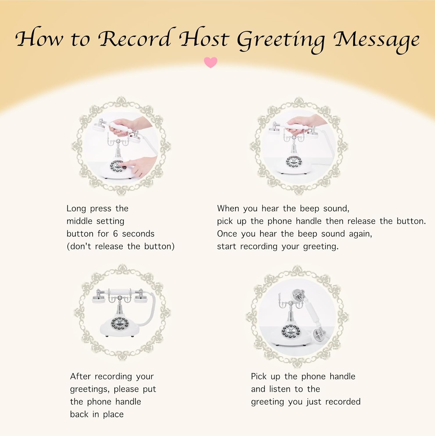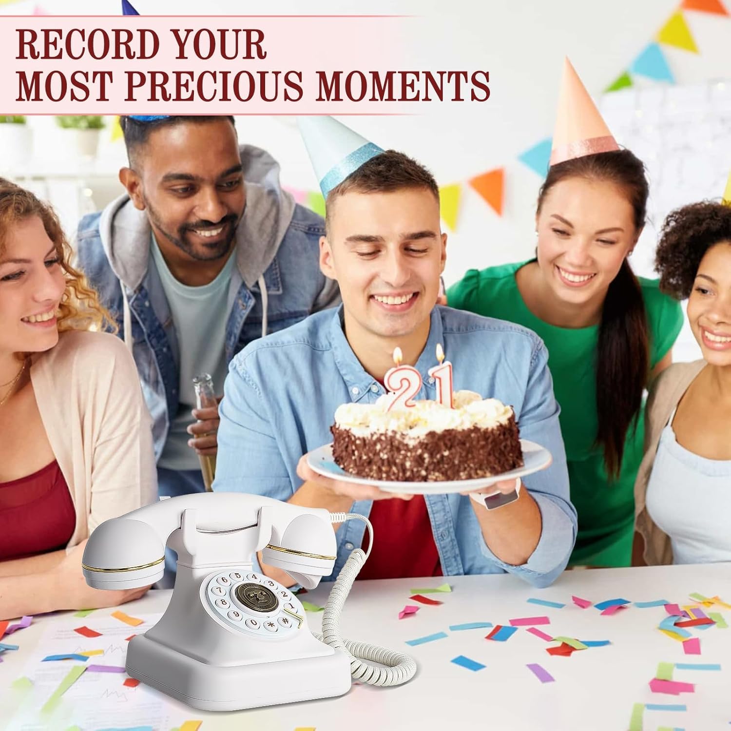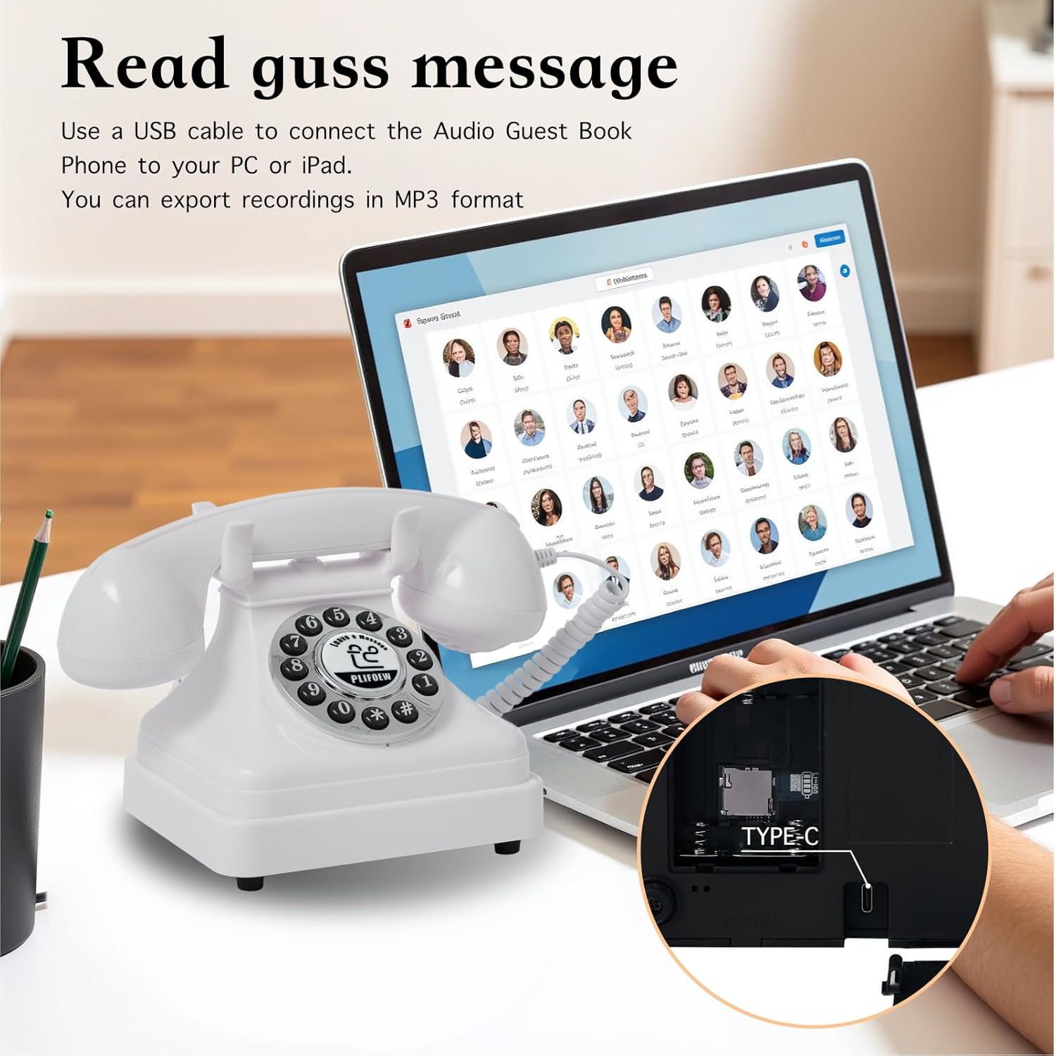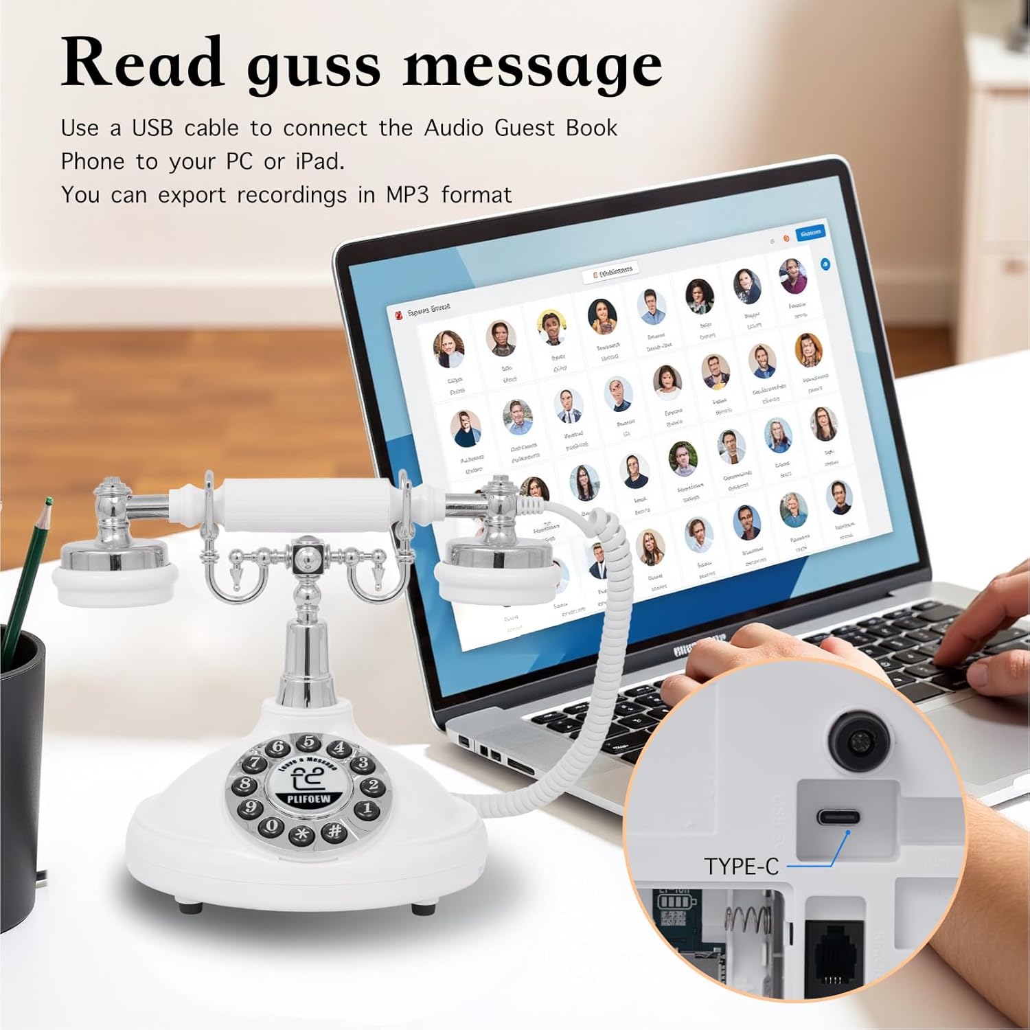 Audio Guest Book Wedding Phone,Audio Guestbook Phone Vintage Style Audio Message Voicemail for Graduation Retirement Party Birthdays Baby Shower Special Occasions (Pink)
