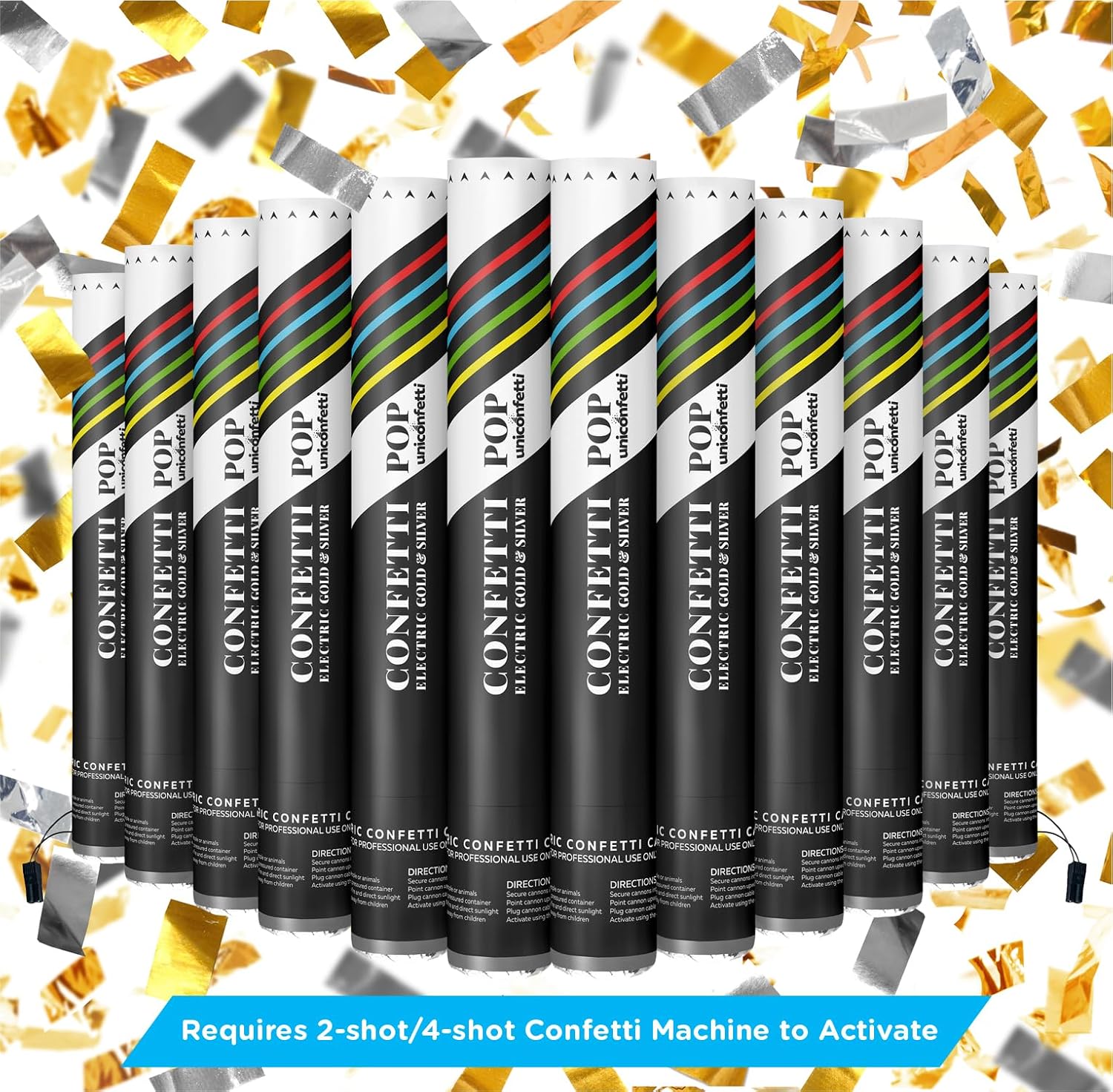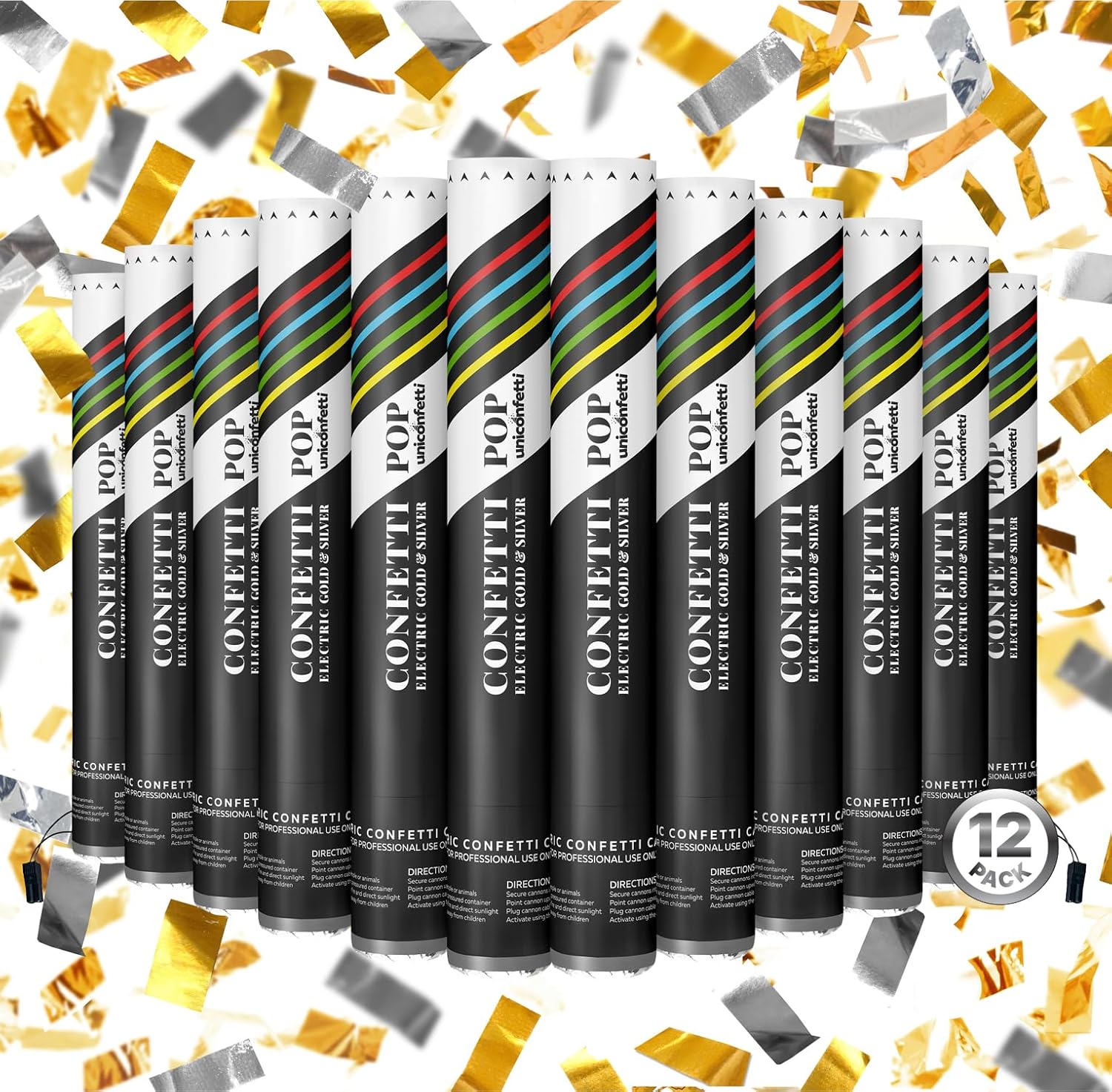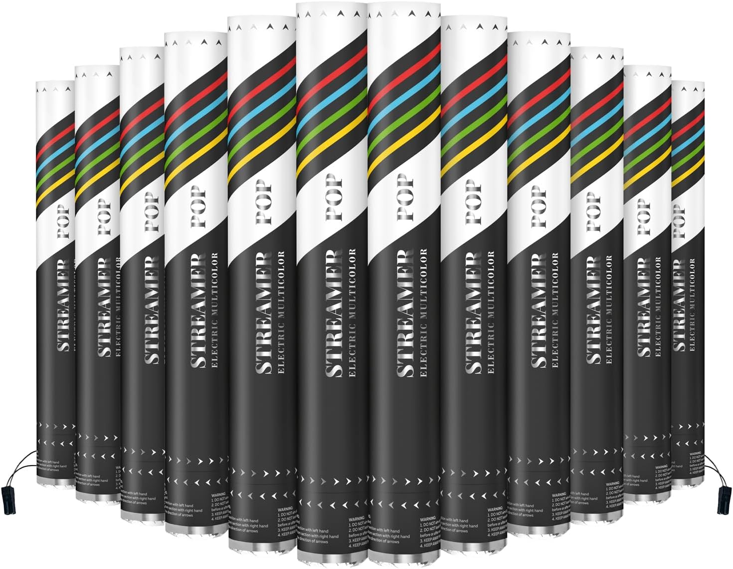 Electric Streamer Cannon Cartridges, 12pcs. - 16" Multicolor Streamer Poppers for Weddings, Parties, Events | Requires 2-shot/4-shot Confetti Machine to Activate