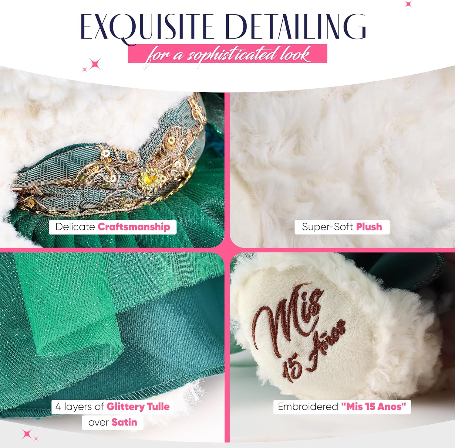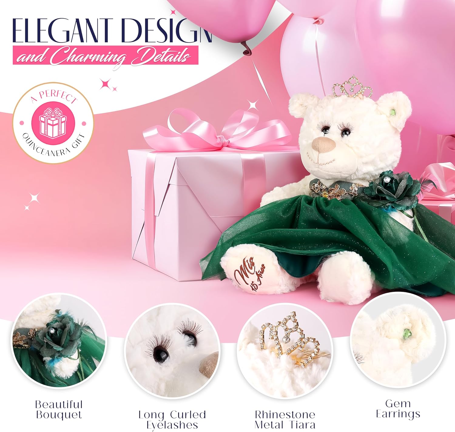 KINNEX COLLECTIONS SINCE 1997 20" Quince Anos Quinceanera Last Doll Teddy Bear with Dress (Centerpiece) ~ ARC16832-3 (Pink)