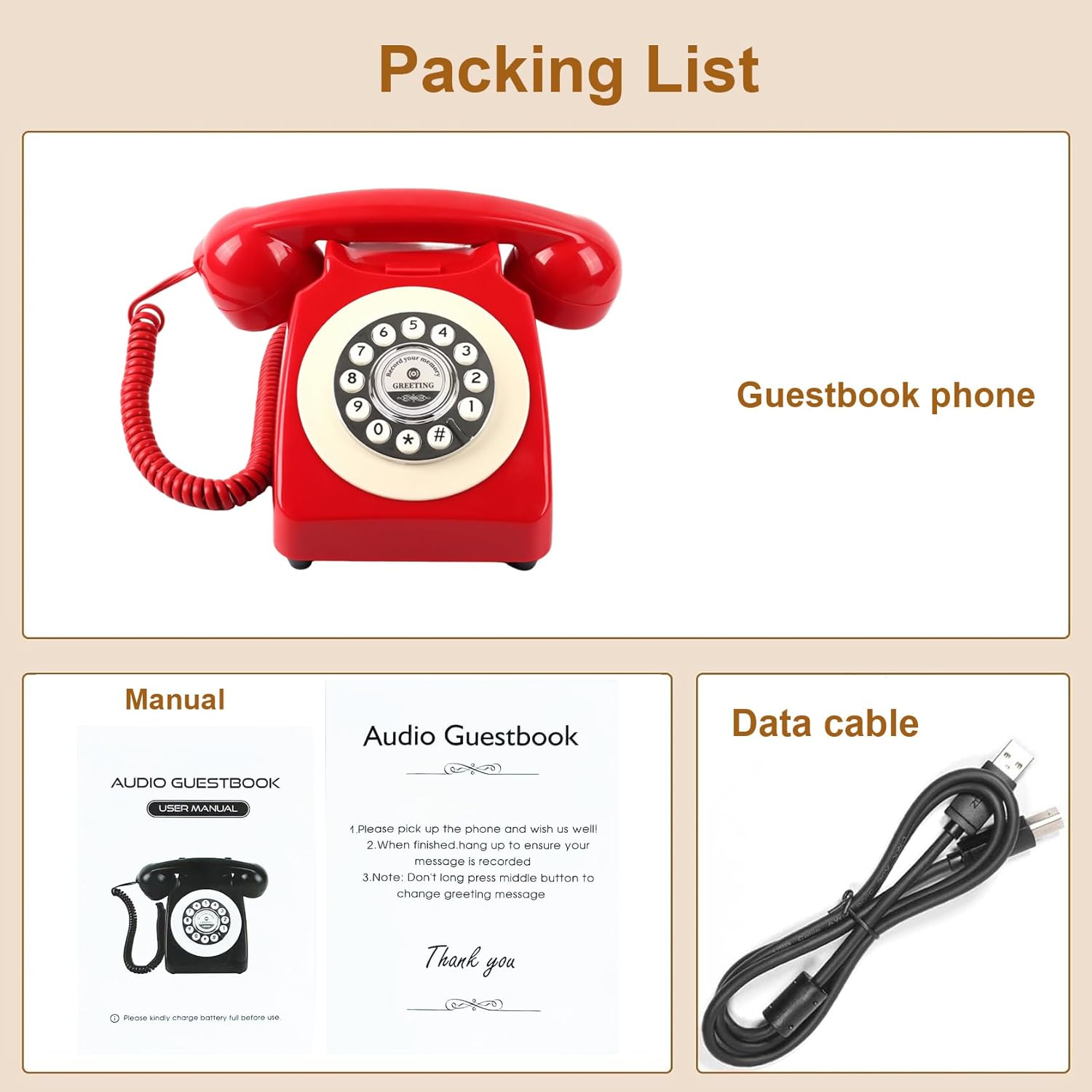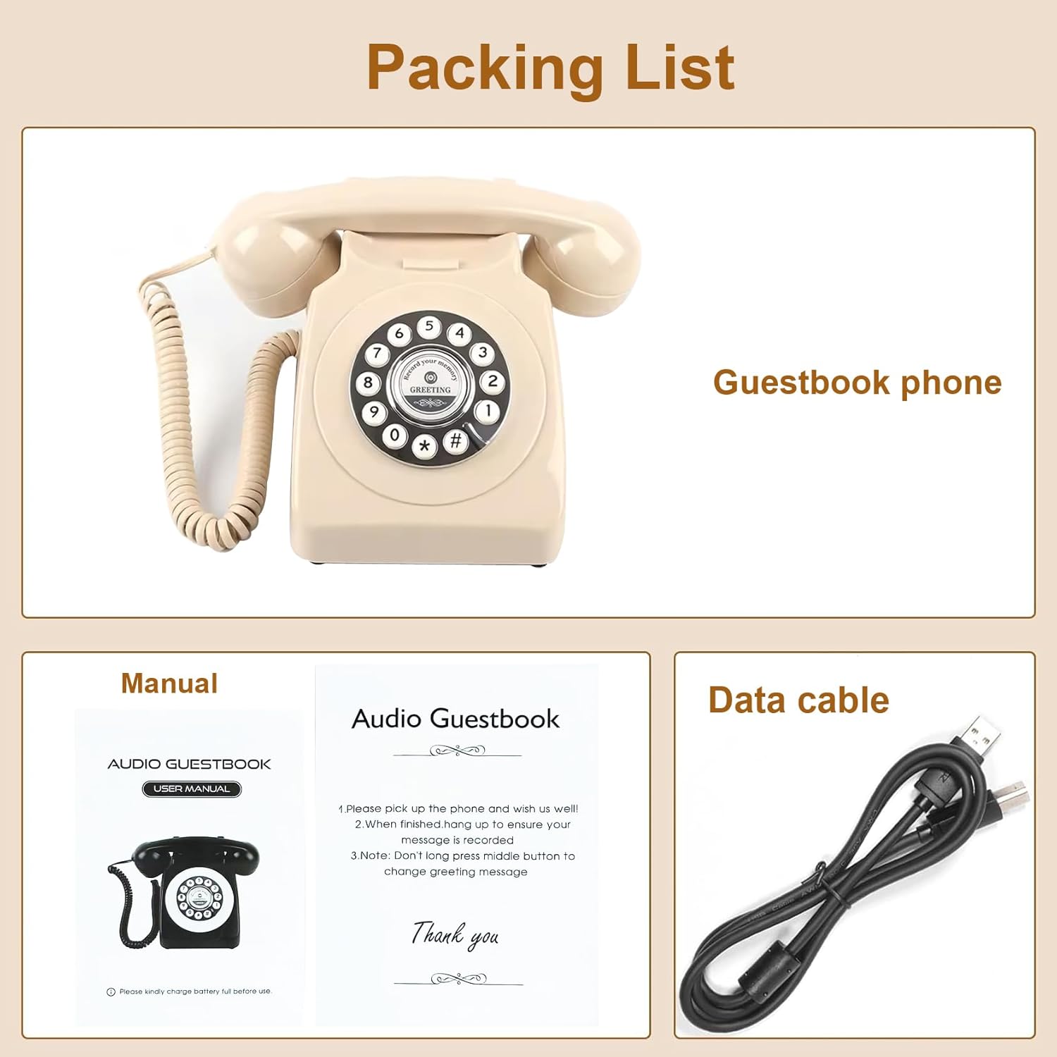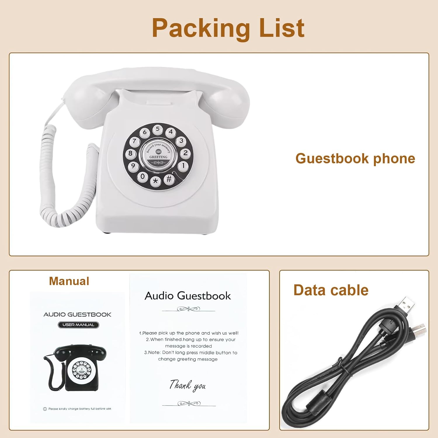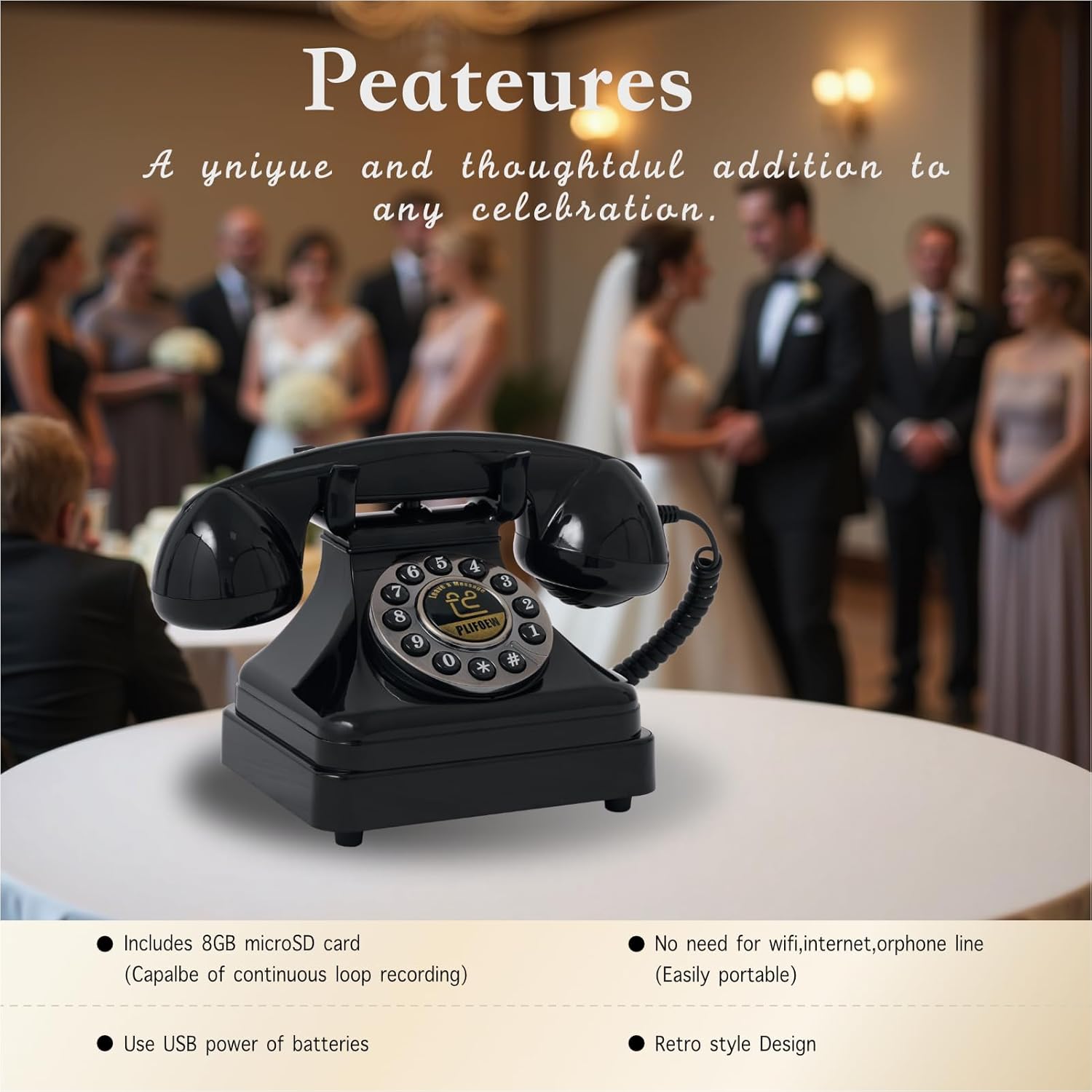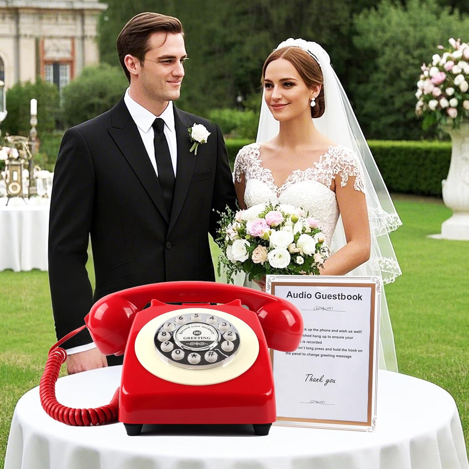 Audio Guest Book Phone Audio GuestBook for Weddings Record Customized Audio Messages Guest Book Classic Retro Style for Parties Birthdays Rentals Confessions Special Occasions (Black)